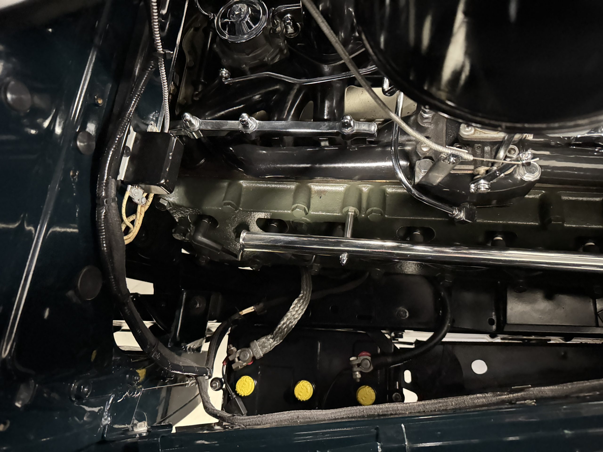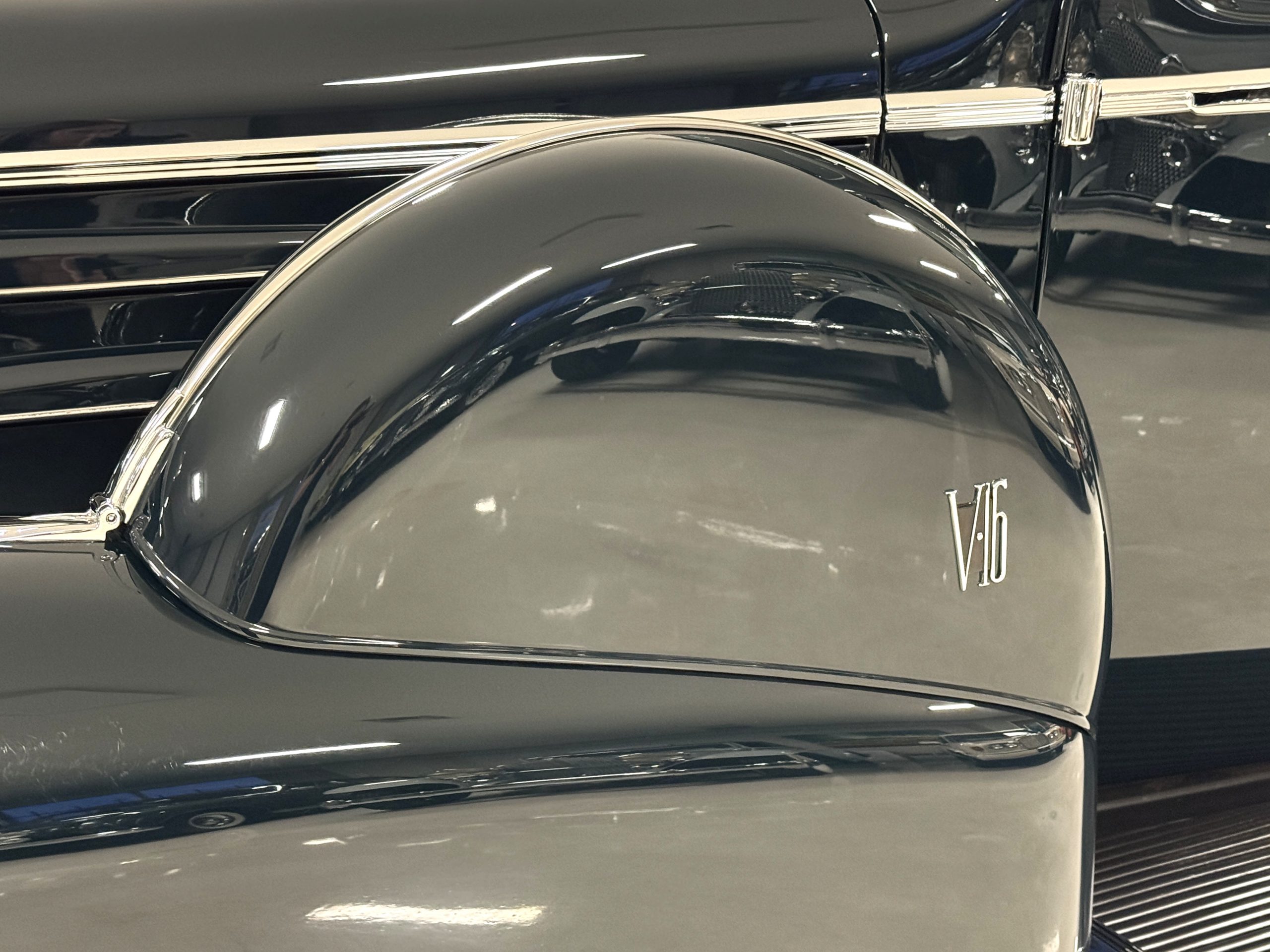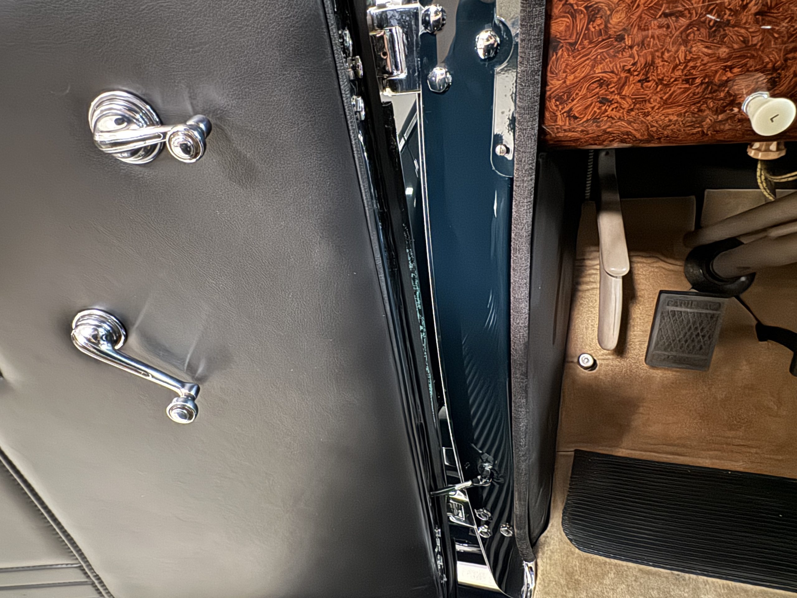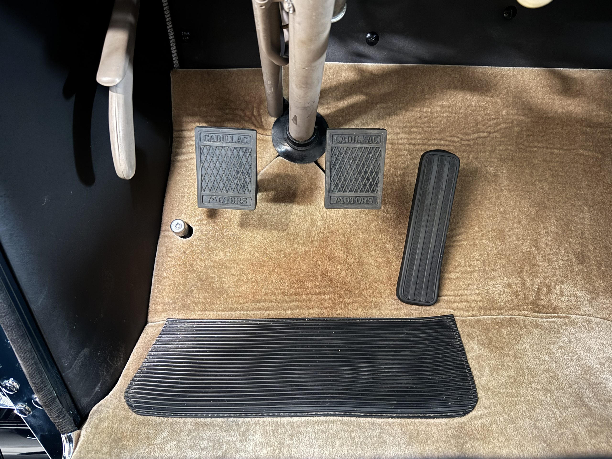 Power is provided by the original Series 90 L-head 431 cubic inch V-16 engine, equipped with dual carburetors, twin fuel pumps, and twin distributors, paired with the original three-speed synchromesh manual transmission with column shift. The drivetrain has been thoroughly cleaned, serviced, and maintained since the restoration, delivering the hallmark smoothness and near-silent operation that defined Cadillac’s V-16 flagship. Independent front suspension with coil springs, semi-elliptic rear leaf springs, and four-wheel hydraulic drum brakes provide a composed, “boat-like” ride quality, with the steering box rebuilt in 2024. This Cadillac remains a mechanically sorted and historically significant example of prewar American engineering at its absolute peak.