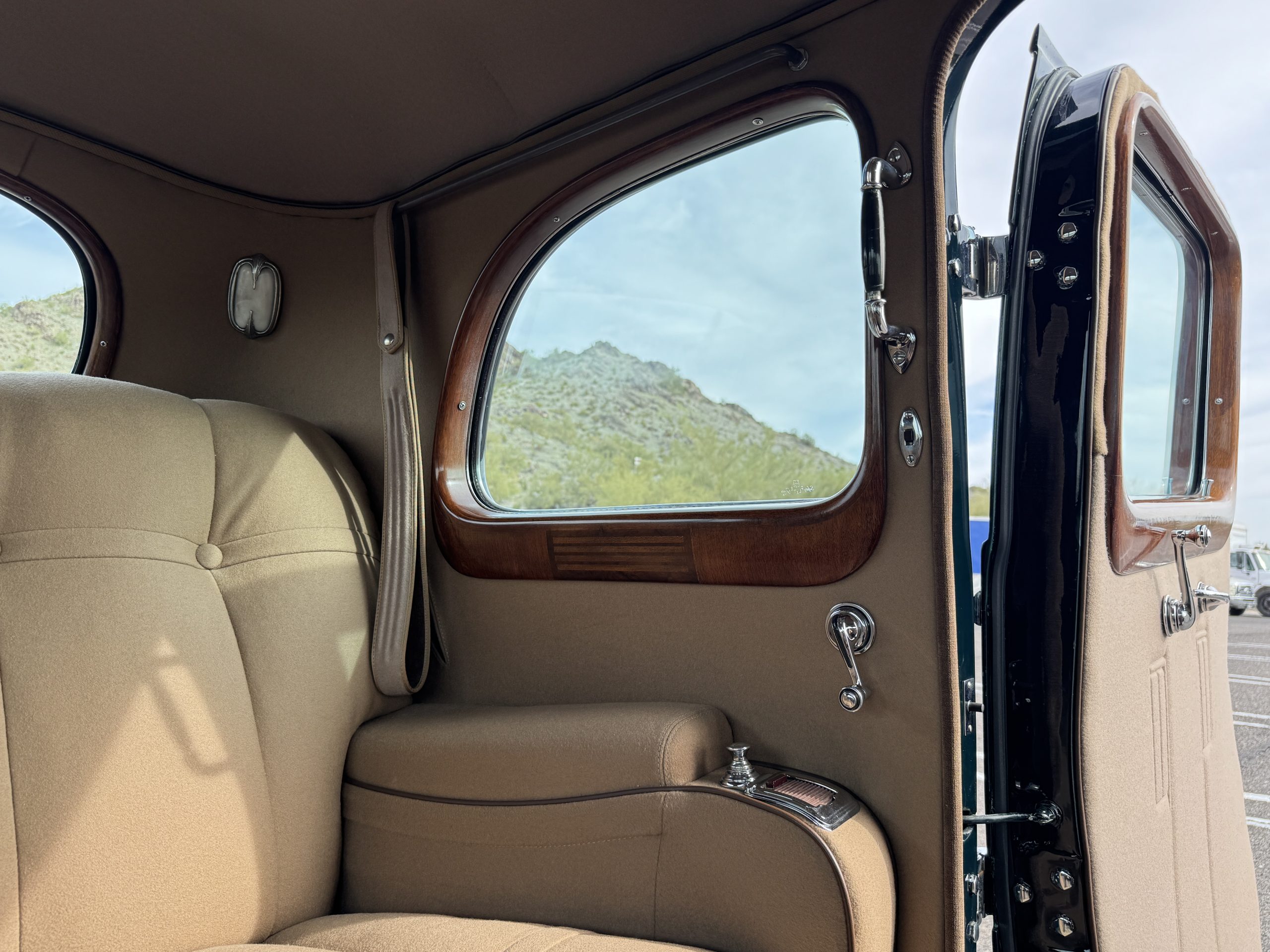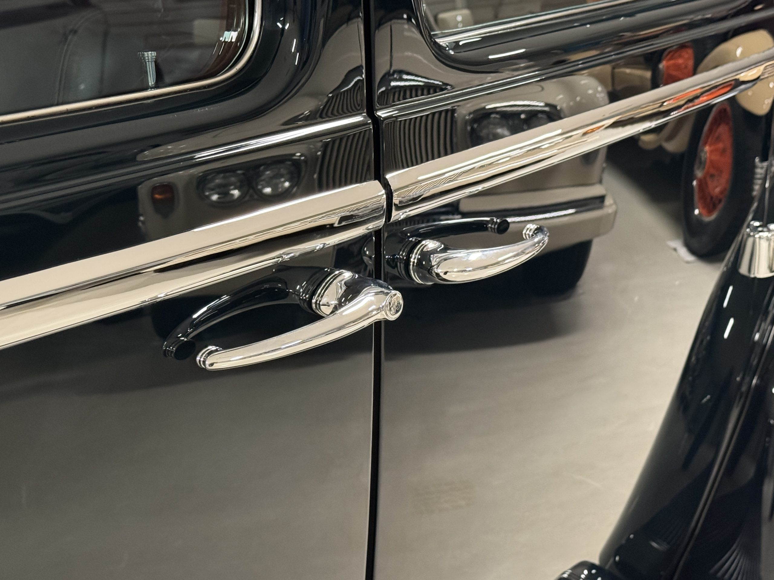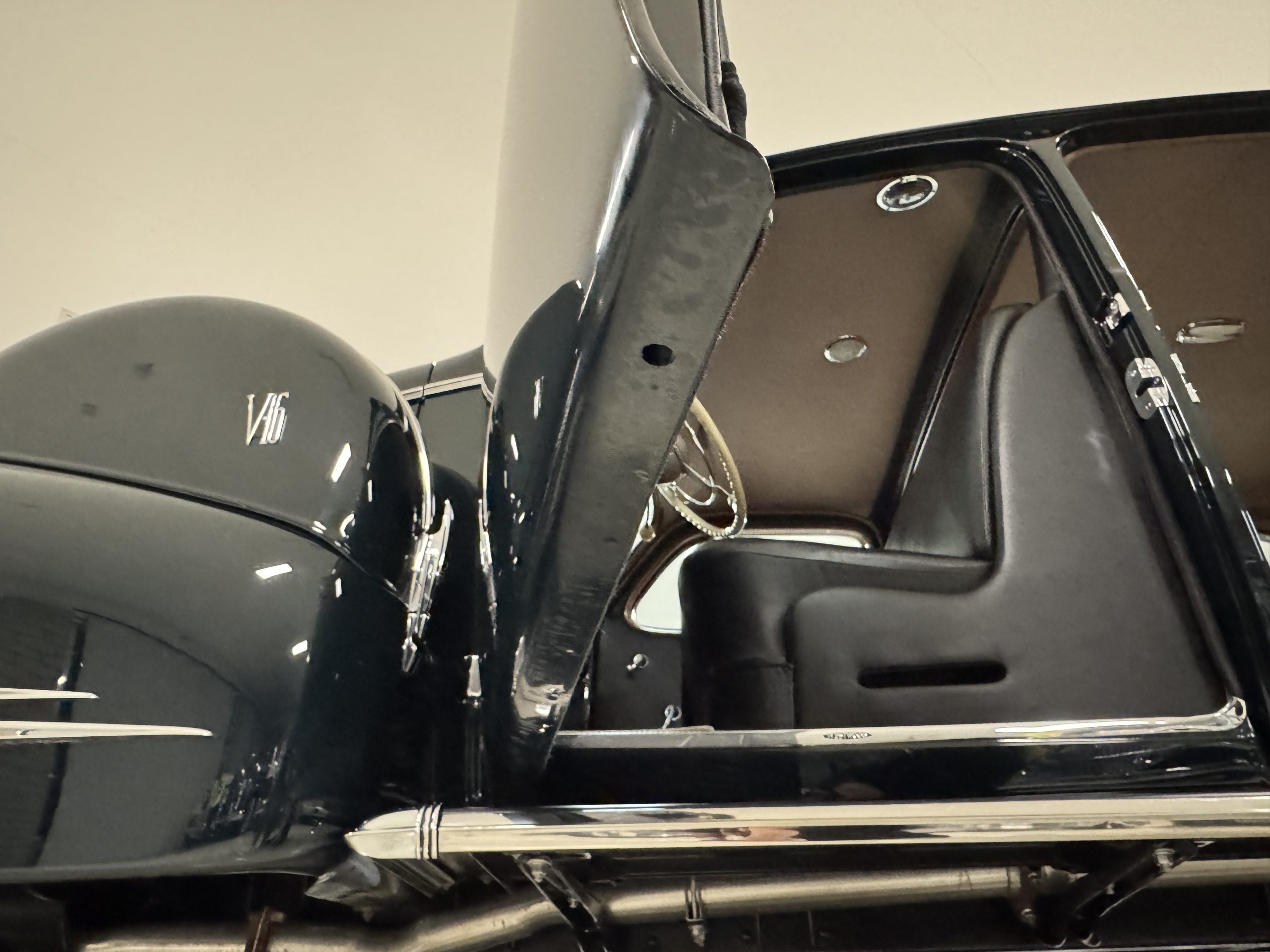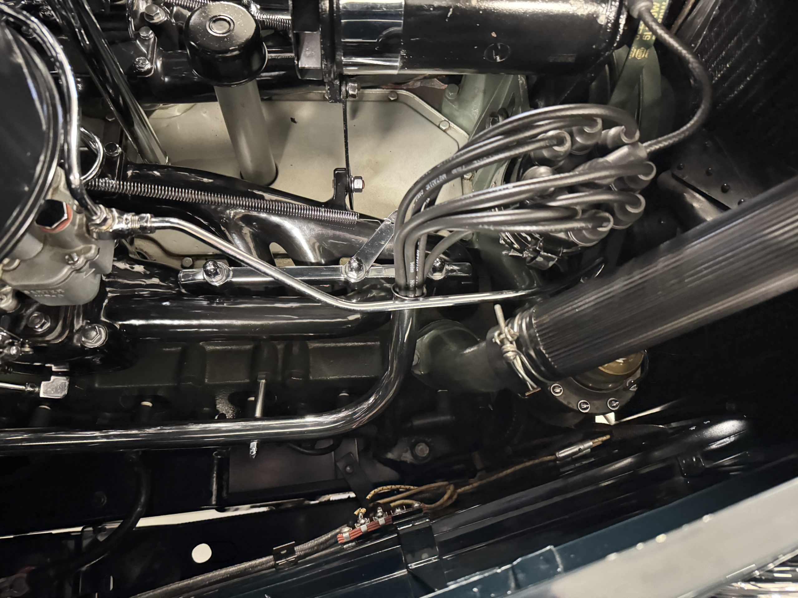 Power is provided by the original Series 90 L-head 431 cubic inch V-16 engine, equipped with dual carburetors, twin fuel pumps, and twin distributors, paired with the original three-speed synchromesh manual transmission with column shift. The drivetrain has been thoroughly cleaned, serviced, and maintained since the restoration, delivering the hallmark smoothness and near-silent operation that defined Cadillac’s V-16 flagship. Independent front suspension with coil springs, semi-elliptic rear leaf springs, and four-wheel hydraulic drum brakes provide a composed, “boat-like” ride quality, with the steering box rebuilt in 2024. This Cadillac remains a mechanically sorted and historically significant example of prewar American engineering at its absolute peak.