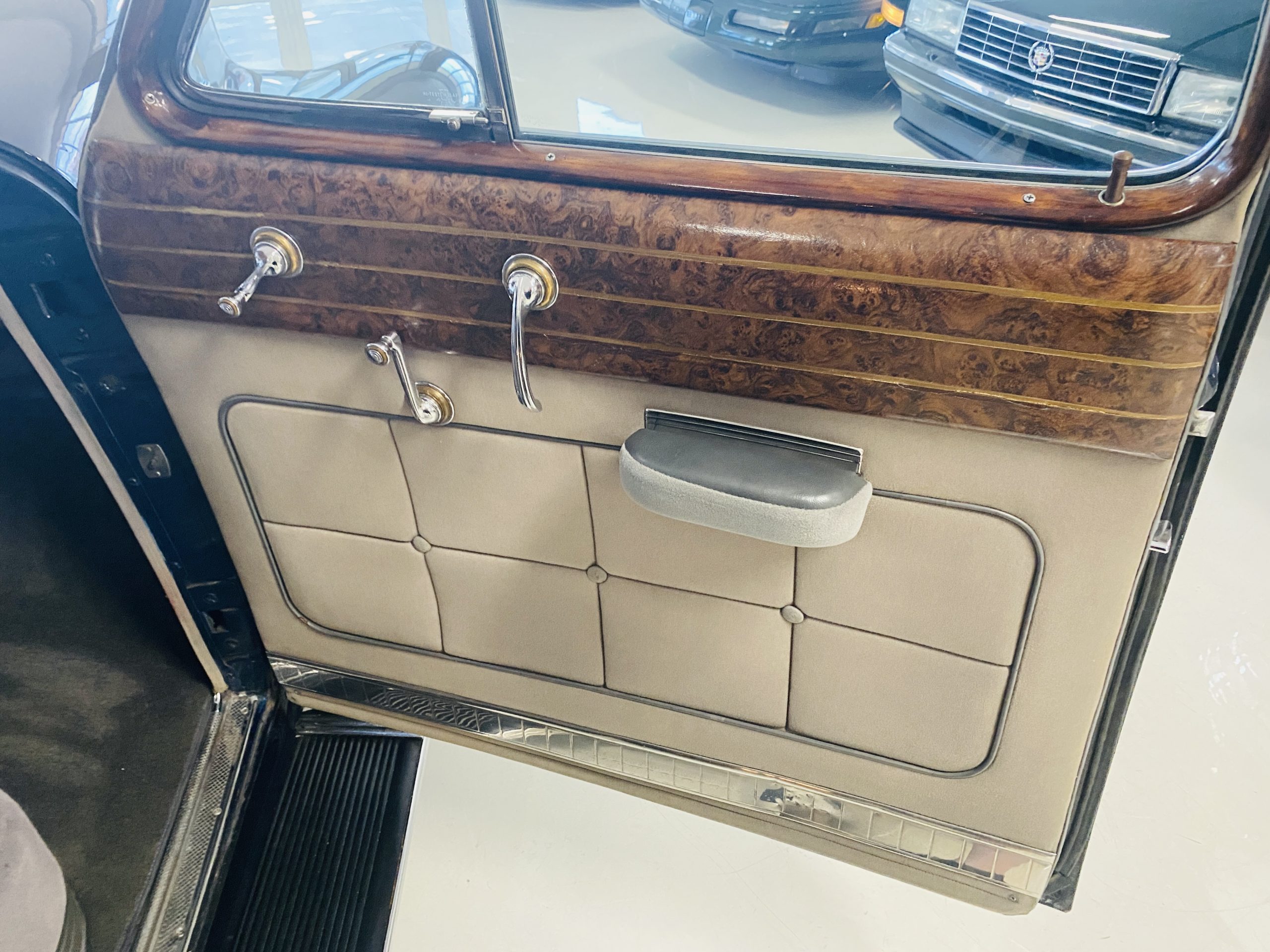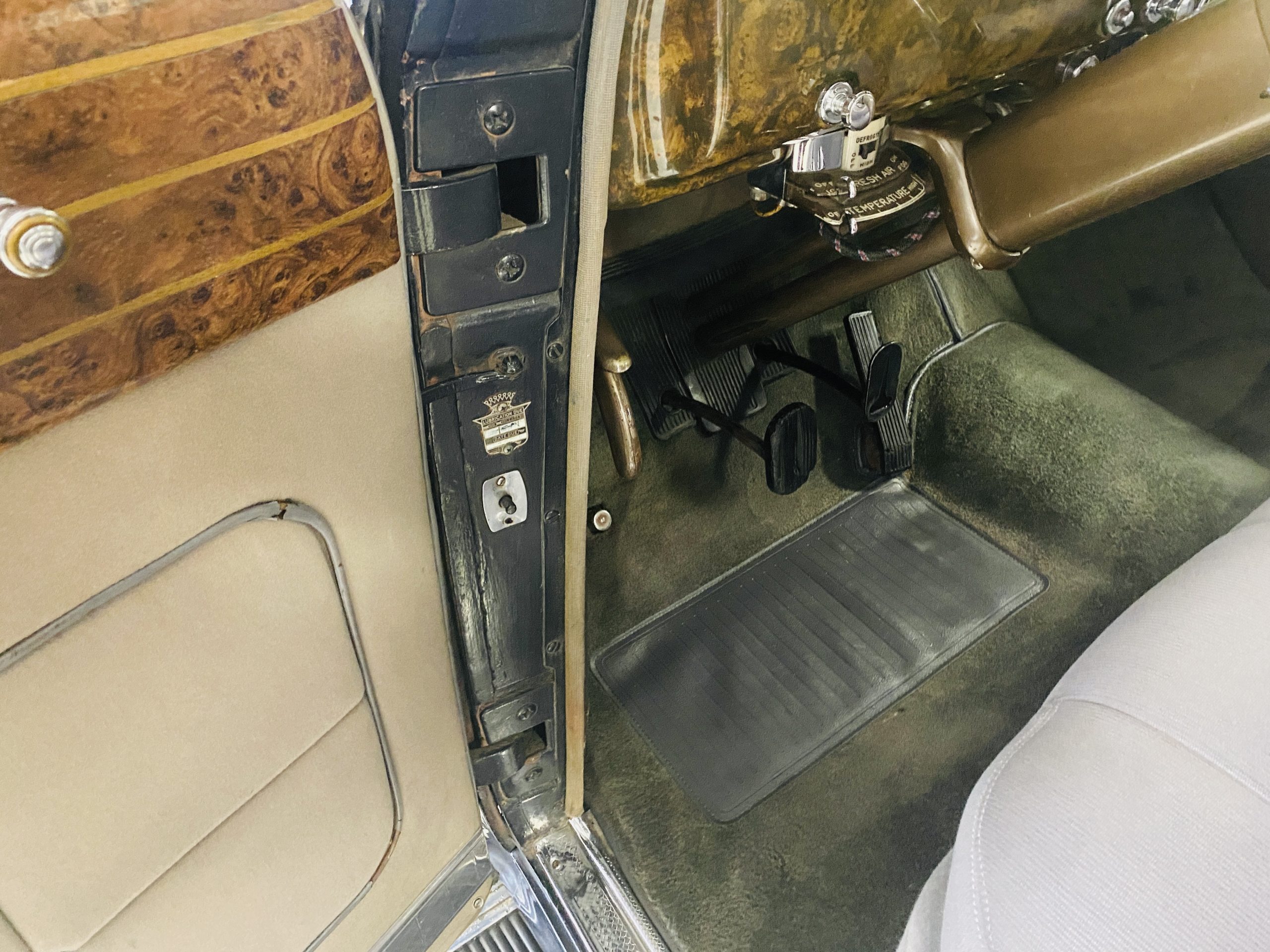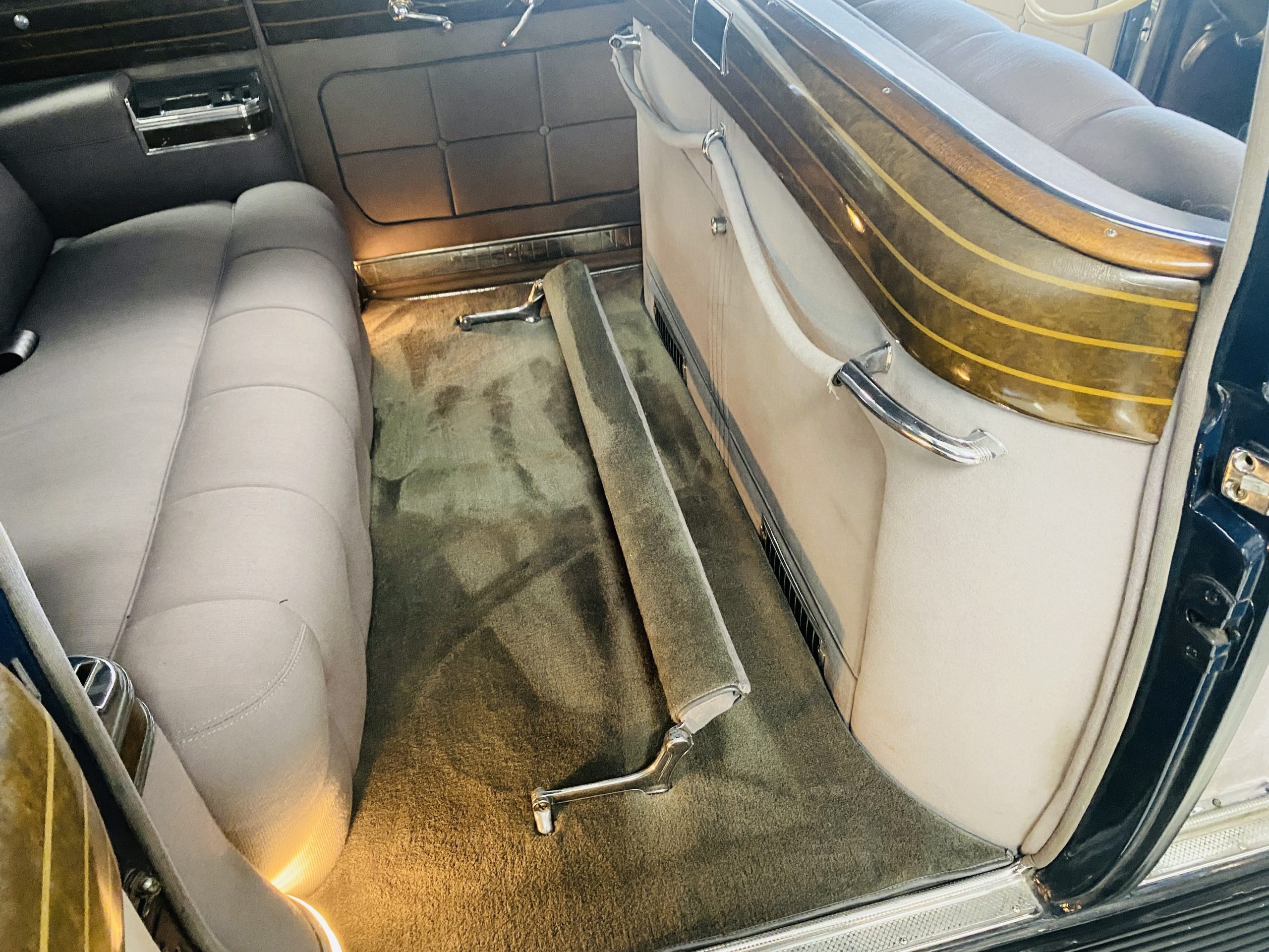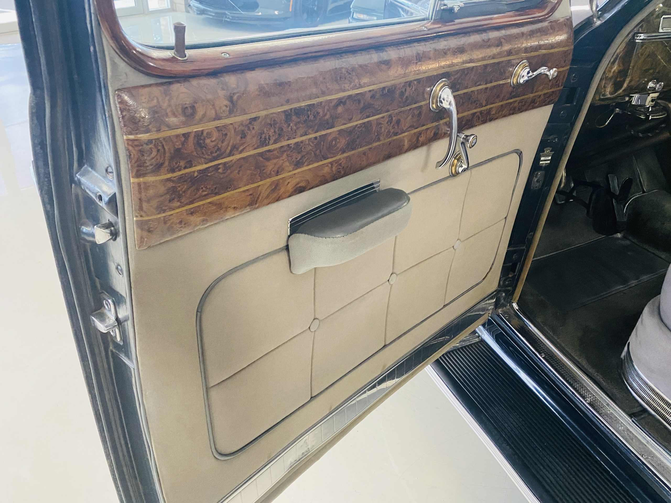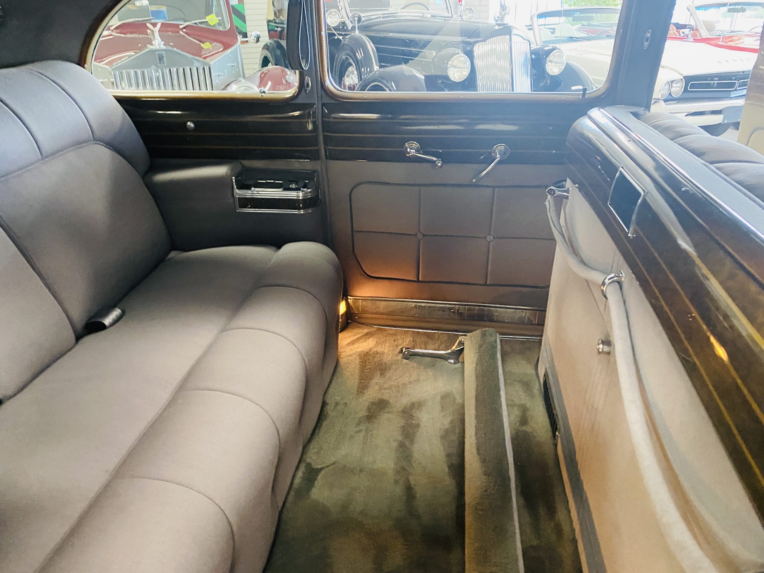 The interior is also largely refinished in correct gray wool broadcloth and carpeting. It shows only normal usage from touring with no holes or other major issues. It really conveys originality and patina from use. We love all the gorgeous wood and numerous compartments for storage. This Fleetwood body is the ultimate in luxury.