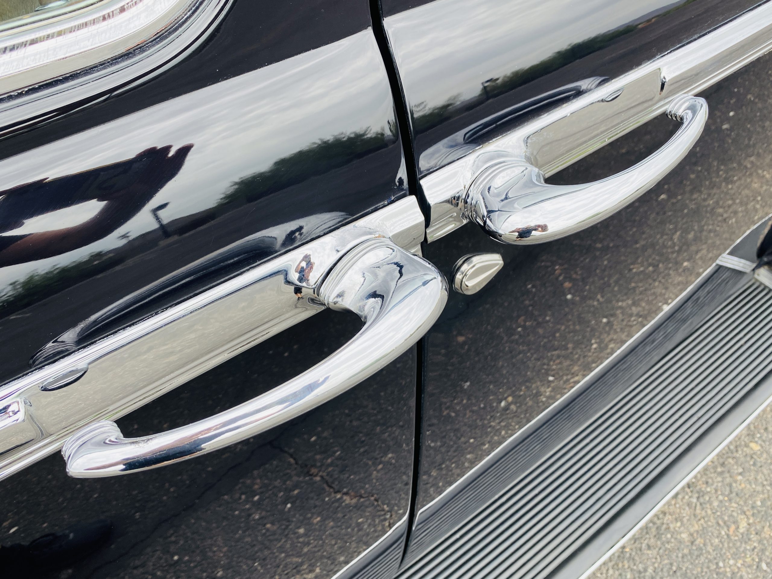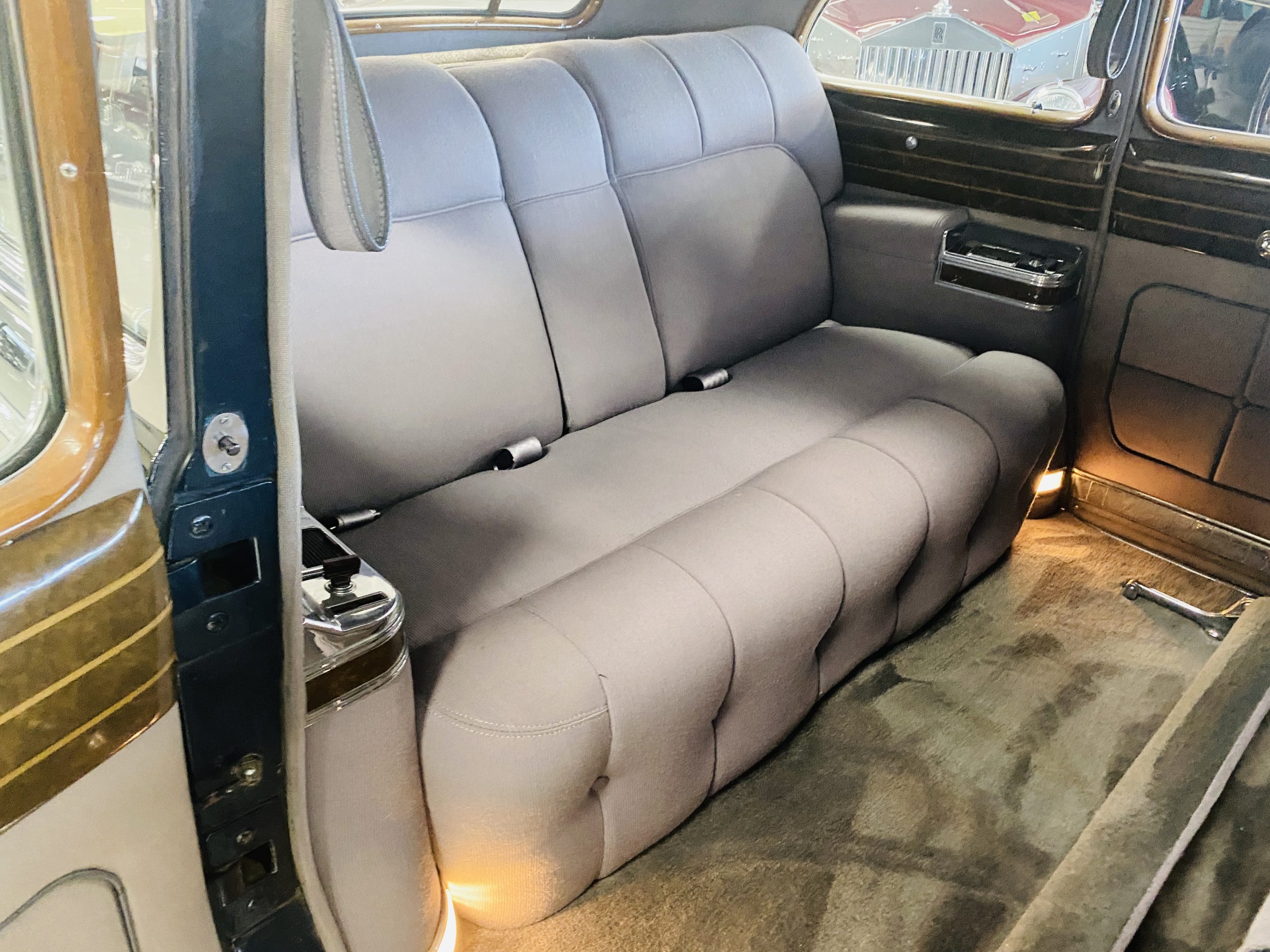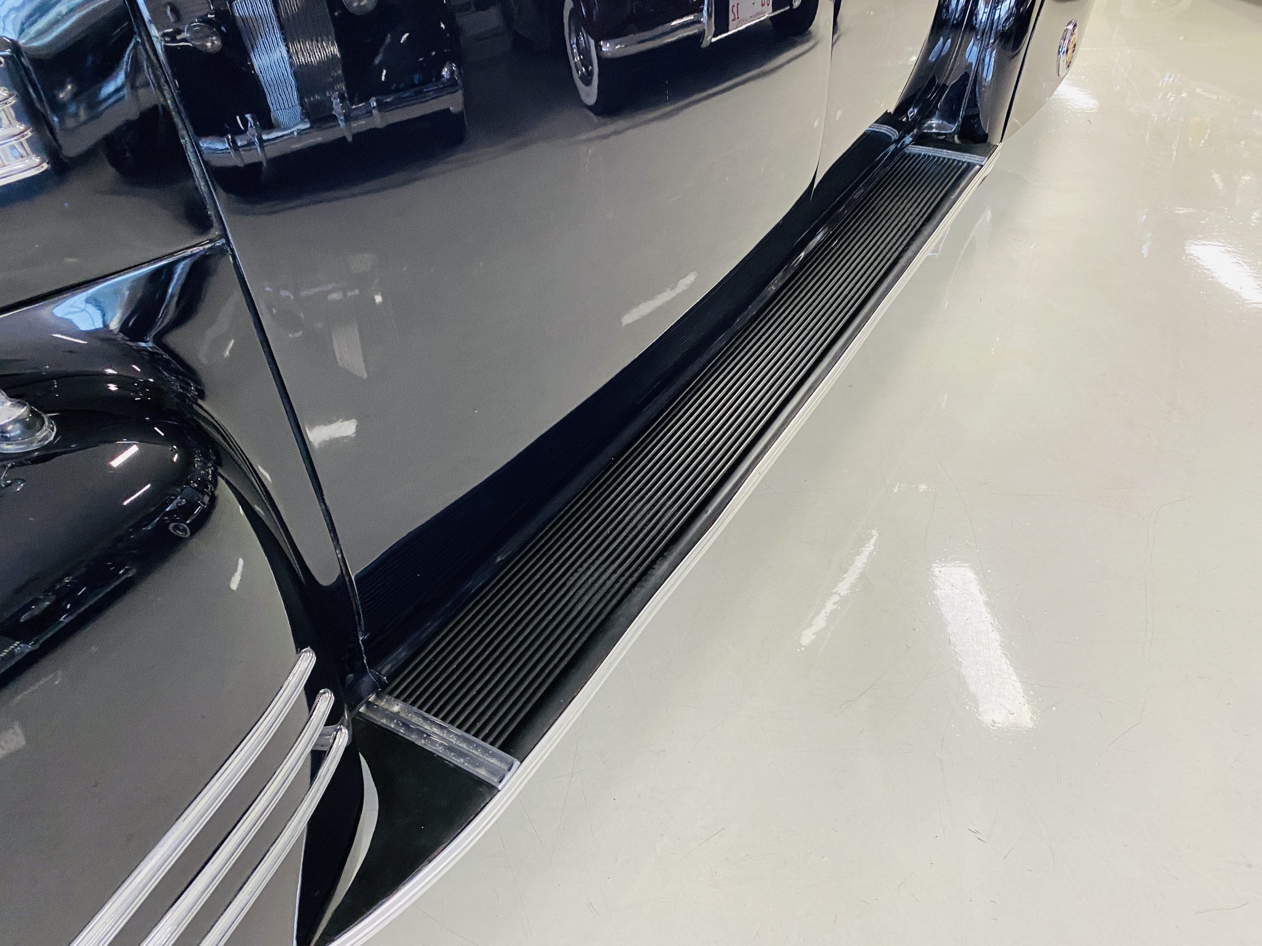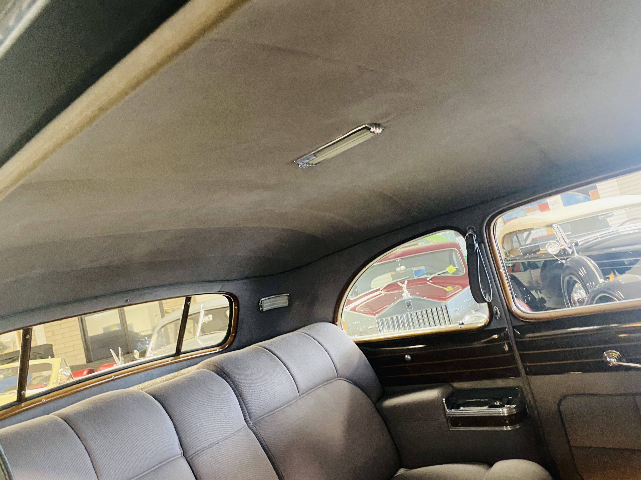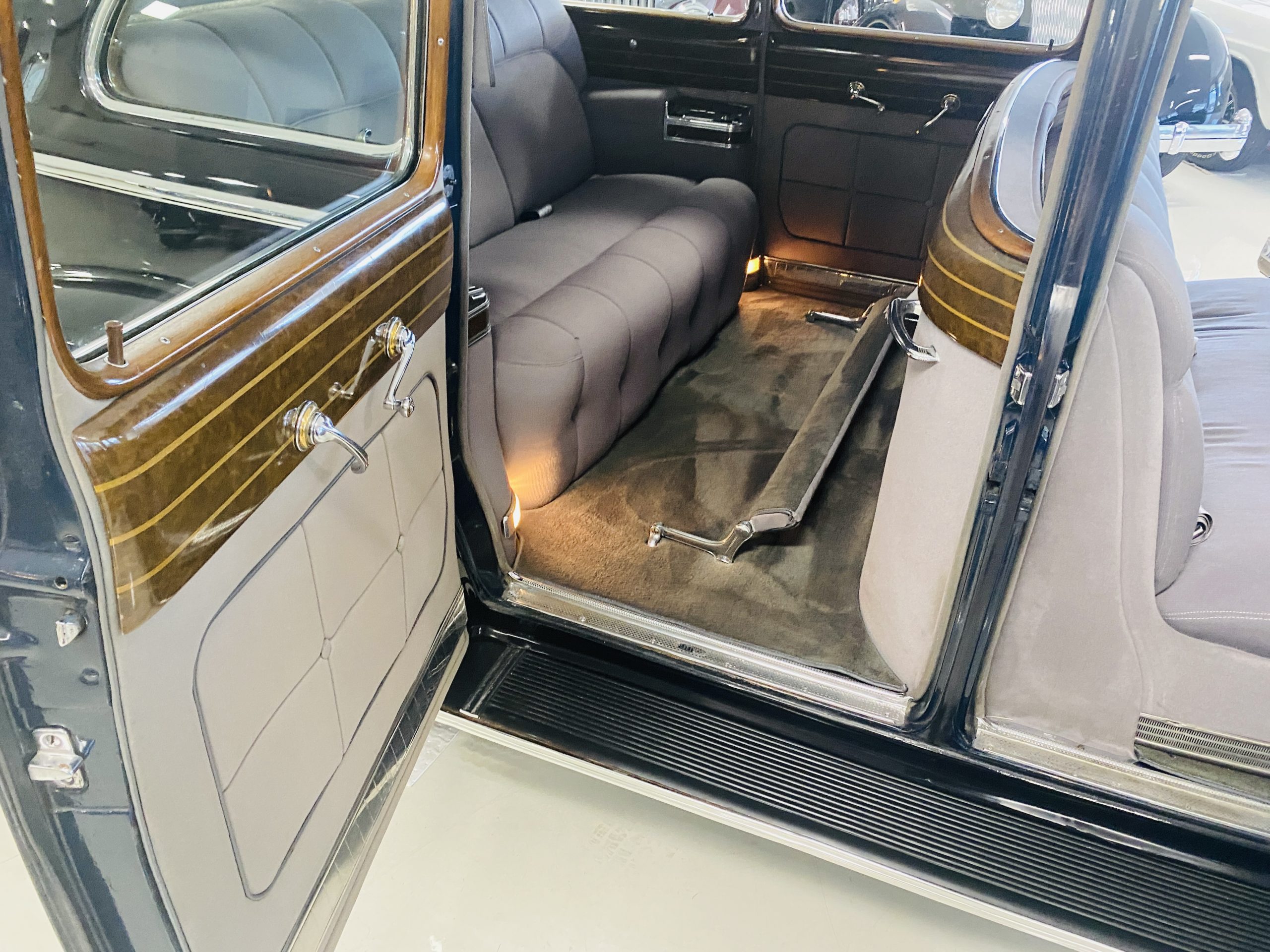 The interior is also largely refinished in correct gray wool broadcloth and carpeting. It shows only normal usage from touring with no holes or other major issues. It really conveys originality and patina from use. We love all the gorgeous wood and numerous compartments for storage. This Fleetwood body is the ultimate in luxury.
