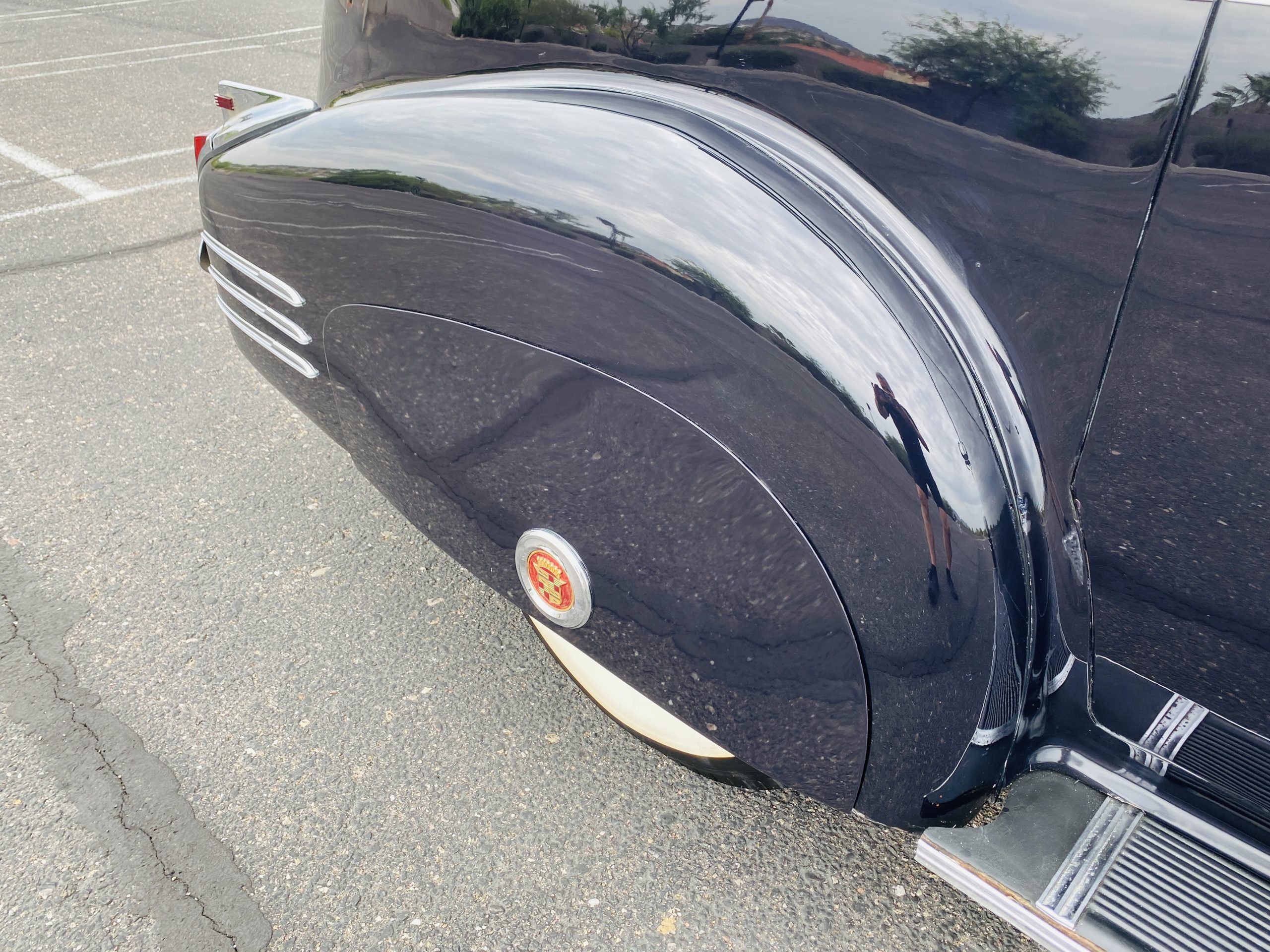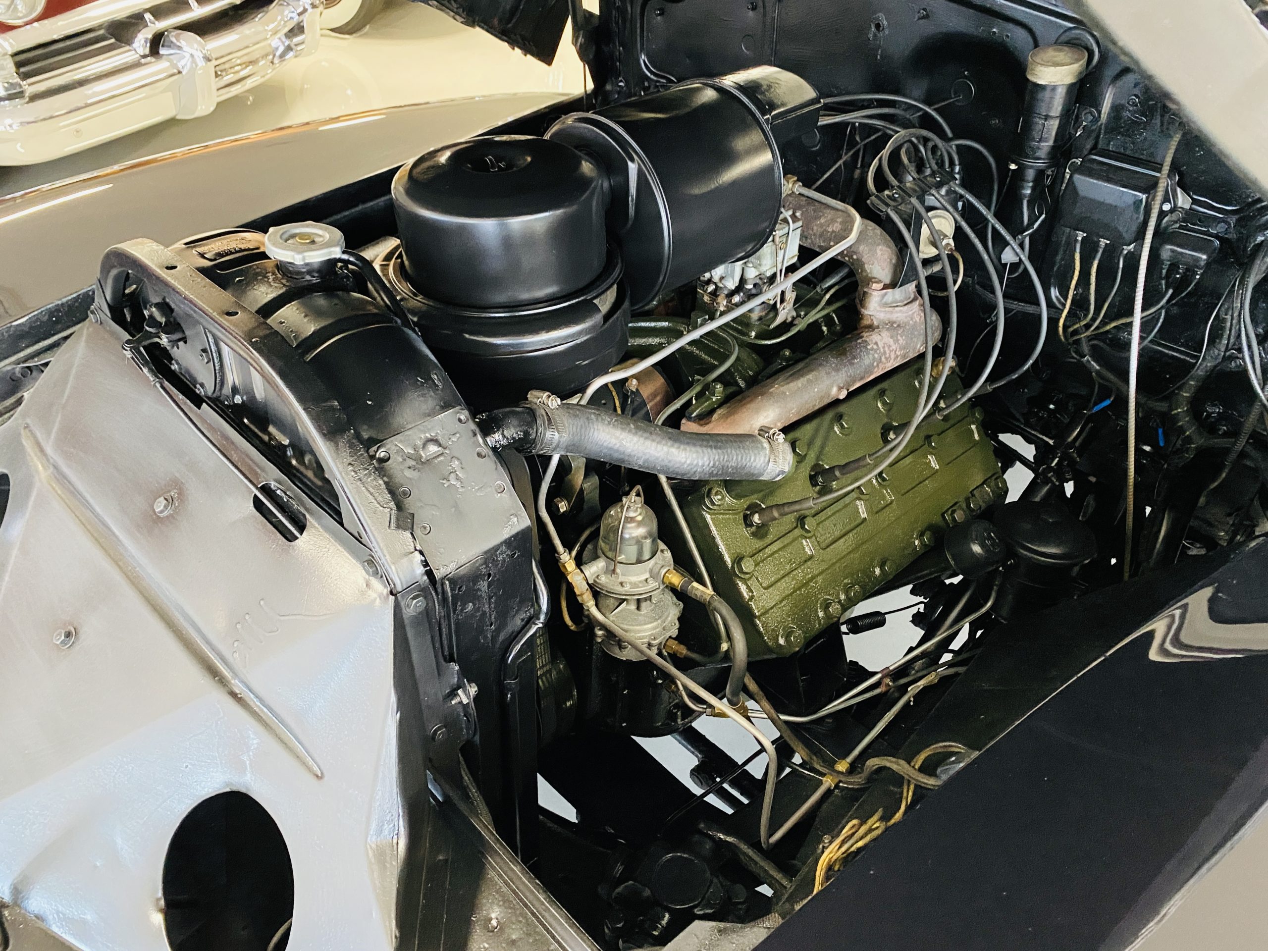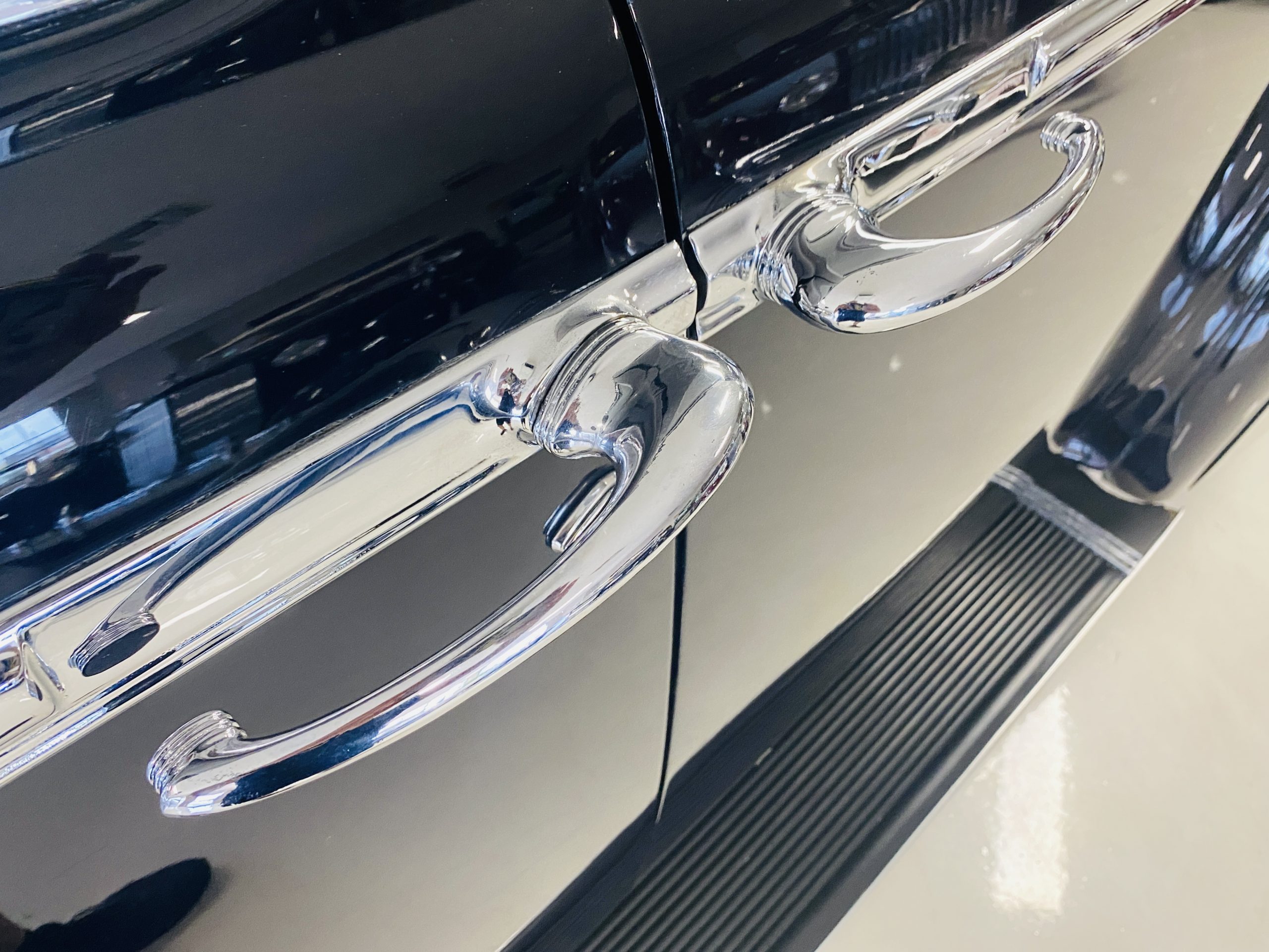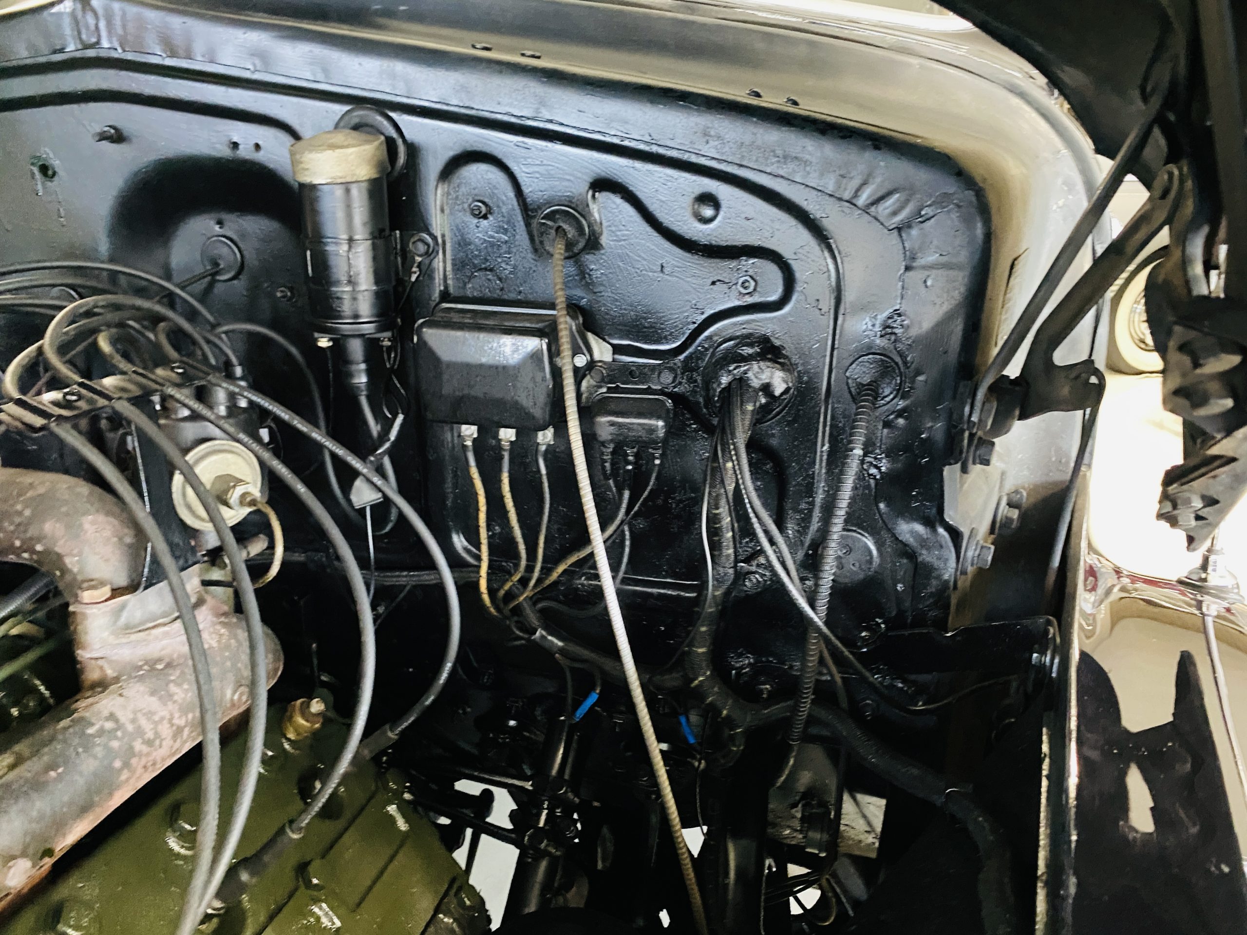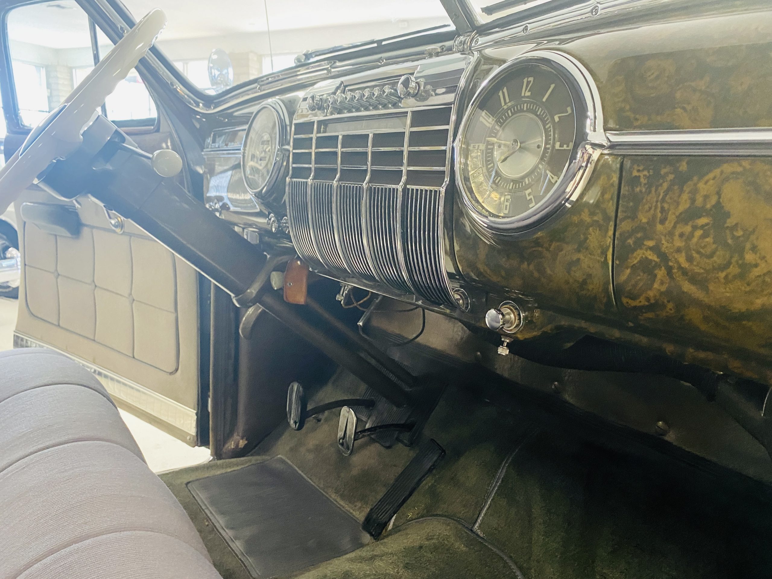 The interior is also largely refinished in correct gray wool broadcloth and carpeting. It shows only normal usage from touring with no holes or other major issues. It really conveys originality and patina from use. We love all the gorgeous wood and numerous compartments for storage. This Fleetwood body is the ultimate in luxury.