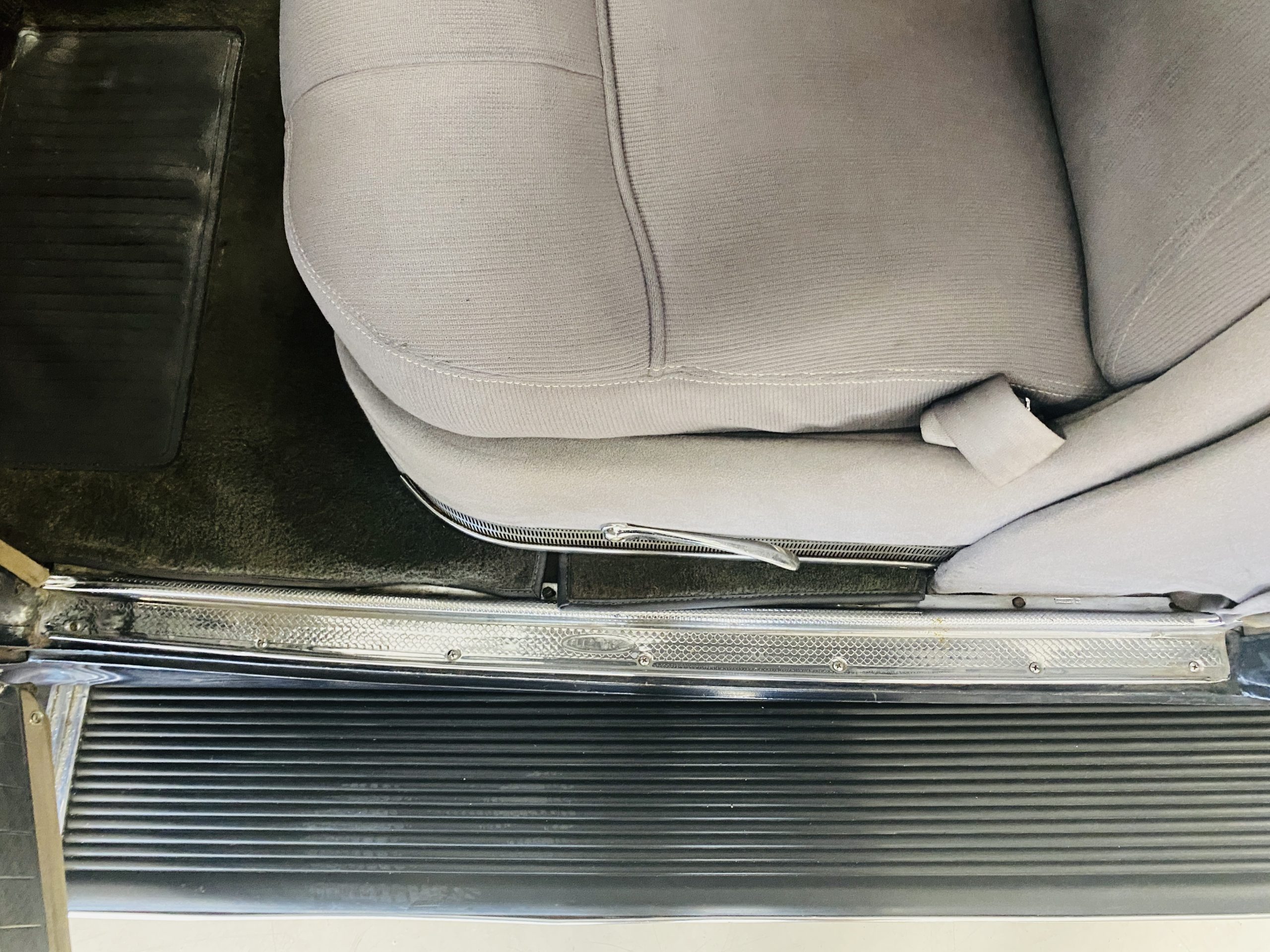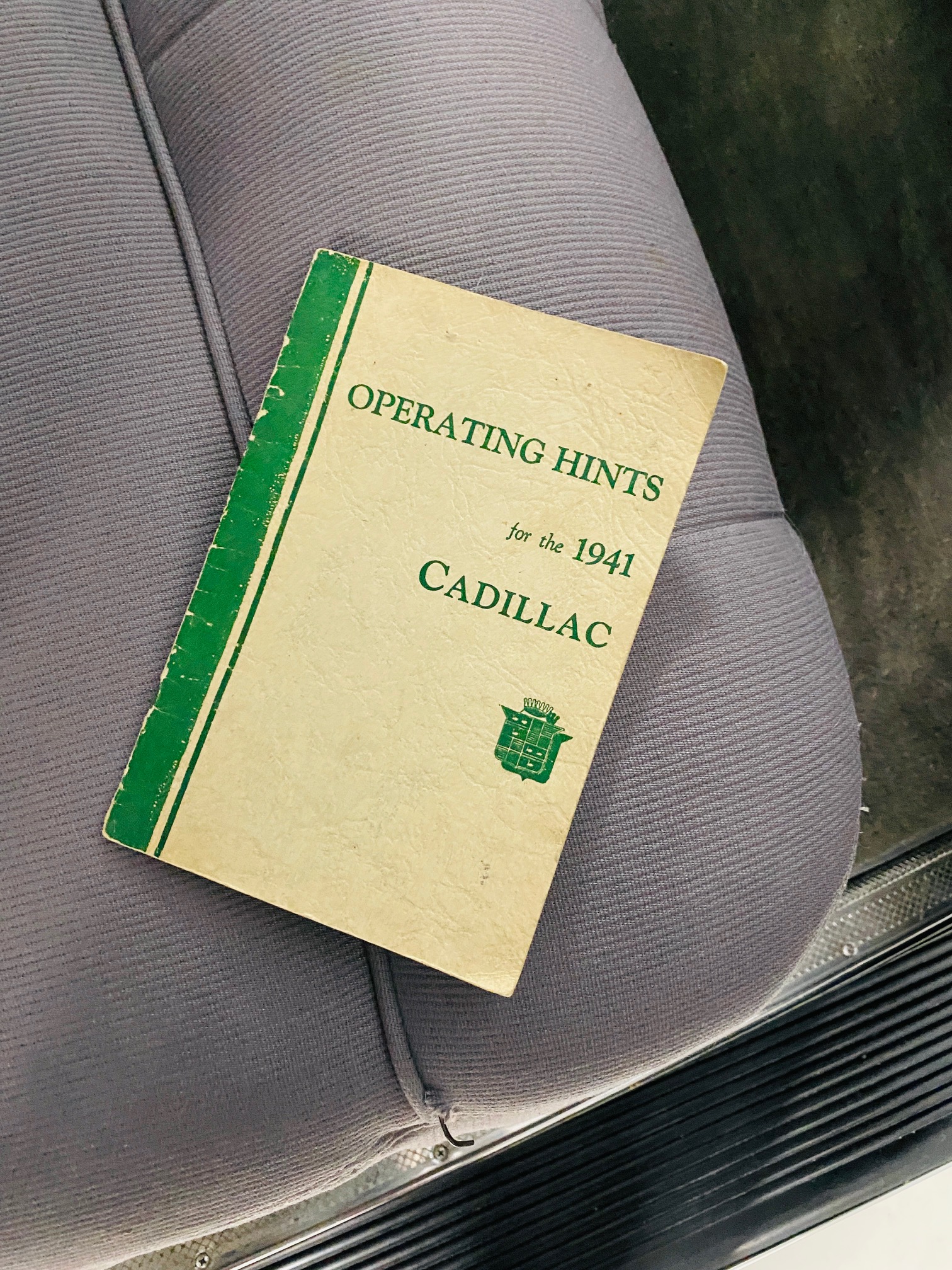 The venerable 346 CID provides 150 bhp and is whisper quiet. You can hear in the driving and startup videos just how exceptional the engine sounds, and the temperature and oil pressure gauges tell the rest of the story, that this engine is in great condition. The engine compartment is fairly well detailed. The porcelain for the exhaust manifold is original and shows its age. The three-speed manual transmission shifts smoothly and the brakes feel very assured. There are 36 years’ worth of service records which show that nearly all aspects of the Cadillac’s drivetrain and suspension has been tended to over the years. The owner’s manual, service records and history file are included in the sale of the motorcar.