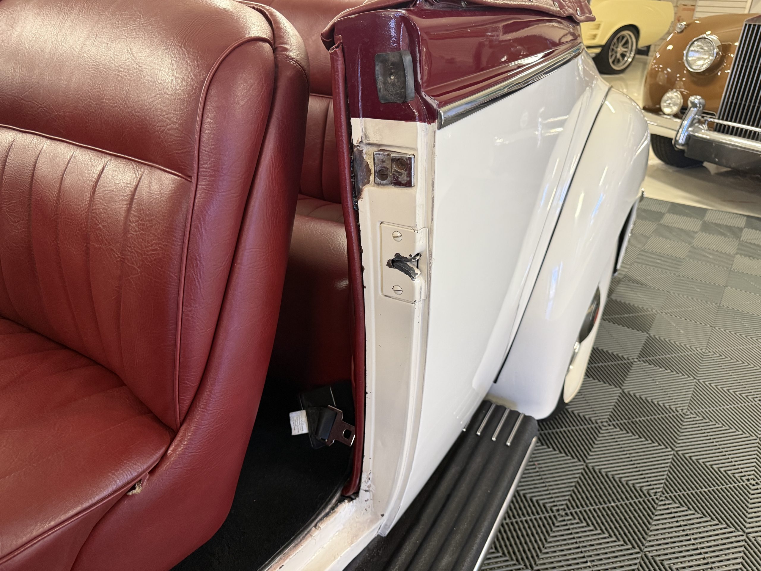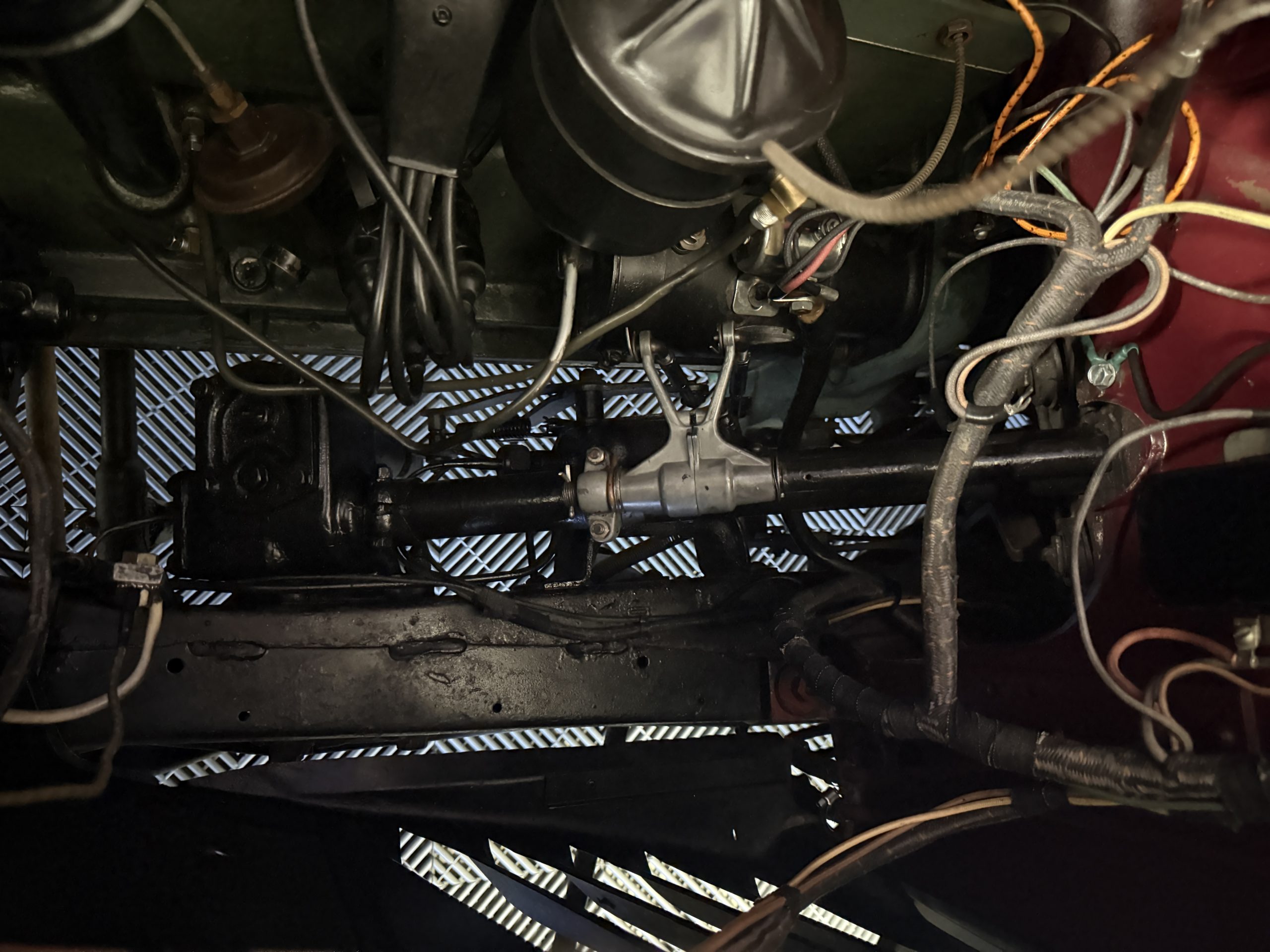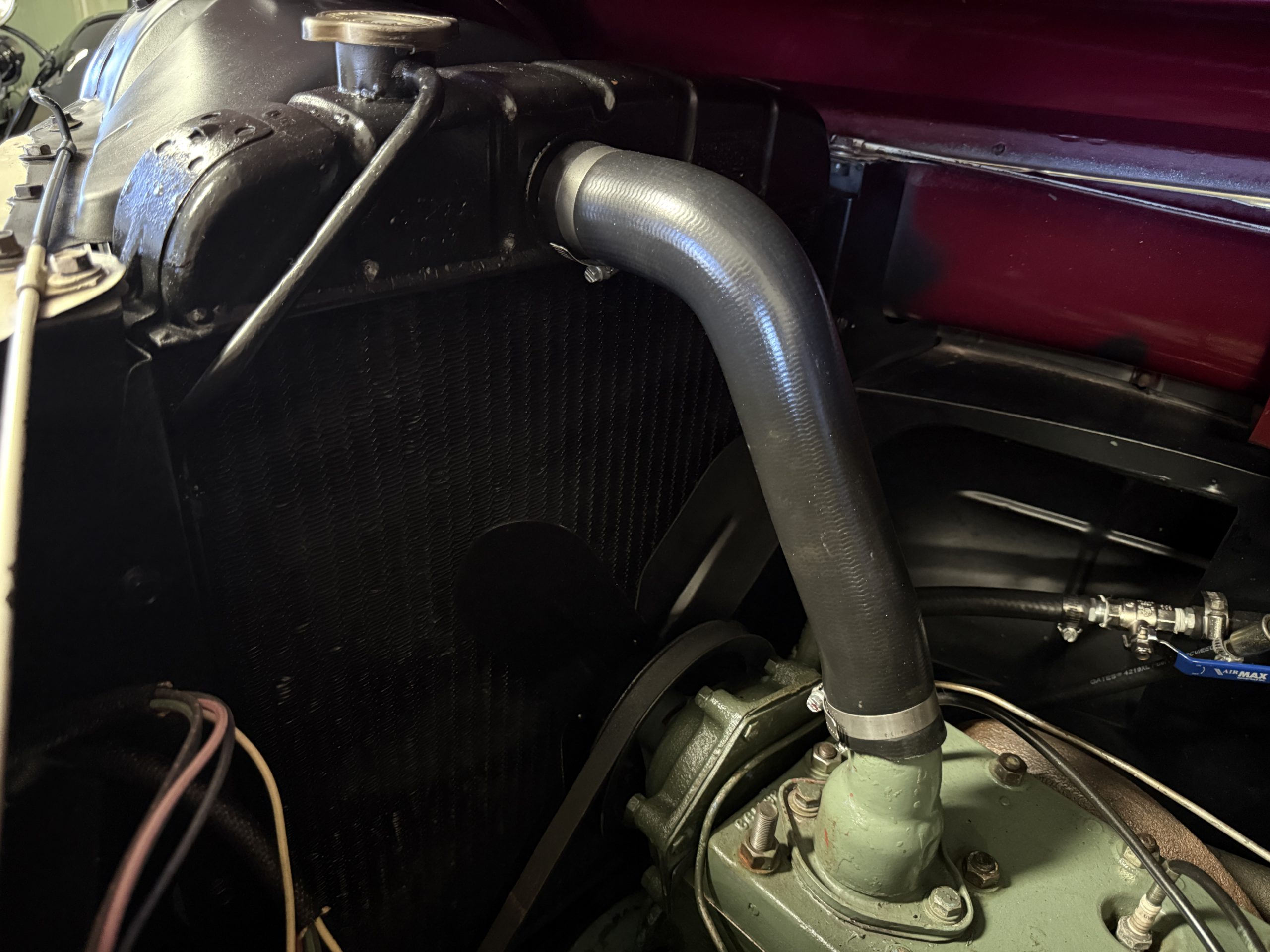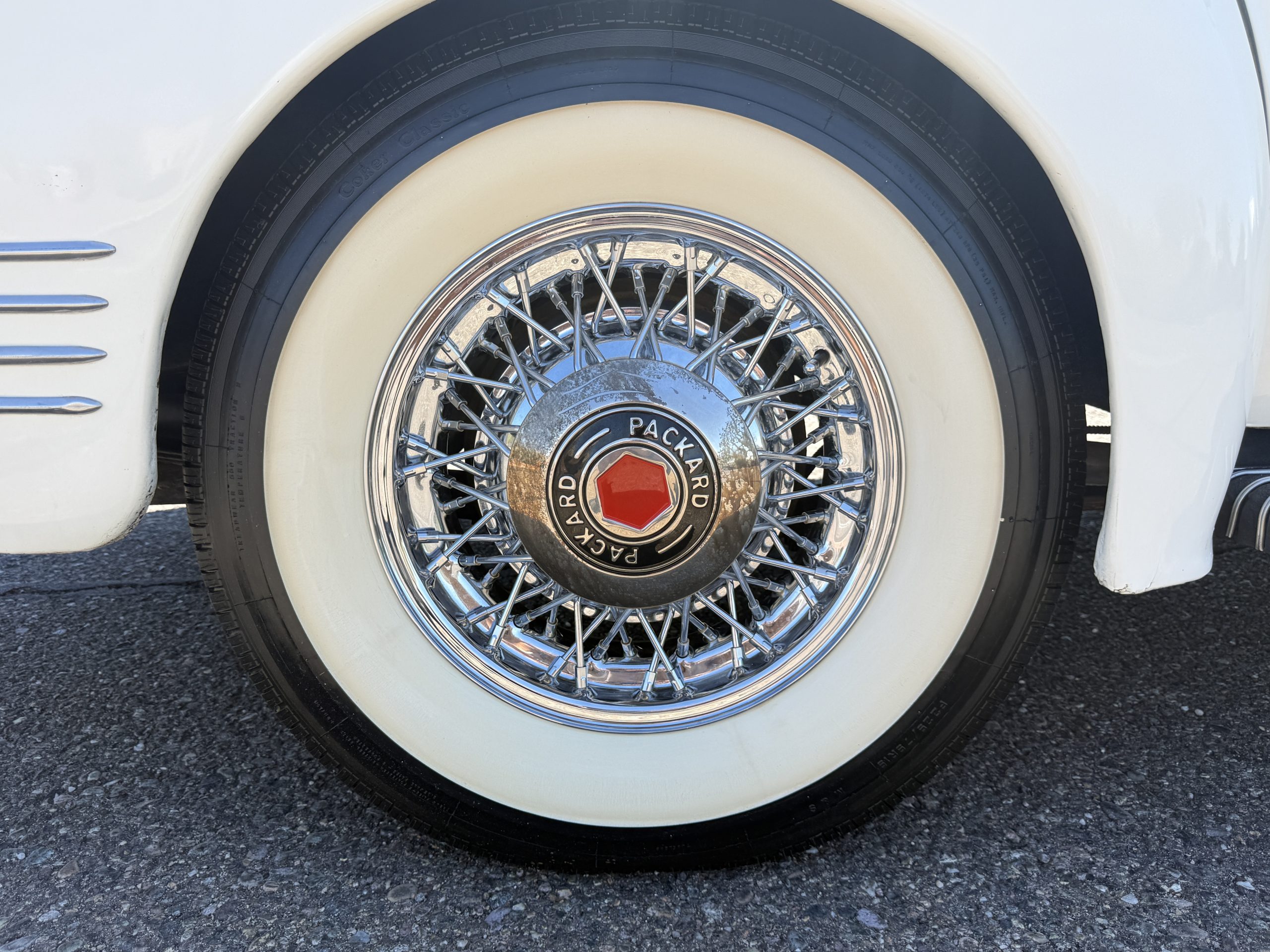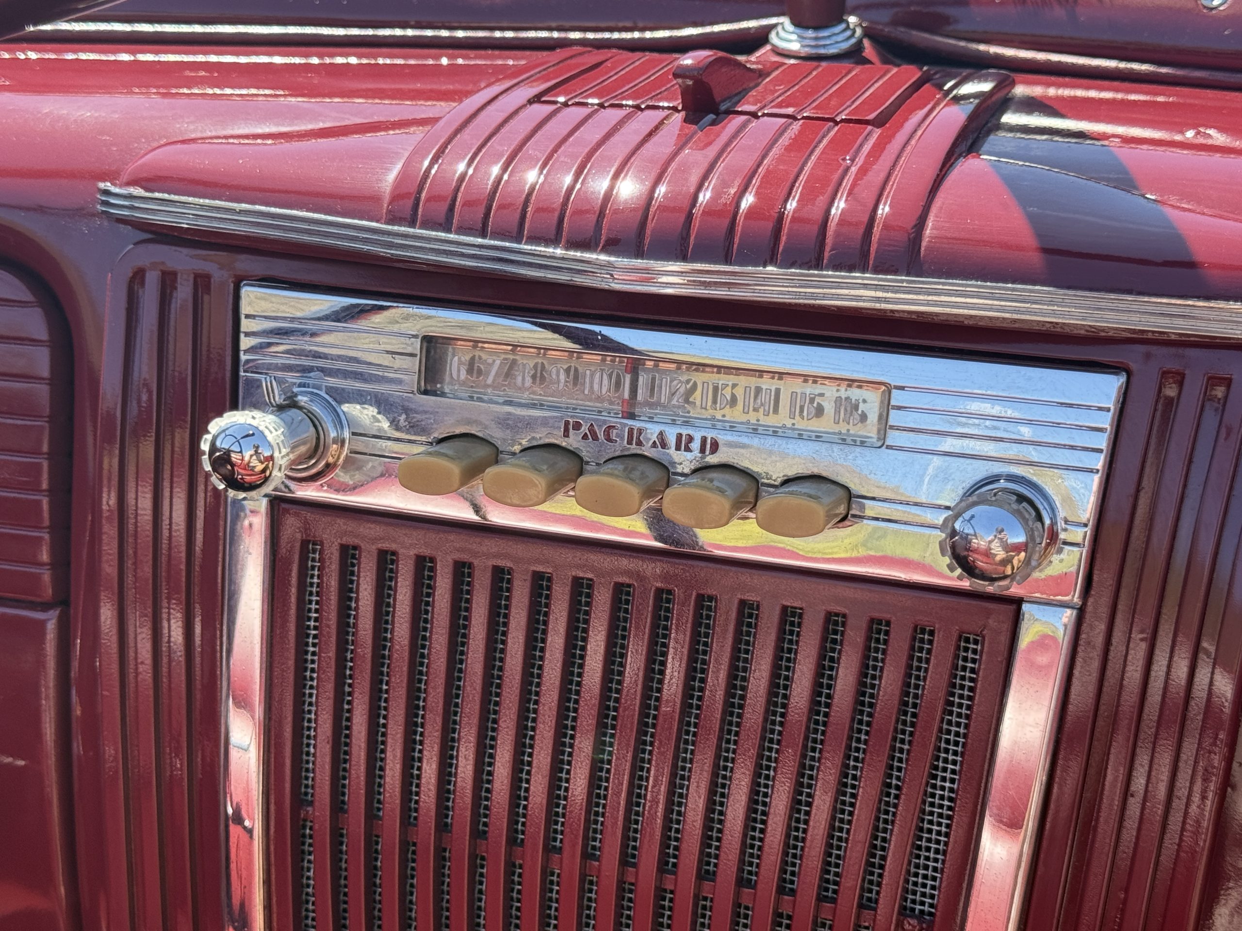 The Packard retains its original 245ci inline-six engine with a downdraft carburetor and paired to a three-speed column-shift manual transmission with overdrive. The 6V battery is mounted under the driver’s seat (dated 6/22), and a battery cutoff is next to the driver’s seat. The Packard has drum brakes. From 2019 to present, the Packard has received extensive work across multiple systems totaling over $44,000 in documented parts and service. The drivetrain and overdrive system saw significant attention, including replacement and servicing of the overdrive solenoid, relay, lockout switch, transmission components, U-joints, and driveshaft work. The brake system was addressed with new brake shoes, springs, and wheel cylinders, along with additional brake-related service. The electrical system was substantially updated with a new wiring harness, rebuilt radio, ignition switch, and various electrical components. The fuel system includes work on the fuel pump, gas tank, sending unit, and fuel gauge repairs. The cooling and general mechanical systems include routine servicing. Interior and accessory-related work includes repairs to switches, interior handles, and dash components. Lastly, cosmetic and trim work included grille installation, chrome work, and minor paint-related items.. The Packard presents as a mechanically complete example with documented recent investment and functional systems.