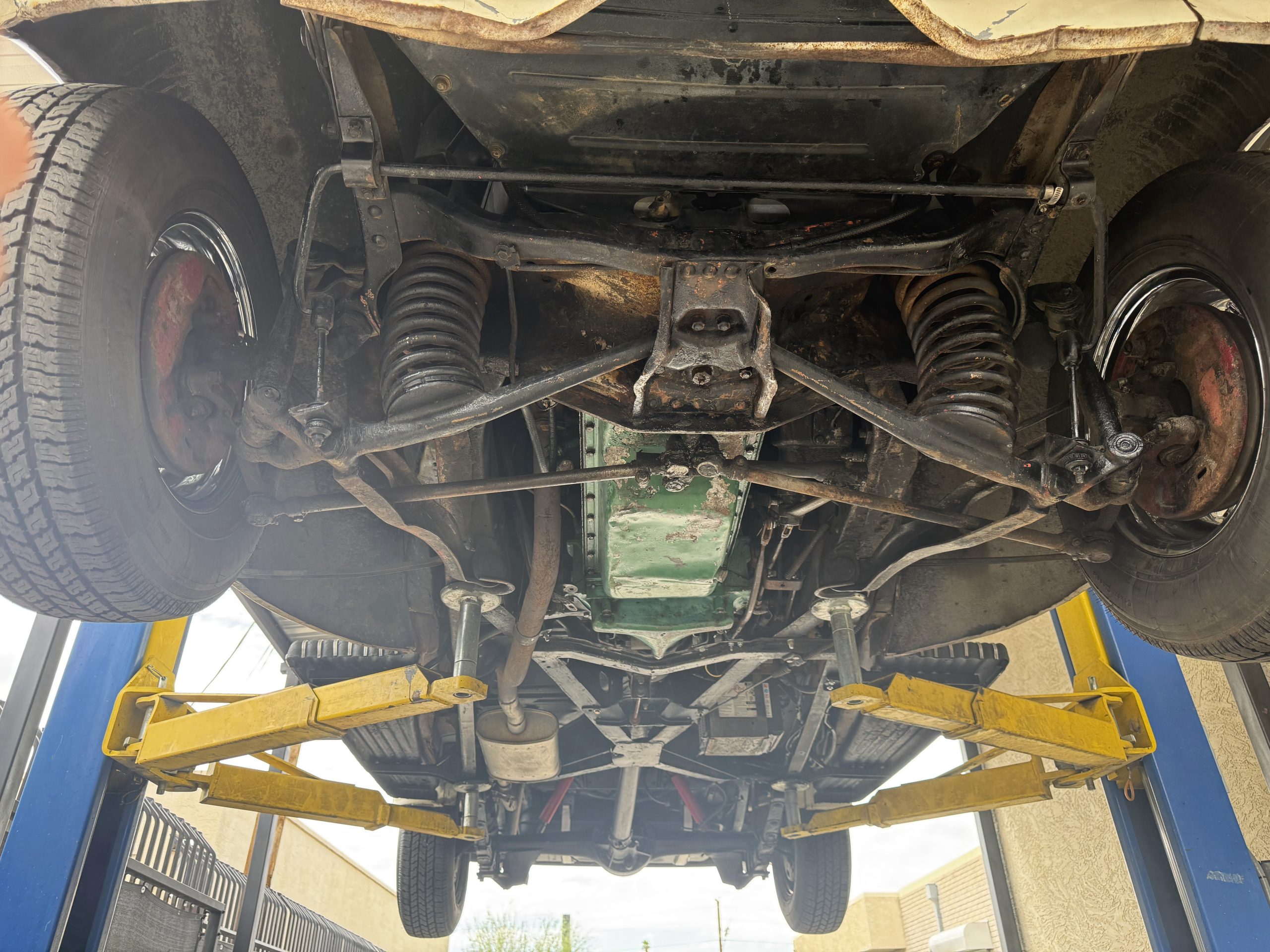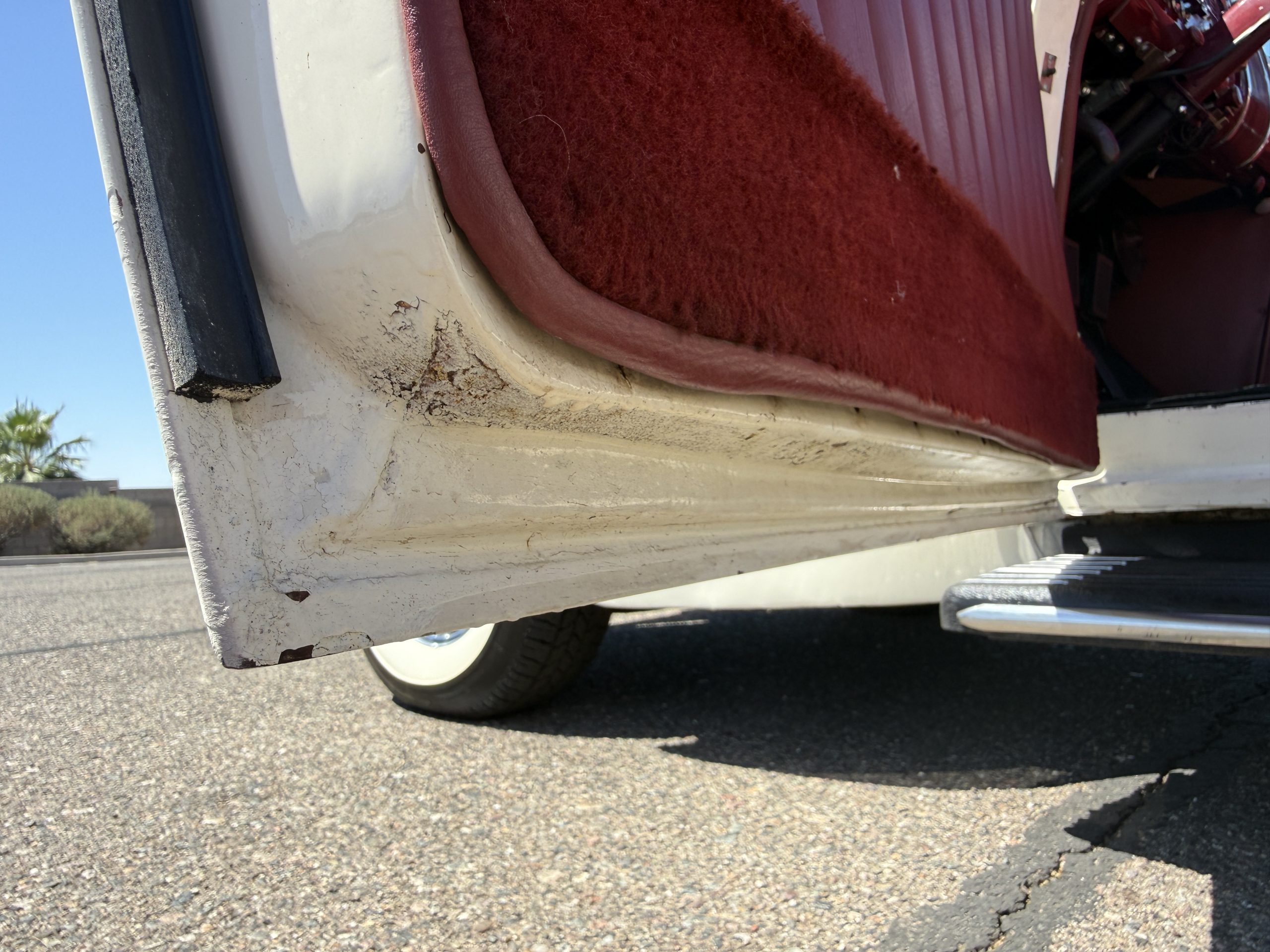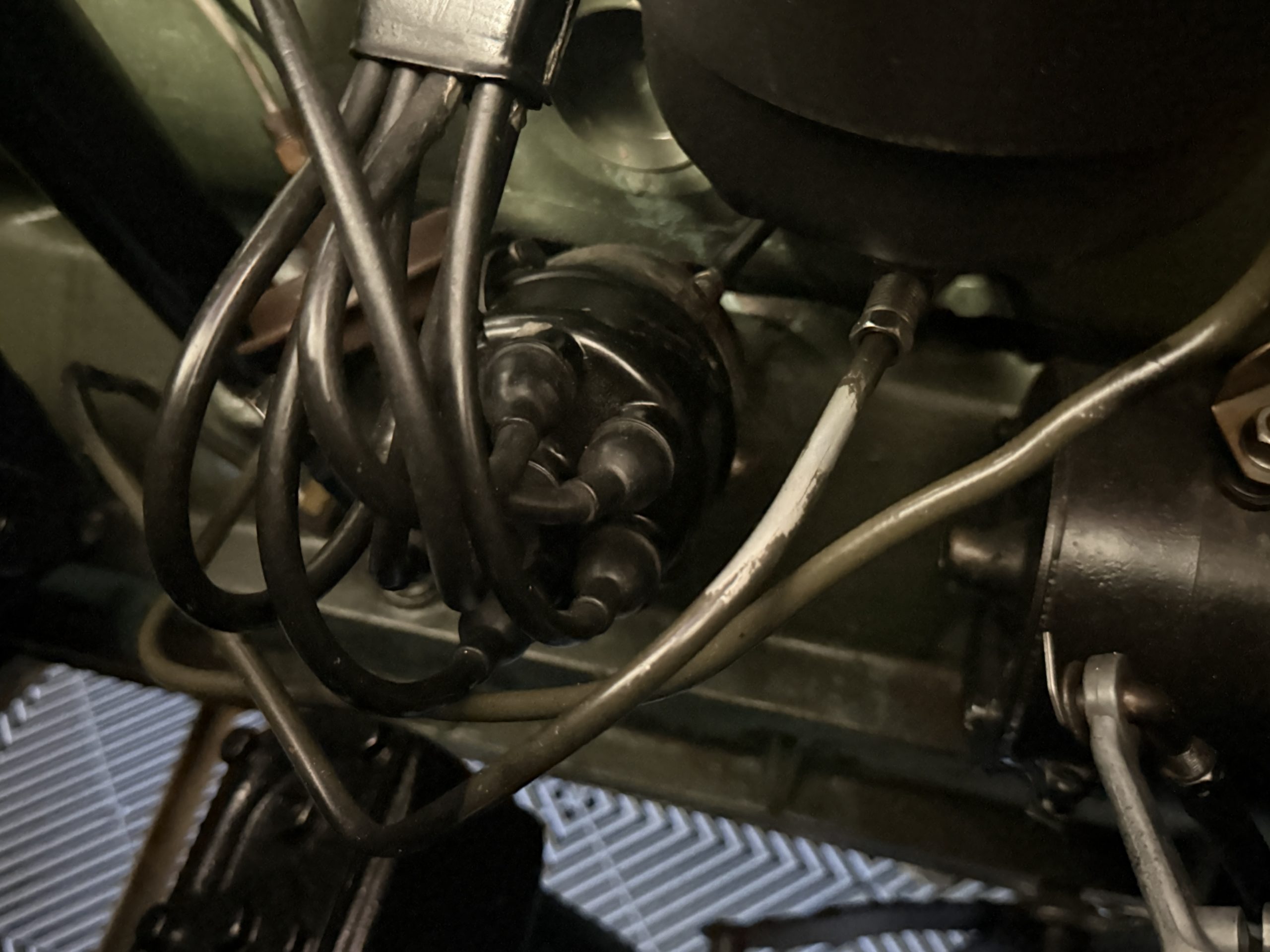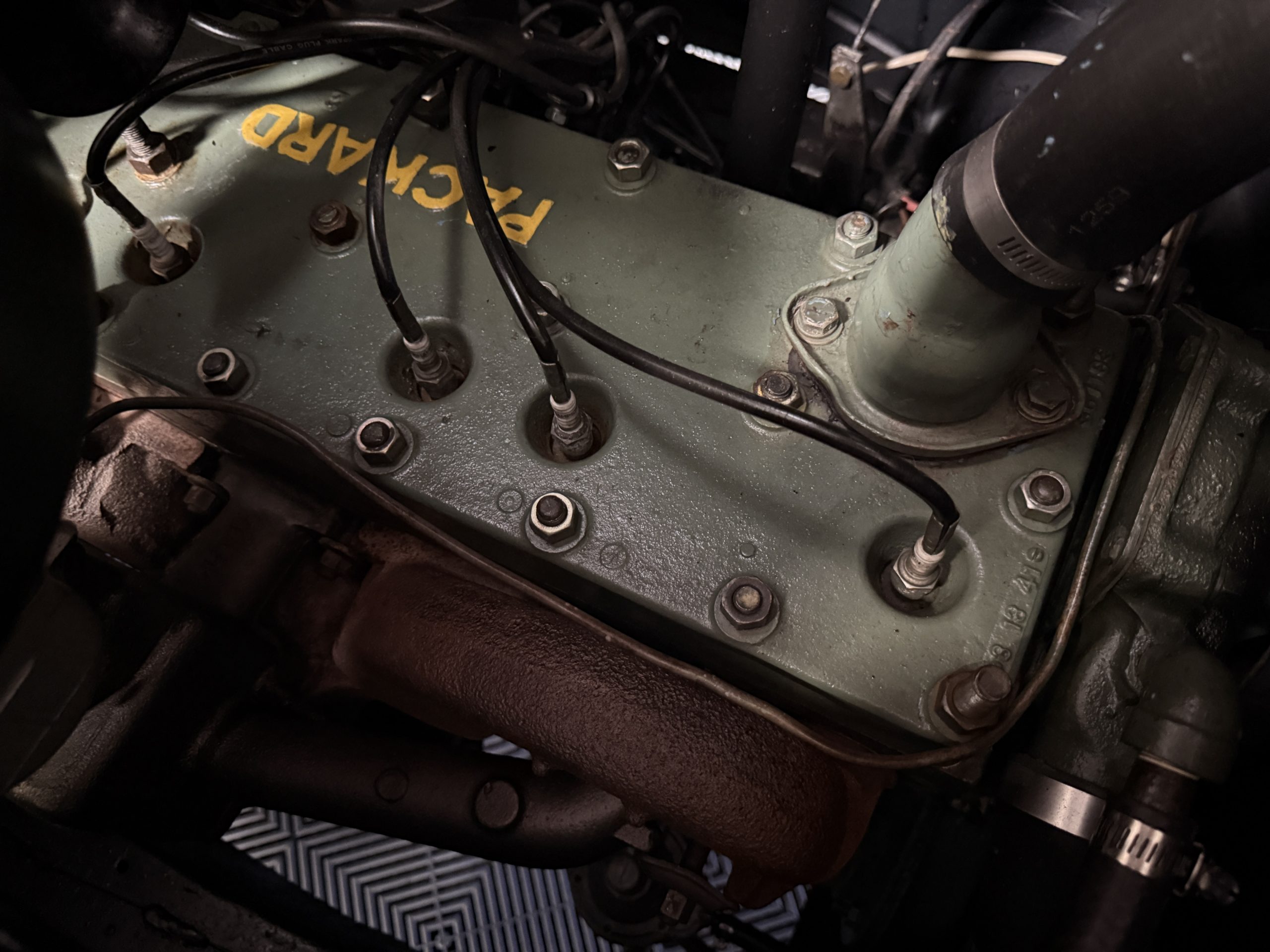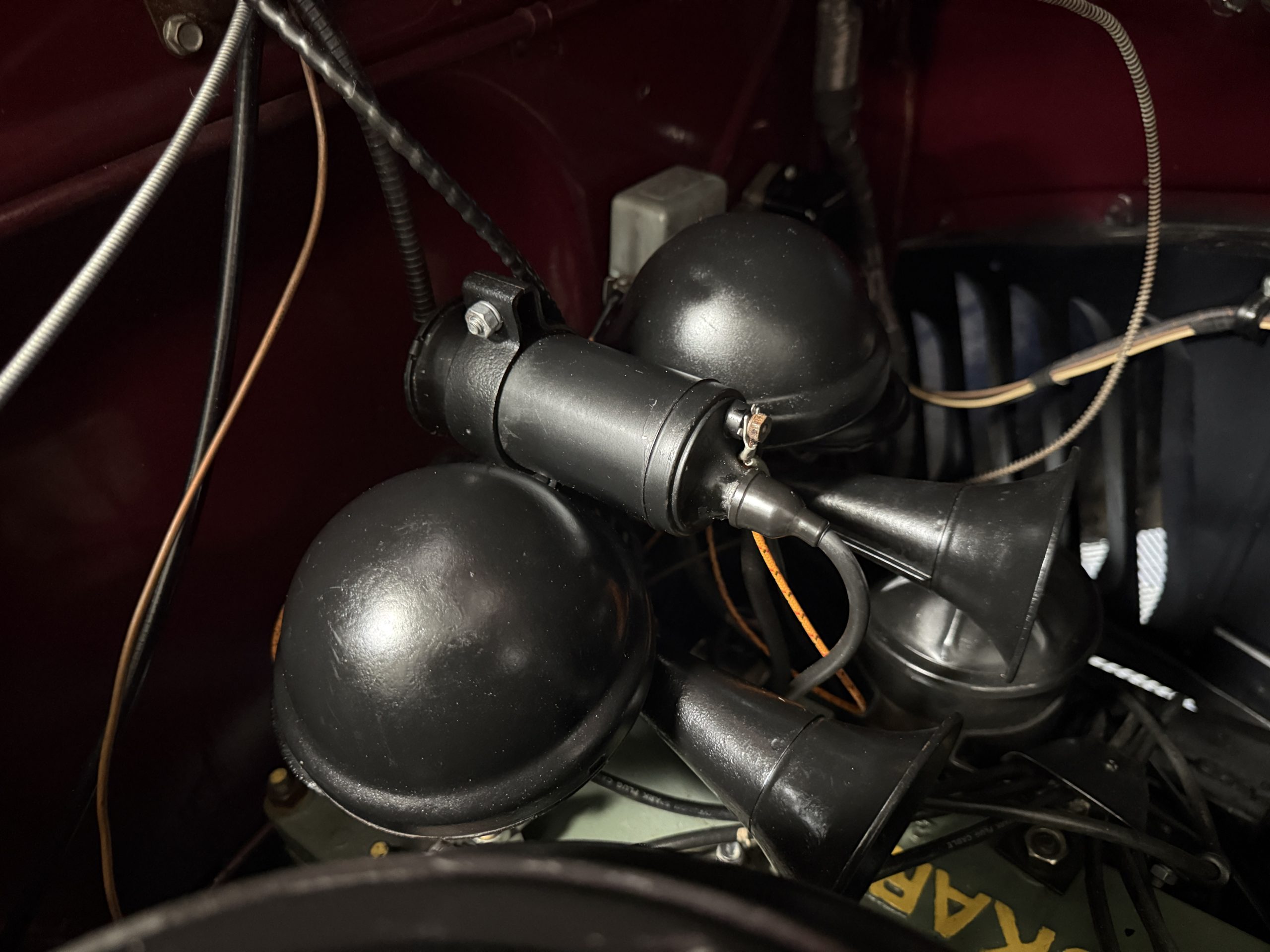 The Packard retains its original 245ci inline-six engine with a downdraft carburetor and paired to a three-speed column-shift manual transmission with overdrive. The 6V battery is mounted under the driver’s seat (dated 6/22), and a battery cutoff is next to the driver’s seat. The Packard has drum brakes. From 2019 to present, the Packard has received extensive work across multiple systems totaling over $44,000 in documented parts and service. The drivetrain and overdrive system saw significant attention, including replacement and servicing of the overdrive solenoid, relay, lockout switch, transmission components, U-joints, and driveshaft work. The brake system was addressed with new brake shoes, springs, and wheel cylinders, along with additional brake-related service. The electrical system was substantially updated with a new wiring harness, rebuilt radio, ignition switch, and various electrical components. The fuel system includes work on the fuel pump, gas tank, sending unit, and fuel gauge repairs. The cooling and general mechanical systems include routine servicing. Interior and accessory-related work includes repairs to switches, interior handles, and dash components. Lastly, cosmetic and trim work included grille installation, chrome work, and minor paint-related items.. The Packard presents as a mechanically complete example with documented recent investment and functional systems.