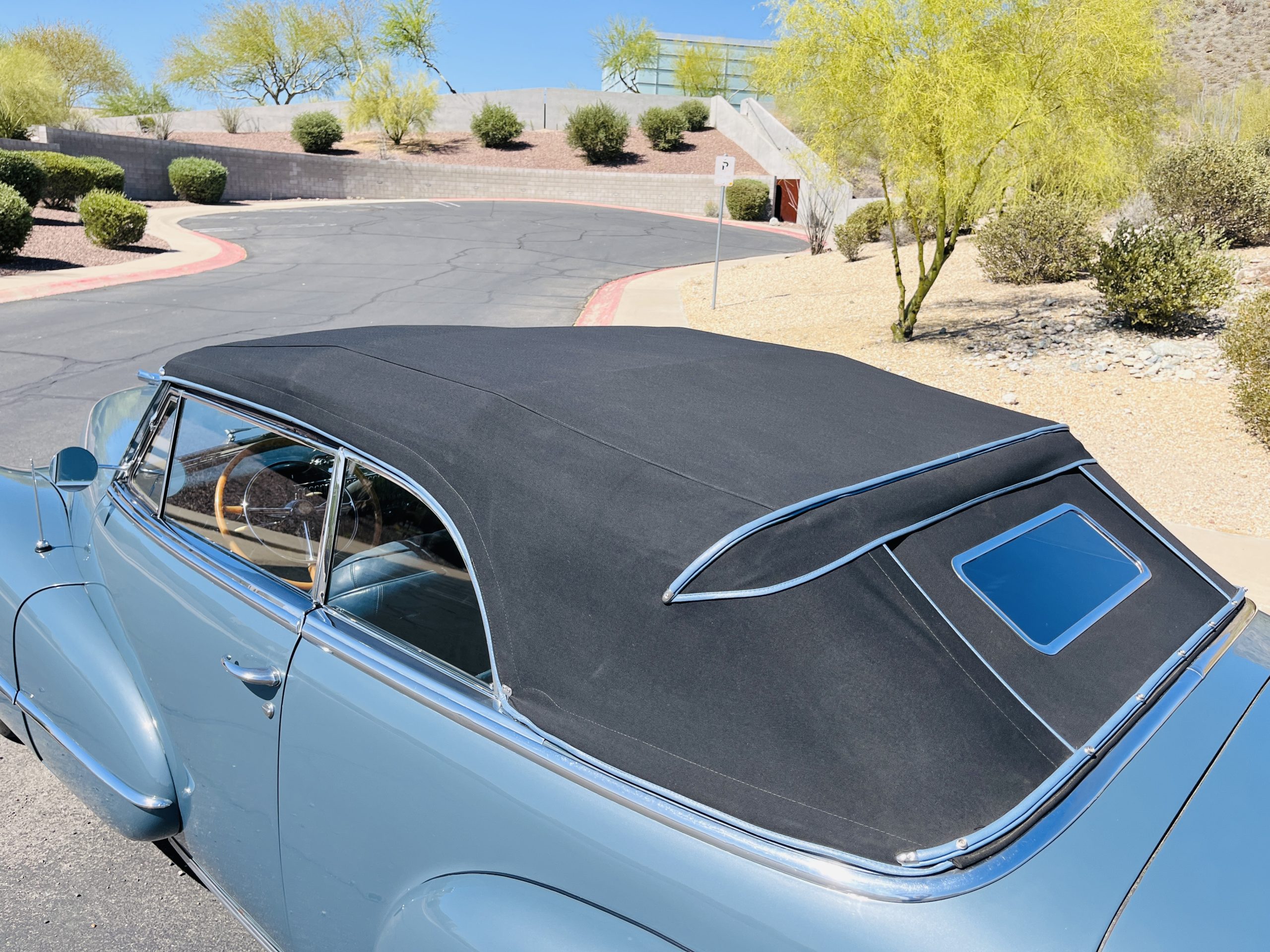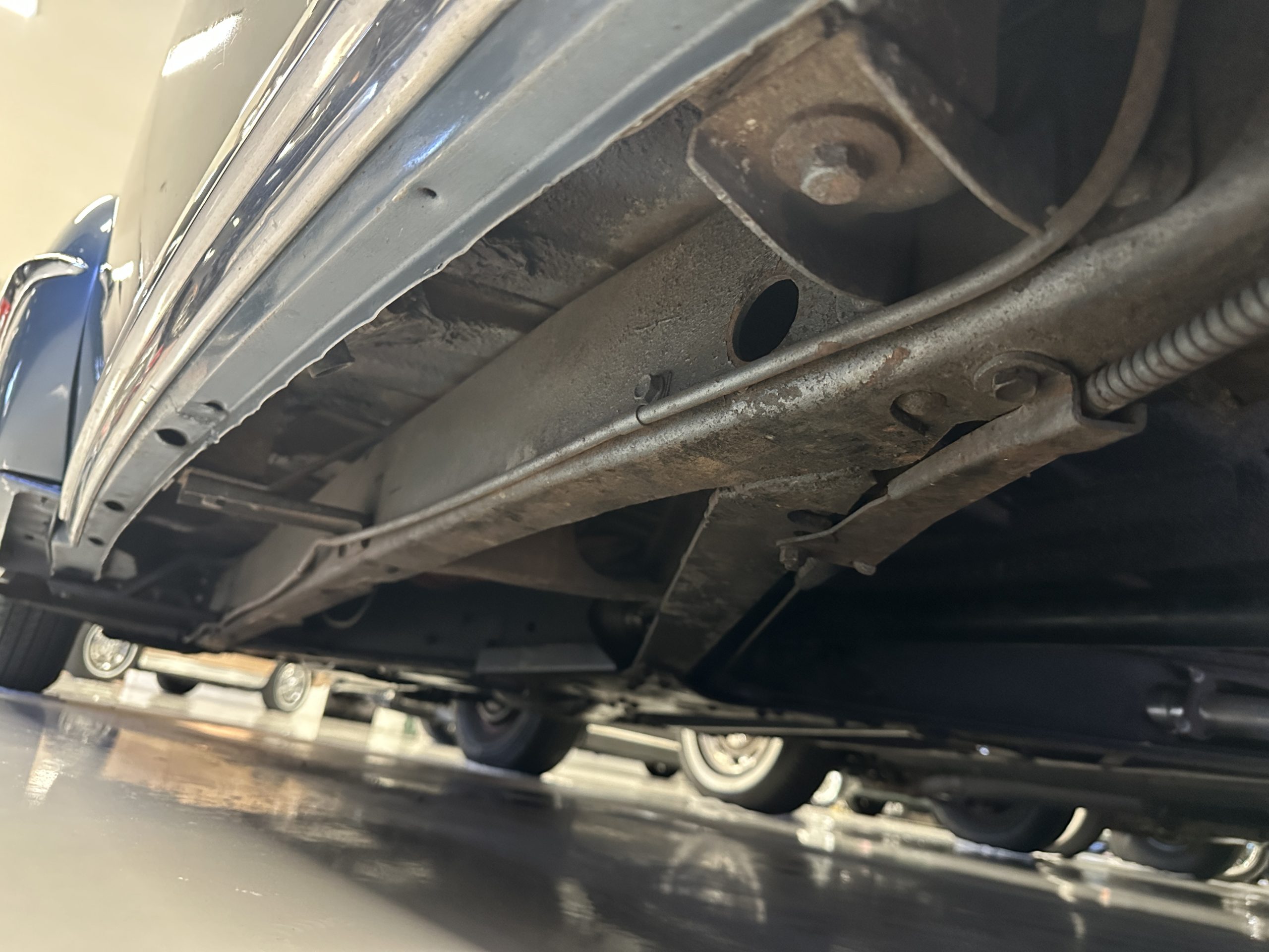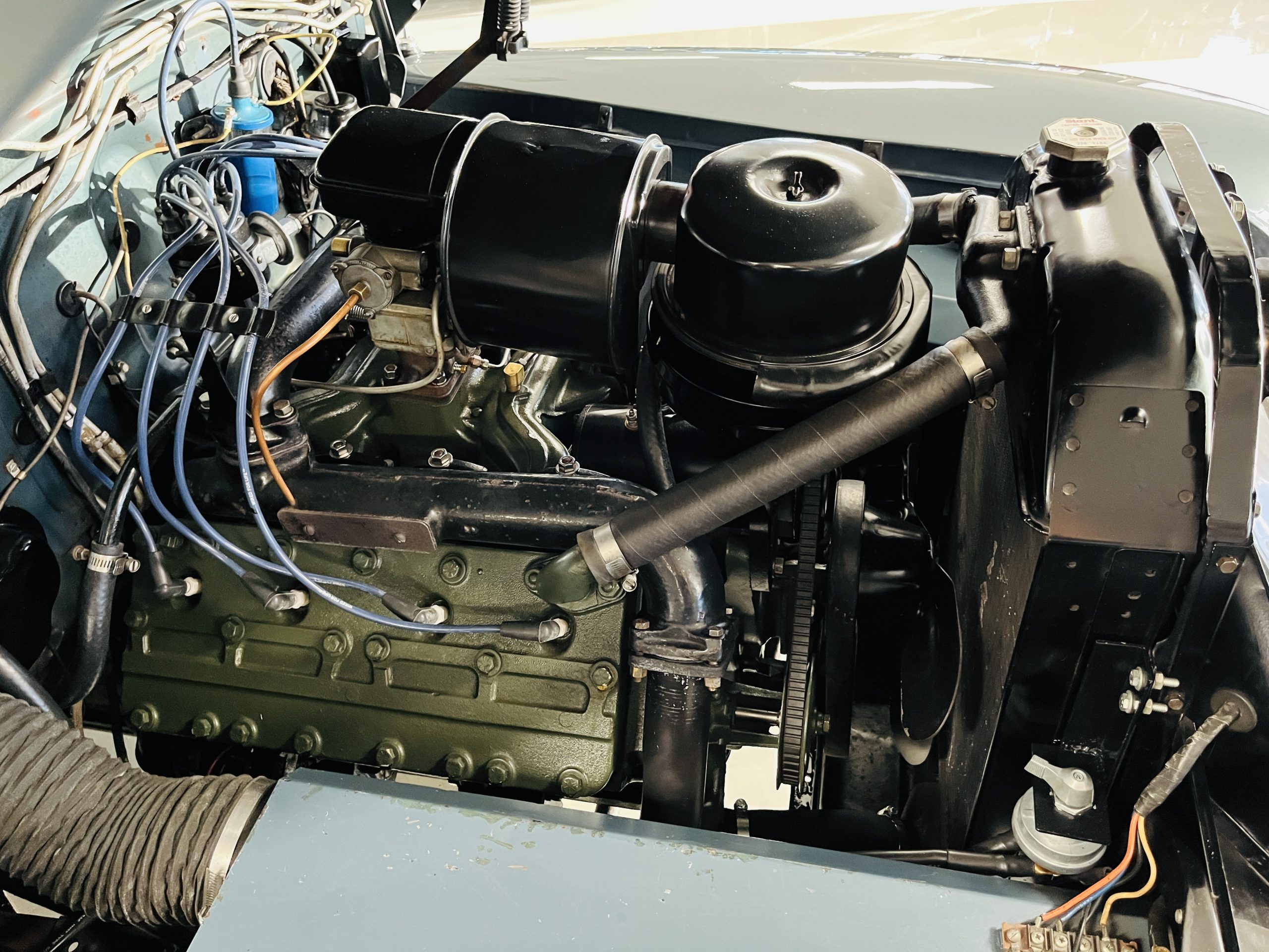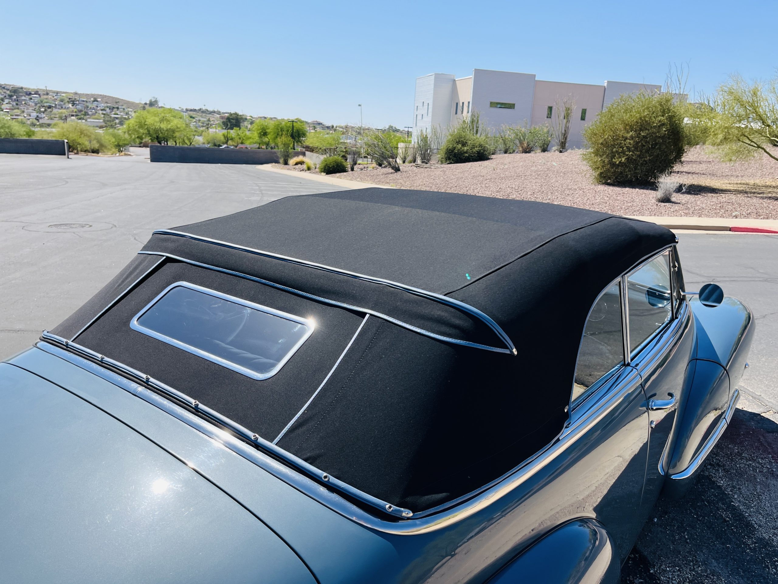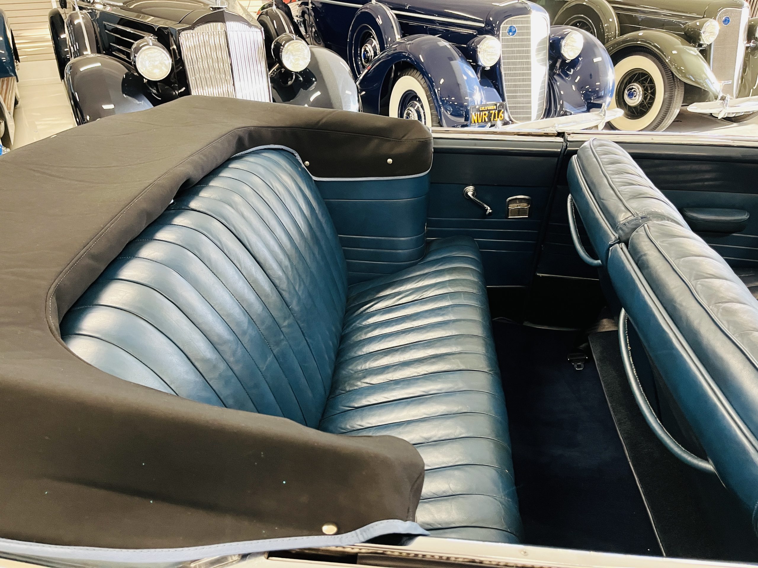 This Series 62 is dressed in its gorgeous original blue leather interior (Trim Code 55B) which is in overall excellent condition. The leather has the expected patina of 76 years but overall is soft and supple today. There are two areas where its seams are split. These can be repaired but are minor overall. The front powered seat makes for ease of adjusting and it’s very comfortable to ride in. This Series 62 comes well equipped with power antenna, power windows, and the power-operated front seat. The dash is beautiful with its chrome accents, push button radio, and clock. The blue carpet is in great shape and appears to have been recently replaced. The steering wheel, dash, and upholstery are all original and in beautiful condition. The gauges are all working.