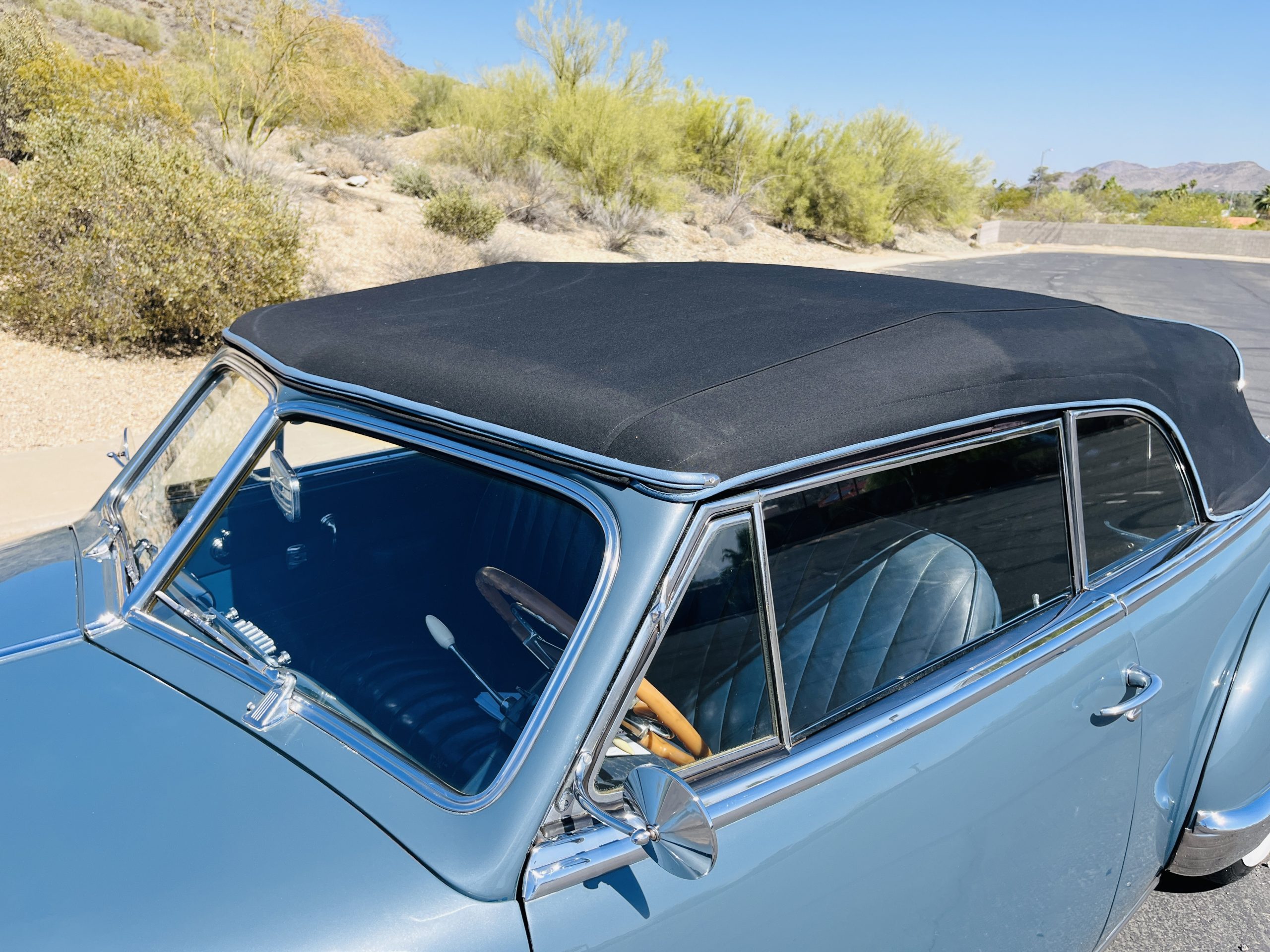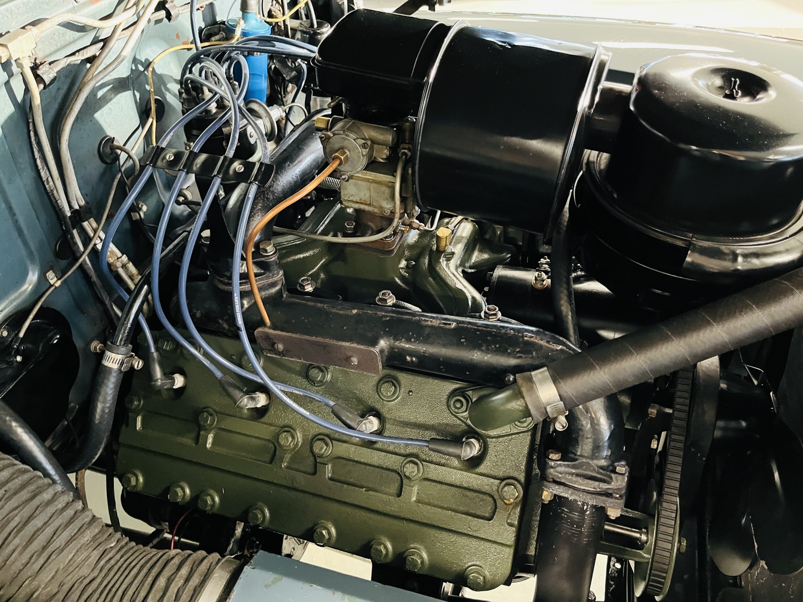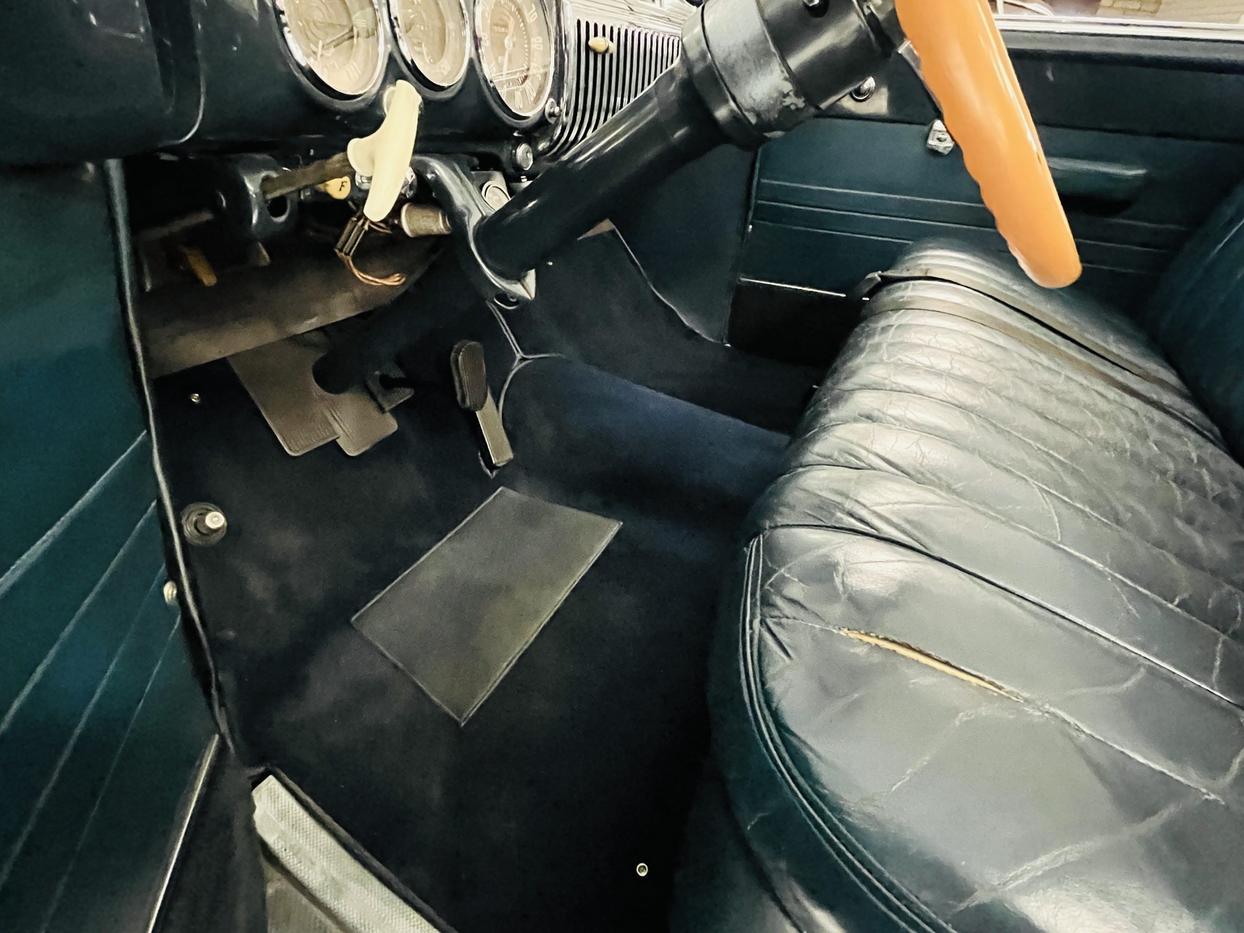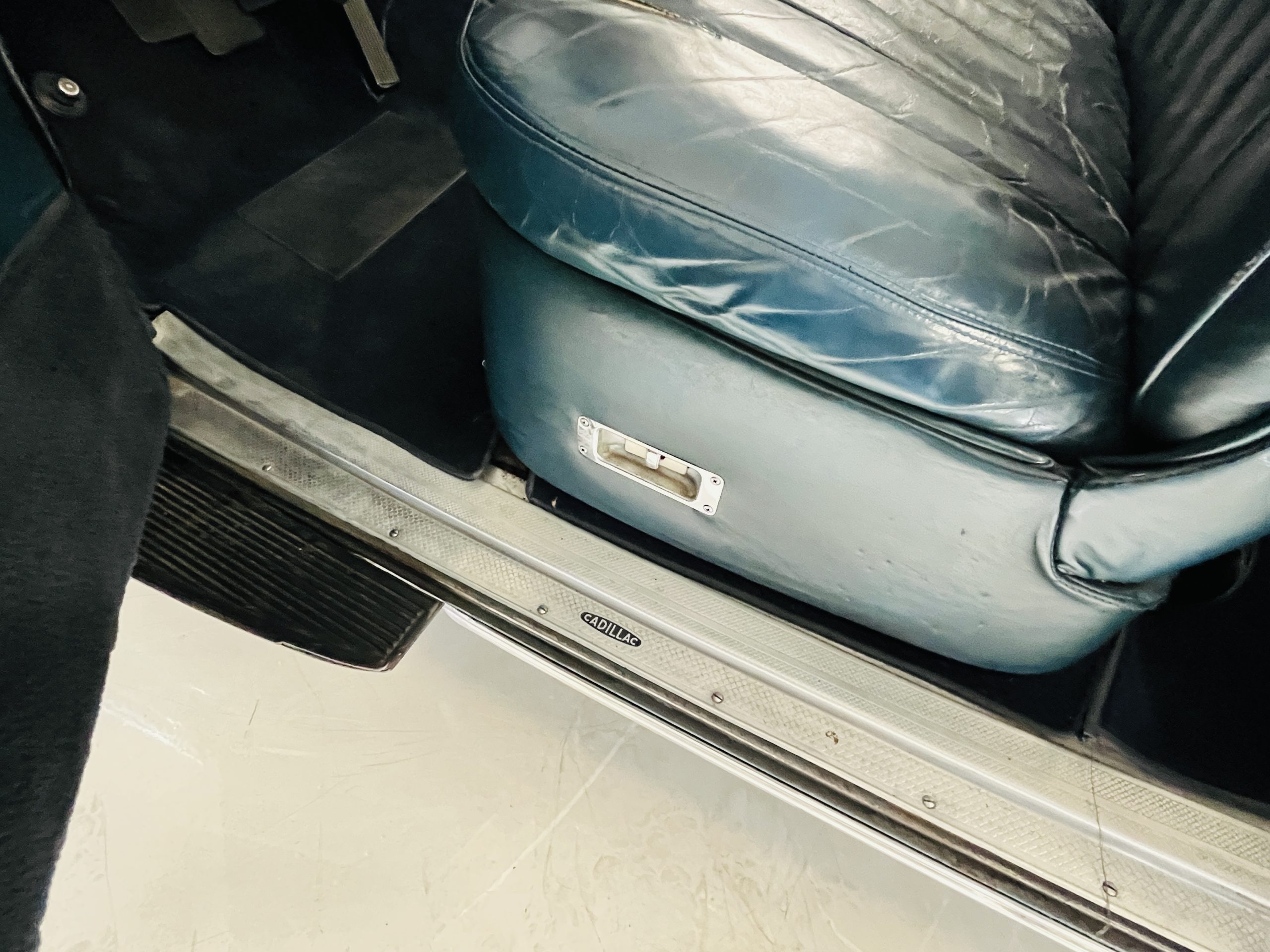 This Series 62 is dressed in its gorgeous original blue leather interior (Trim Code 55B) which is in overall excellent condition. The leather has the expected patina of 76 years but overall is soft and supple today. There are two areas where its seams are split. These can be repaired but are minor overall. The front powered seat makes for ease of adjusting and it’s very comfortable to ride in. This Series 62 comes well equipped with power antenna, power windows, and the power-operated front seat. The dash is beautiful with its chrome accents, push button radio, and clock. The blue carpet is in great shape and appears to have been recently replaced. The steering wheel, dash, and upholstery are all original and in beautiful condition. The gauges are all working.