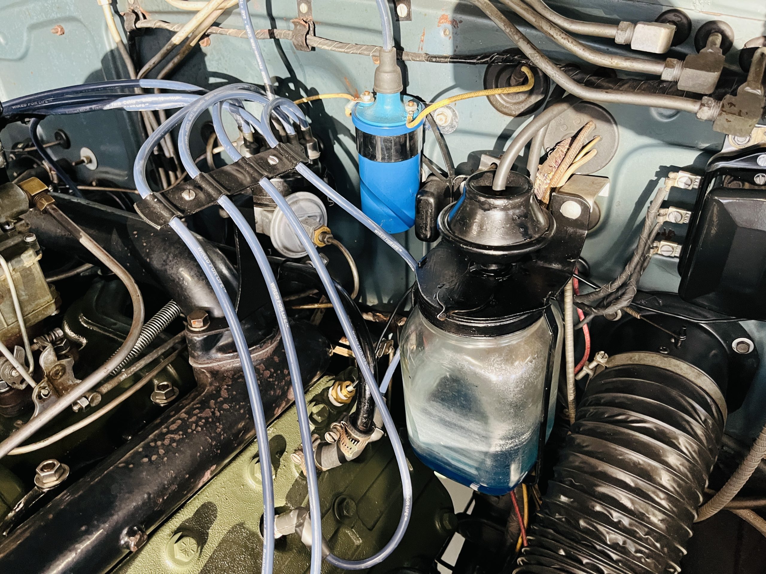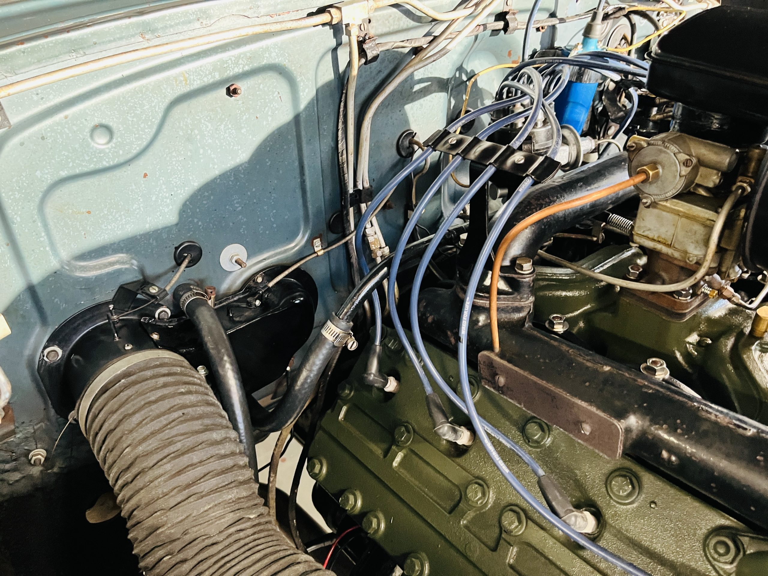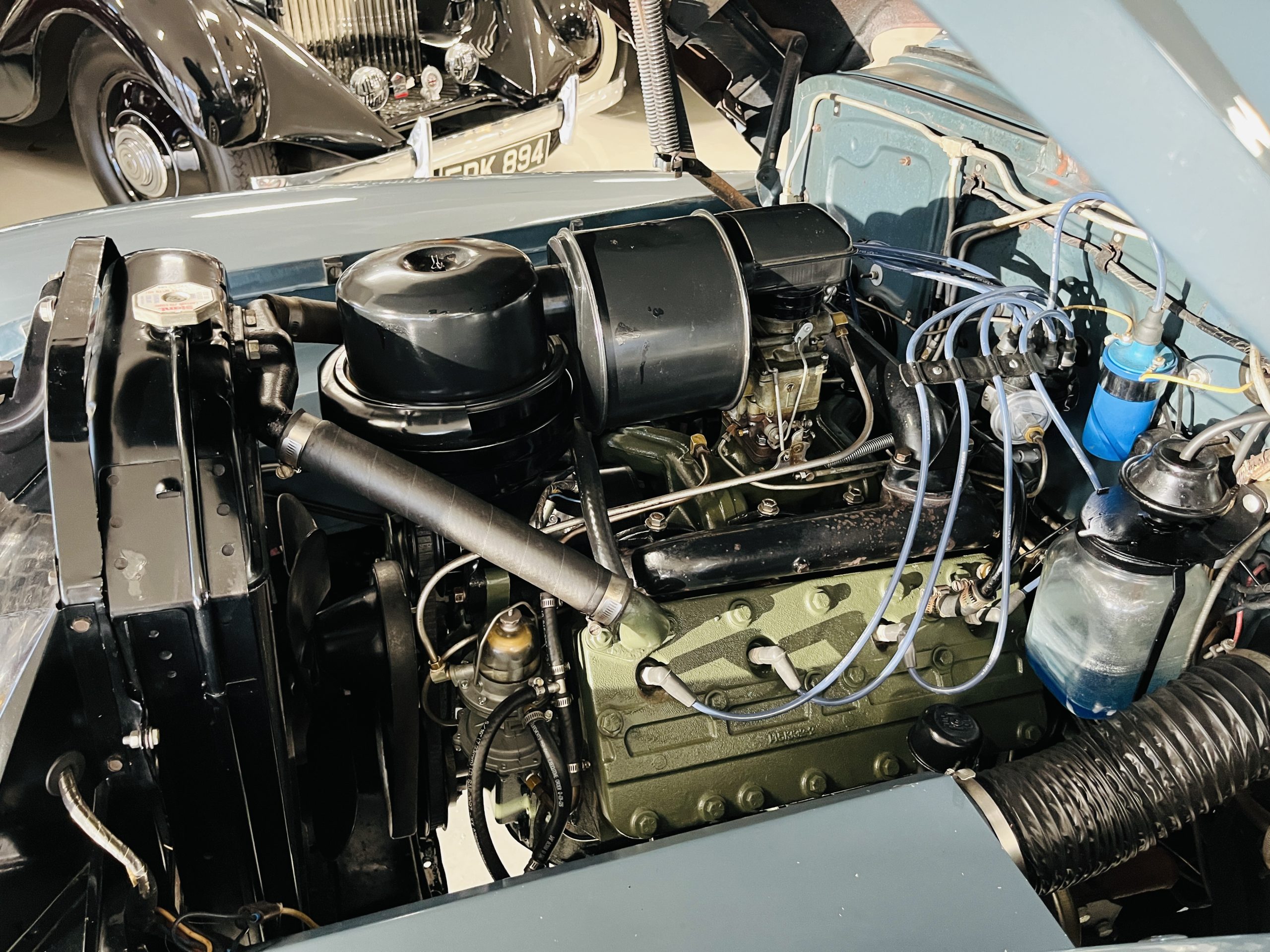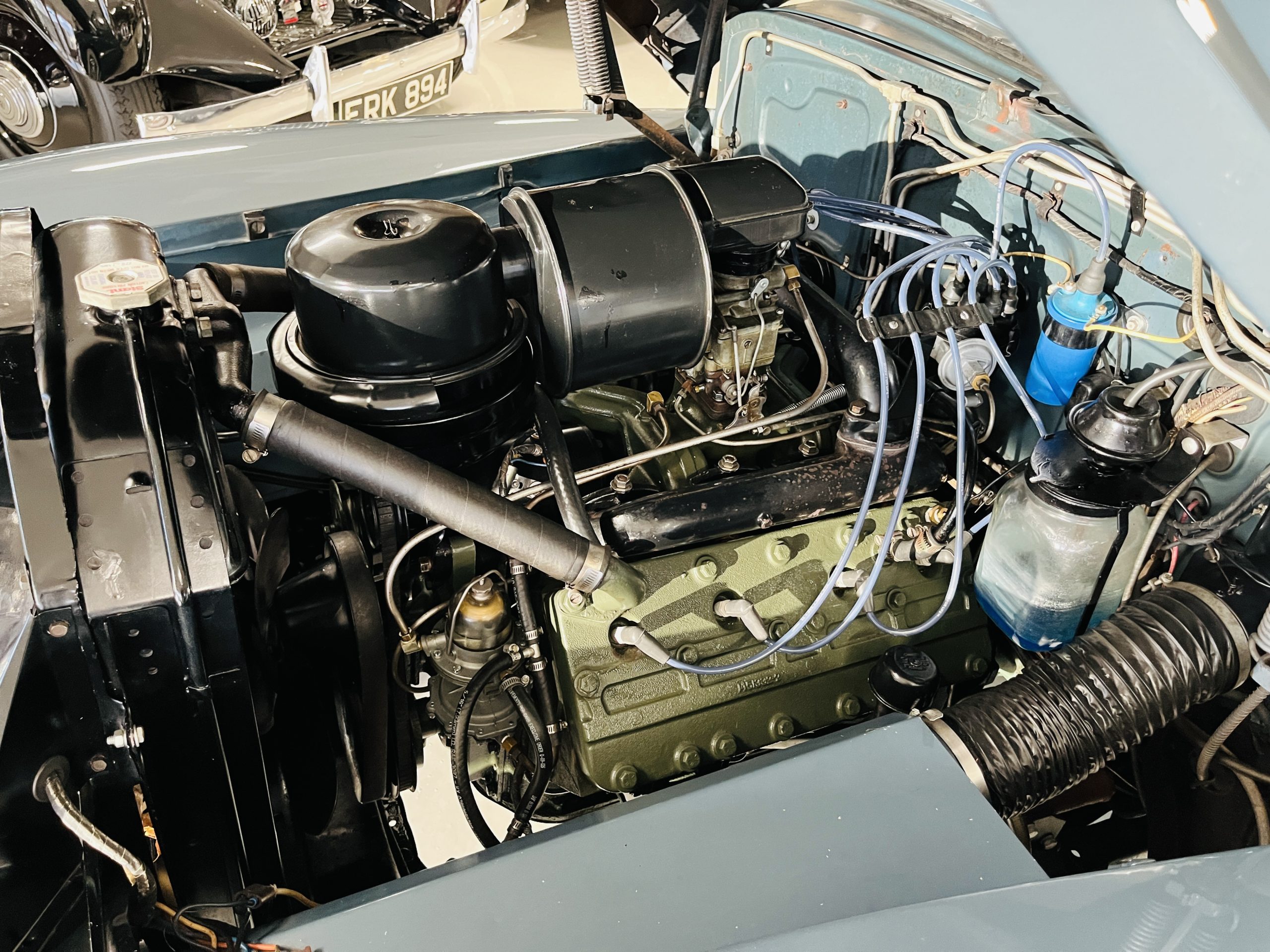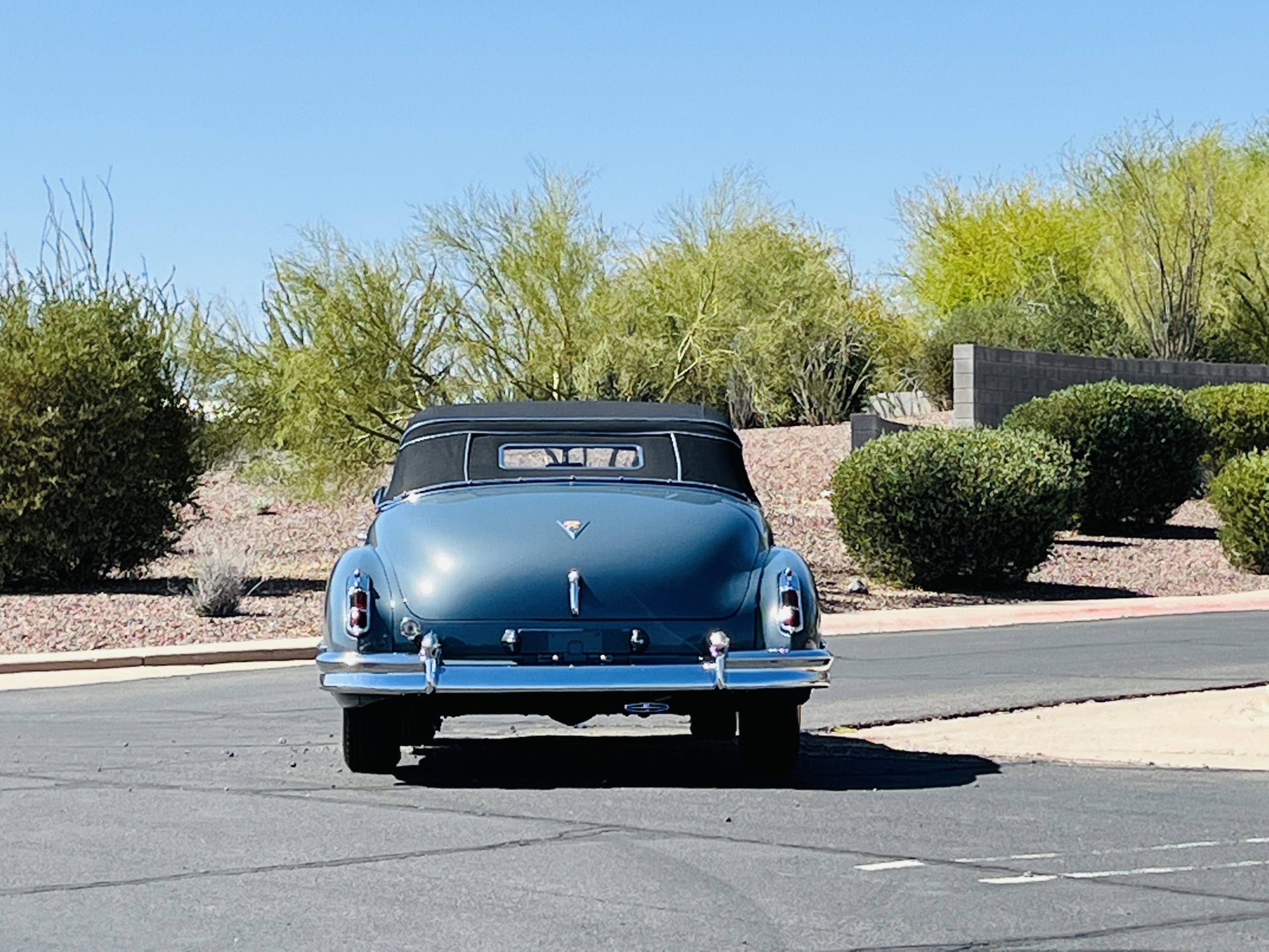 This Series 62 is dressed in its gorgeous original blue leather interior (Trim Code 55B) which is in overall excellent condition. The leather has the expected patina of 76 years but overall is soft and supple today. There are two areas where its seams are split. These can be repaired but are minor overall. The front powered seat makes for ease of adjusting and it’s very comfortable to ride in. This Series 62 comes well equipped with power antenna, power windows, and the power-operated front seat. The dash is beautiful with its chrome accents, push button radio, and clock. The blue carpet is in great shape and appears to have been recently replaced. The steering wheel, dash, and upholstery are all original and in beautiful condition. The gauges are all working.