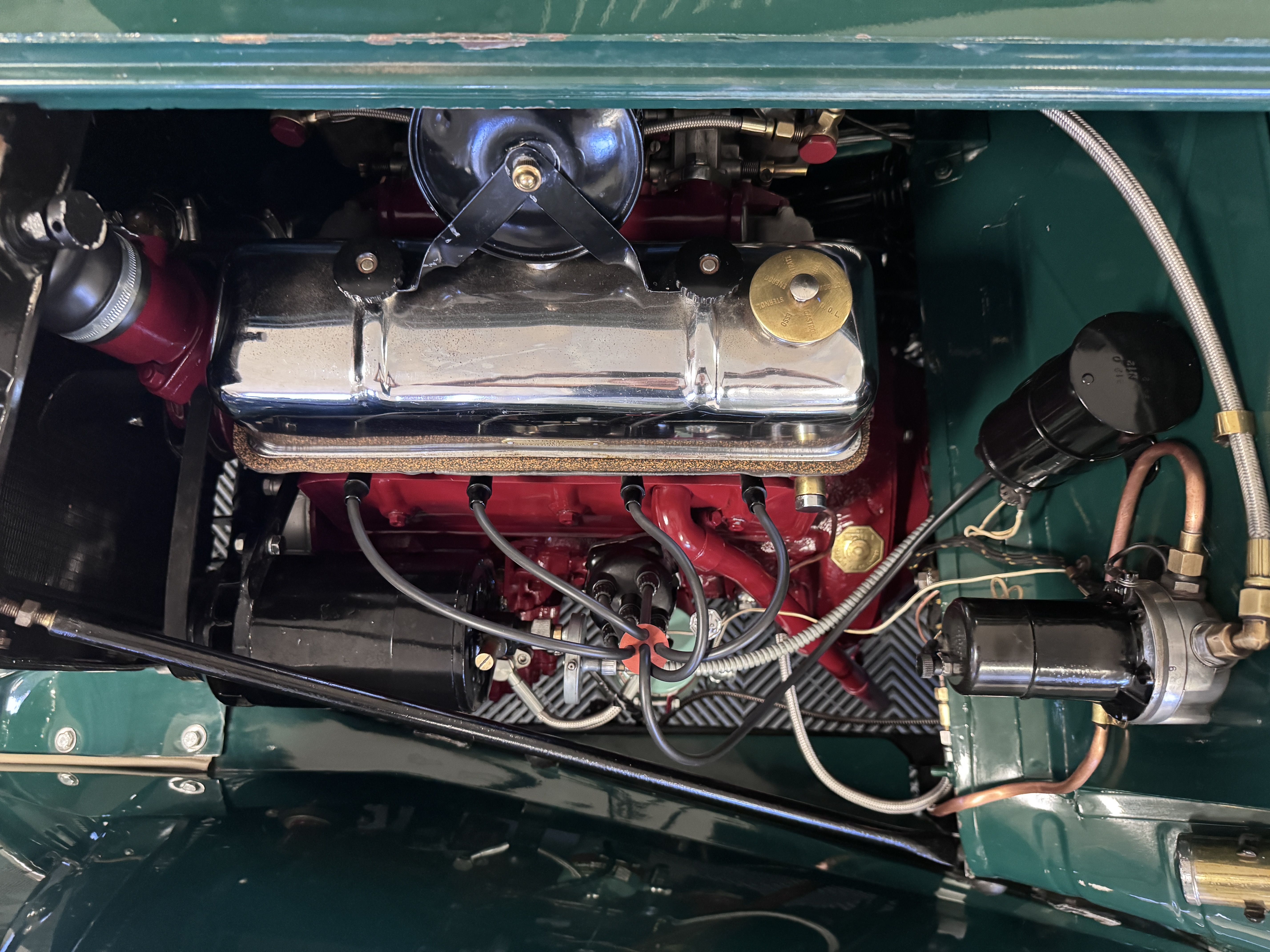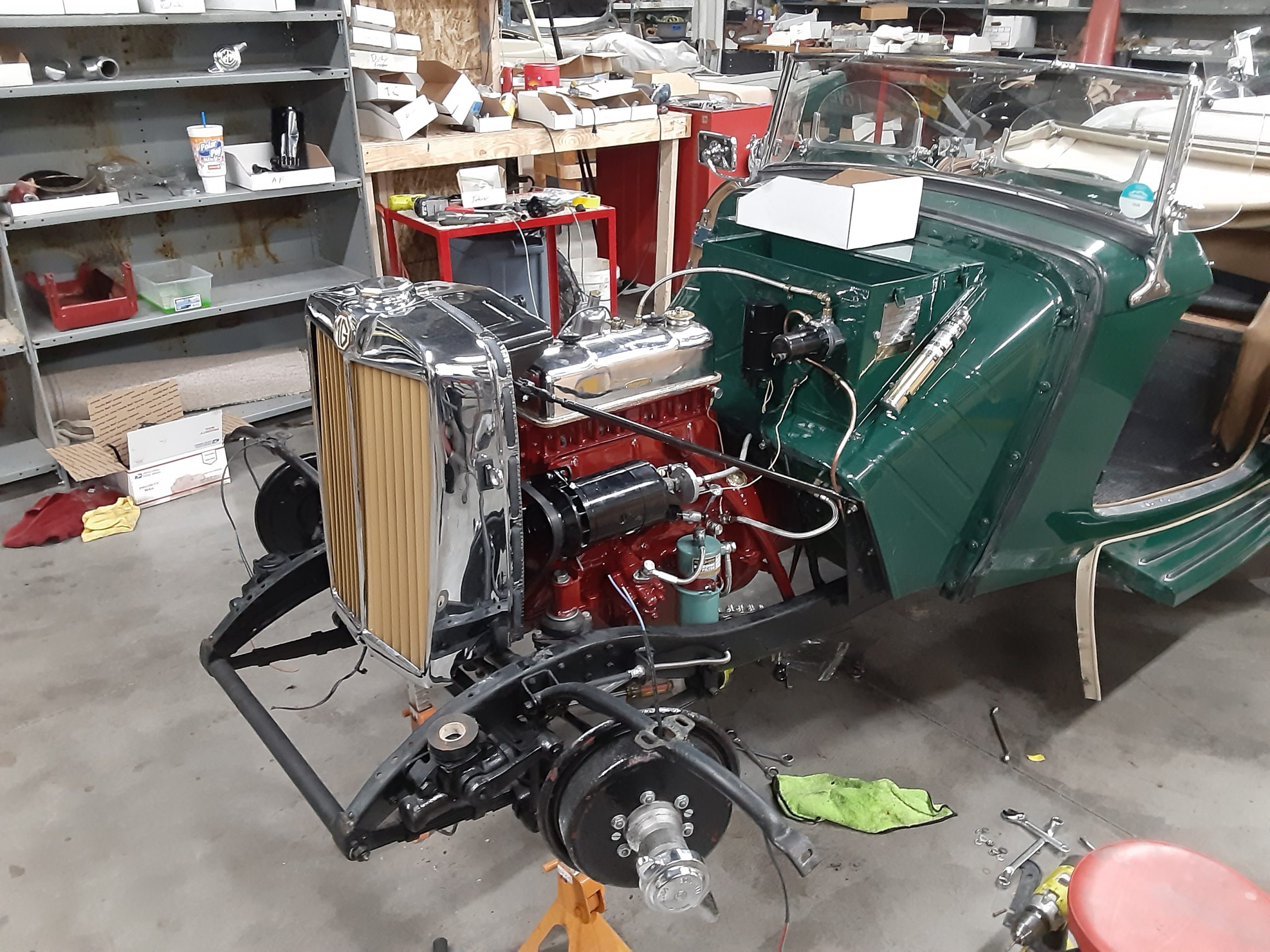 This MG is powered by the original rebuilt 1,250cc inline-four engine (engine number XPAG 7944) paired with a four-speed manual transmission and four-wheel drum brakes. The MG is powered by a 12v system with generator. The mechanical work done on the MG between 2019 and 2021 totaled over $46,000 from documented invoices. The work includes the following: full engine rebuilding with heads, seals, gaskets, valve seats and bearings, clutch pressure plate and throw out bearing replacement, gearbox pinion housing replacement, distributor replacement water pump replacement, radiator shroud and fan replaced, air filter assembly installation, fuel sending unit float replacement, steering serviced, suspension rebuilt/aligned with tie rods, bearings and seals, brake master cylinder and brake lines, brake drums replaced, tires replaced, rear differential serviced including gaskets, repaired gas tank, dash components cleaned and restored, install sealed beam halogen headlights. The last annual service was performed in December 2024 at 12,600 miles.
