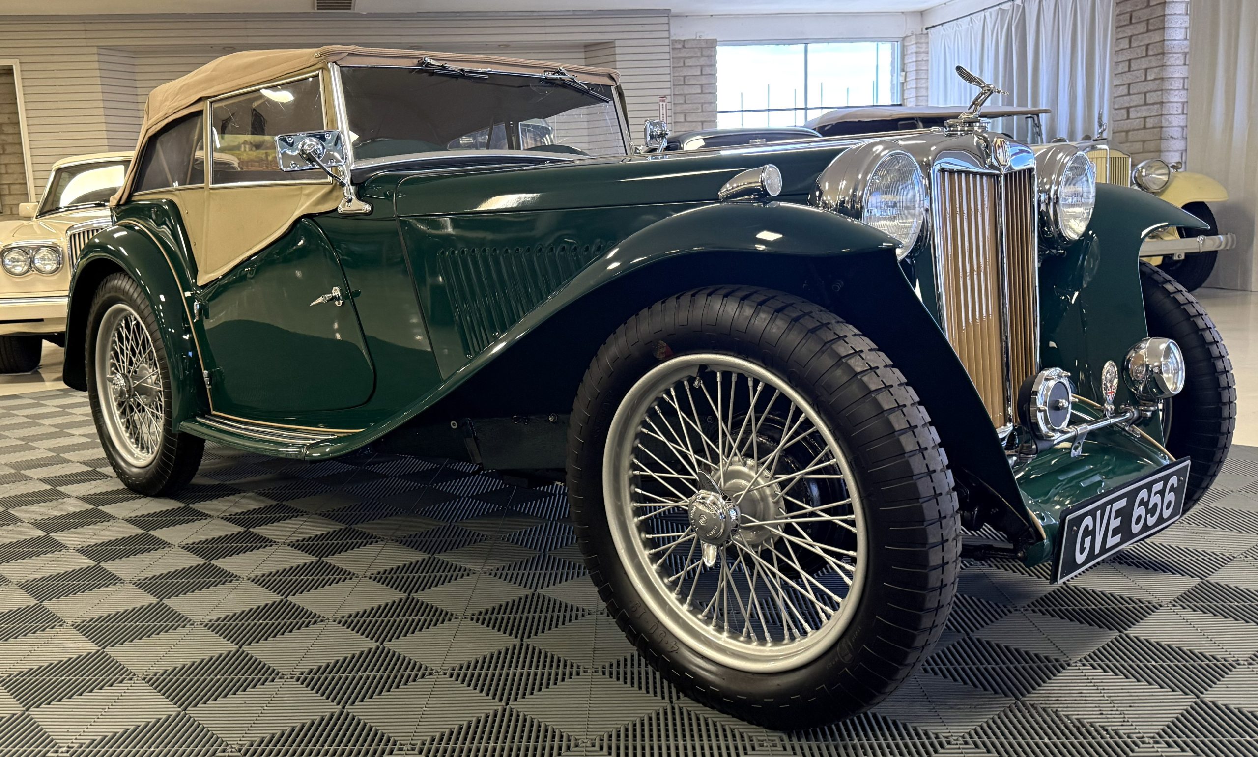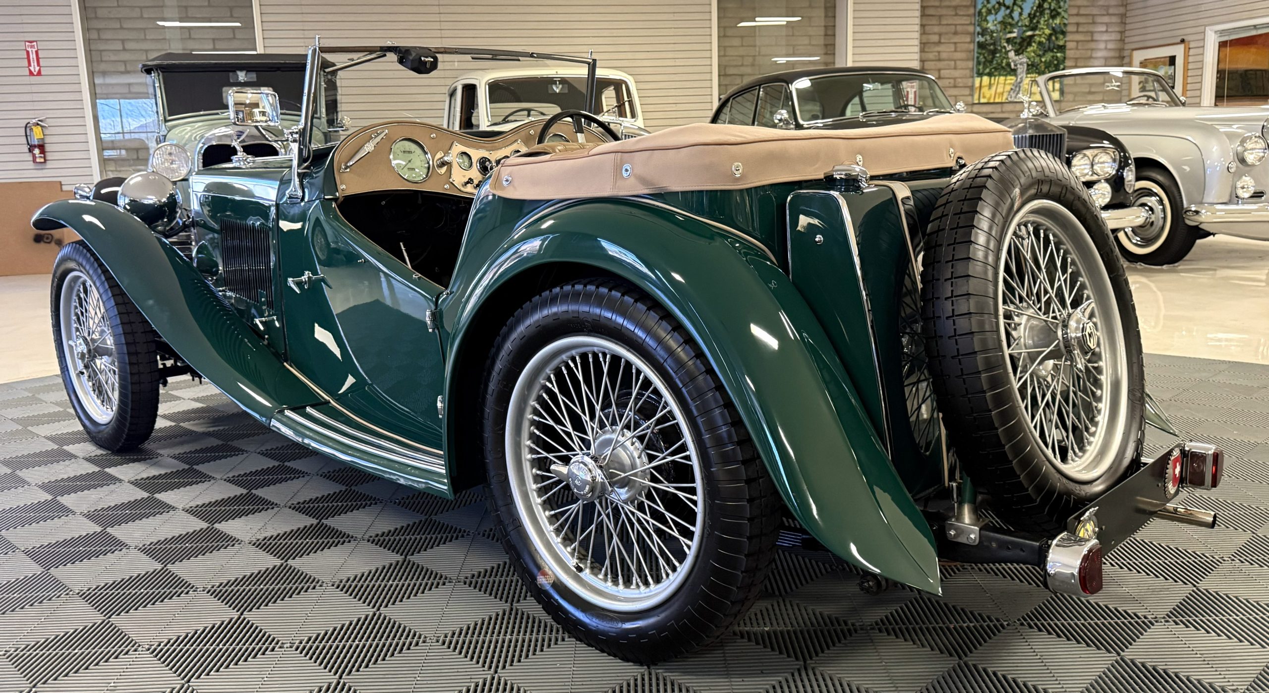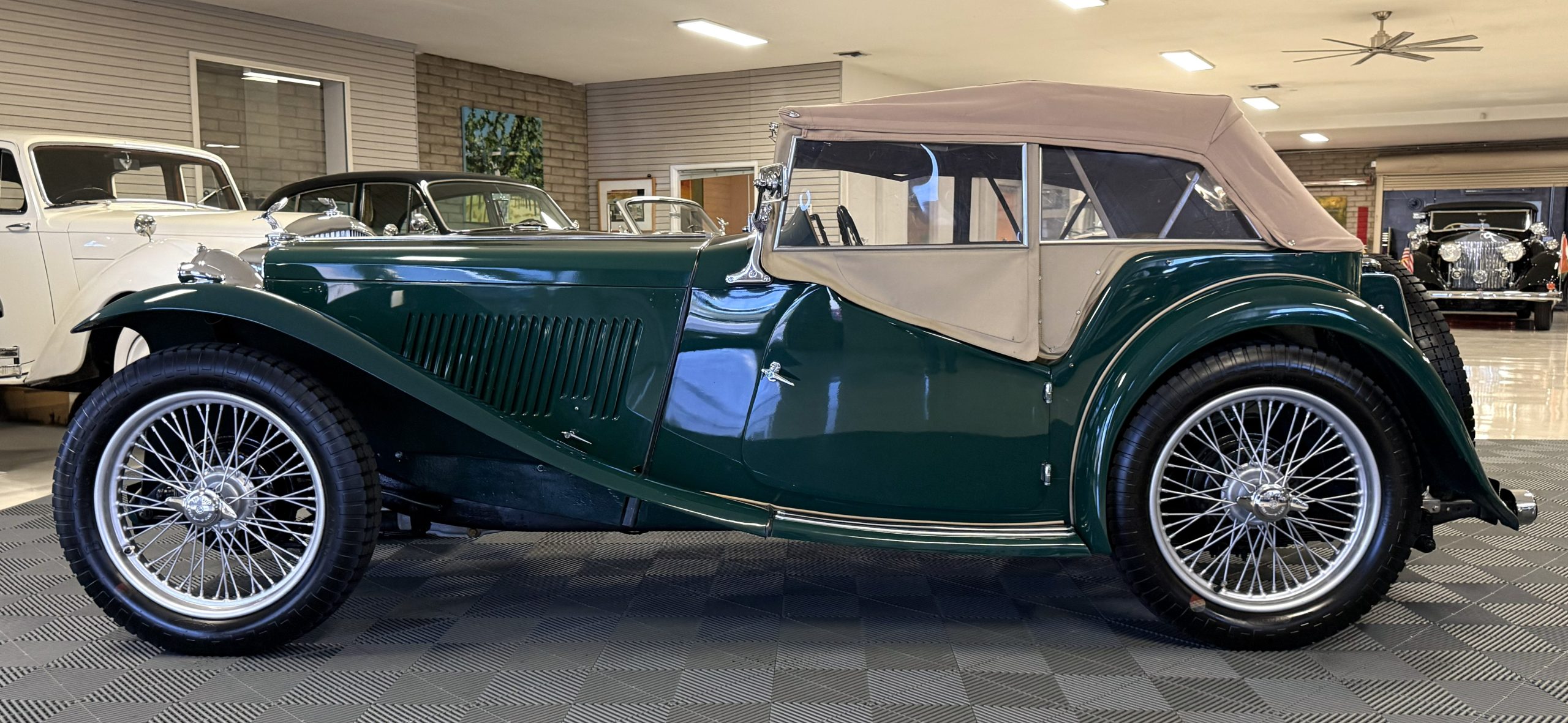 This MG TC is a matching numbers example, excellent restoration and has been fully mechanically restored in 2020. The MG is powered by a 1,250cc inline-four engine paired with a four-speed manual transmission and finished in Rally Green over tan leather. The MG offers an authentic vintage motoring experience with right-hand-drive configuration and classic styling cues. This MG is showing 12,800 miles with only 1,700 miles since the engine rebuild. This MG is in excellent overall condition, is priced to sell, and is ready for scenic touring, vintage rallies, and enthusiast events.