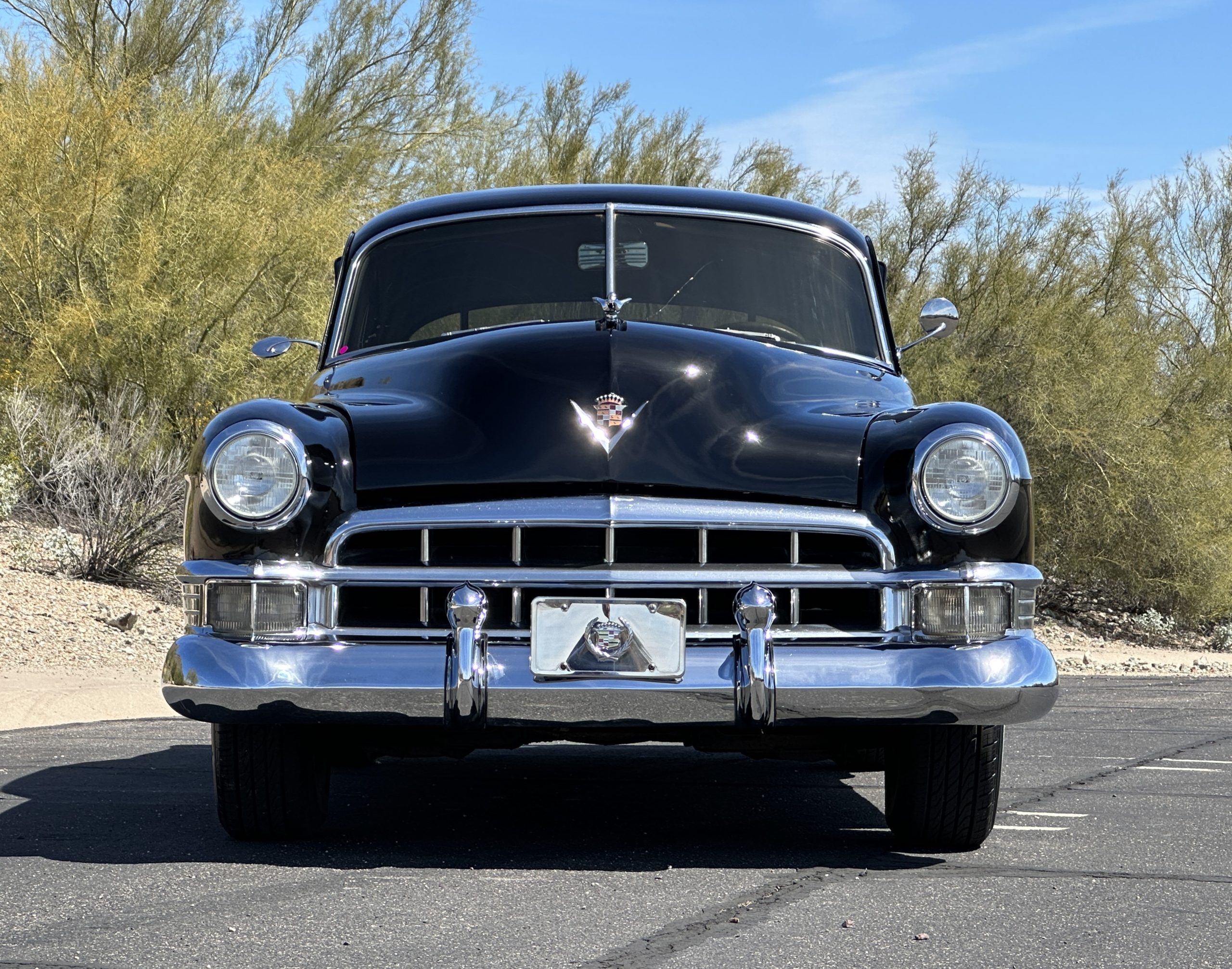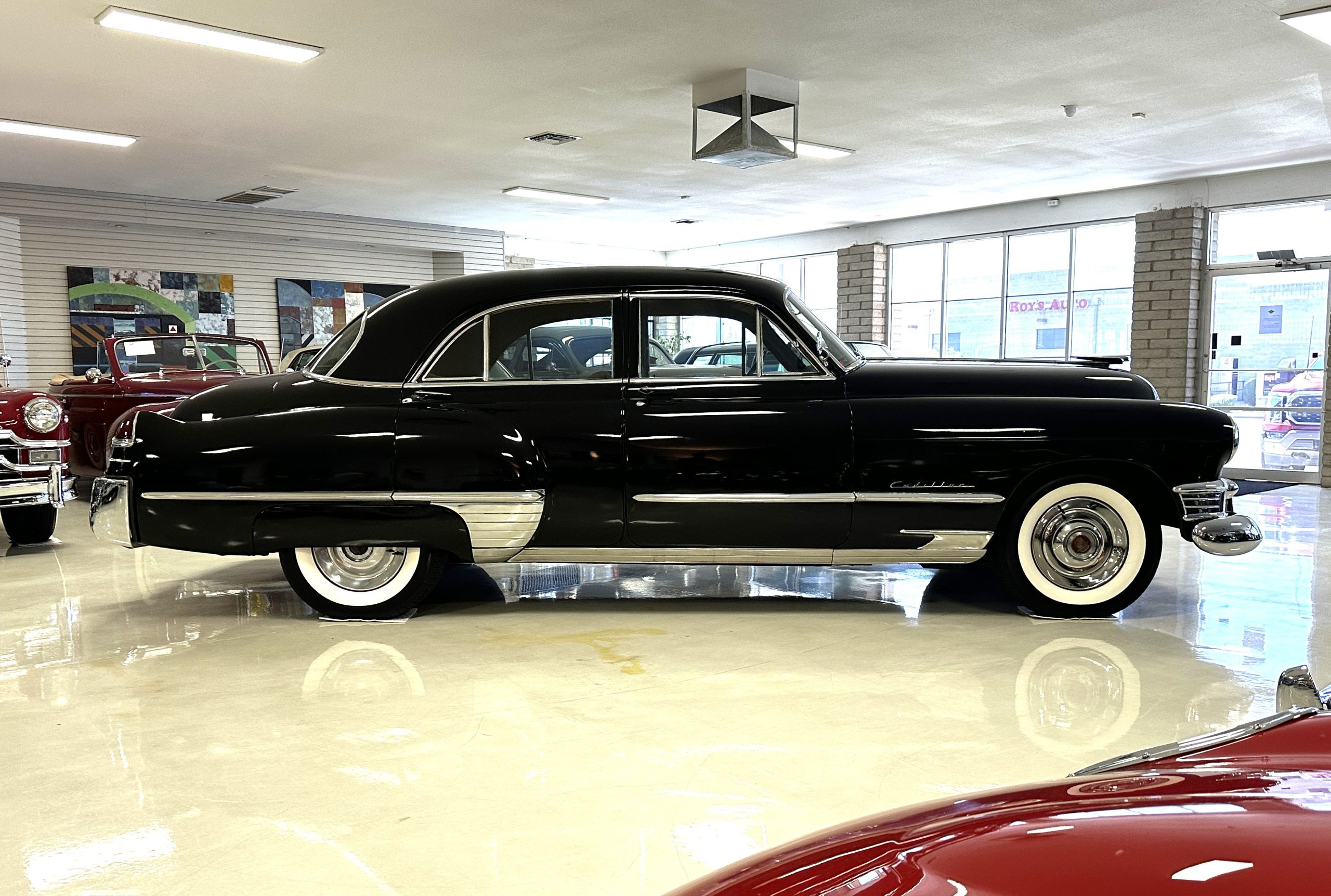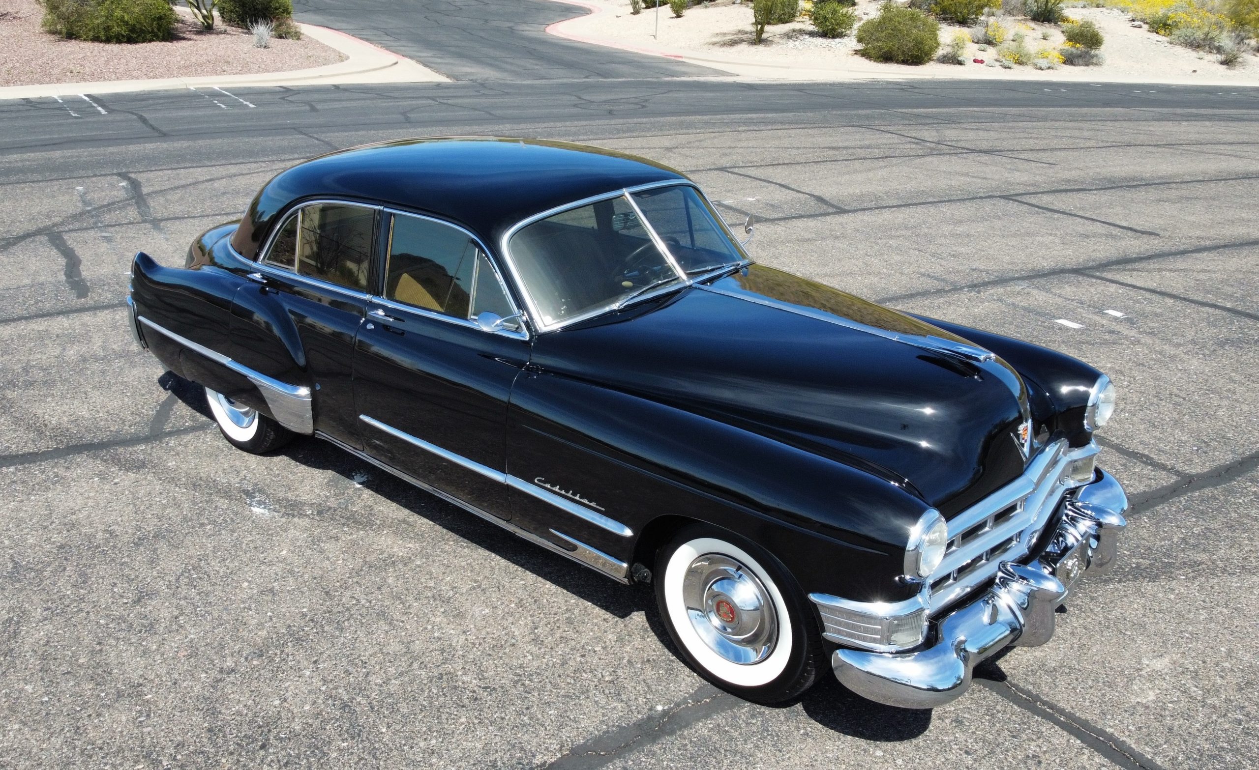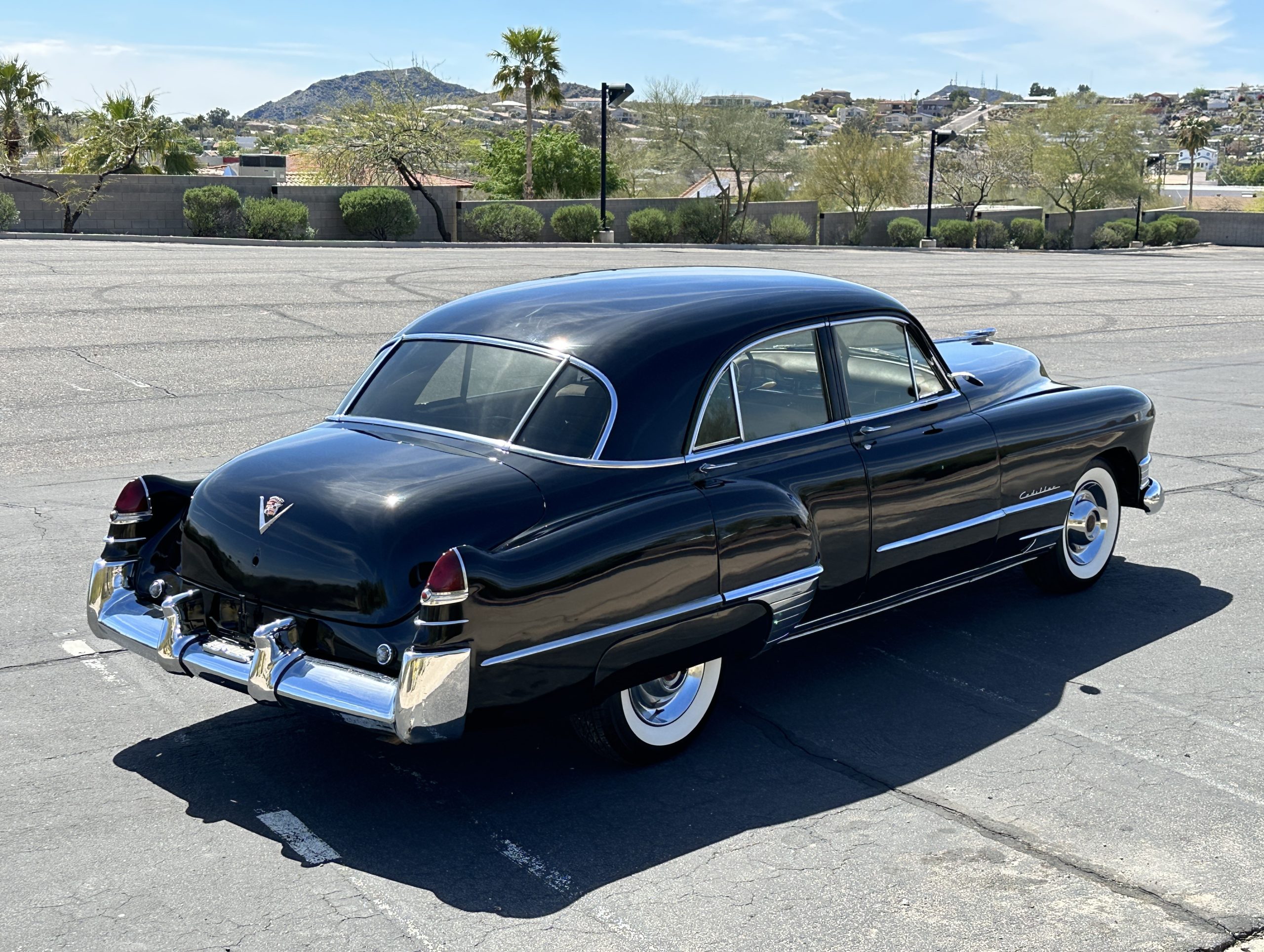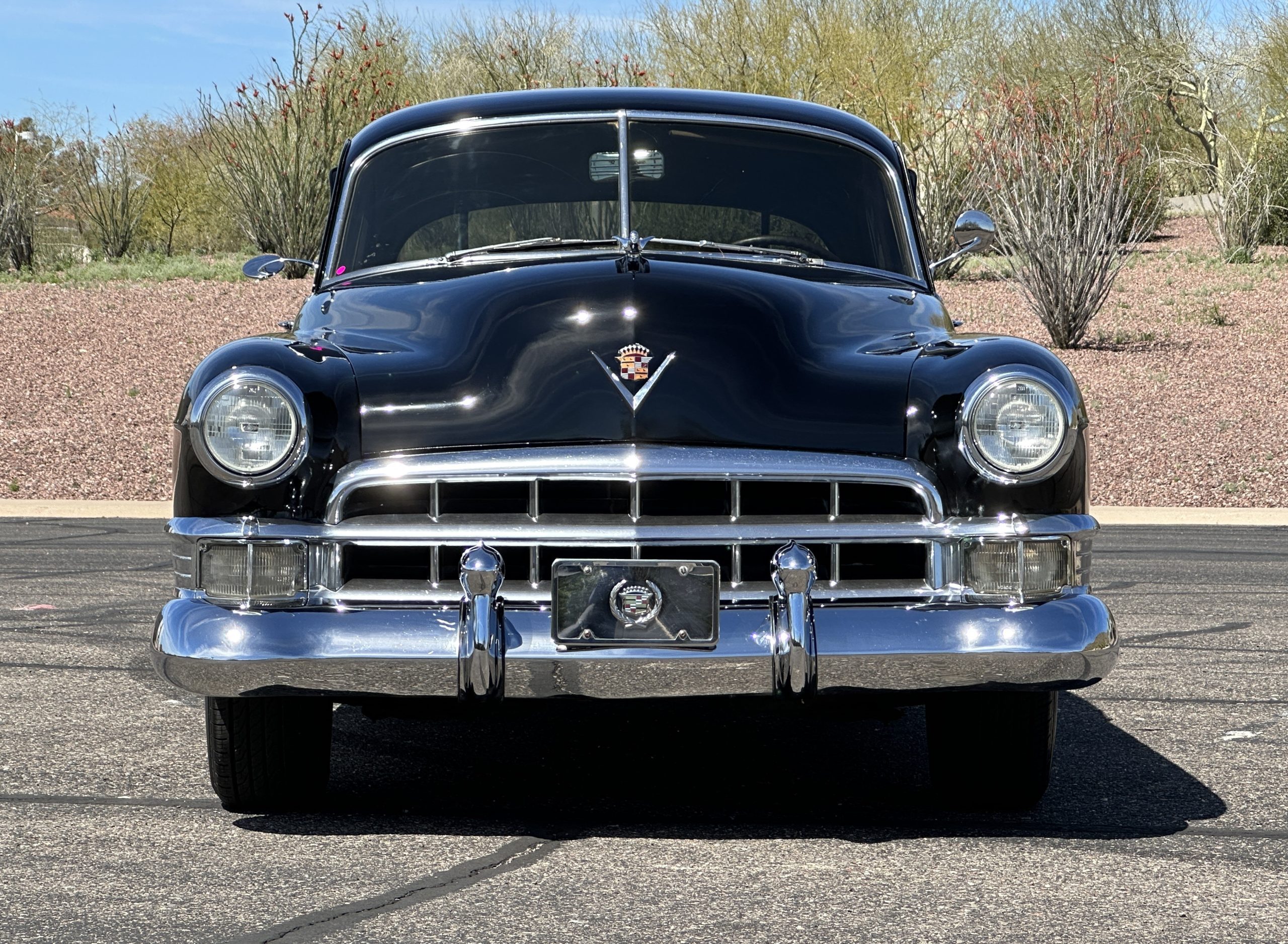 This well cared for 1949 Cadillac Series 61 Sedan is owned by a long-time Cadillac collector and is a wonderful example for car shows and touring. She has benefitted from an older restoration and runs and drives beautifully with a recent servicing and brakes. She’s not a trailer queen but rather a very nice weekend driver that is a joy to drive. We love the beautiful chrome and stainless trim on this Cadillac.