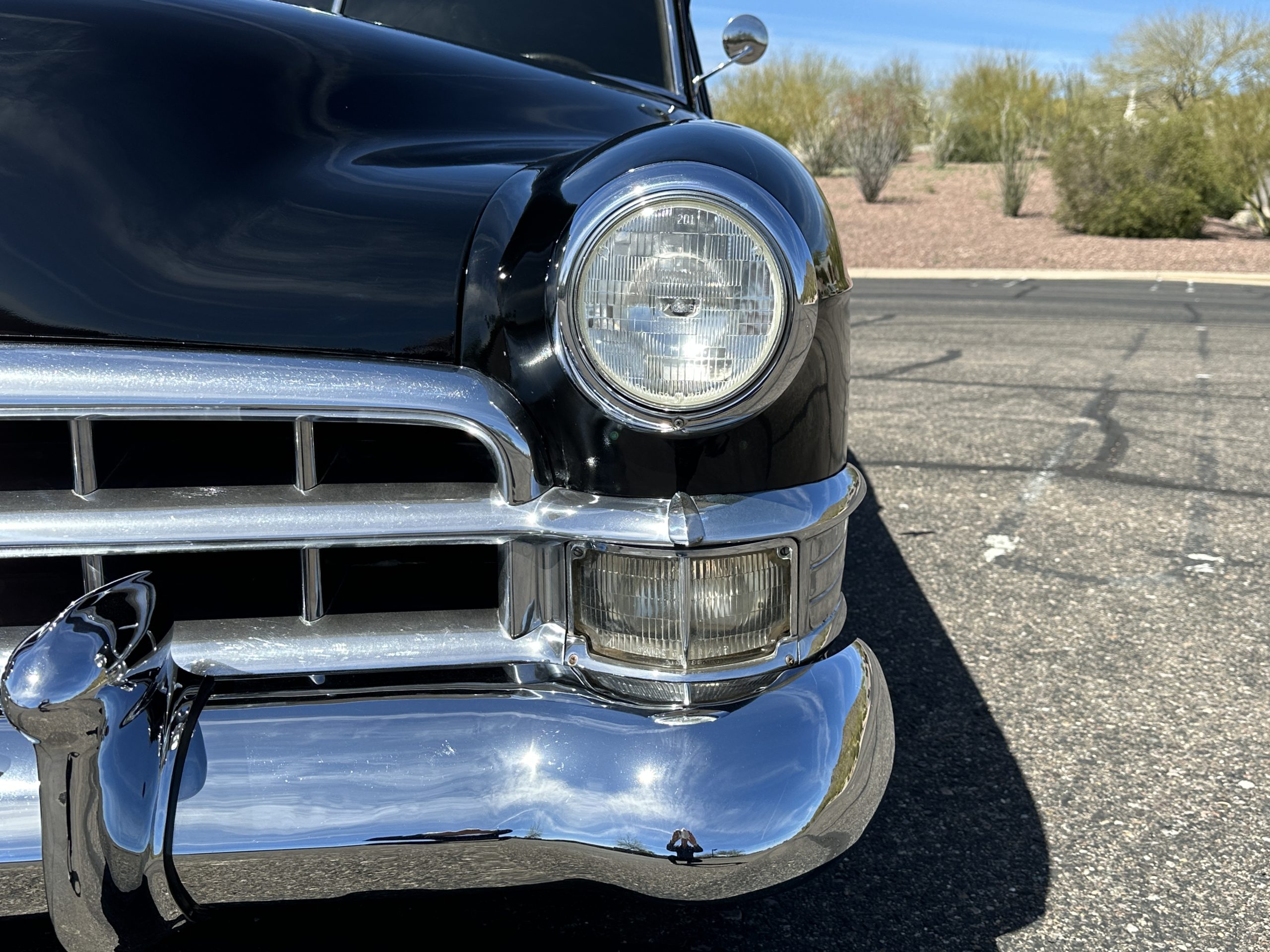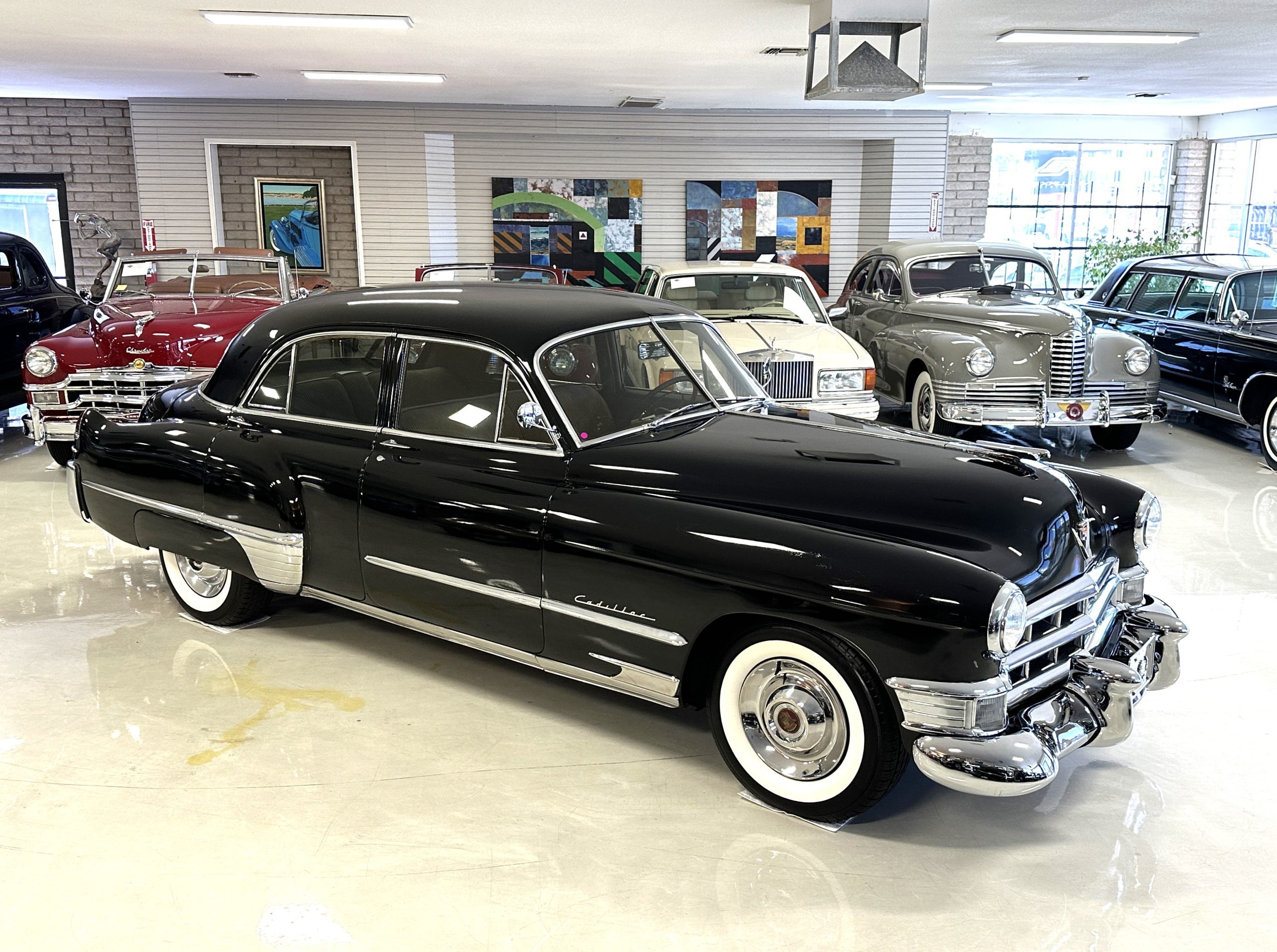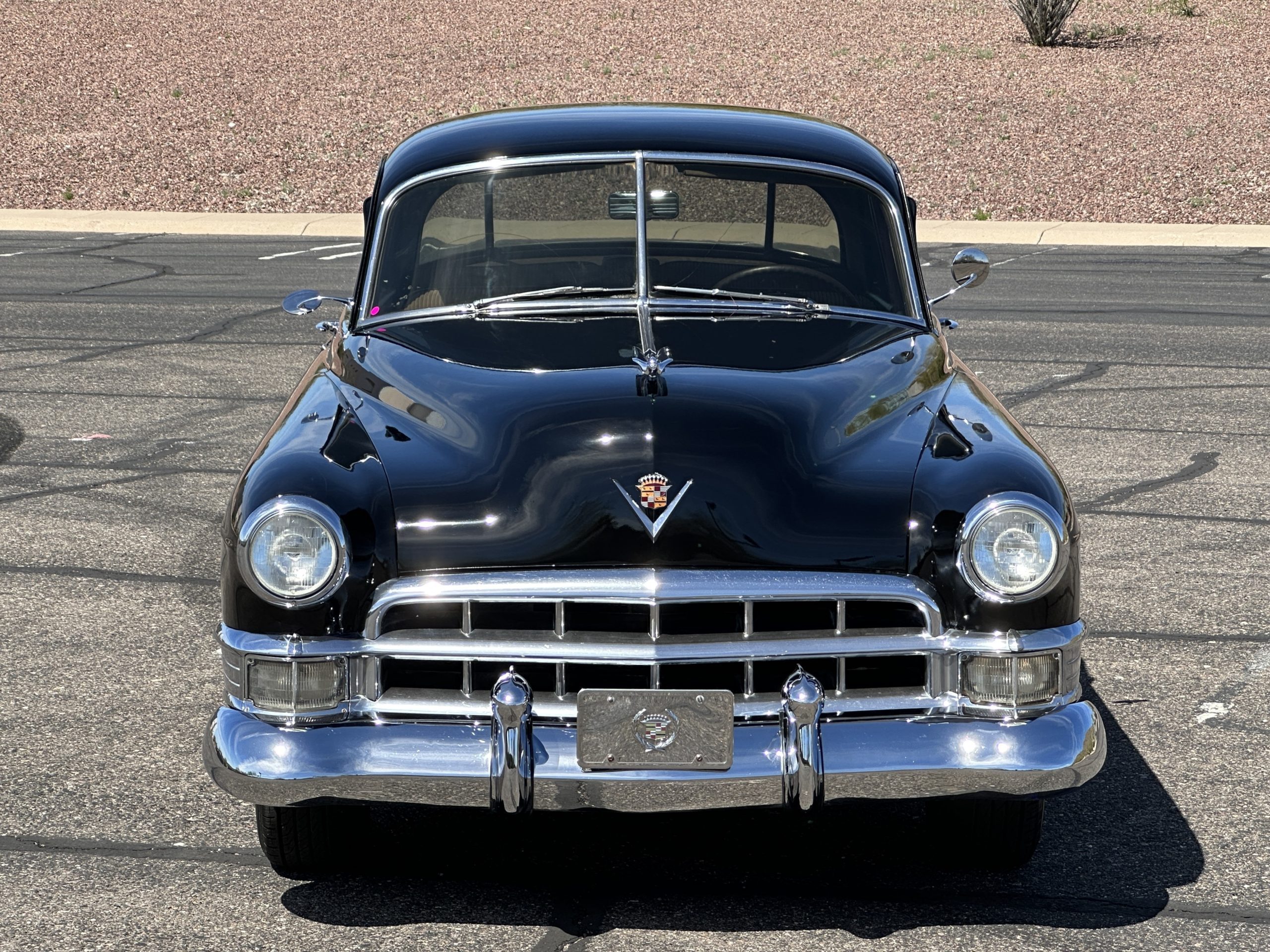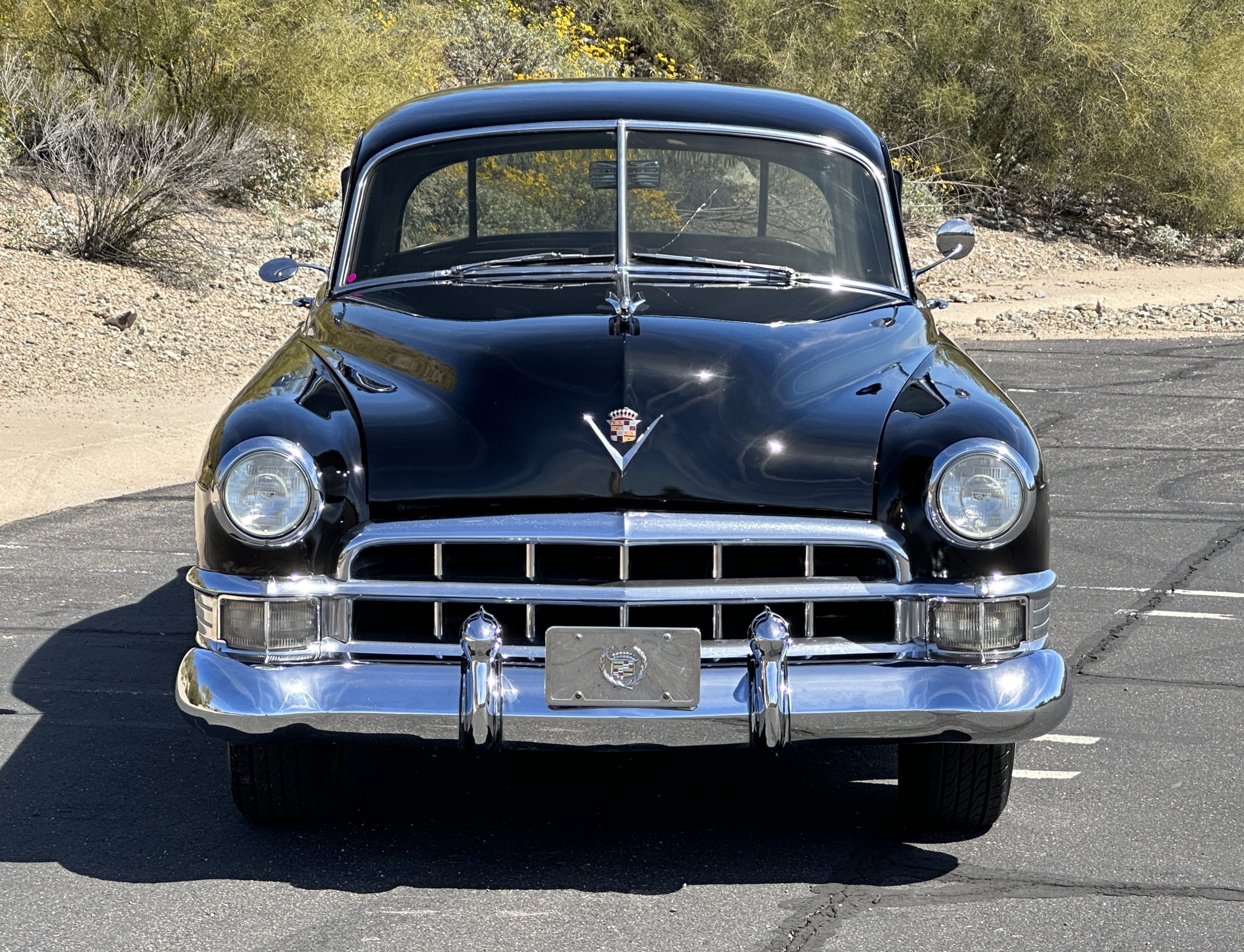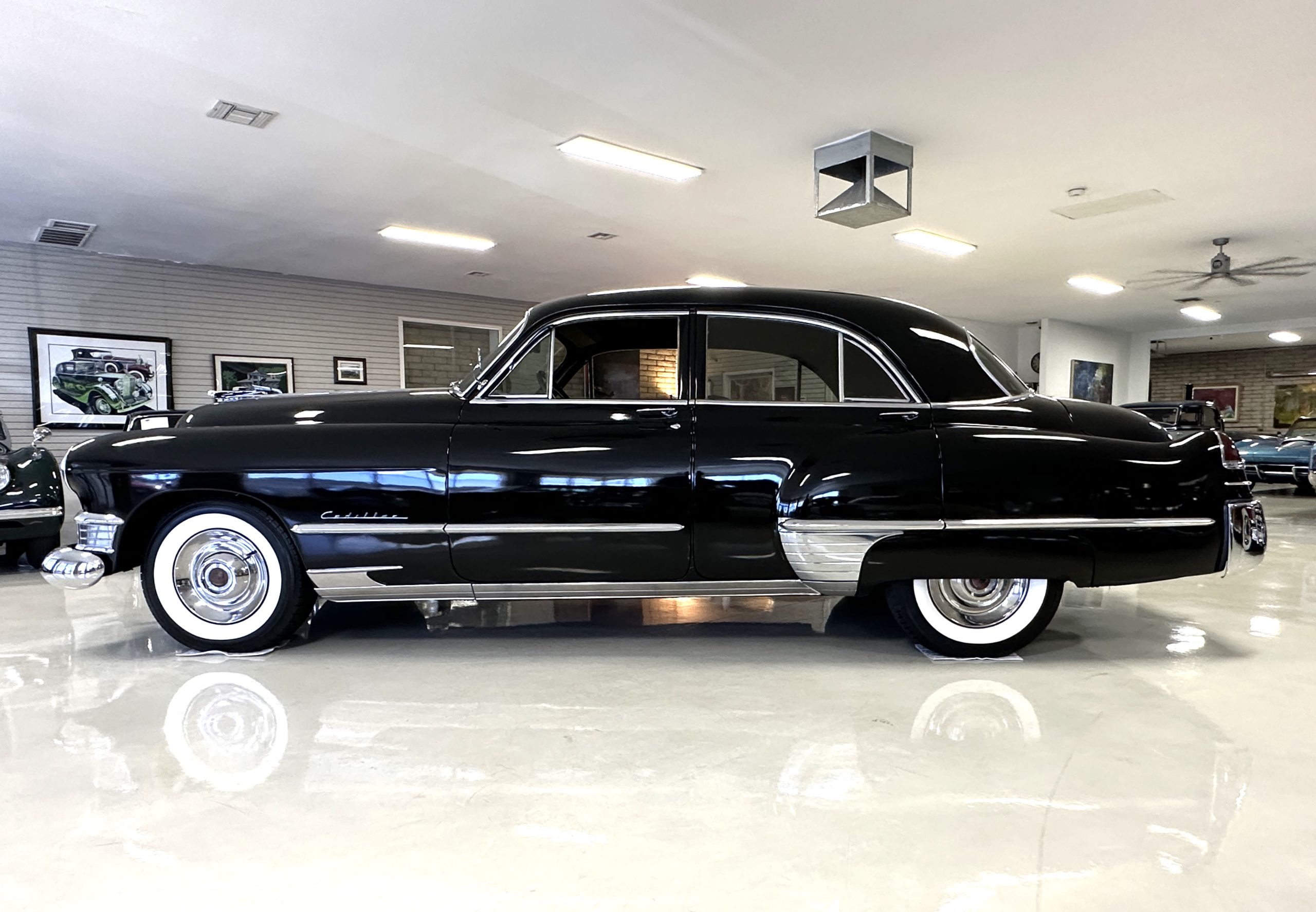 This well cared for 1949 Cadillac Series 61 Sedan is owned by a long-time Cadillac collector and is a wonderful example for car shows and touring. She has benefitted from an older restoration and runs and drives beautifully with a recent servicing and brakes. She’s not a trailer queen but rather a very nice weekend driver that is a joy to drive. We love the beautiful chrome and stainless trim on this Cadillac.