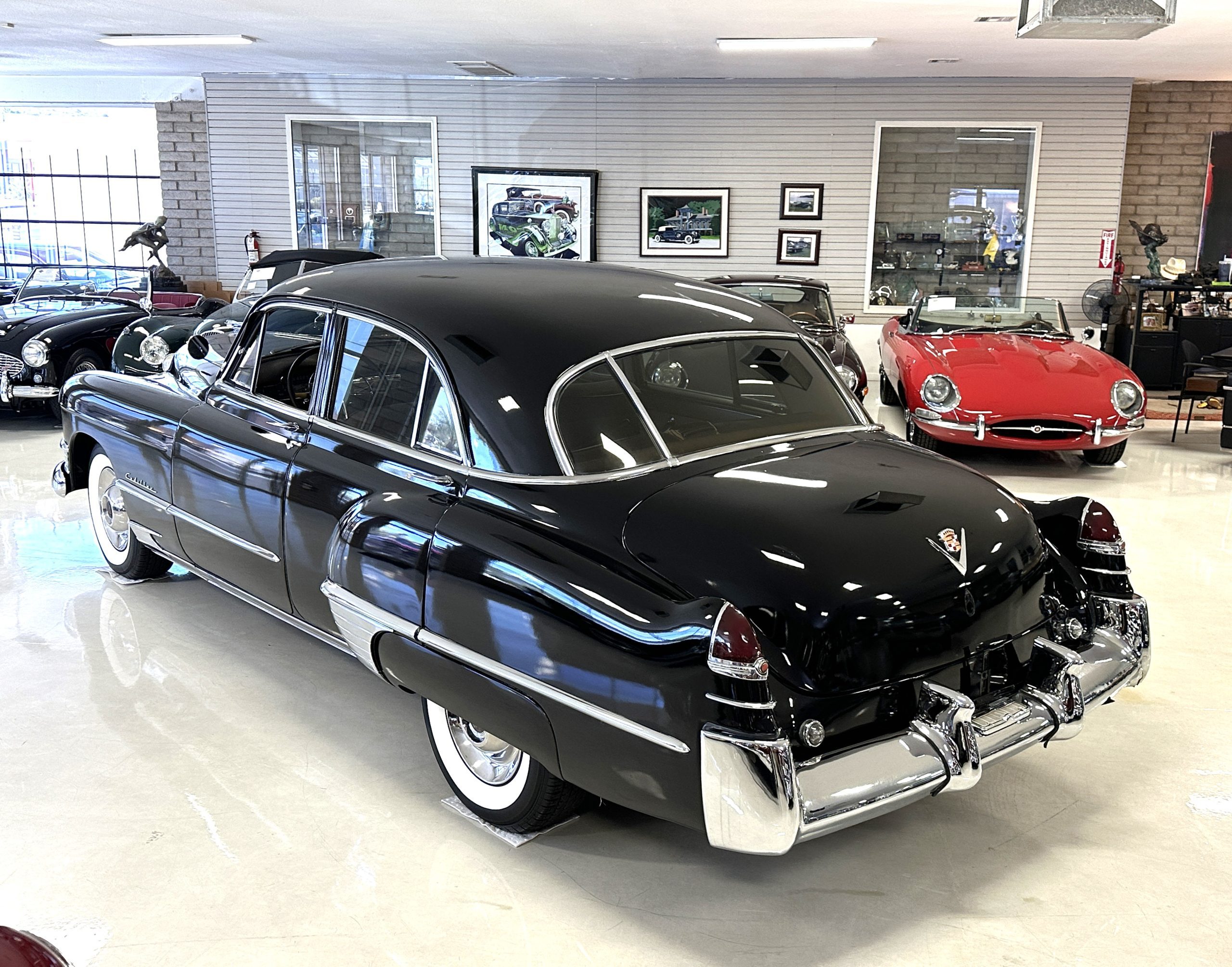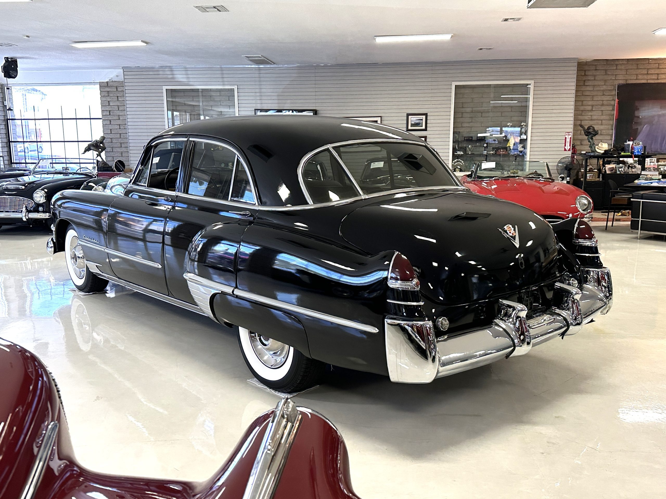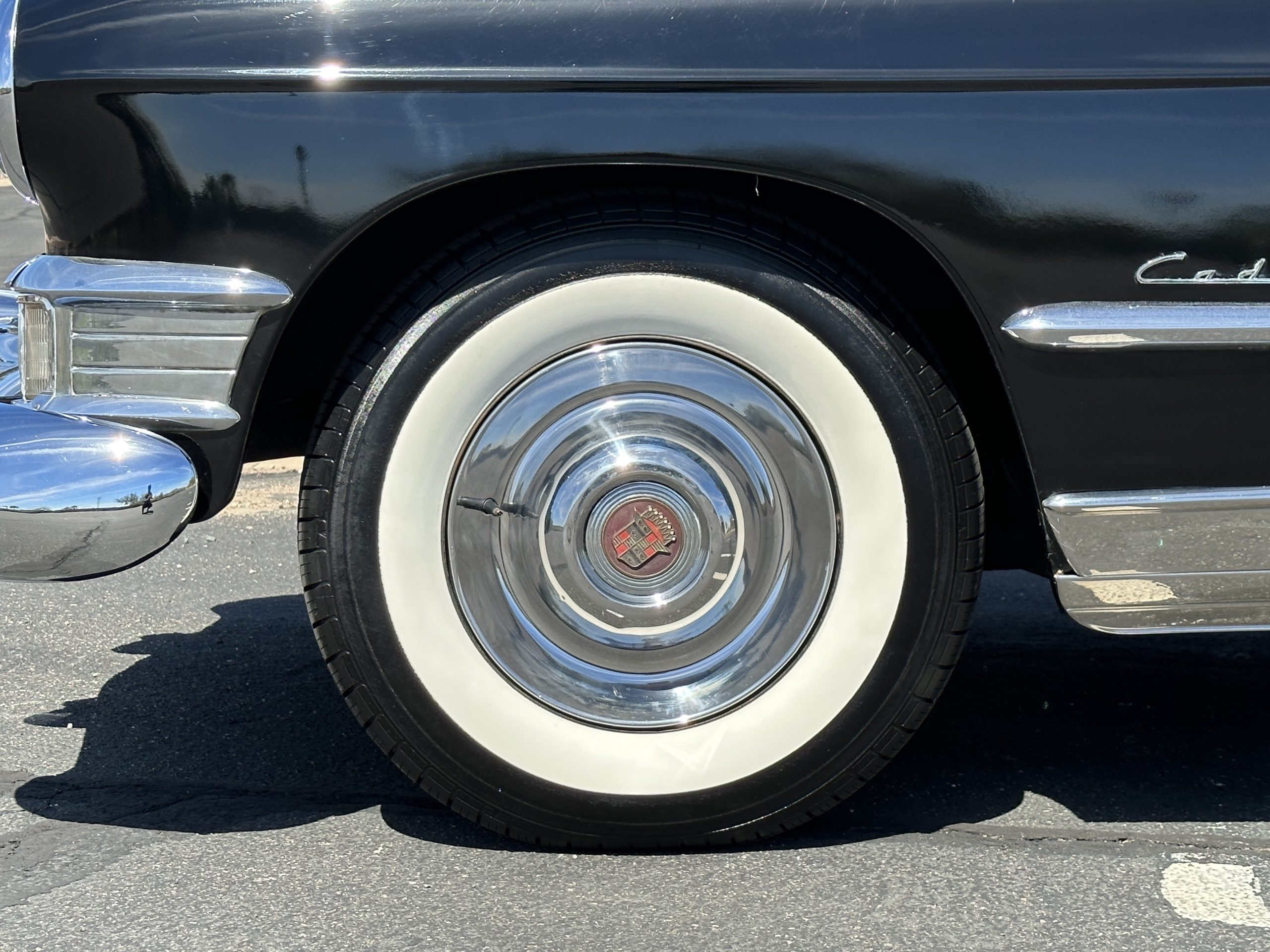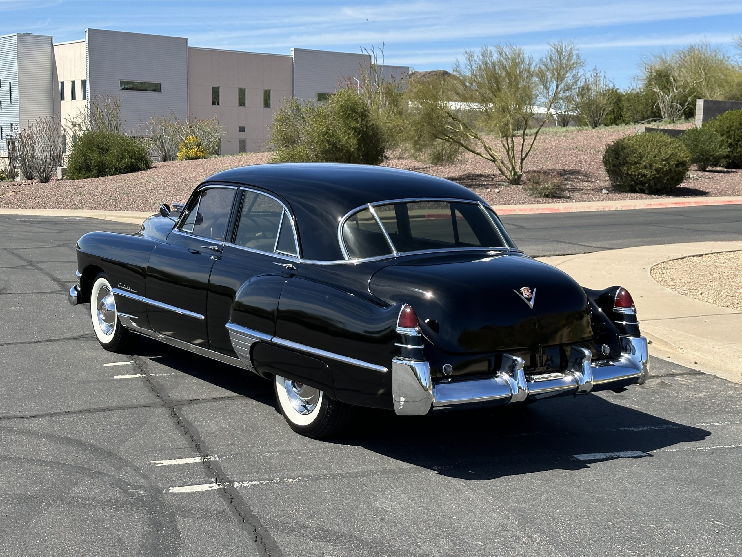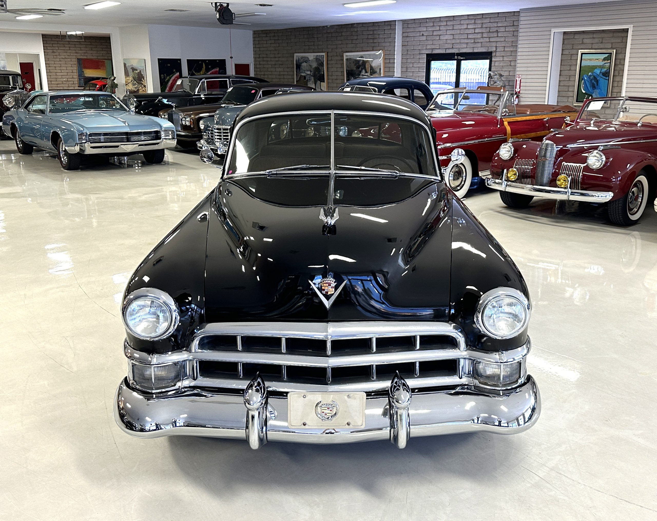 This well cared for 1949 Cadillac Series 61 Sedan is owned by a long-time Cadillac collector and is a wonderful example for car shows and touring. She has benefitted from an older restoration and runs and drives beautifully with a recent servicing and brakes. She’s not a trailer queen but rather a very nice weekend driver that is a joy to drive. We love the beautiful chrome and stainless trim on this Cadillac.