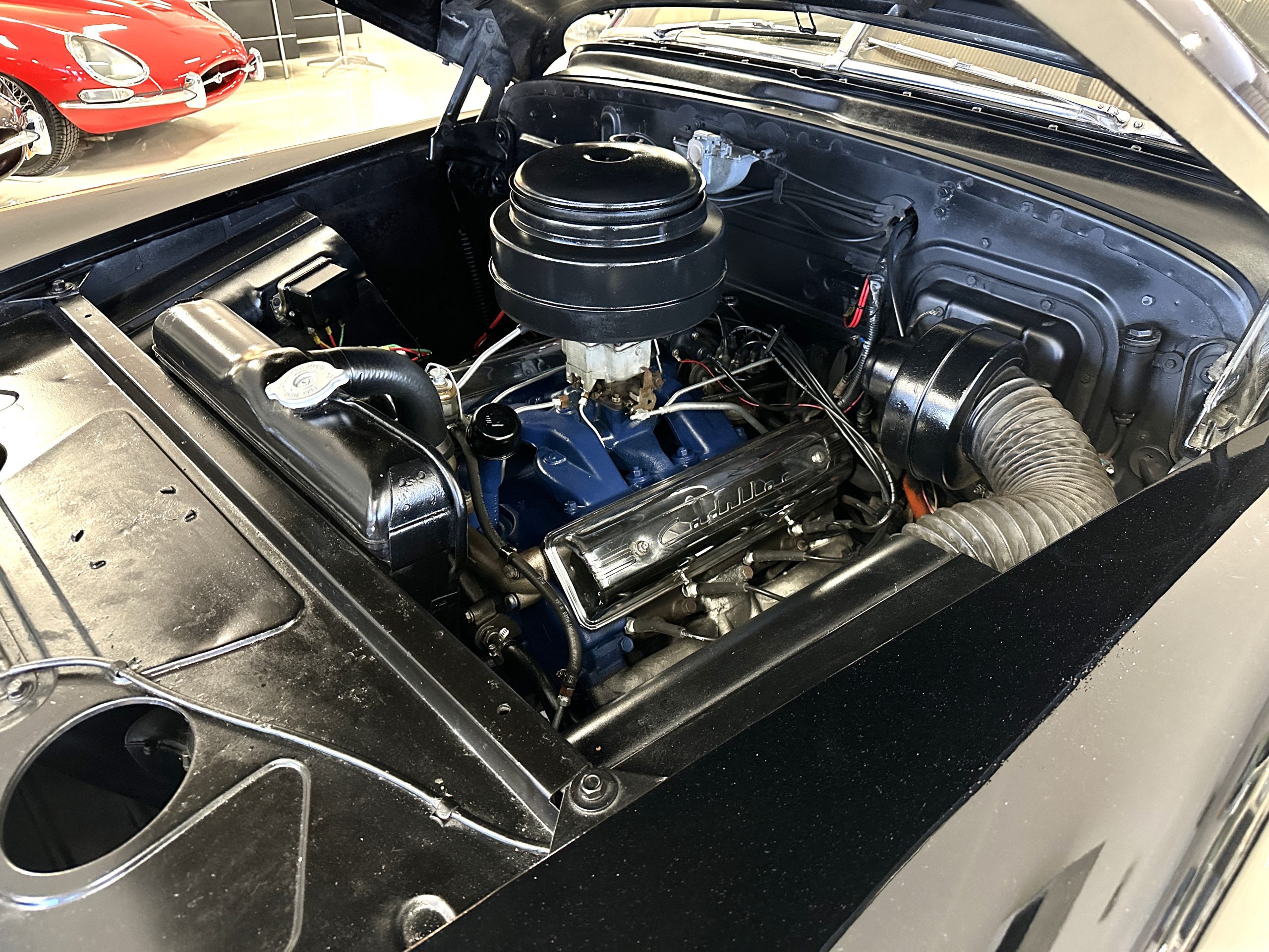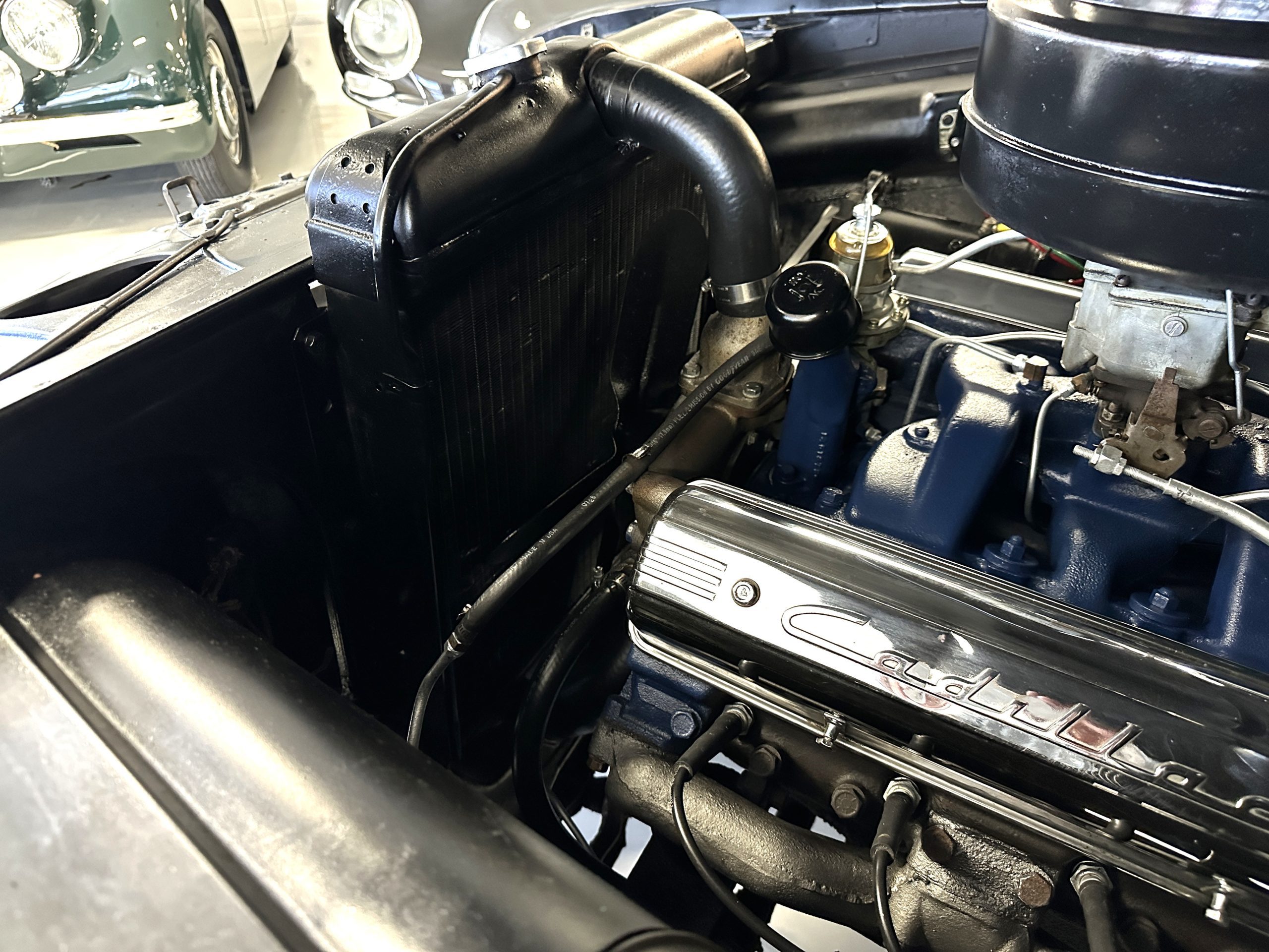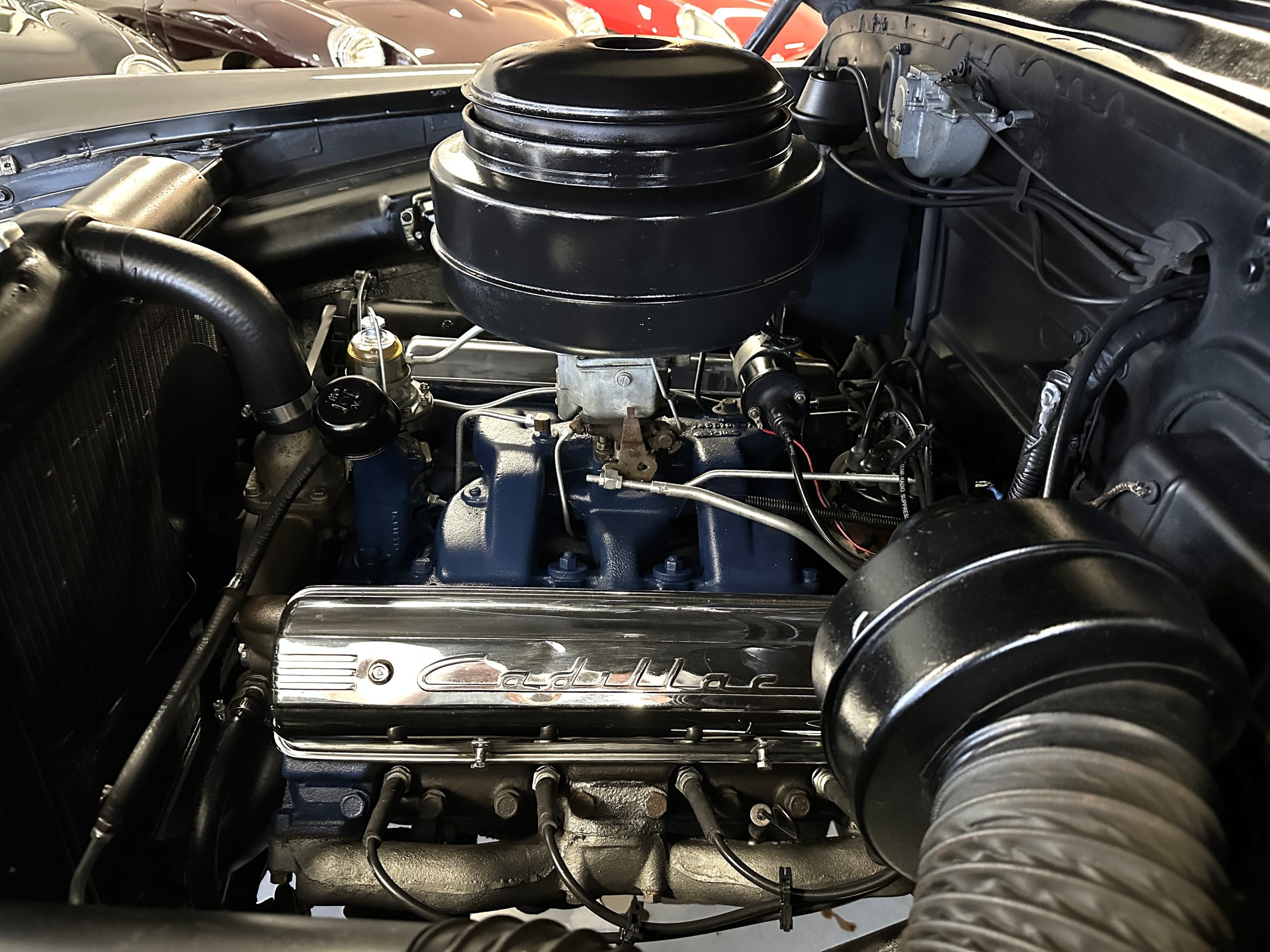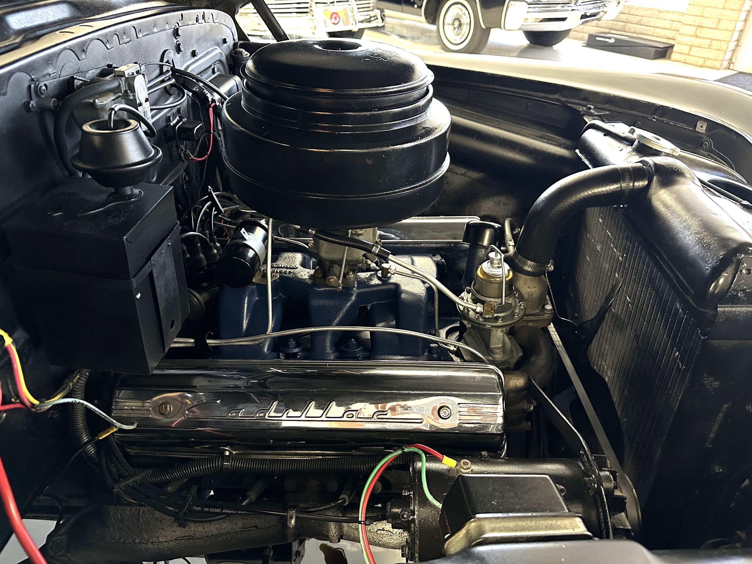The engine compartment is very clean and nicely detailed and painted throughout. Her 331 cid Overhead Valve V-8 runs well and produces 160 hp. The power is transferred to the rear wheels through her 4-speed Hydramatic Automatic Transmission which shifts well and performs quietly.