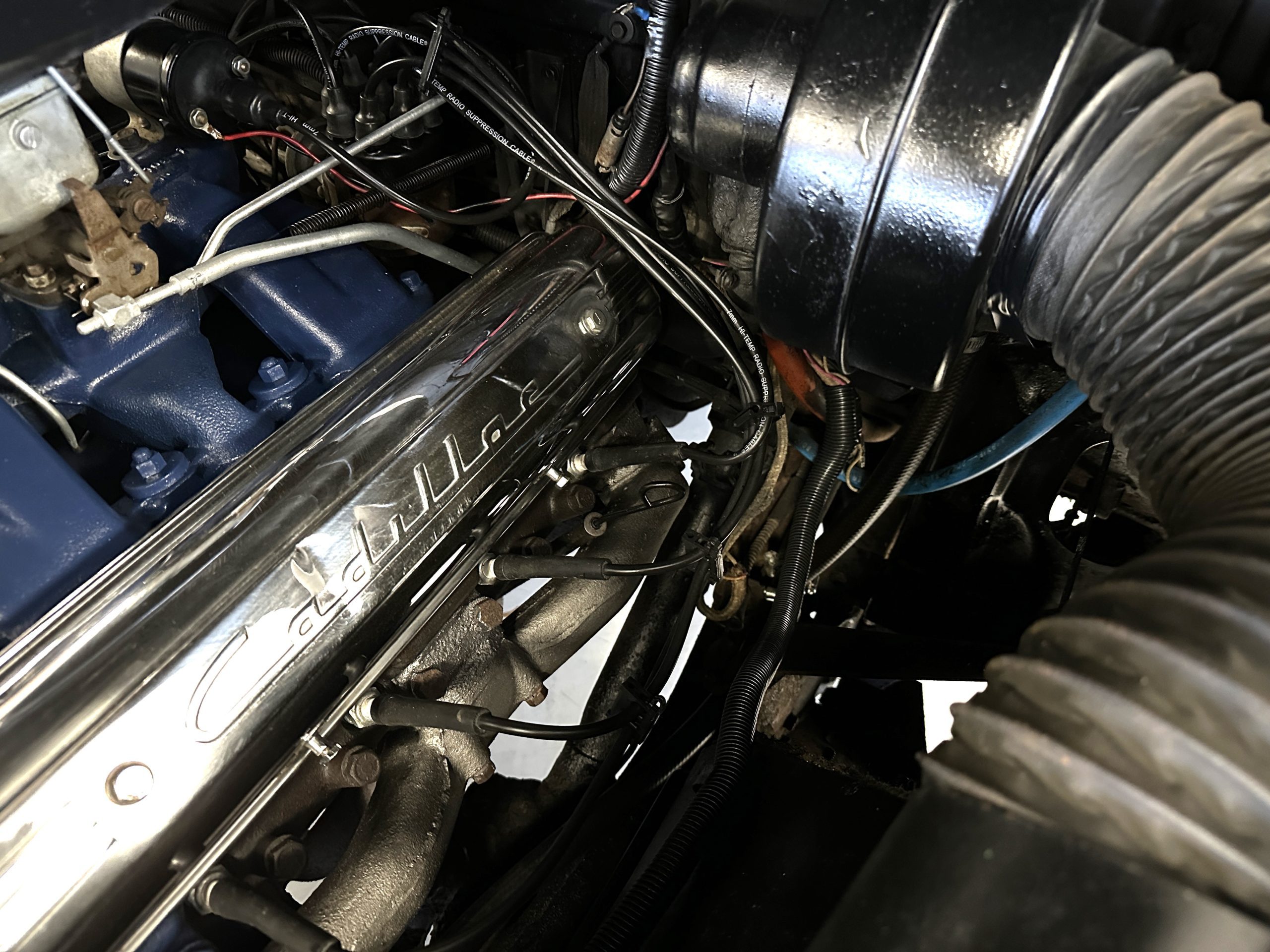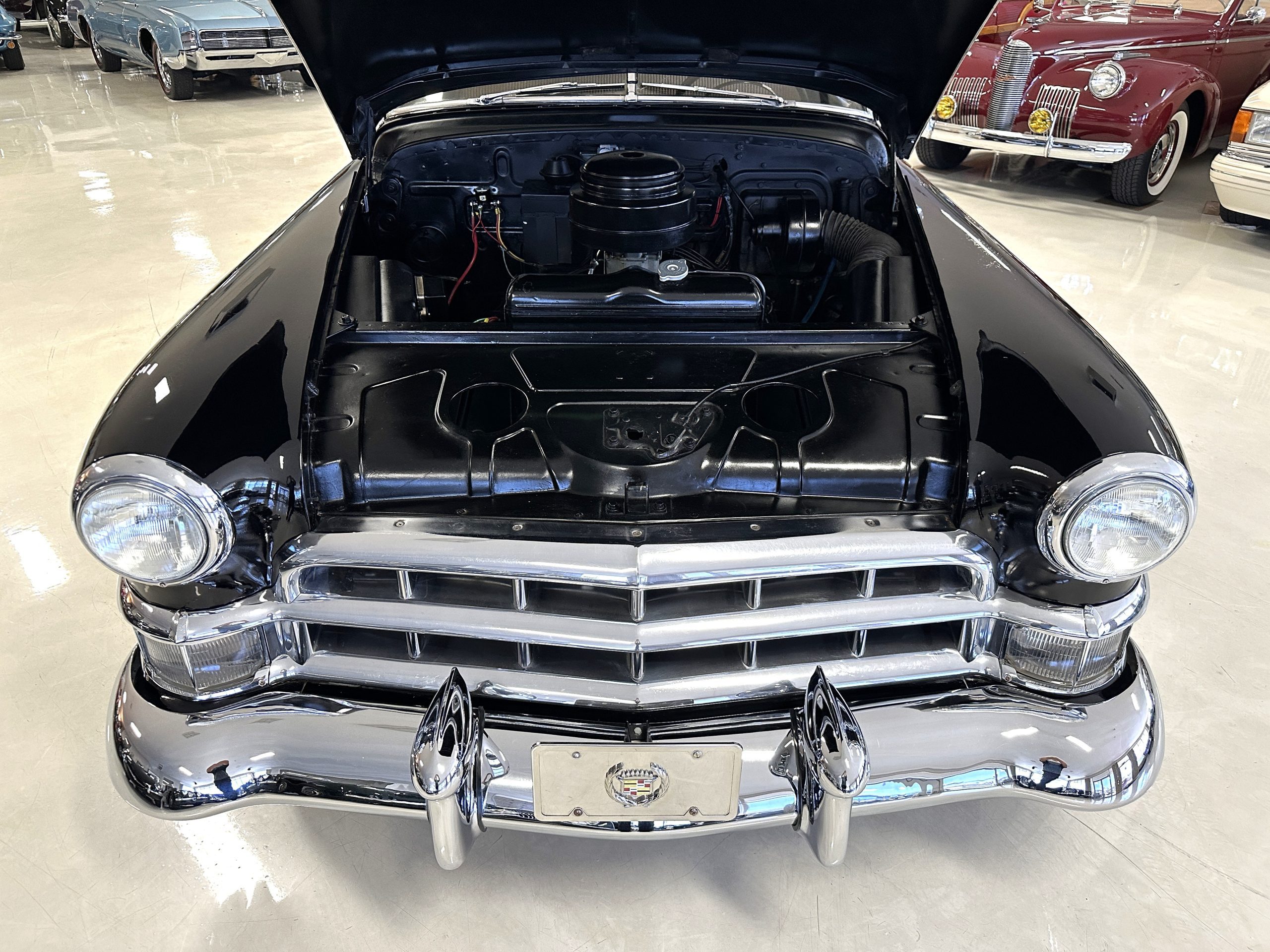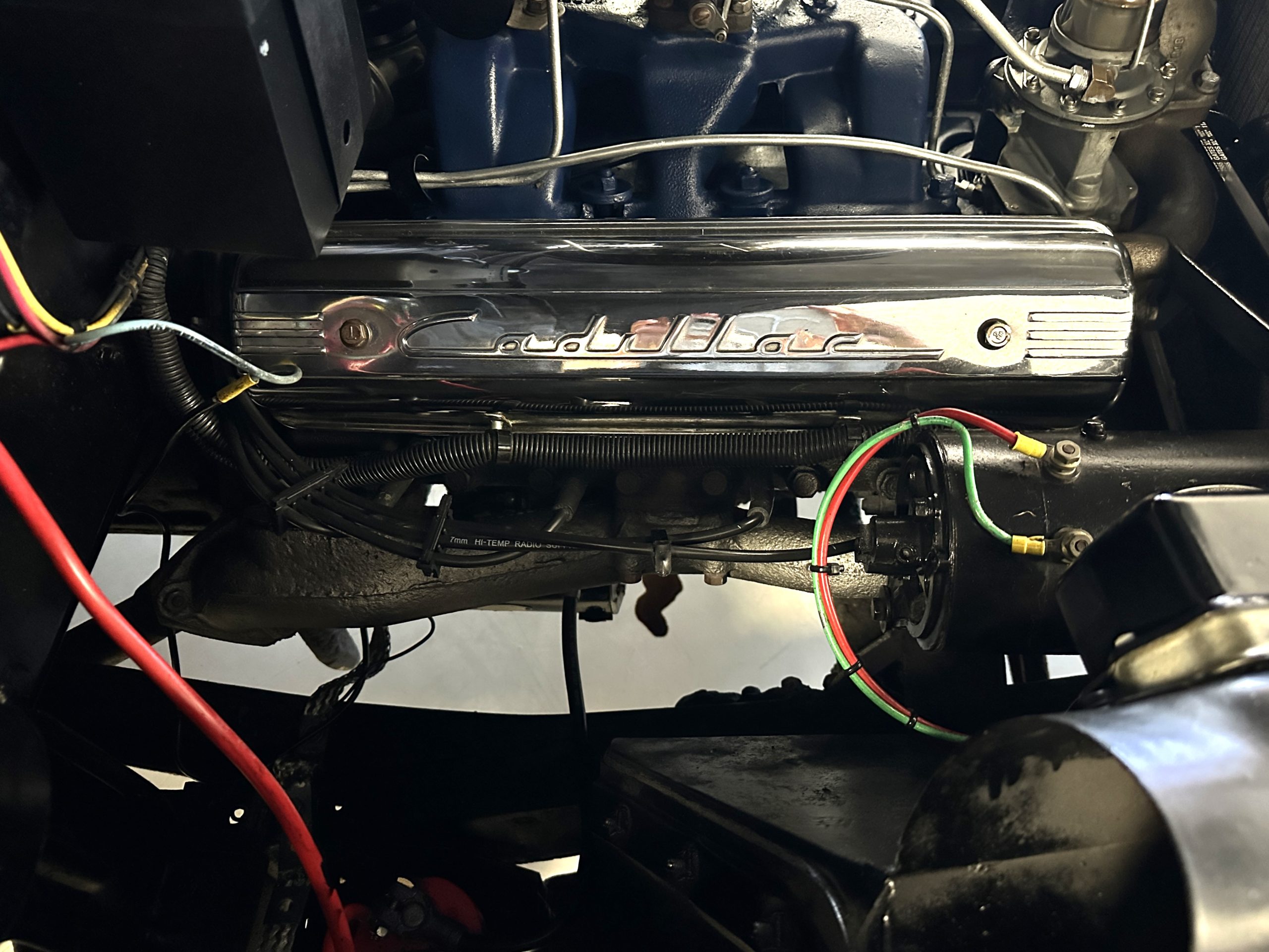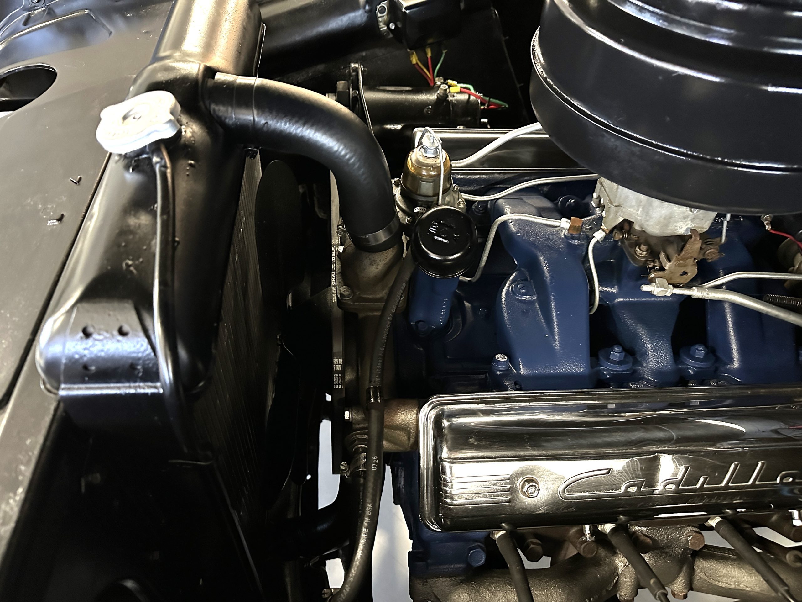 The engine compartment is very clean and nicely detailed and painted throughout. Her 331 cid Overhead Valve V-8 runs well and produces 160 hp. The power is transferred to the rear wheels through her 4-speed Hydramatic Automatic Transmission which shifts well and performs quietly.