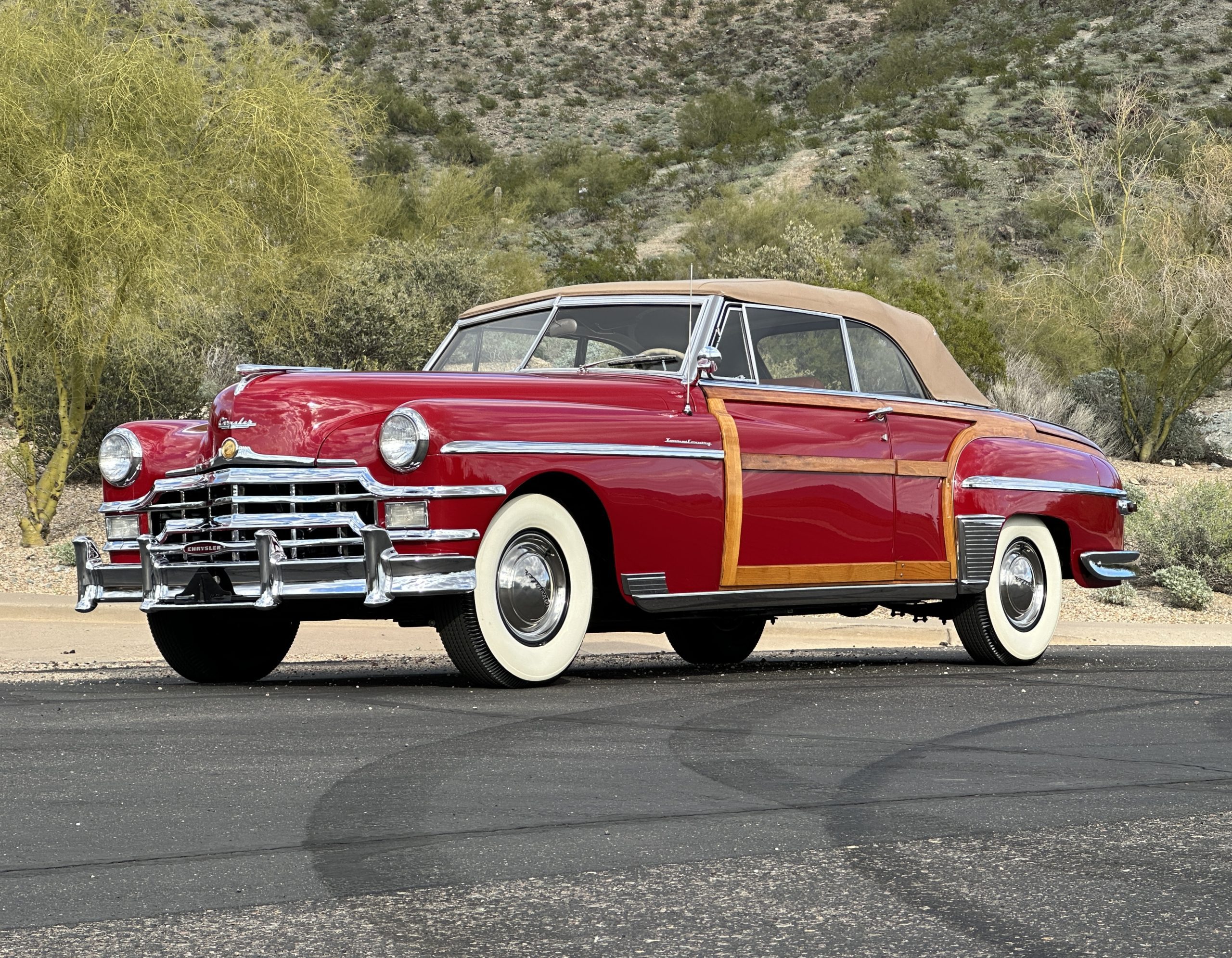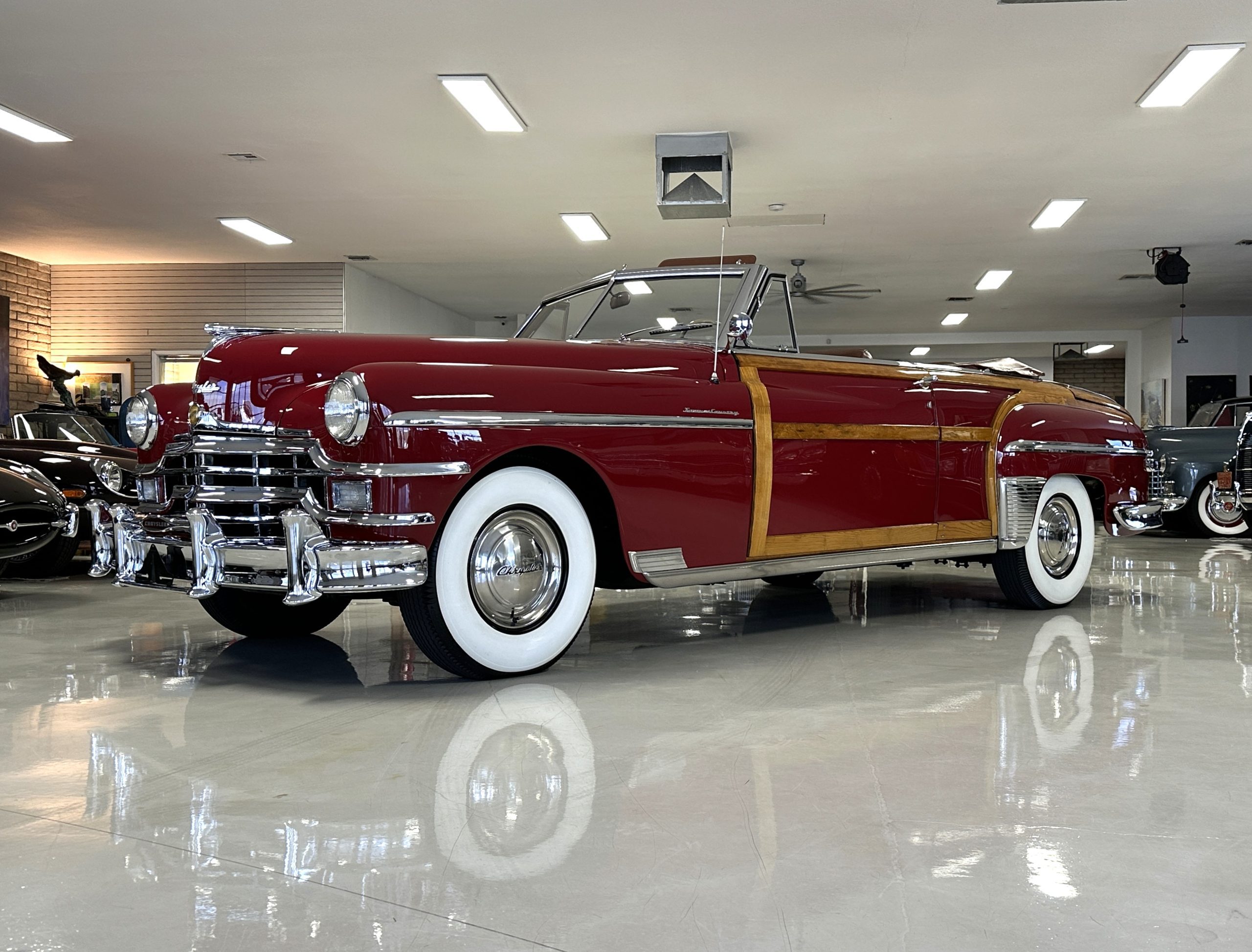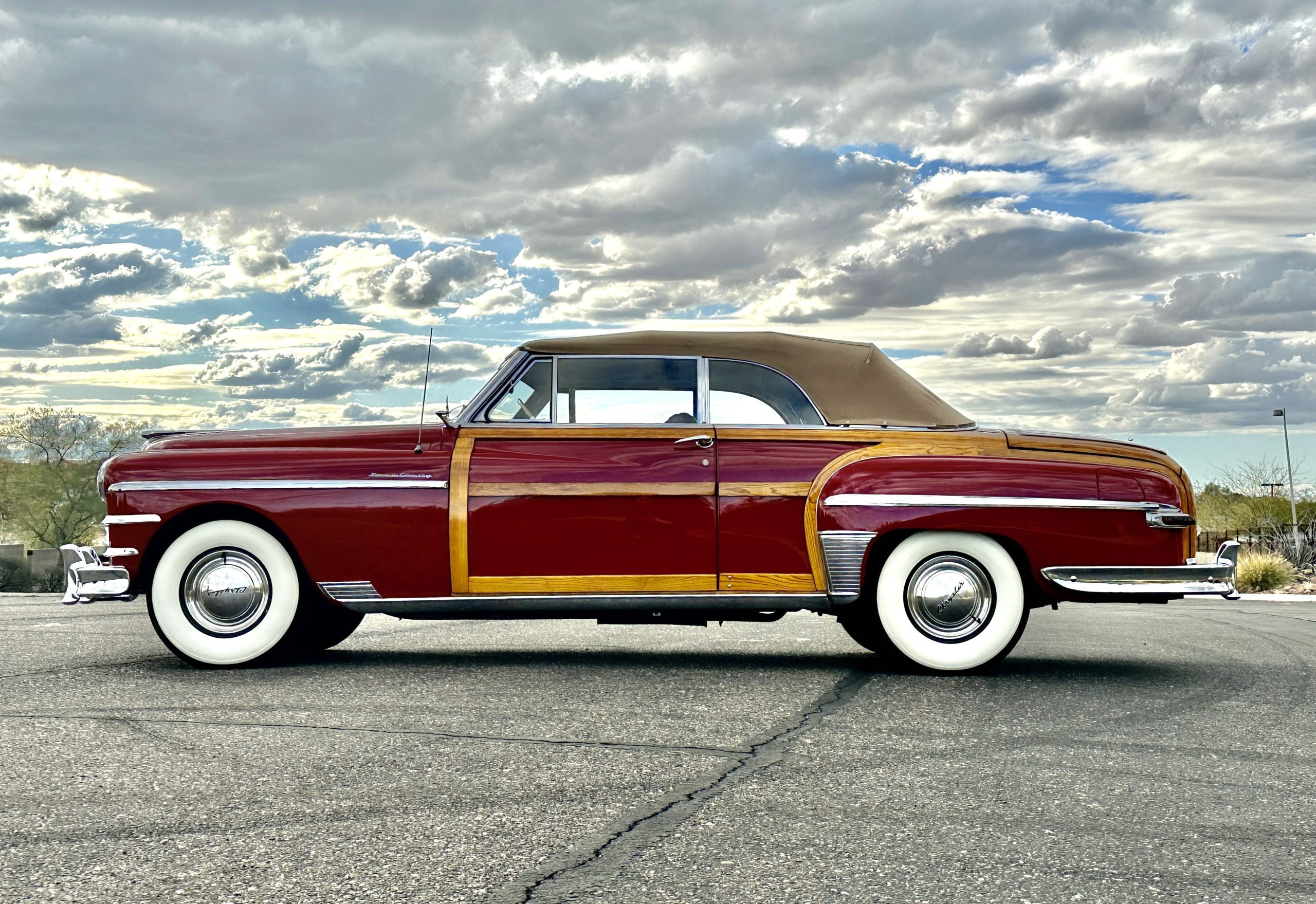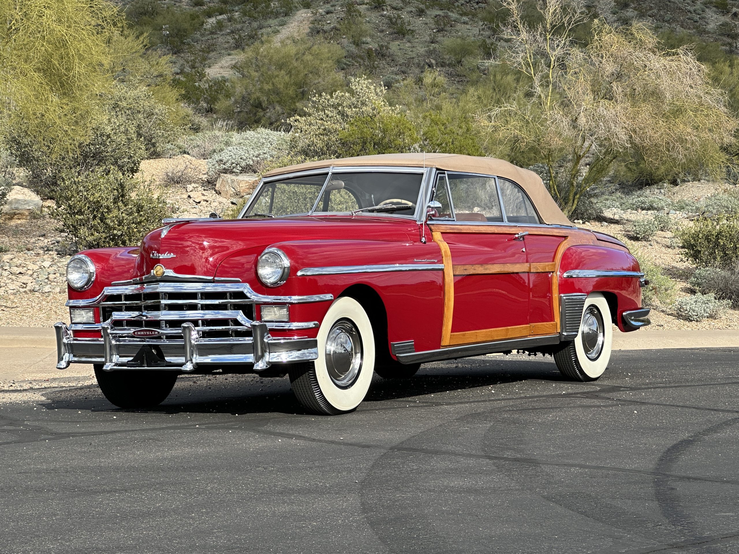 PRICED RESUCED FOR QUICK SALE!! This beautifully restored 1949 Chrysler Town and Country Convertible is in gorgeous condition and is a multiple national show winner! She won an AACA National First in 1988 and an AACA Grand National First in 1990. She was also an award winner at the first Amelia Island Concours in 1996. This meticulously restored and rare Town and Country woodie convertible still shows amazing well years later in her rare and desirable color combination.