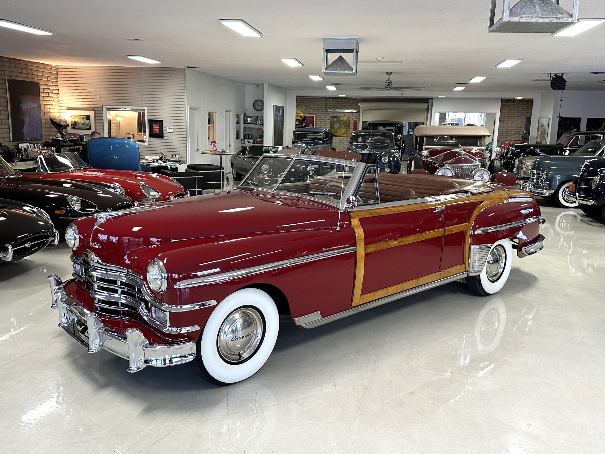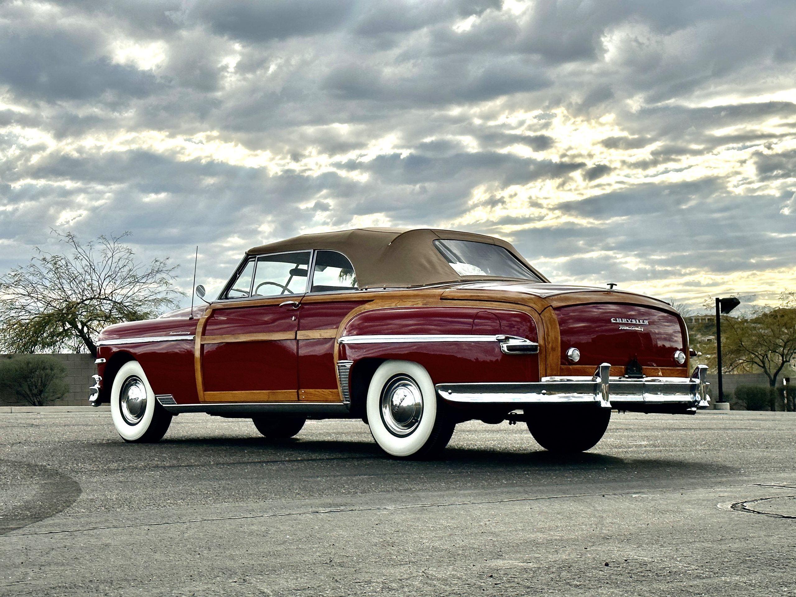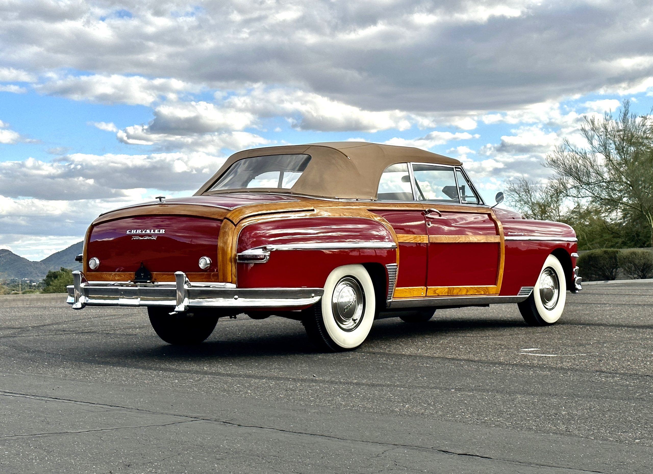 PRICED RESUCED FOR QUICK SALE!! This beautifully restored 1949 Chrysler Town and Country Convertible is in gorgeous condition and is a multiple national show winner! She won an AACA National First in 1988 and an AACA Grand National First in 1990. She was also an award winner at the first Amelia Island Concours in 1996. This meticulously restored and rare Town and Country woodie convertible still shows amazing well years later in her rare and desirable color combination.