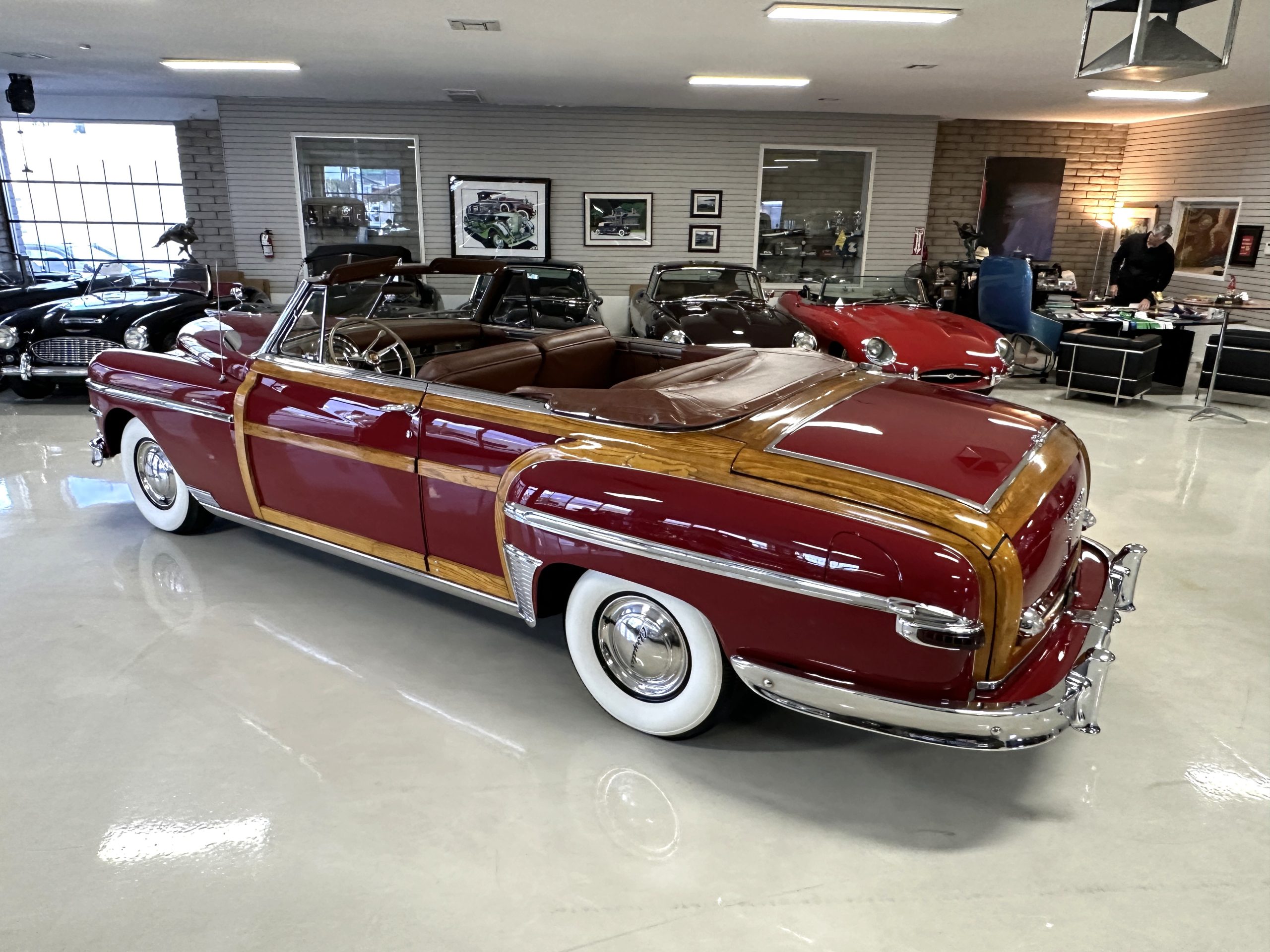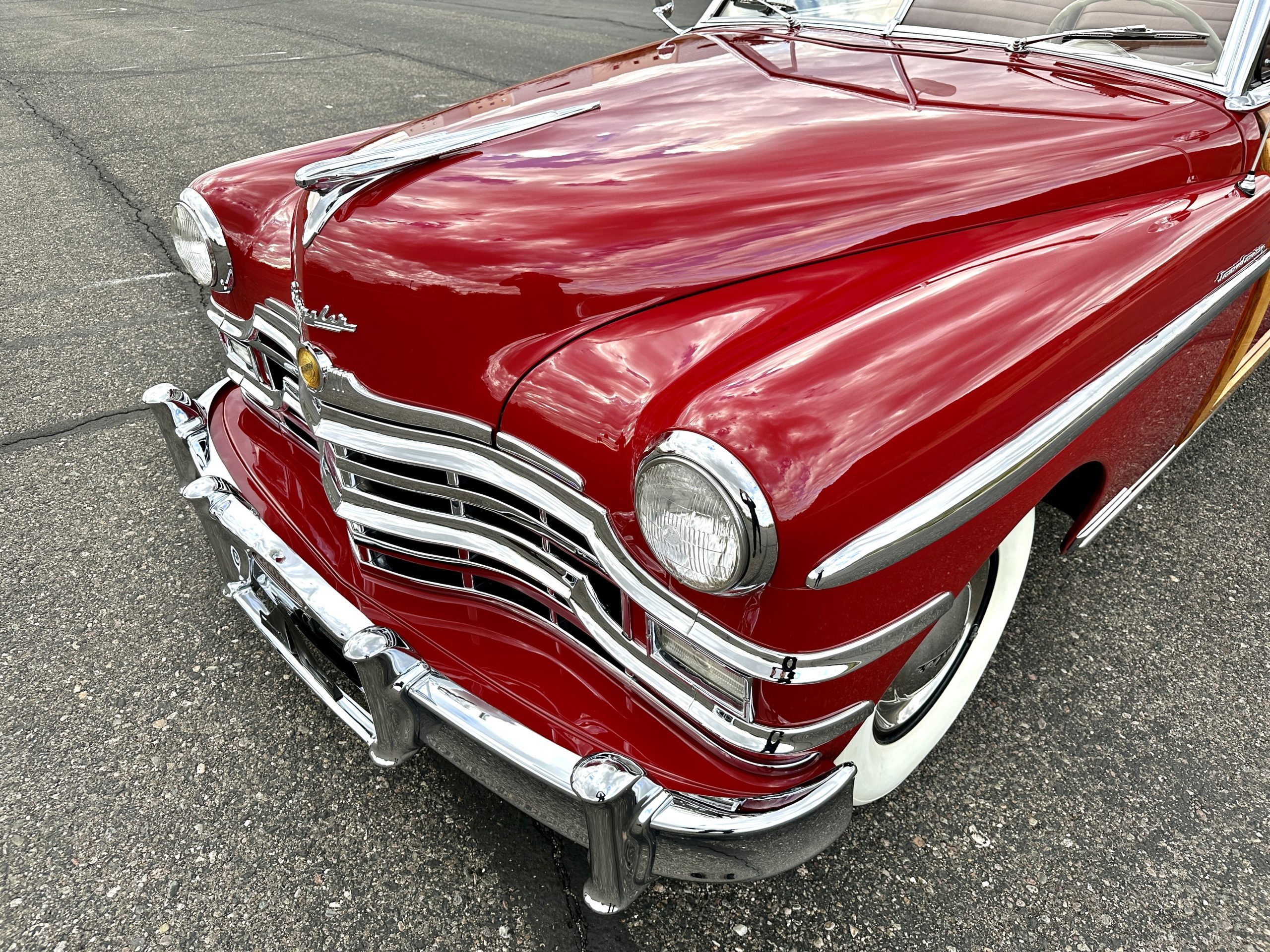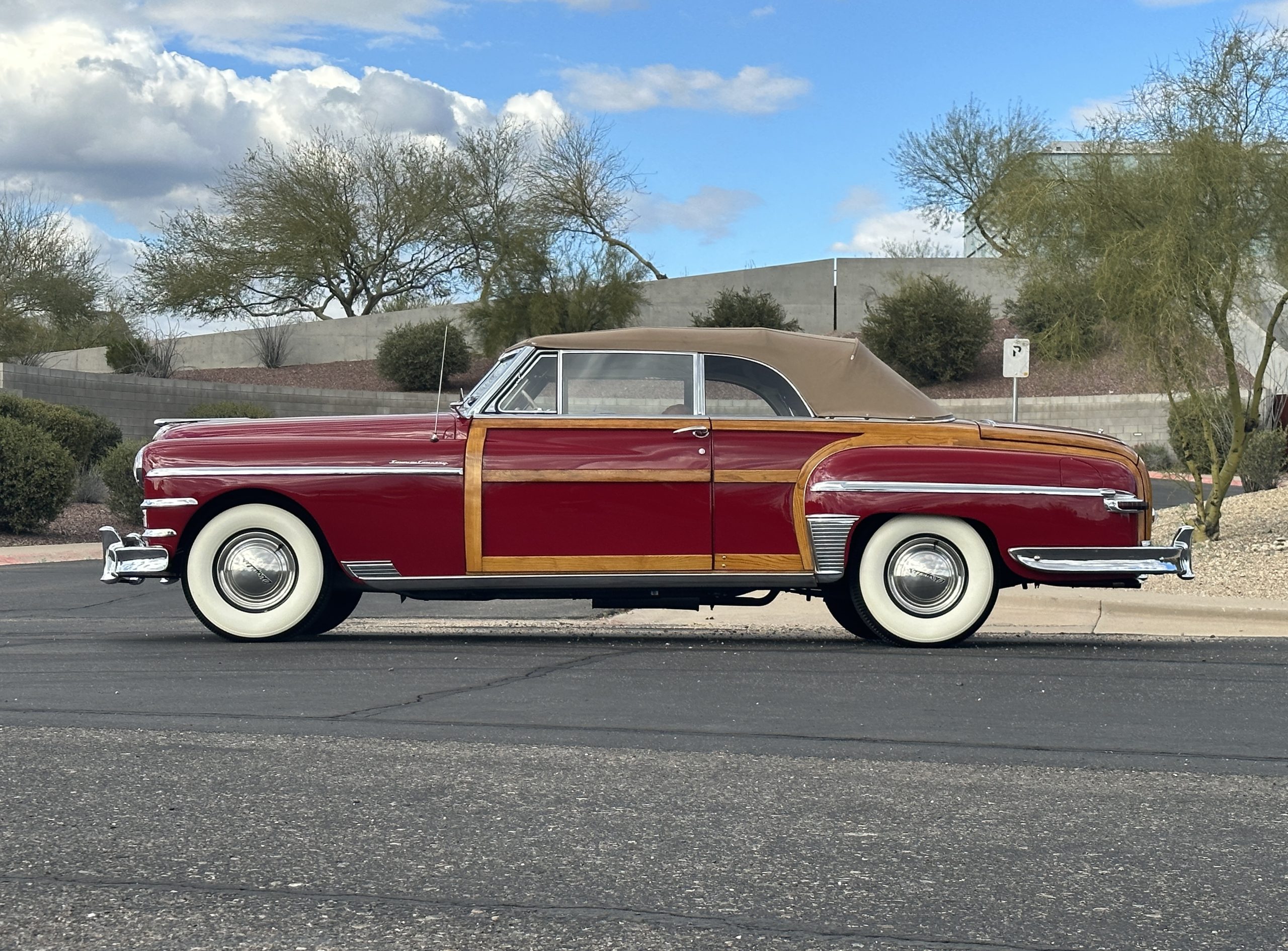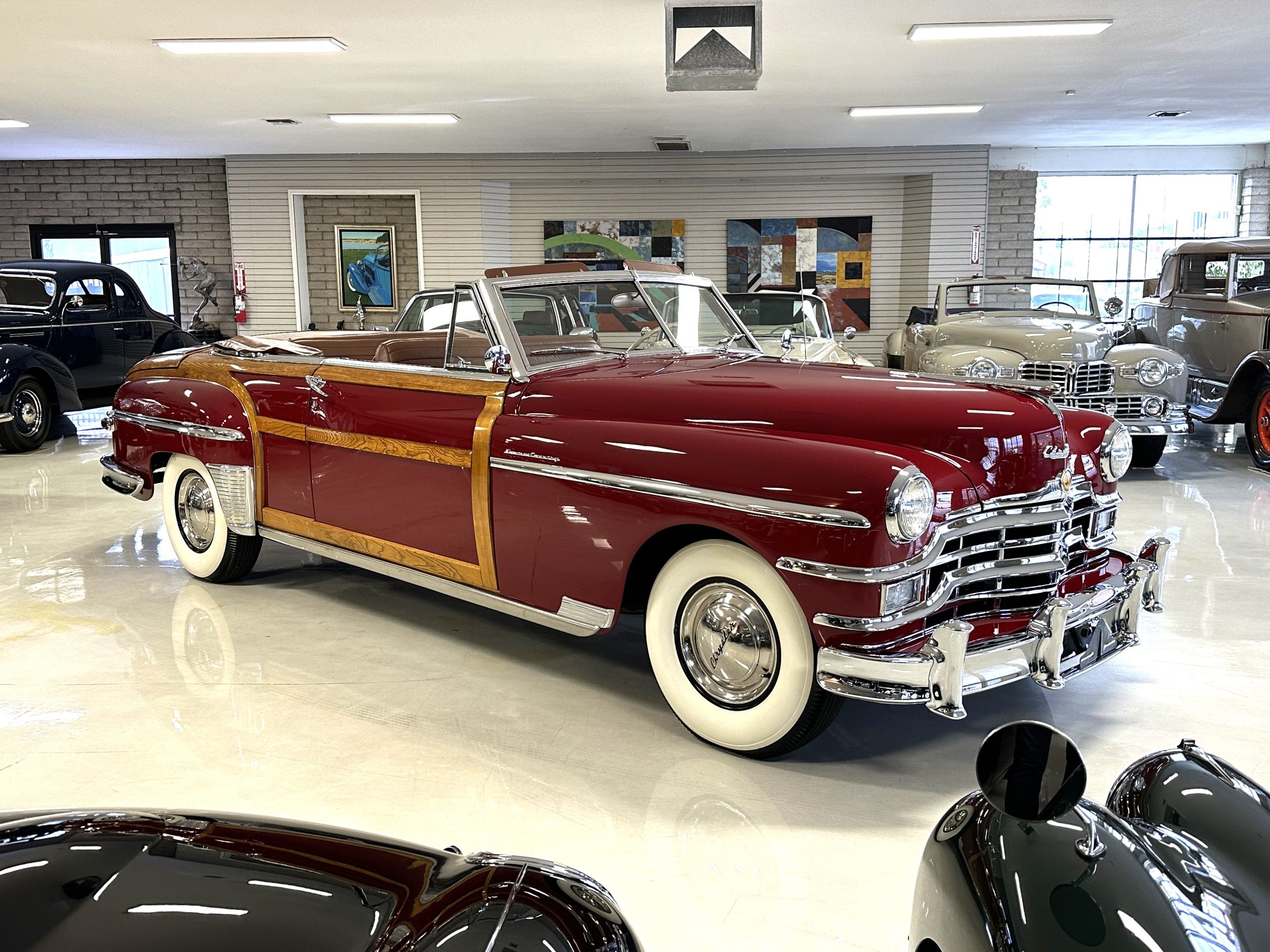 PRICED RESUCED FOR QUICK SALE!! This beautifully restored 1949 Chrysler Town and Country Convertible is in gorgeous condition and is a multiple national show winner! She won an AACA National First in 1988 and an AACA Grand National First in 1990. She was also an award winner at the first Amelia Island Concours in 1996. This meticulously restored and rare Town and Country woodie convertible still shows amazing well years later in her rare and desirable color combination.
