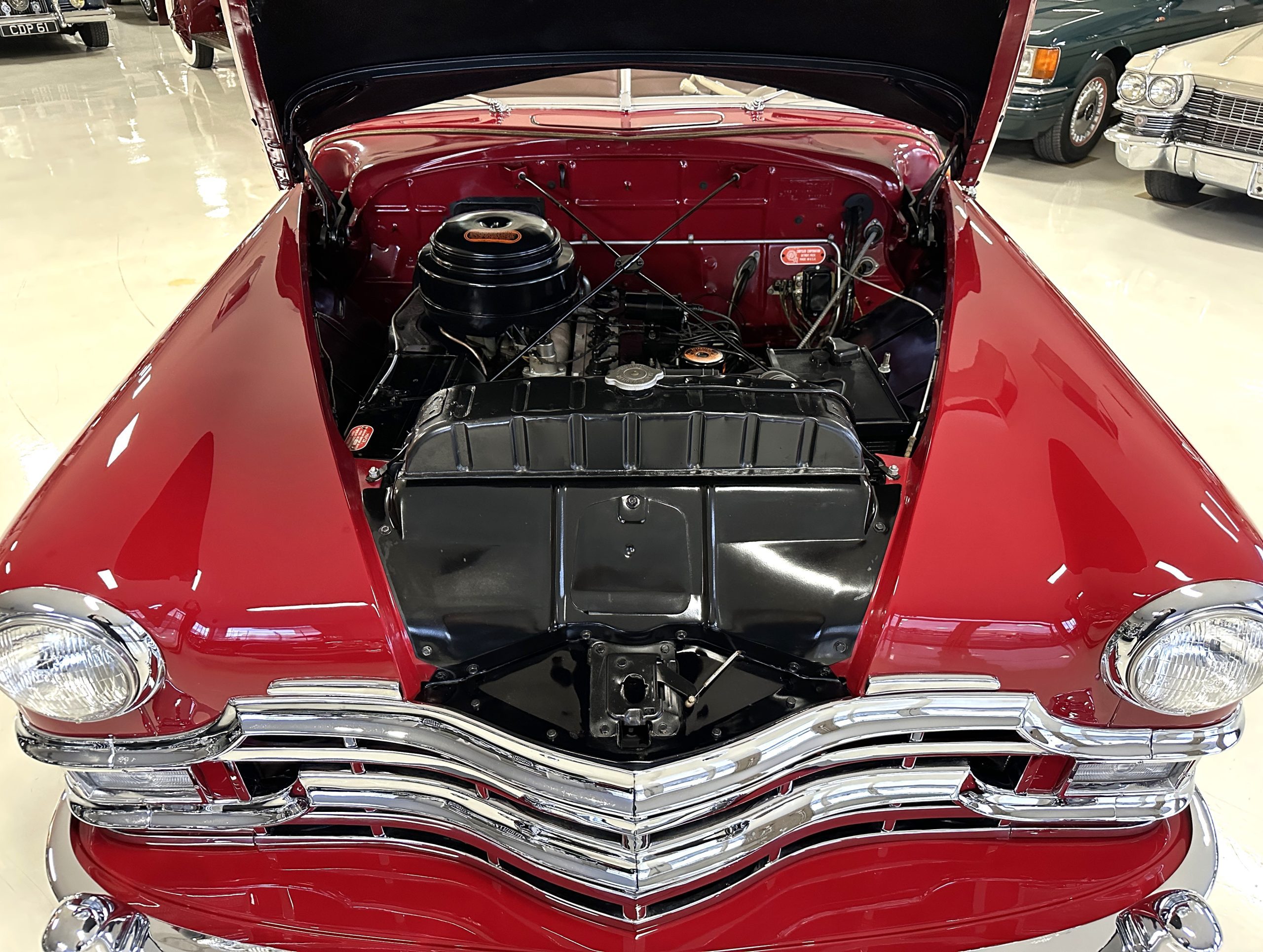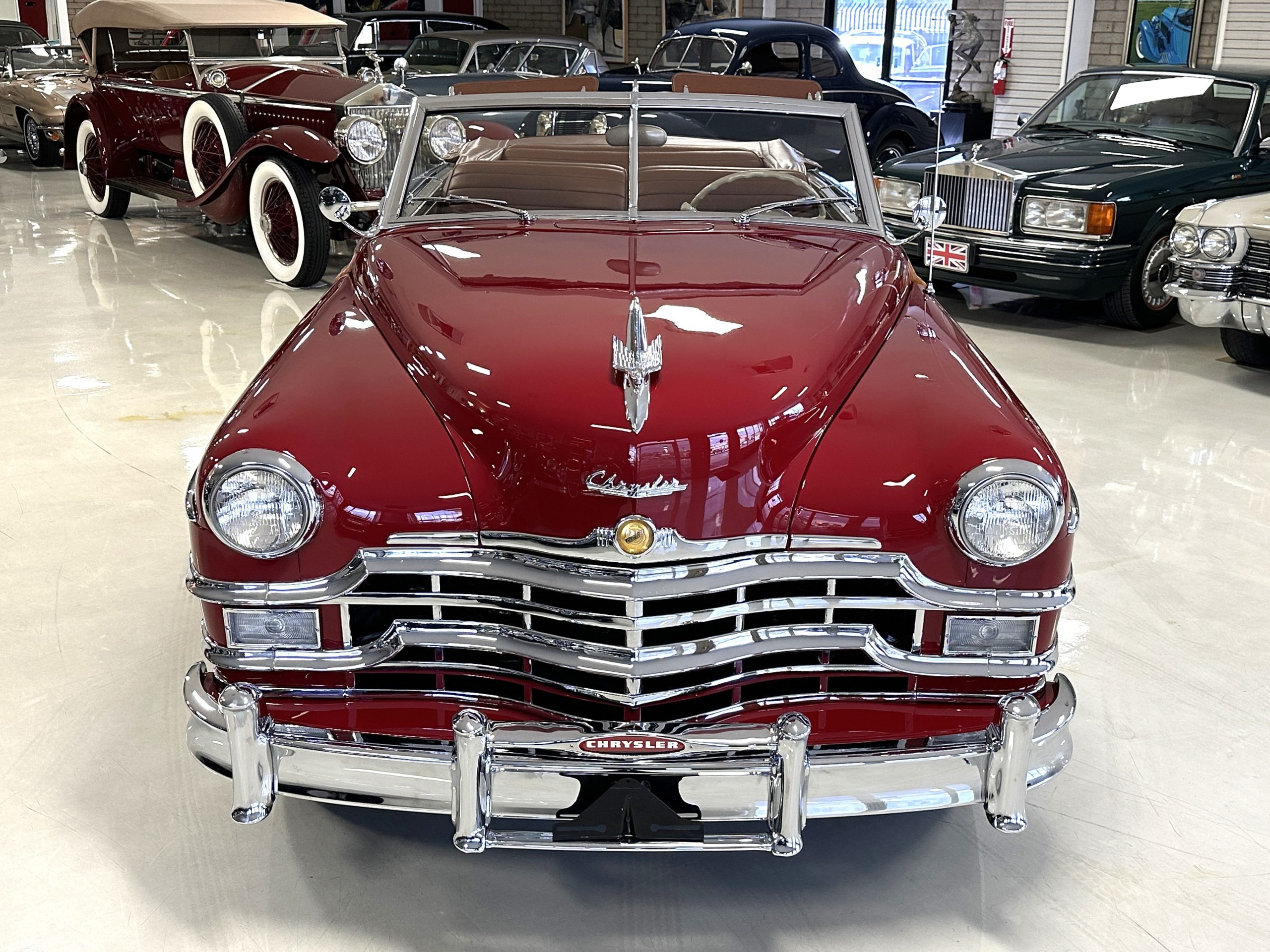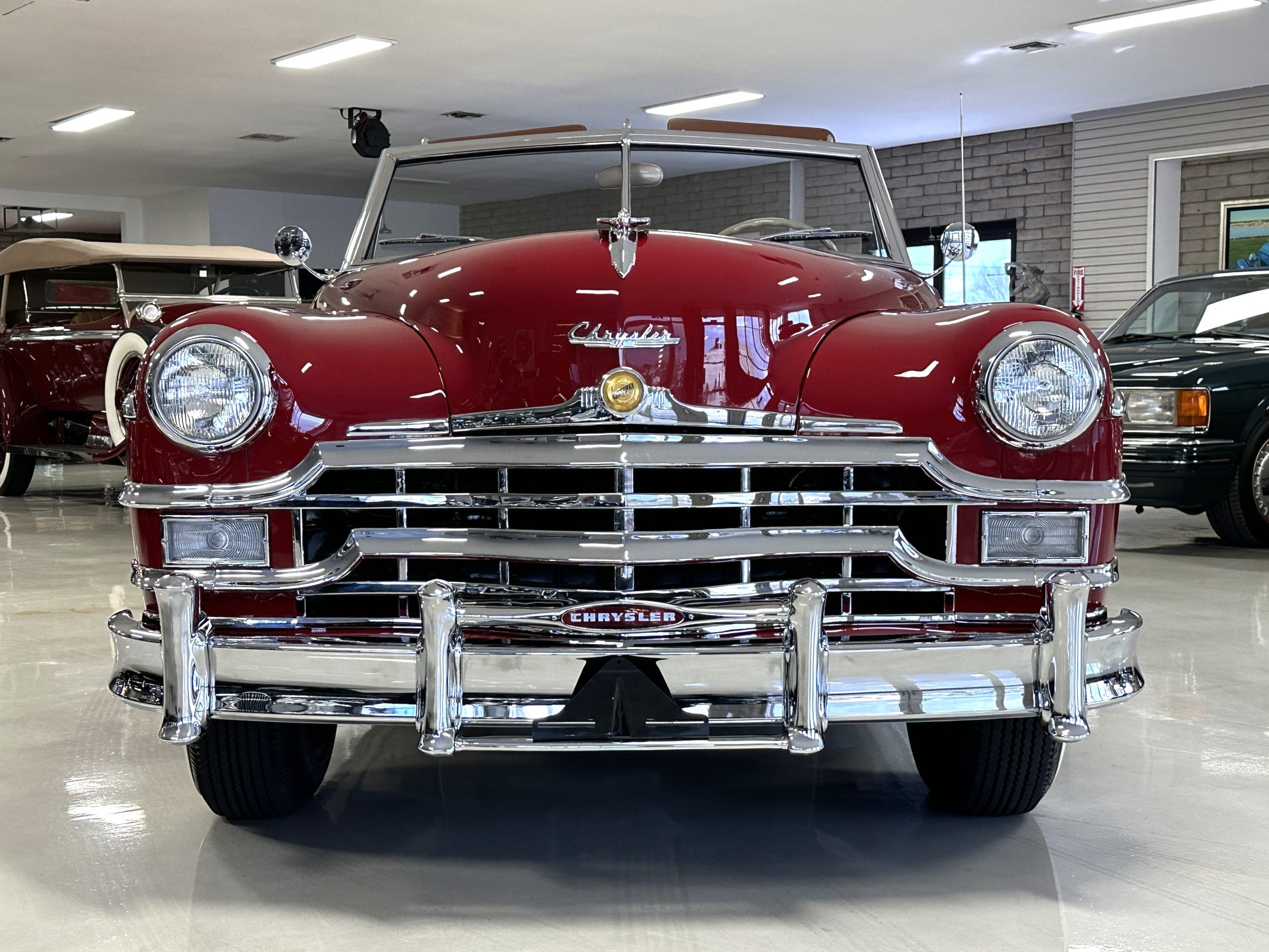 This is one of 993 Town and Country convertibles produced in 1949 and is of the last 30 made in the production run. The survival rate is low, and it is believed that only about 15% survived. This Town and Country received a concours quality, no-expense spared restoration in the mid-1980s by owner Forrest R. Wilkerson of Fort Mill, SC and was competing in concours competitions by the Summer of 1988. She won a First Junior award at the AACA national meet in Hershey, Pennsylvania in 1988. She was sold in late-1988 to James K. Adams of Mechanicsburg, Pennsylvania. The Chrysler was exhibited at Hershey three more times taking home a First Grand National award and a First Preservation award in 1990 and a Senior Grand National award in 1992. She was also an award winner at the first Amelia Island Concours in 1996. By 2011, she was sold overseas to a collector in The Netherlands where she was on display in an automotive museum in the Netherlands. Our clients, conscientious collectors in Sullivans Island, SC purchased her several years ago from the Netherlands collector. Our clients have maintained her gorgeous restoration condition to this day.