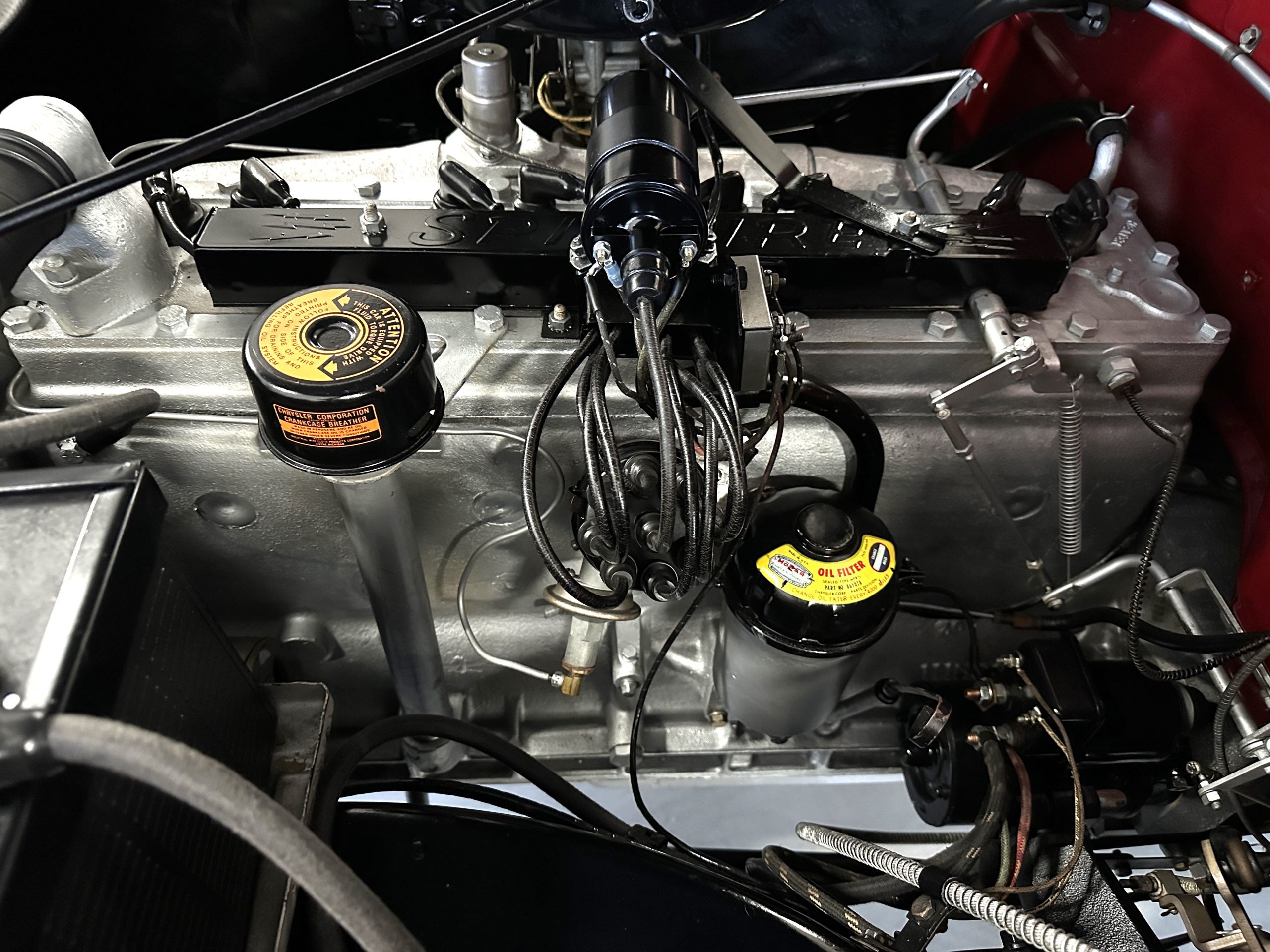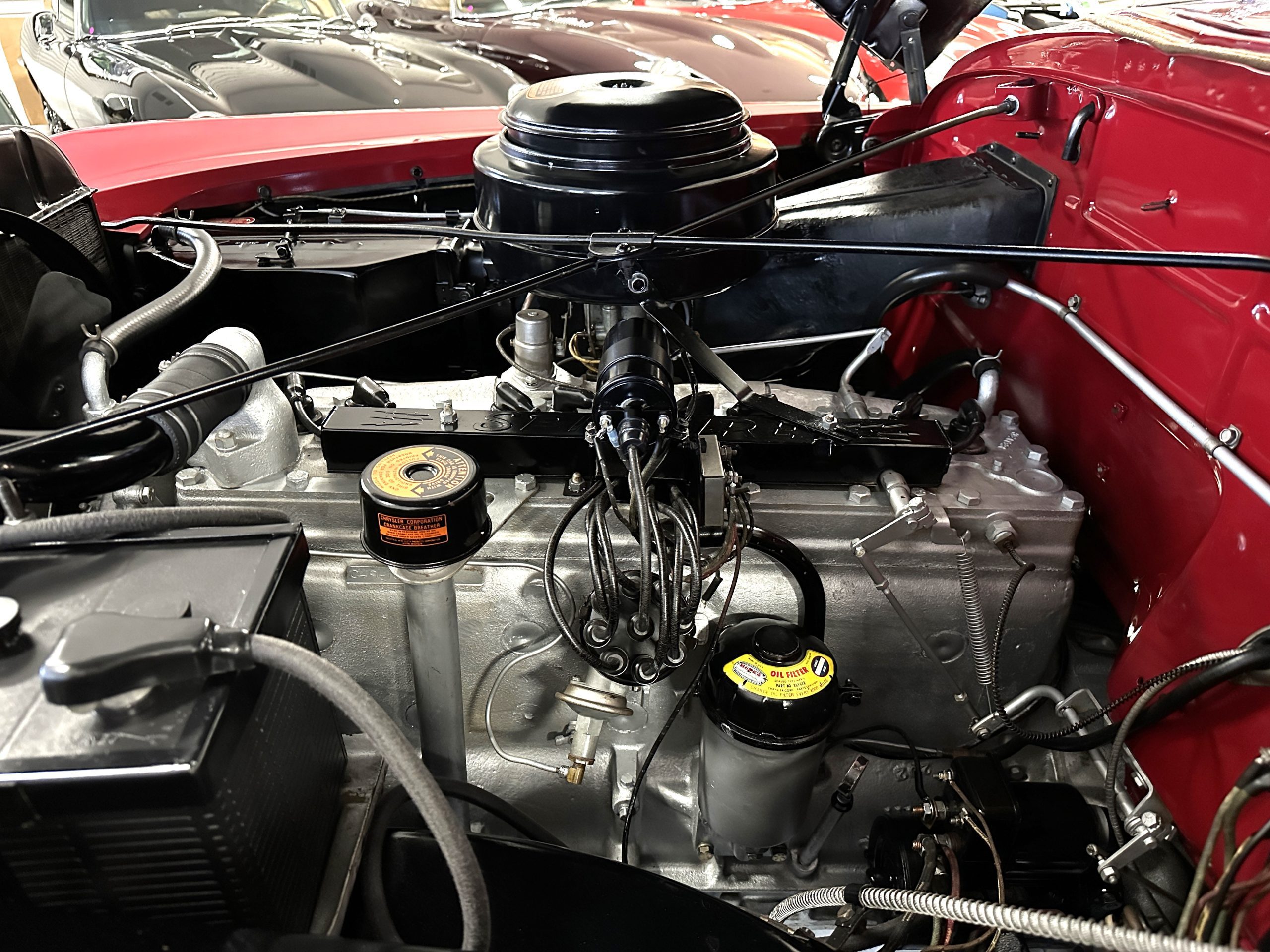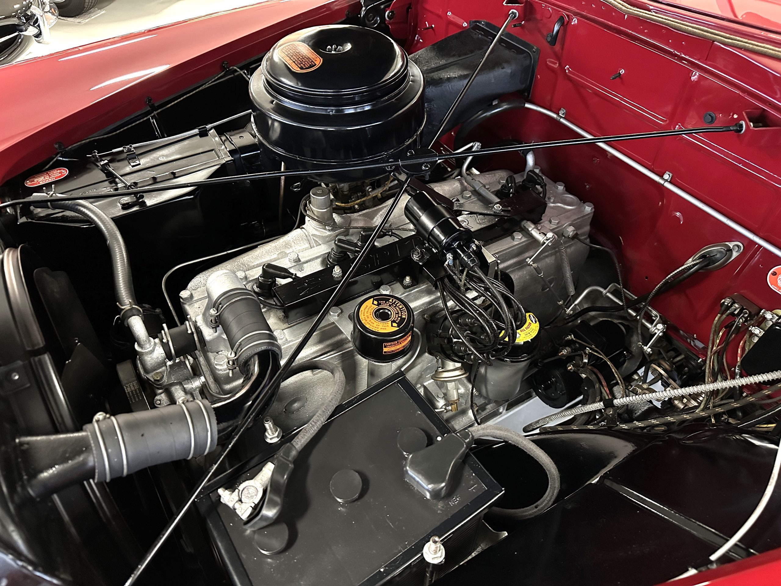 This Chrysler comes with its 323 cu in Spitfire inline 8-cylinder engine. The 135hp at 3,200 rpms are transferred through its 3-speed Prestomatic fluid drive transmission which has two forward gears and an electric overdrive unit that can be applied in either gear for a total of four forward speeds. The engine compartment is well detailed and shows beautifully. The chassis is well detailed and shows very well. This Chrysler performs very well and her engine and transmission are quiet and powerful. Everything feels tight and correct.