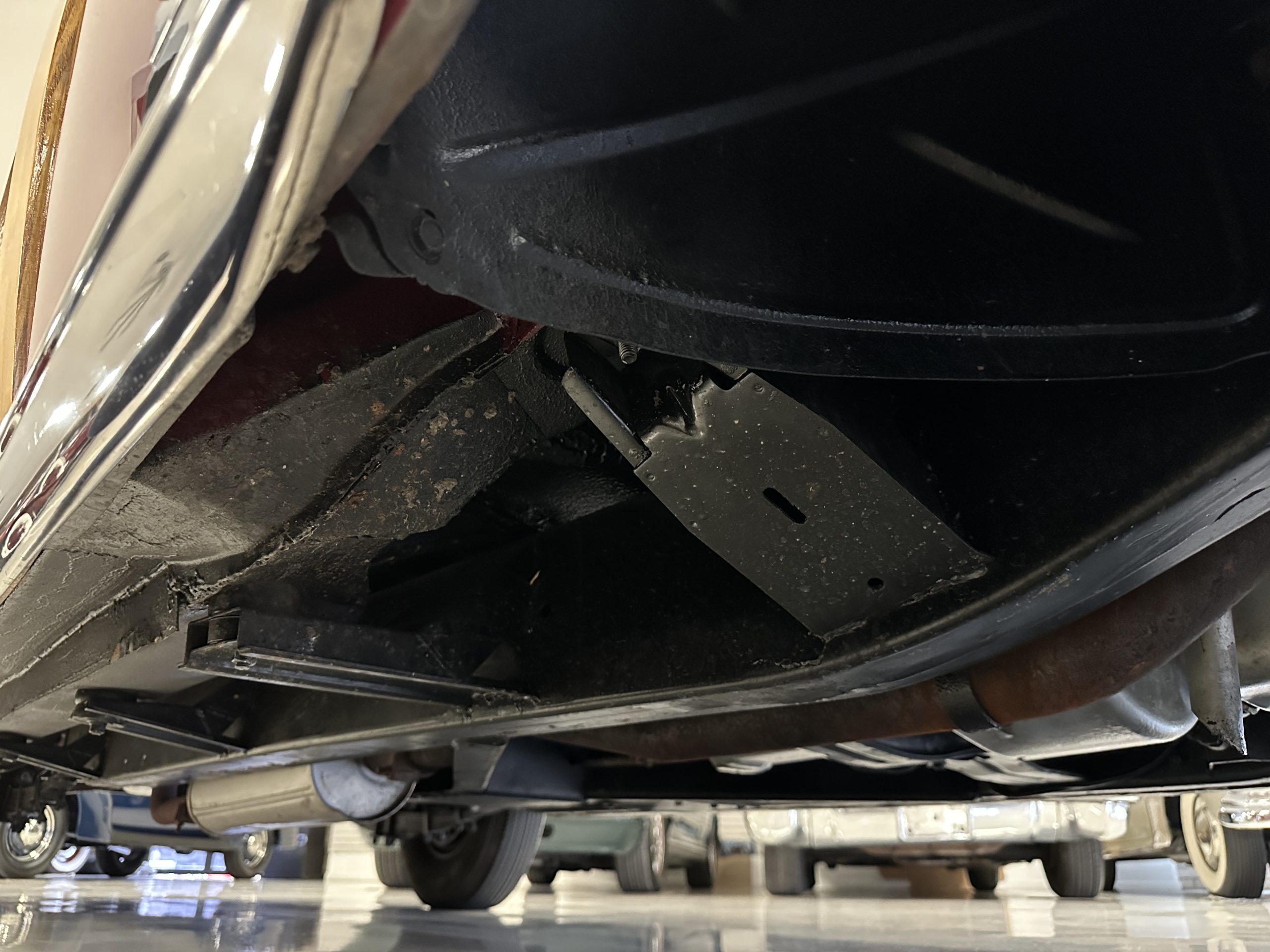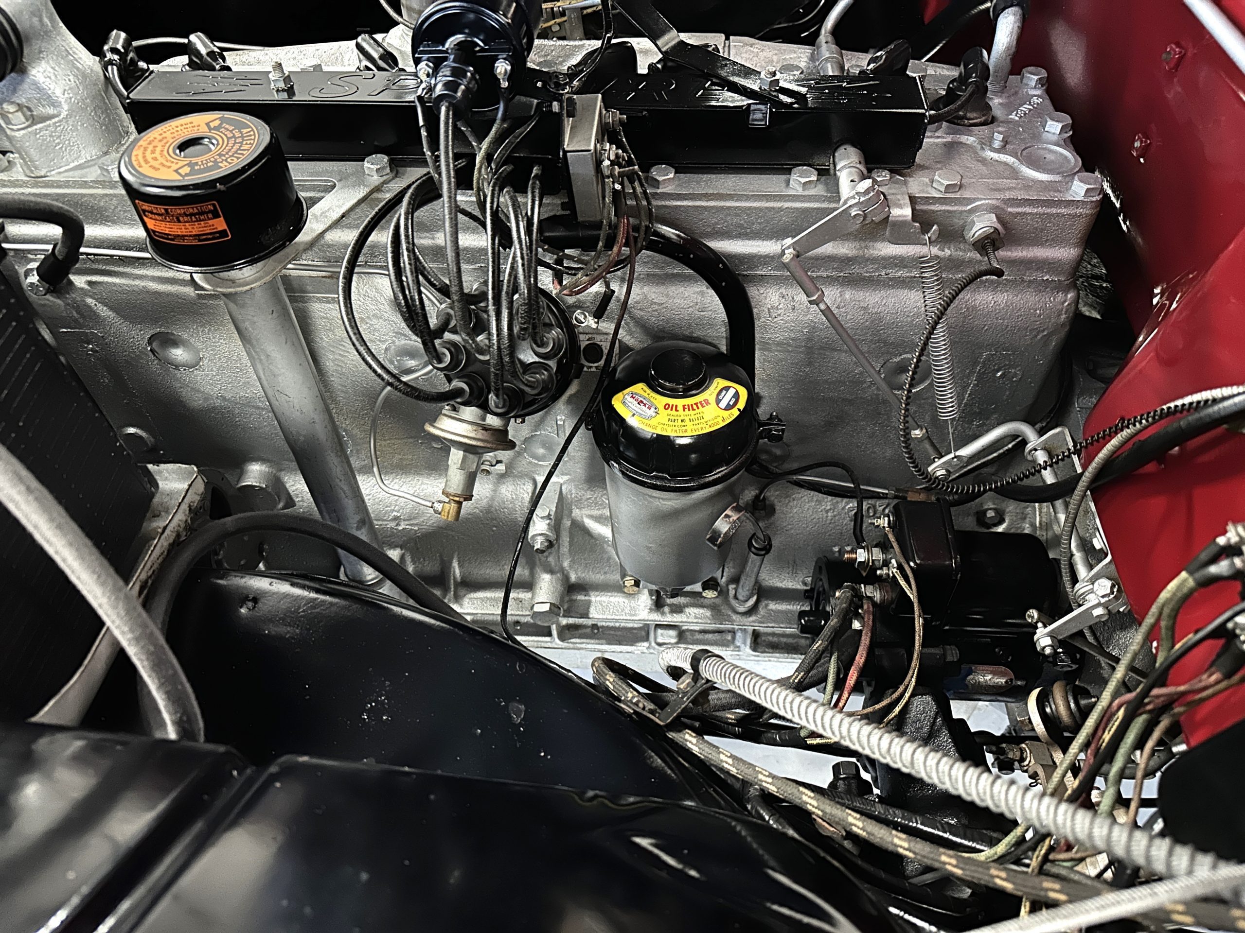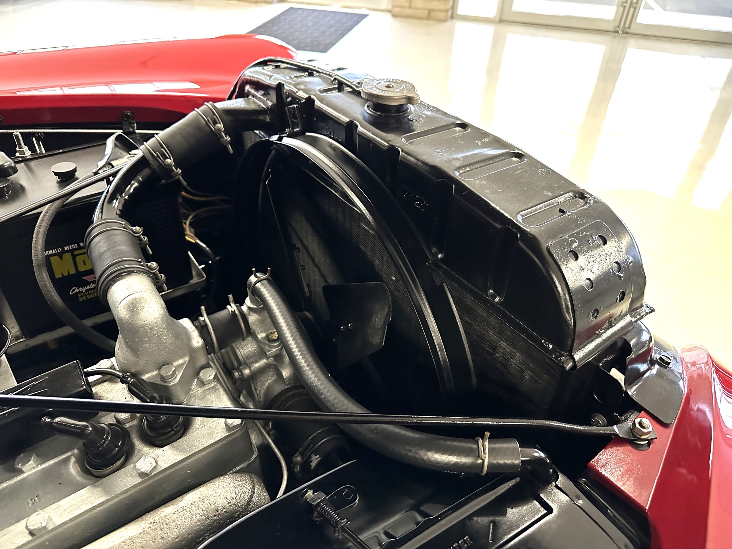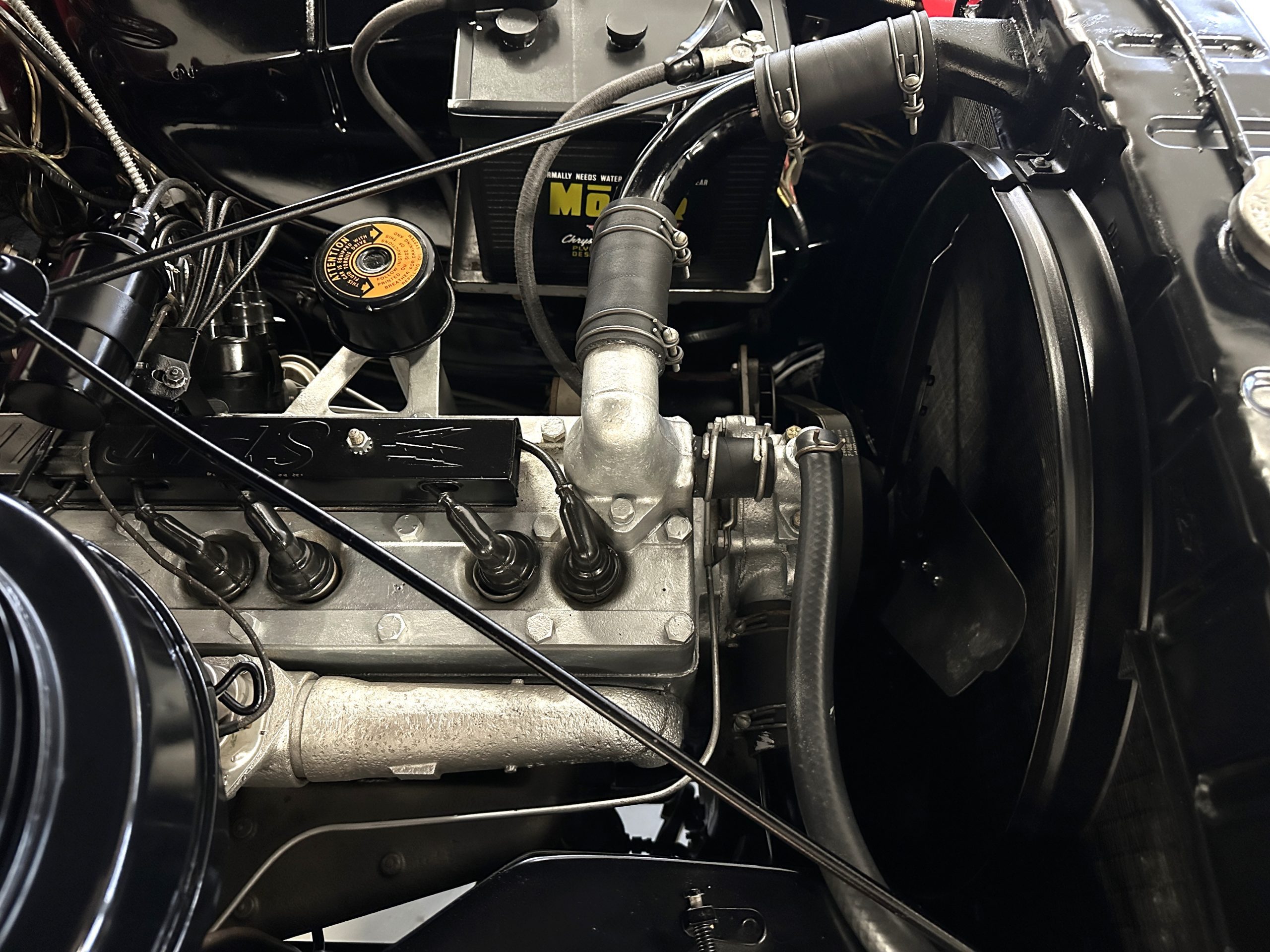This Chrysler comes with its 323 cu in Spitfire inline 8-cylinder engine. The 135hp at 3,200 rpms are transferred through its 3-speed Prestomatic fluid drive transmission which has two forward gears and an electric overdrive unit that can be applied in either gear for a total of four forward speeds. The engine compartment is well detailed and shows beautifully. The chassis is well detailed and shows very well. This Chrysler performs very well and her engine and transmission are quiet and powerful. Everything feels tight and correct.