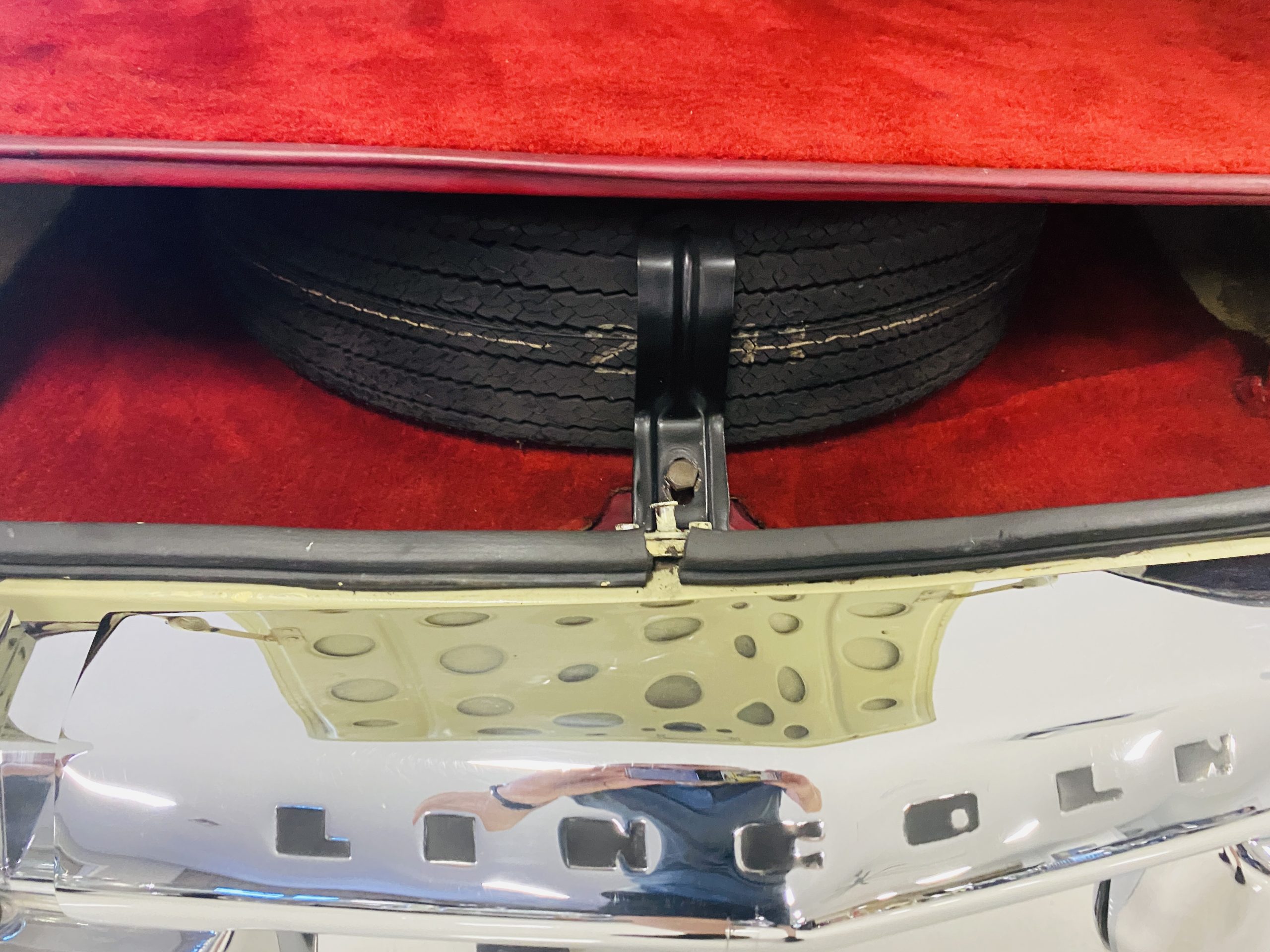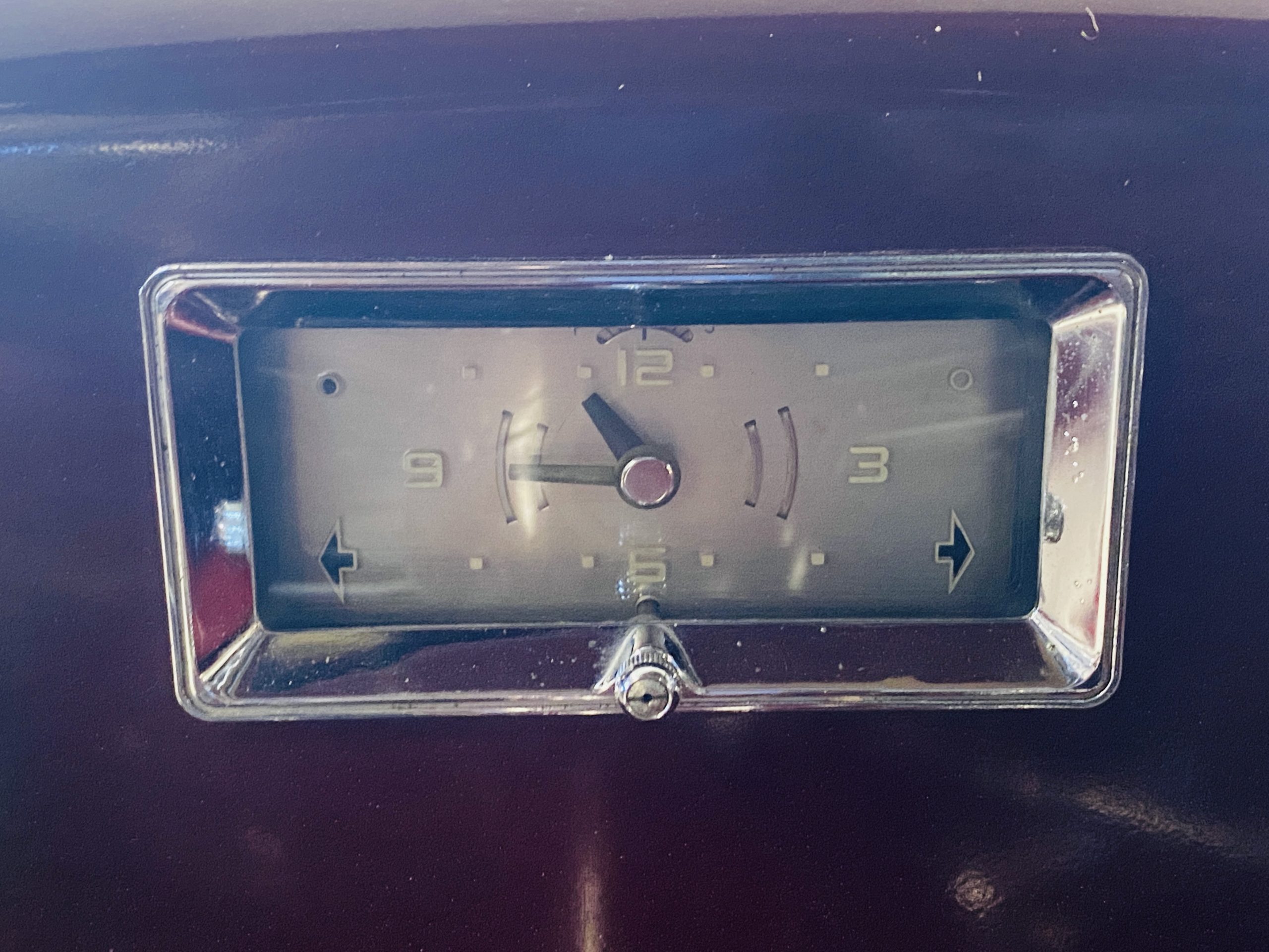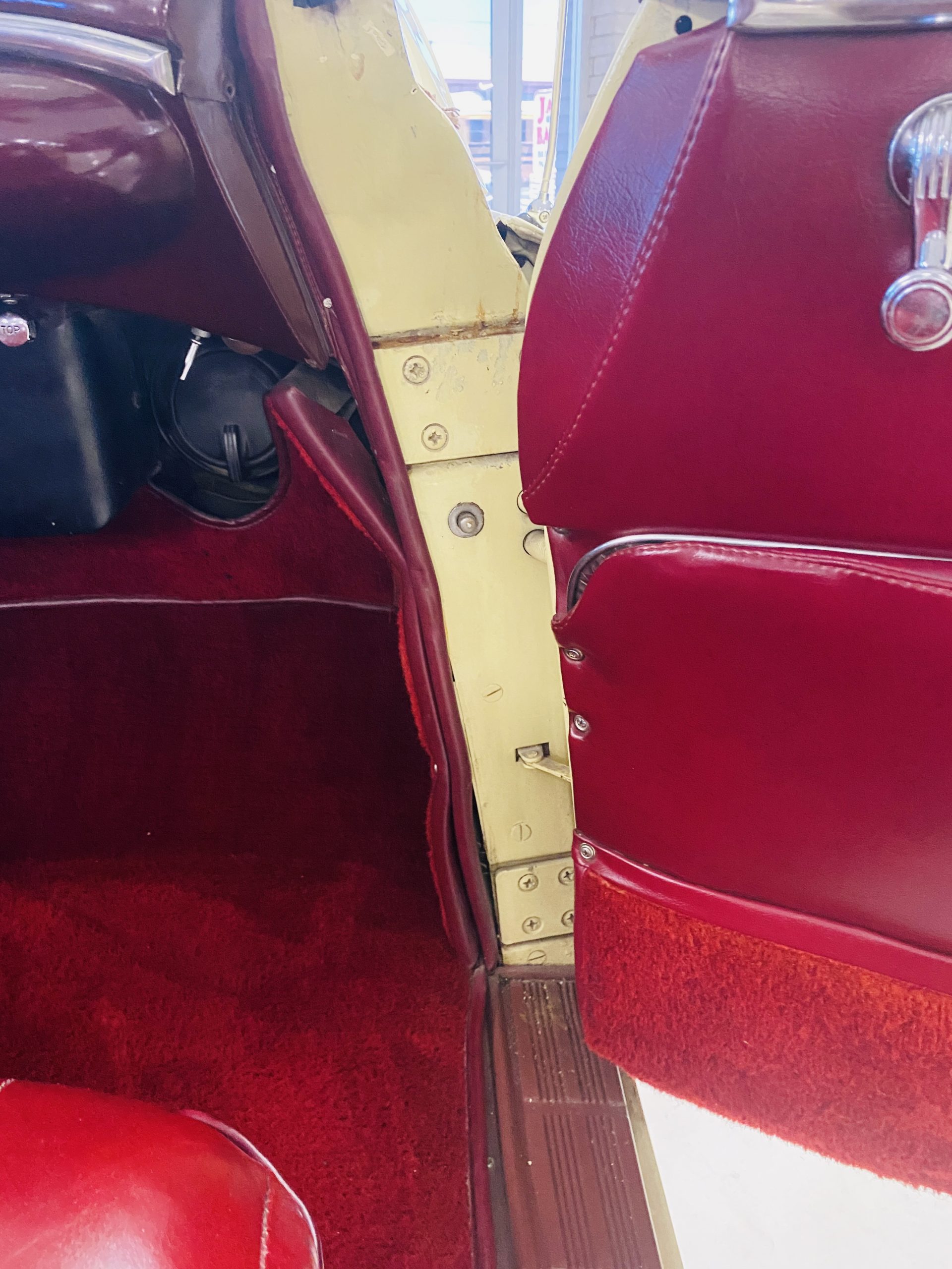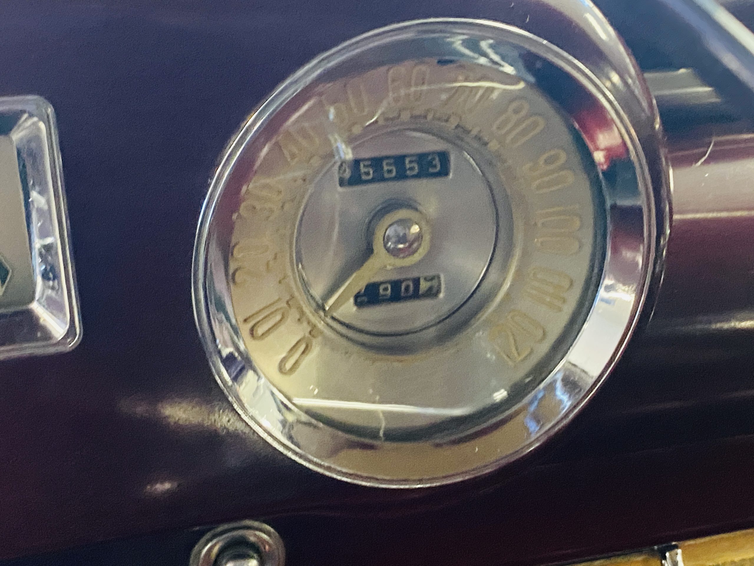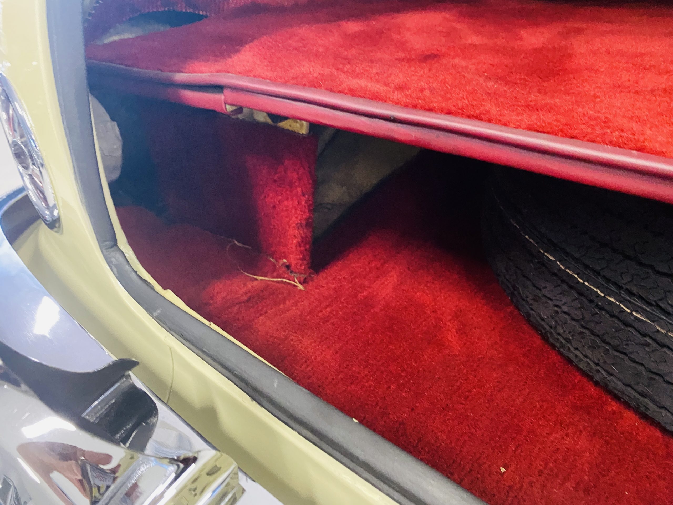 The correct solid maroon leather is in the perfect color to compliment the Calabash Yellow paint. The leather is very soft and supple and is in very nice condition overall, with only minor scratches from use over the years. The novel power operated front seat is functioning. The matching maroon painted dashboard is also in very nice original condition, supporting the low mileage and gentle care that its received over the decades. The exclusive gold hued knobs and buttons are also in very nice condition. The maroon carpeting is in overall good condition.