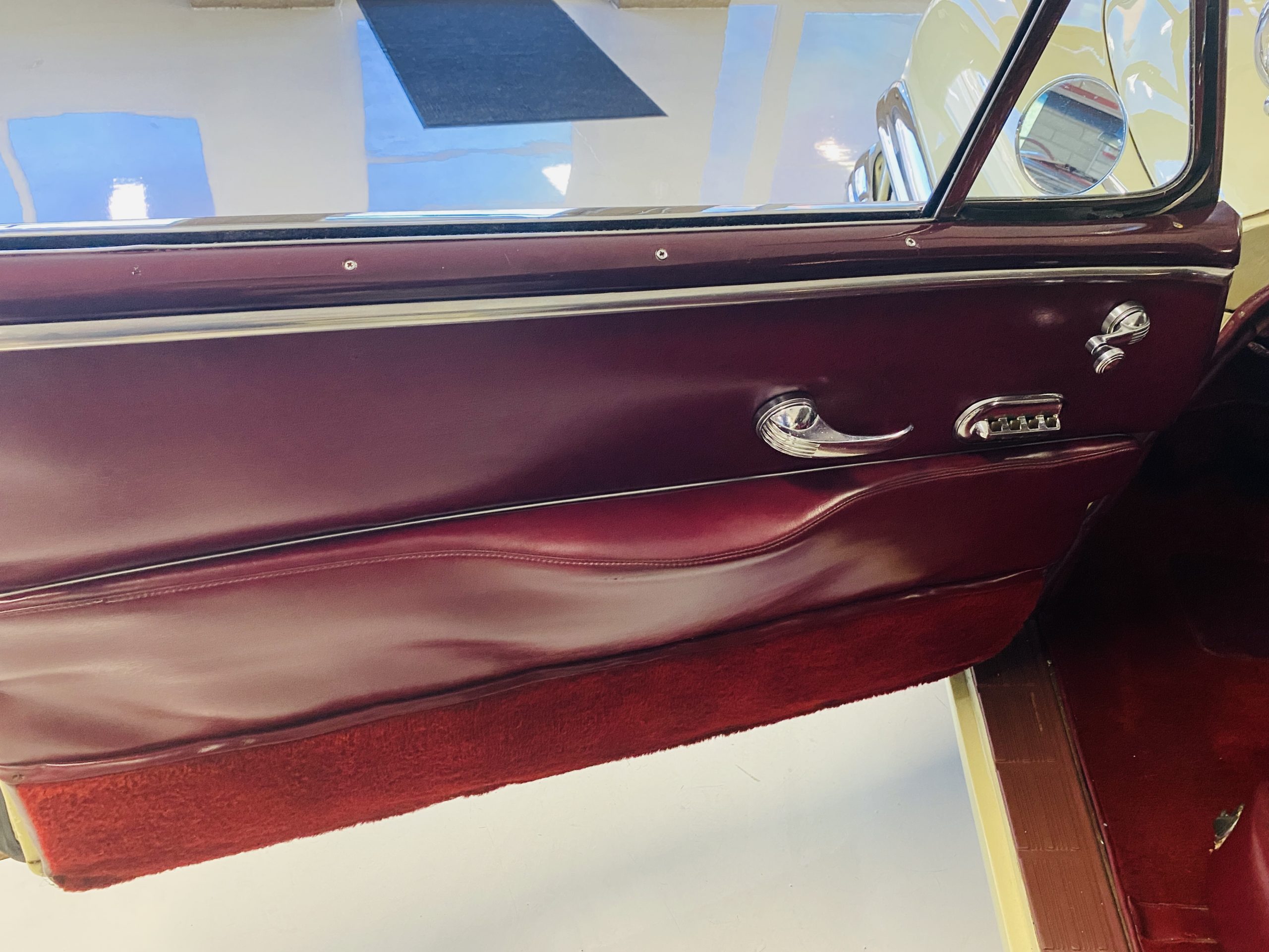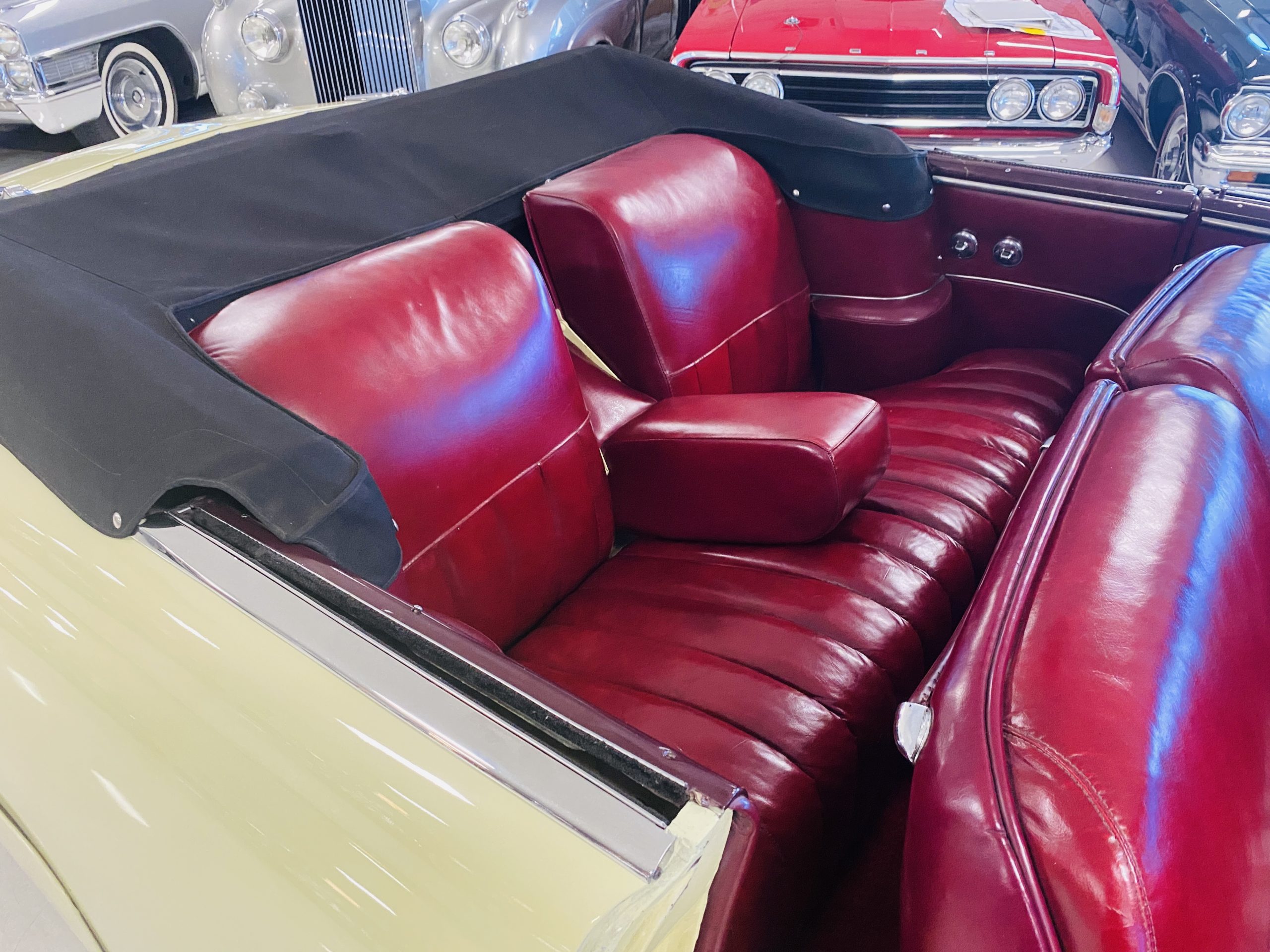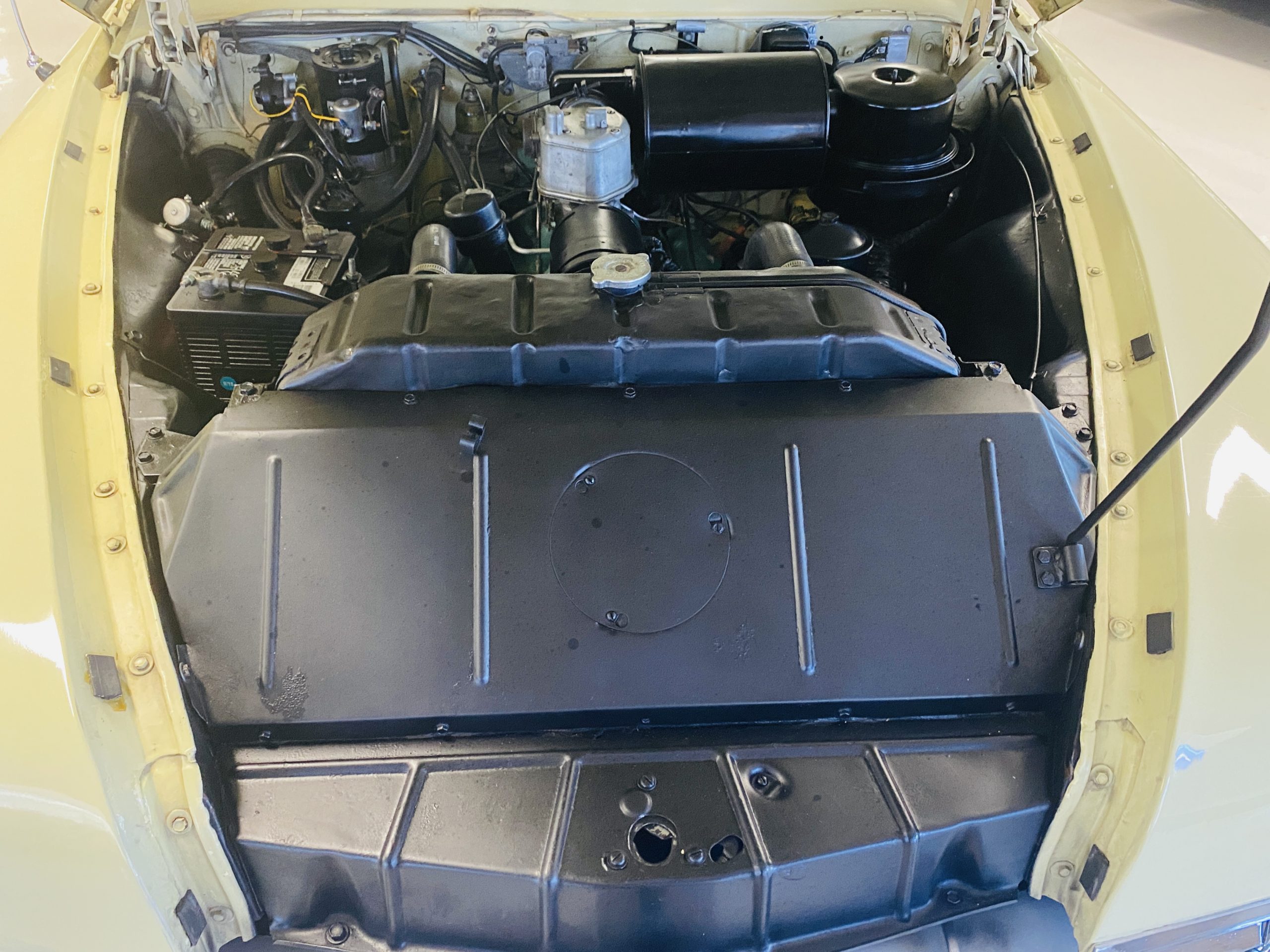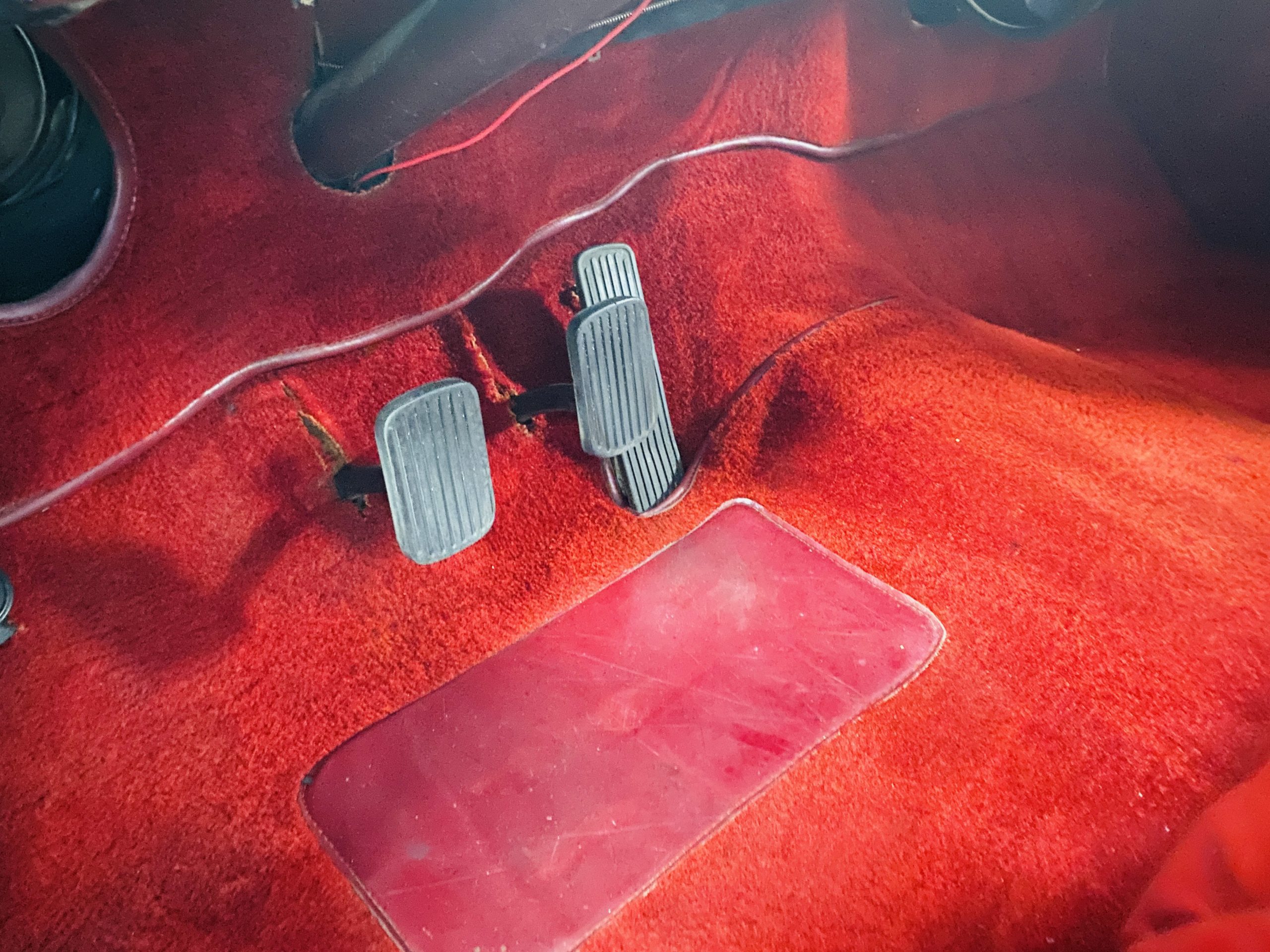 The correct solid maroon leather is in the perfect color to compliment the Calabash Yellow paint. The leather is very soft and supple and is in very nice condition overall, with only minor scratches from use over the years. The novel power operated front seat is functioning. The matching maroon painted dashboard is also in very nice original condition, supporting the low mileage and gentle care that its received over the decades. The exclusive gold hued knobs and buttons are also in very nice condition. The maroon carpeting is in overall good condition.