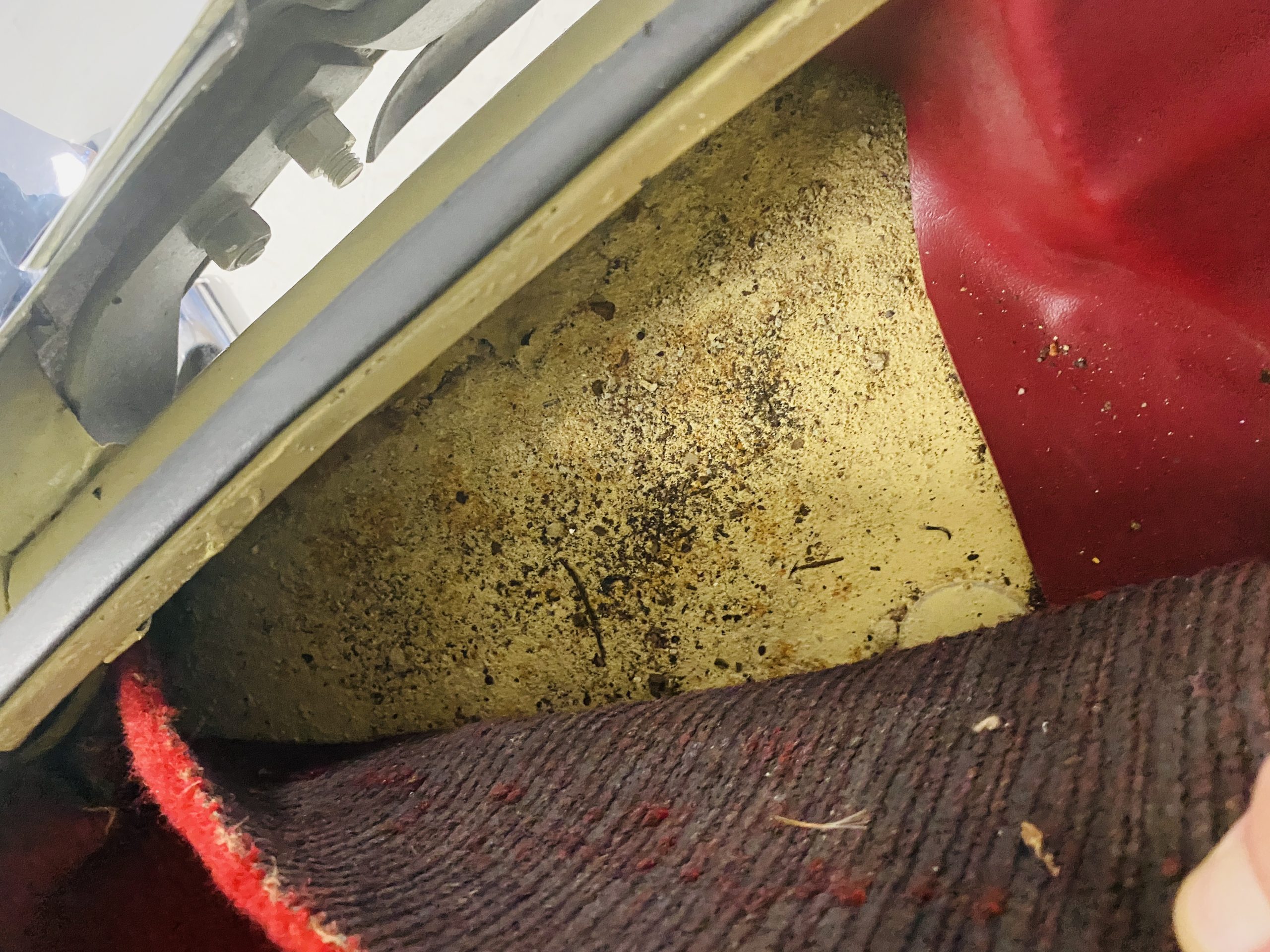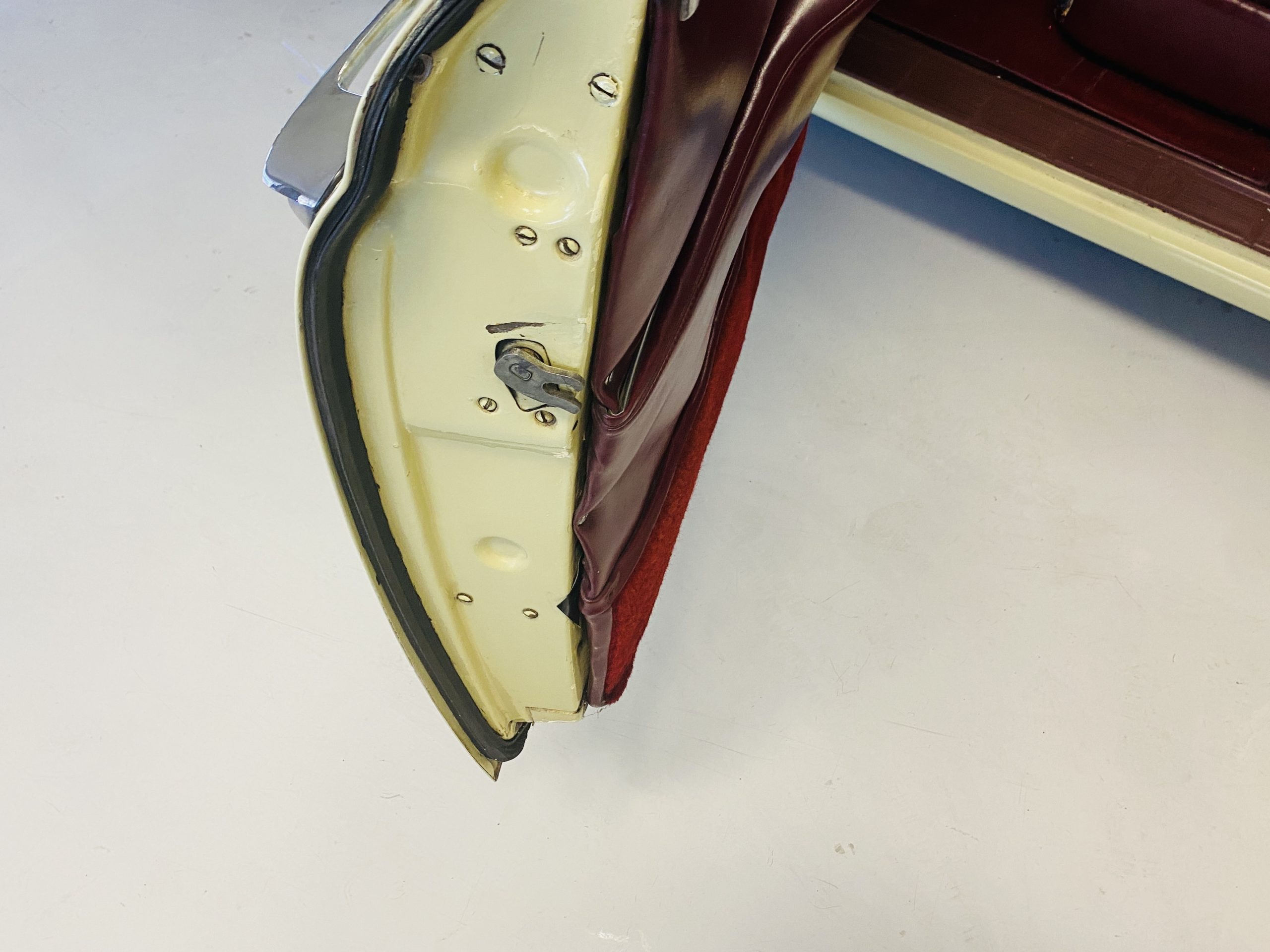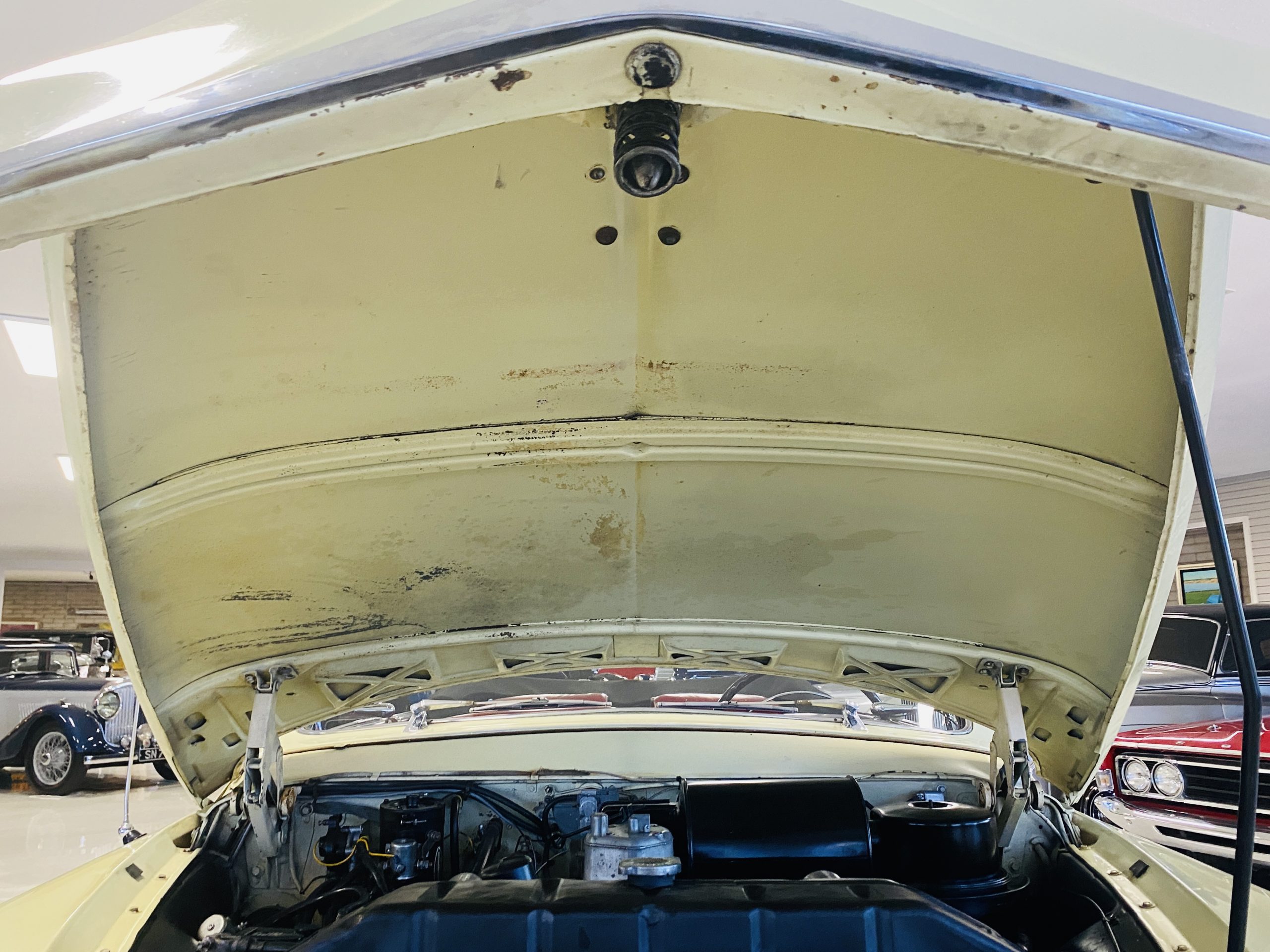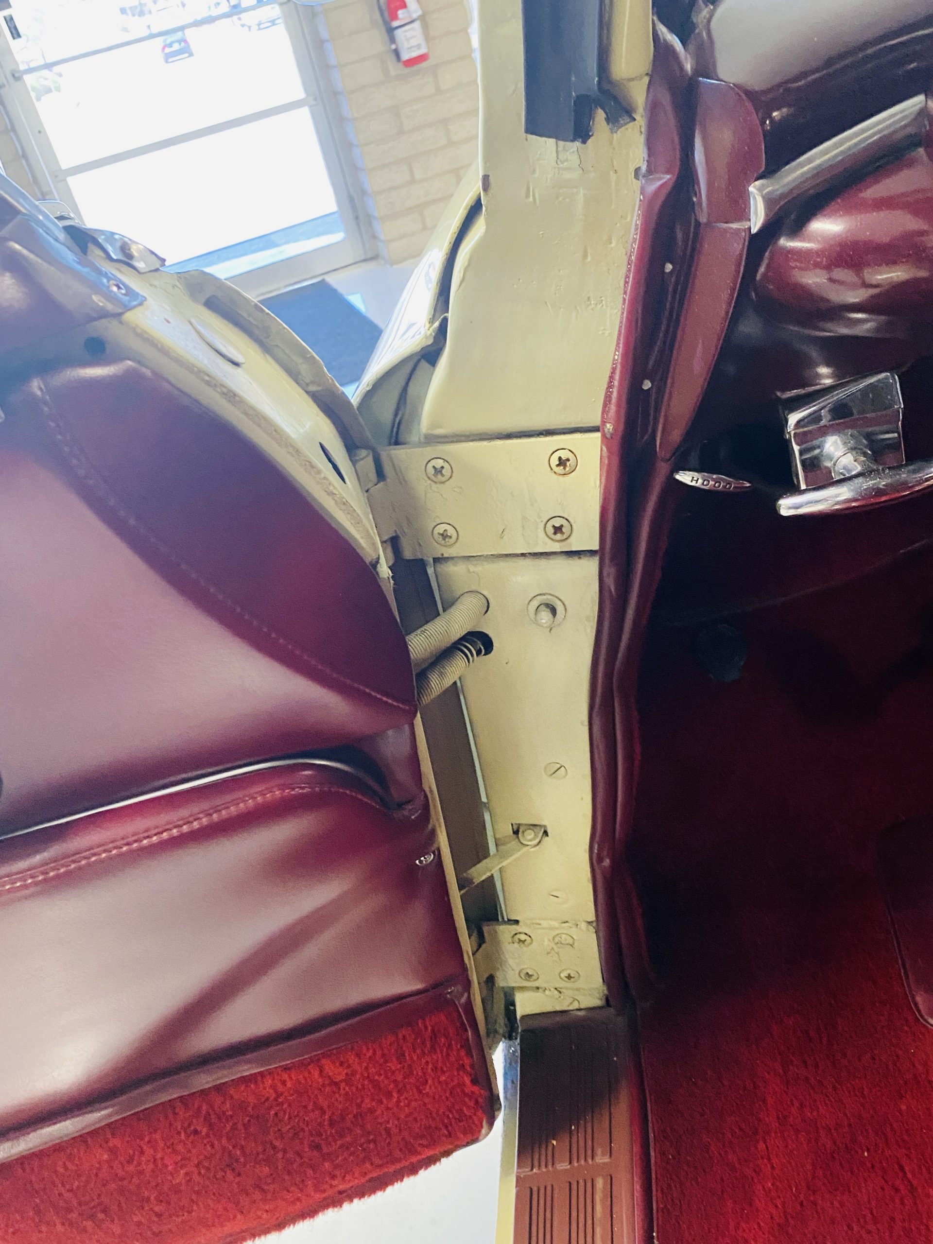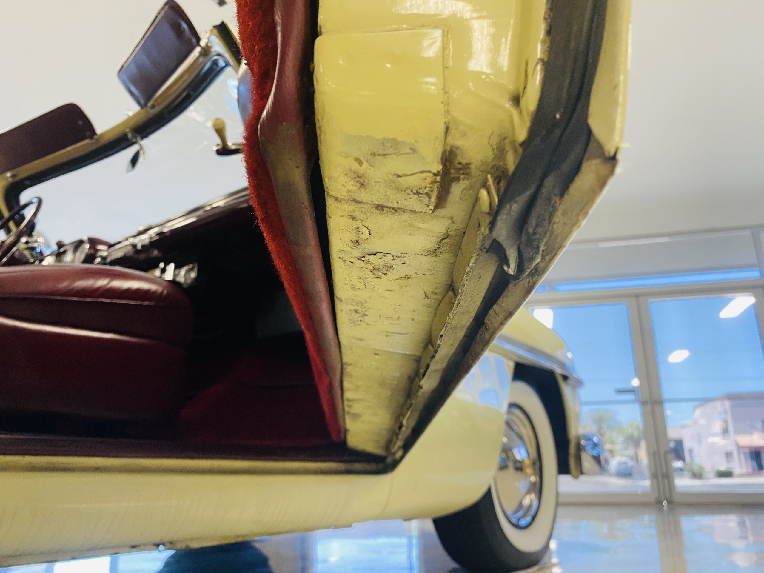 The correct solid maroon leather is in the perfect color to compliment the Calabash Yellow paint. The leather is very soft and supple and is in very nice condition overall, with only minor scratches from use over the years. The novel power operated front seat is functioning. The matching maroon painted dashboard is also in very nice original condition, supporting the low mileage and gentle care that its received over the decades. The exclusive gold hued knobs and buttons are also in very nice condition. The maroon carpeting is in overall good condition.