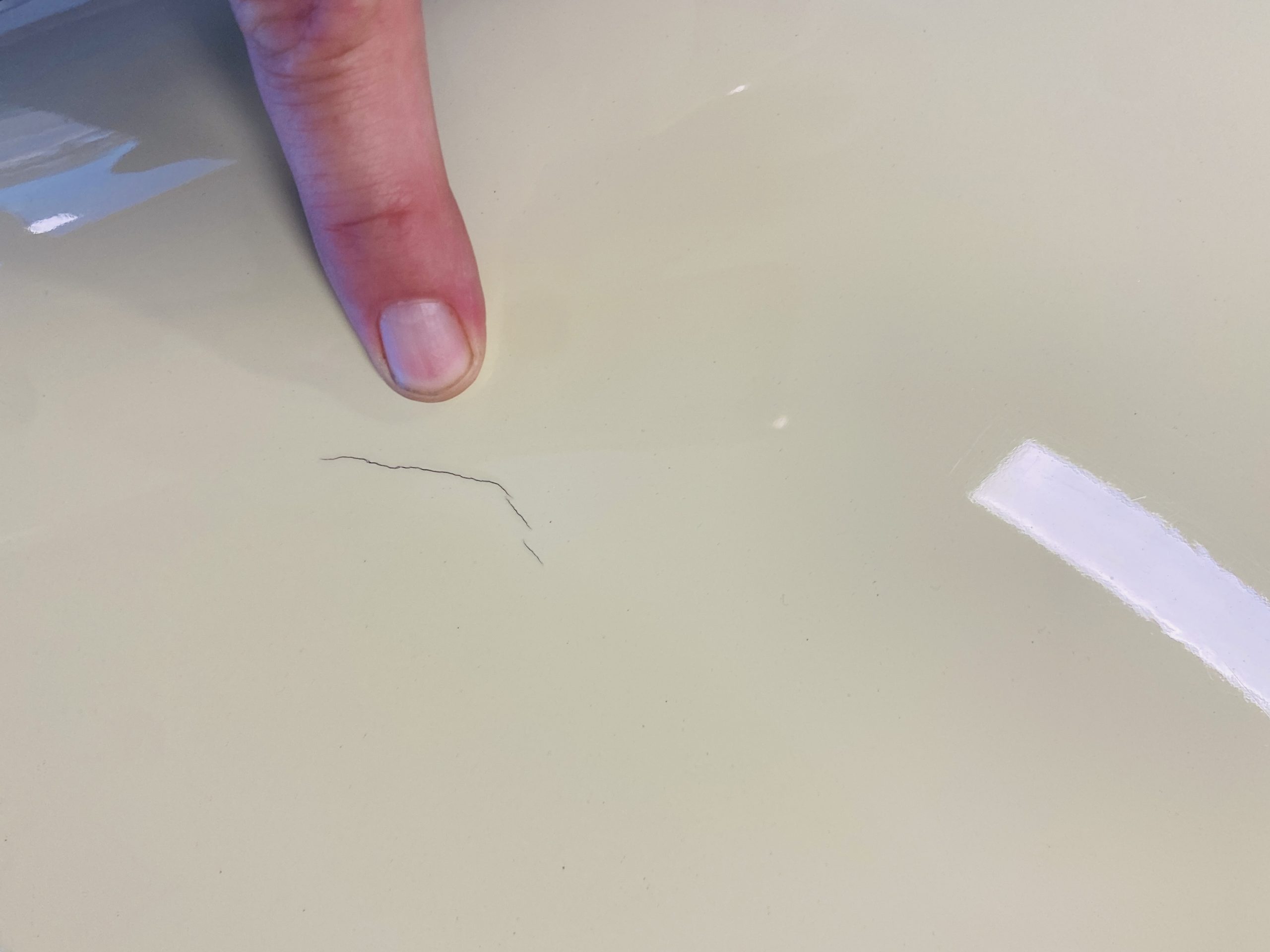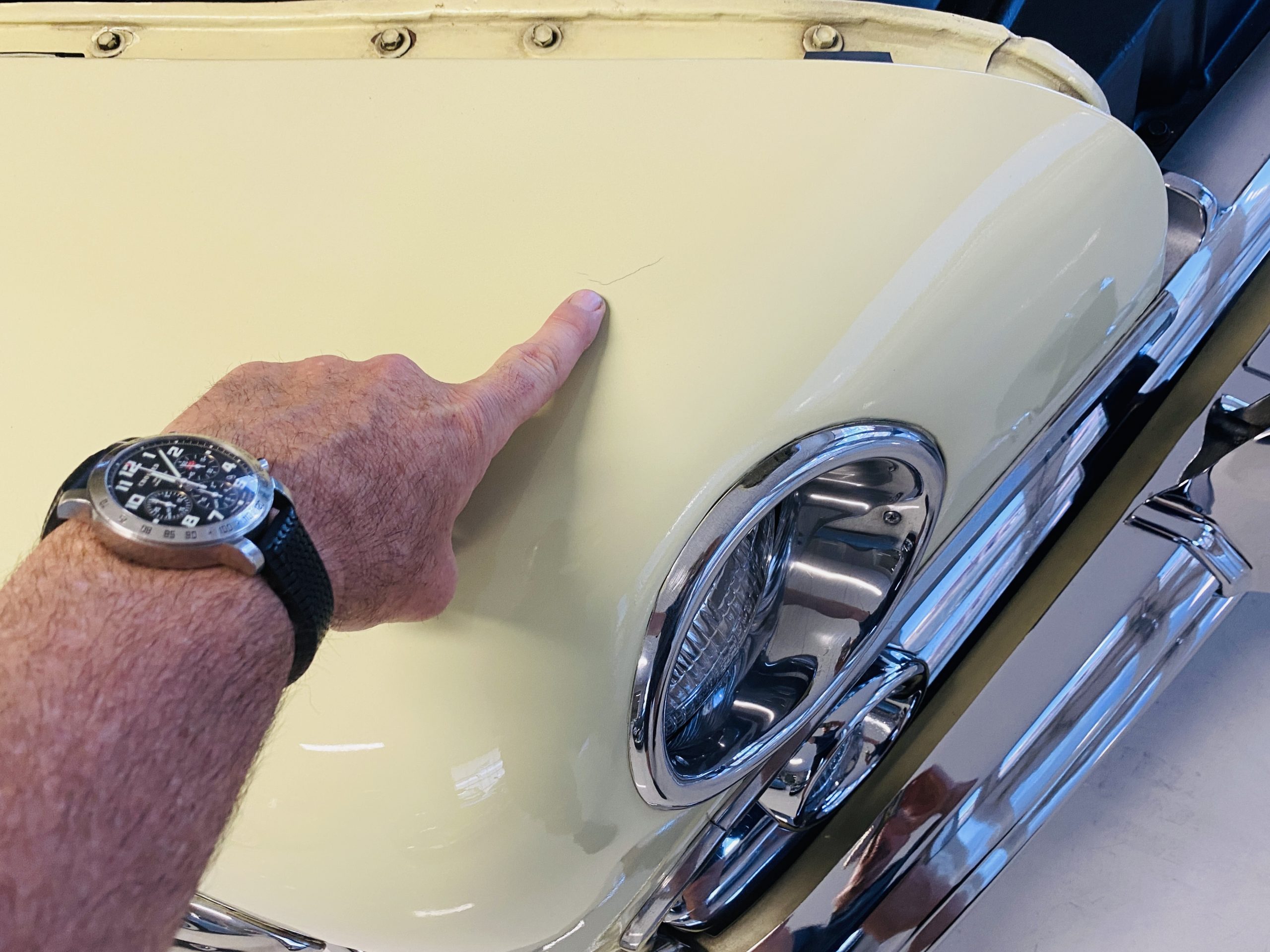 This Cosmopolitan looks terrific in its color combination. The Calabash Yellow (Paint Code 8H) livery is in touring condition with beautiful shine and luster. There are a variety of small touched up chips in the high use areas and one small crack on the passengers side front fender, as shown in the photo gallery.