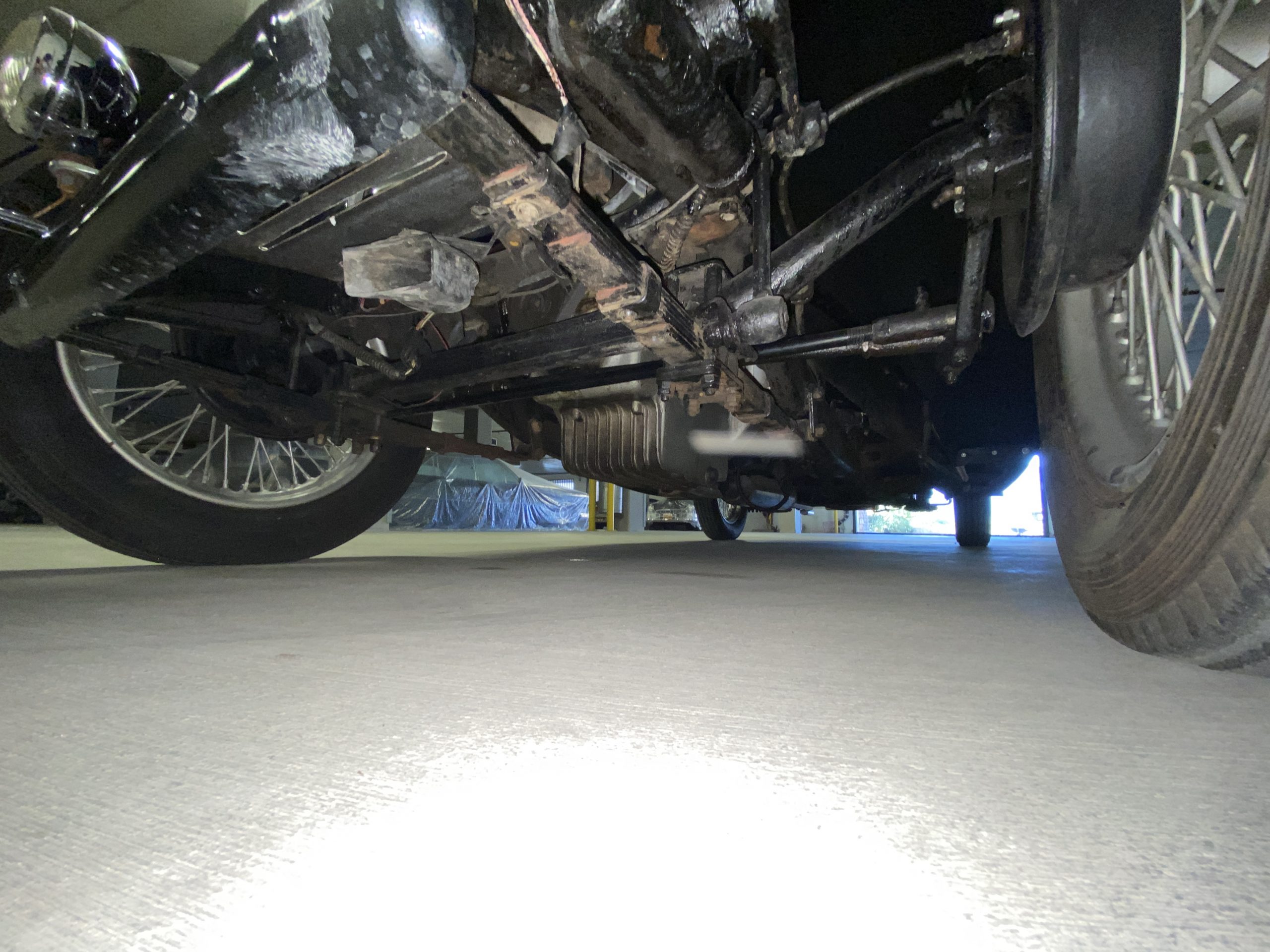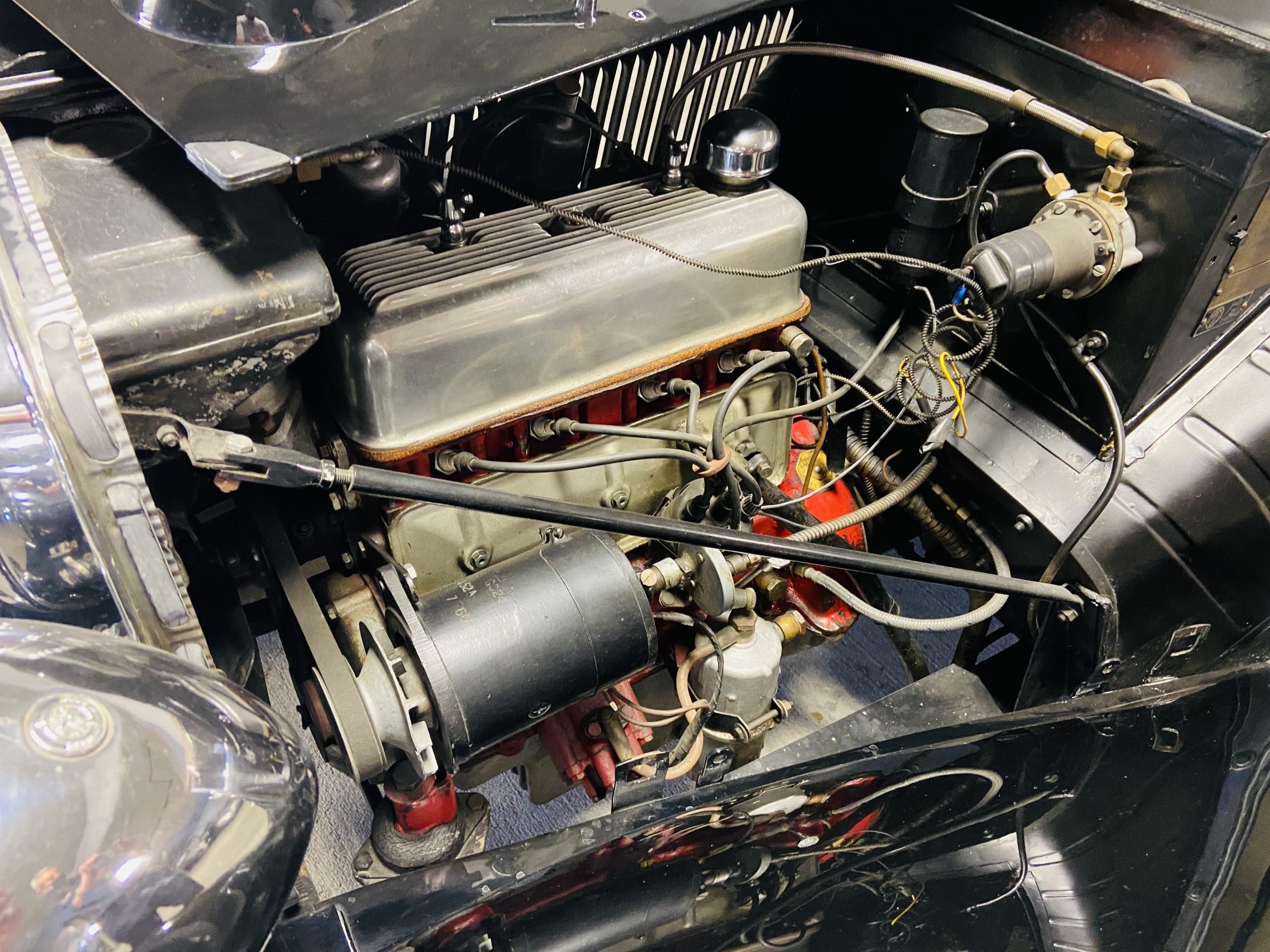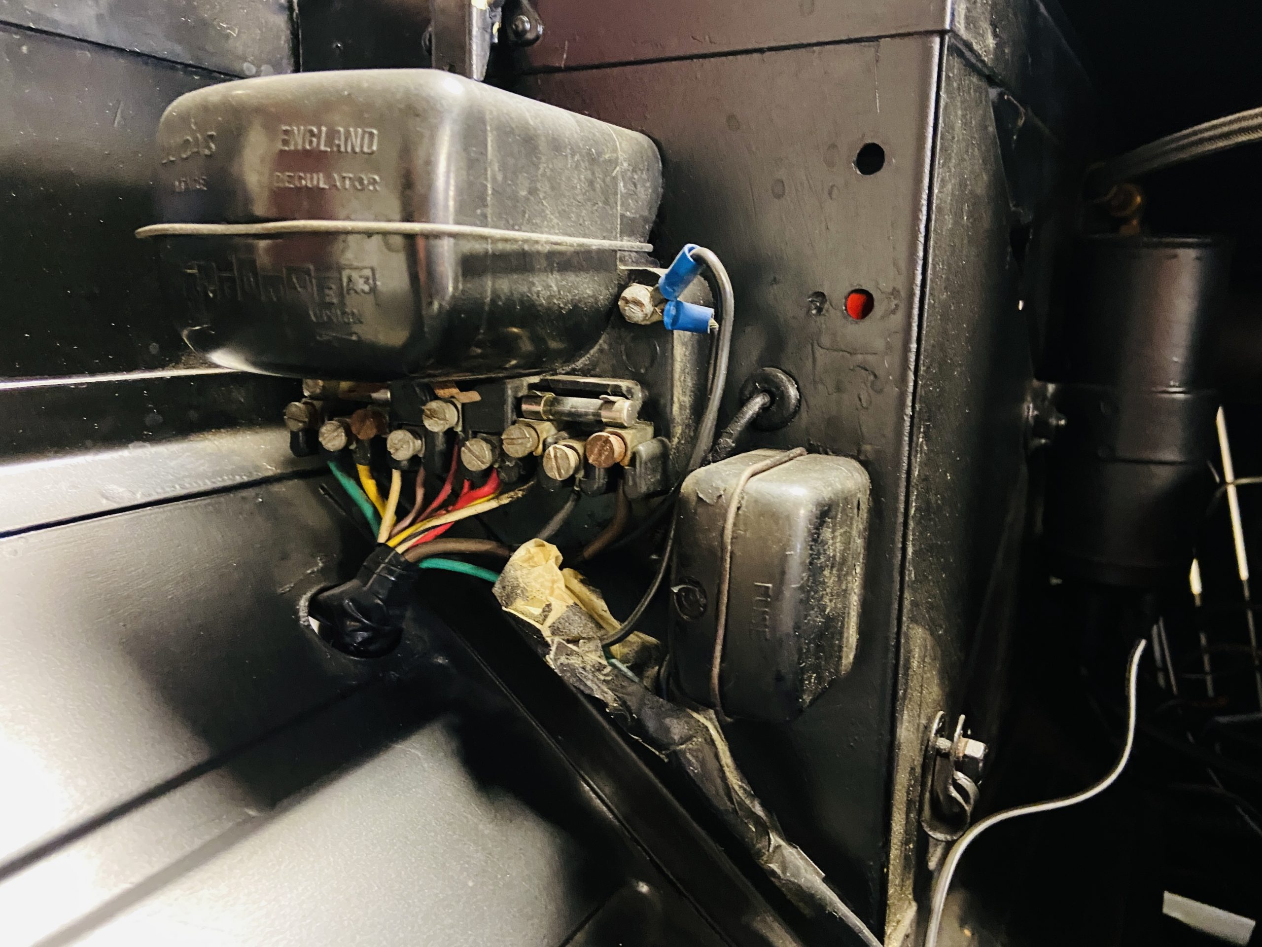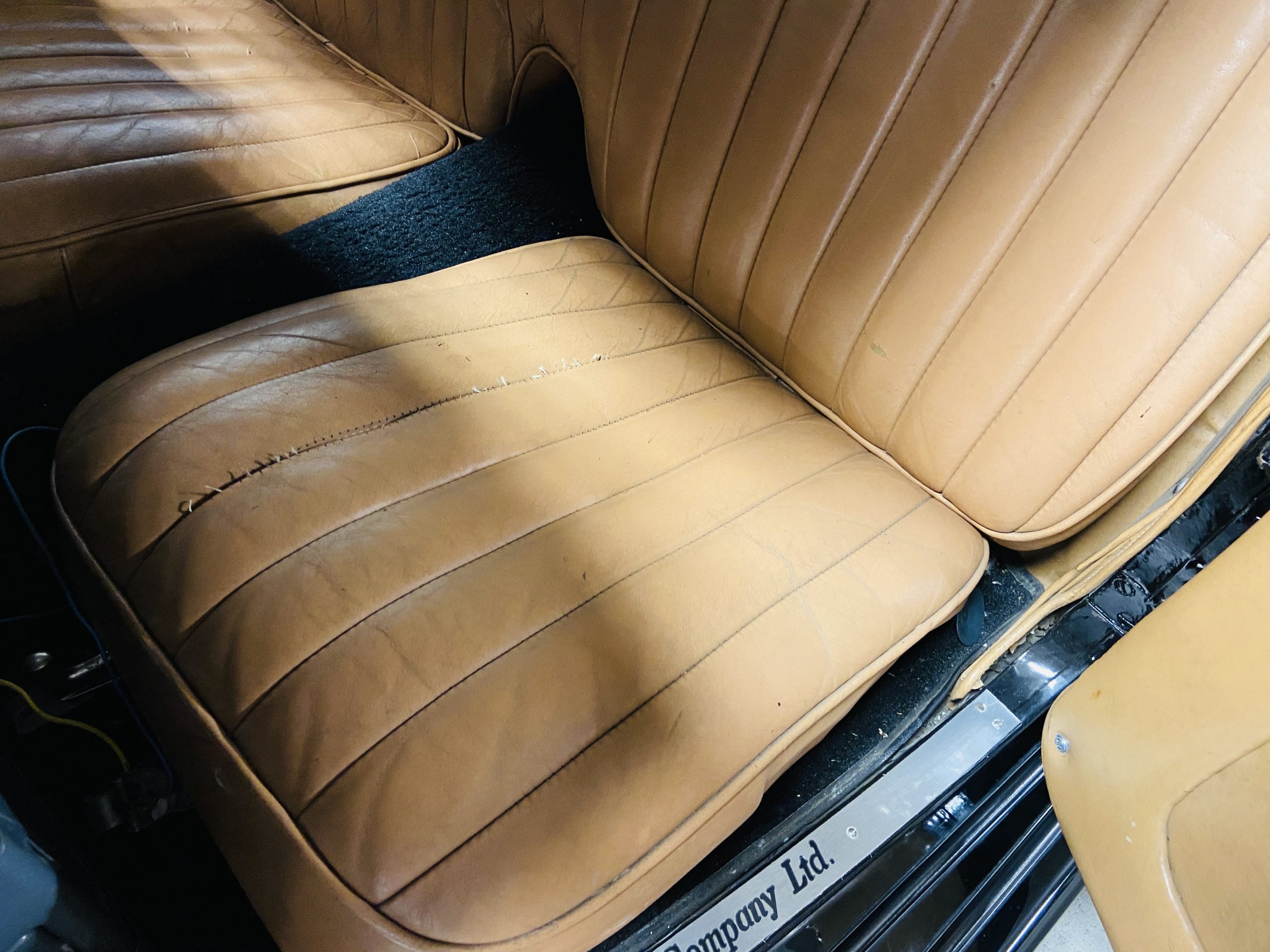 This MG TC has a matching numbers engine and the engine compartment is largely correct and in good order. We would recommend a basic detailing and touching up the engine paint to make it presentable for shows. Nerfine bars were added decades ago as these were popular accessories in the 1950’s. This MG TC comes complete (the lid to the battery box is behind the seats along with additional spare parts).