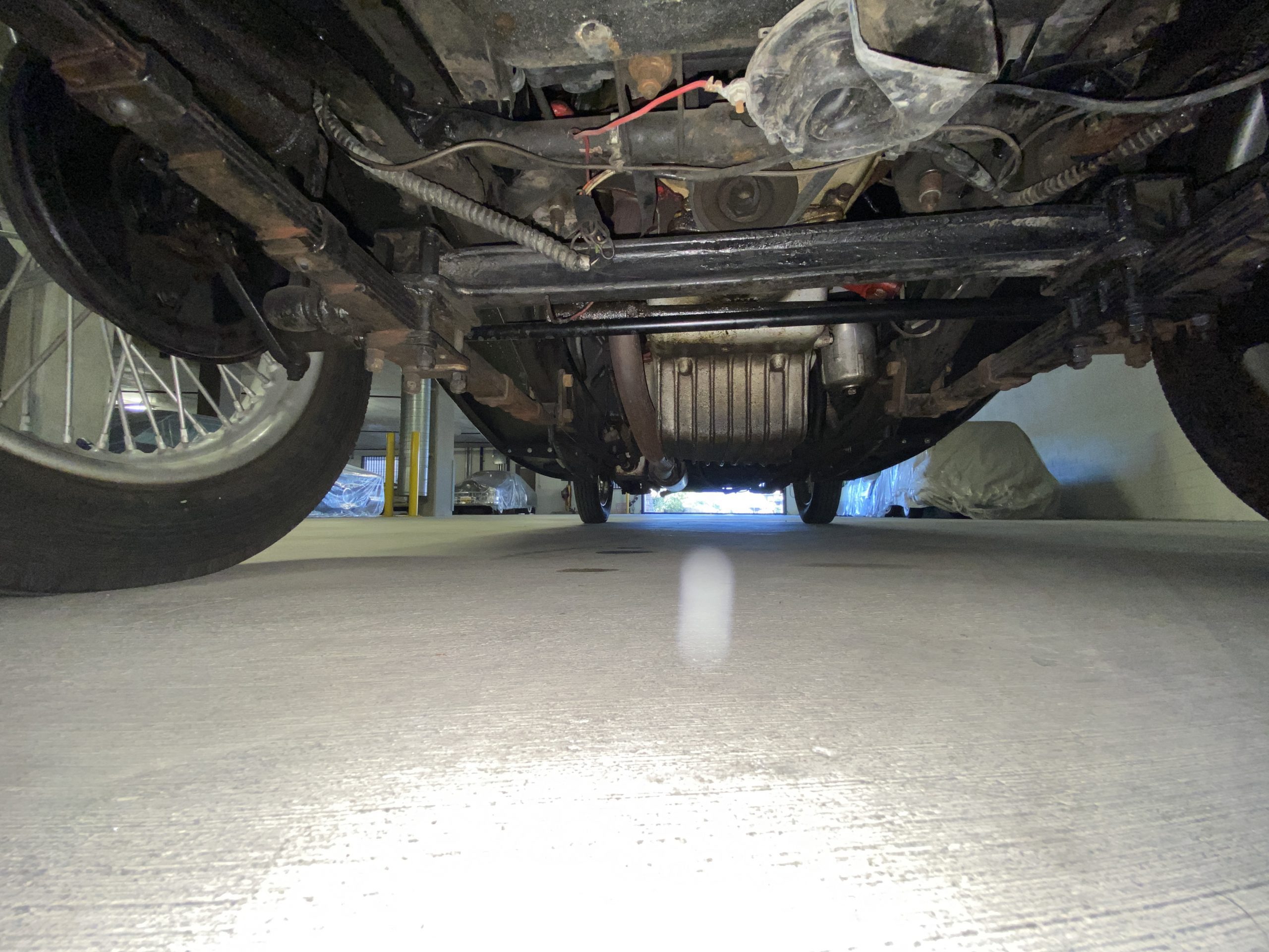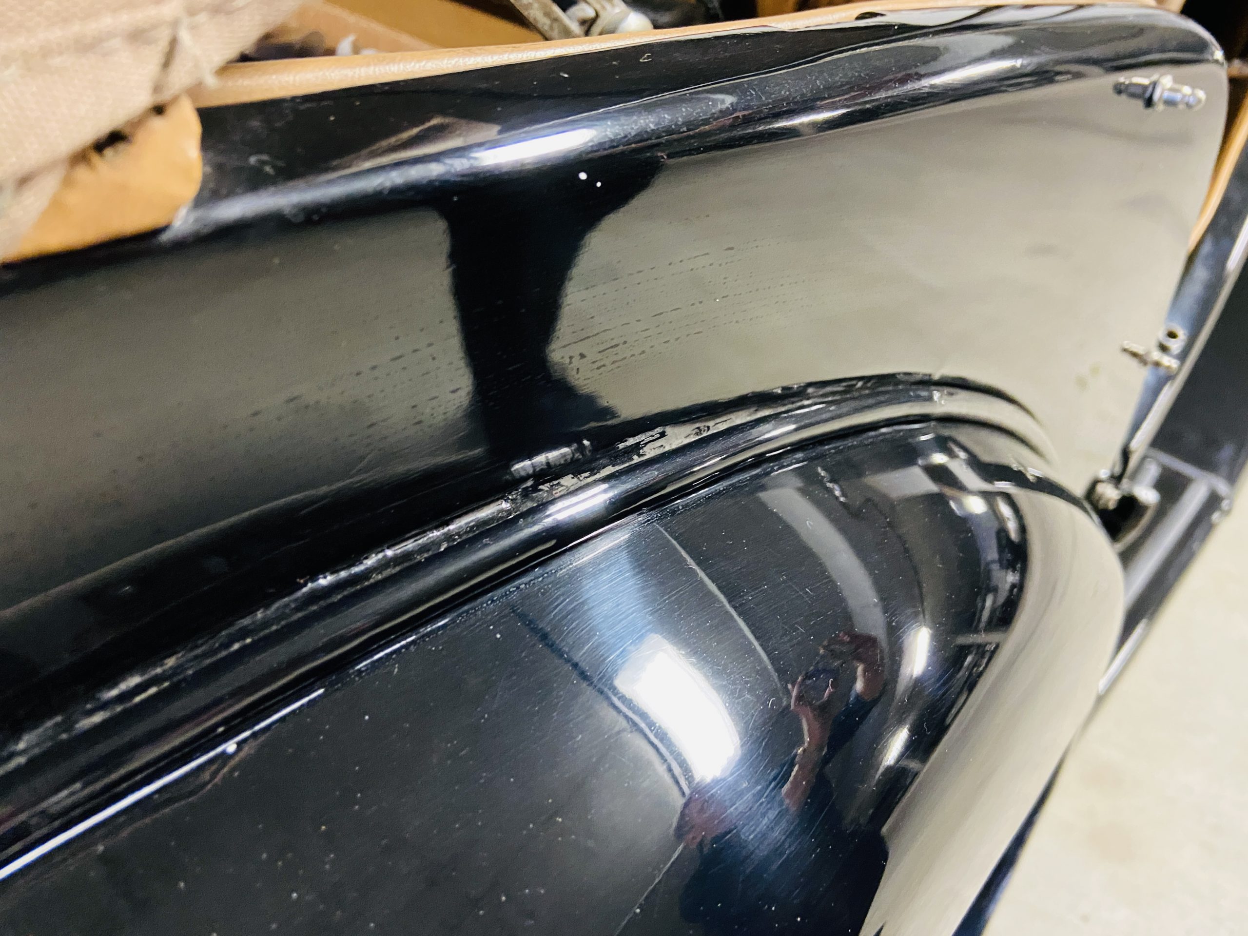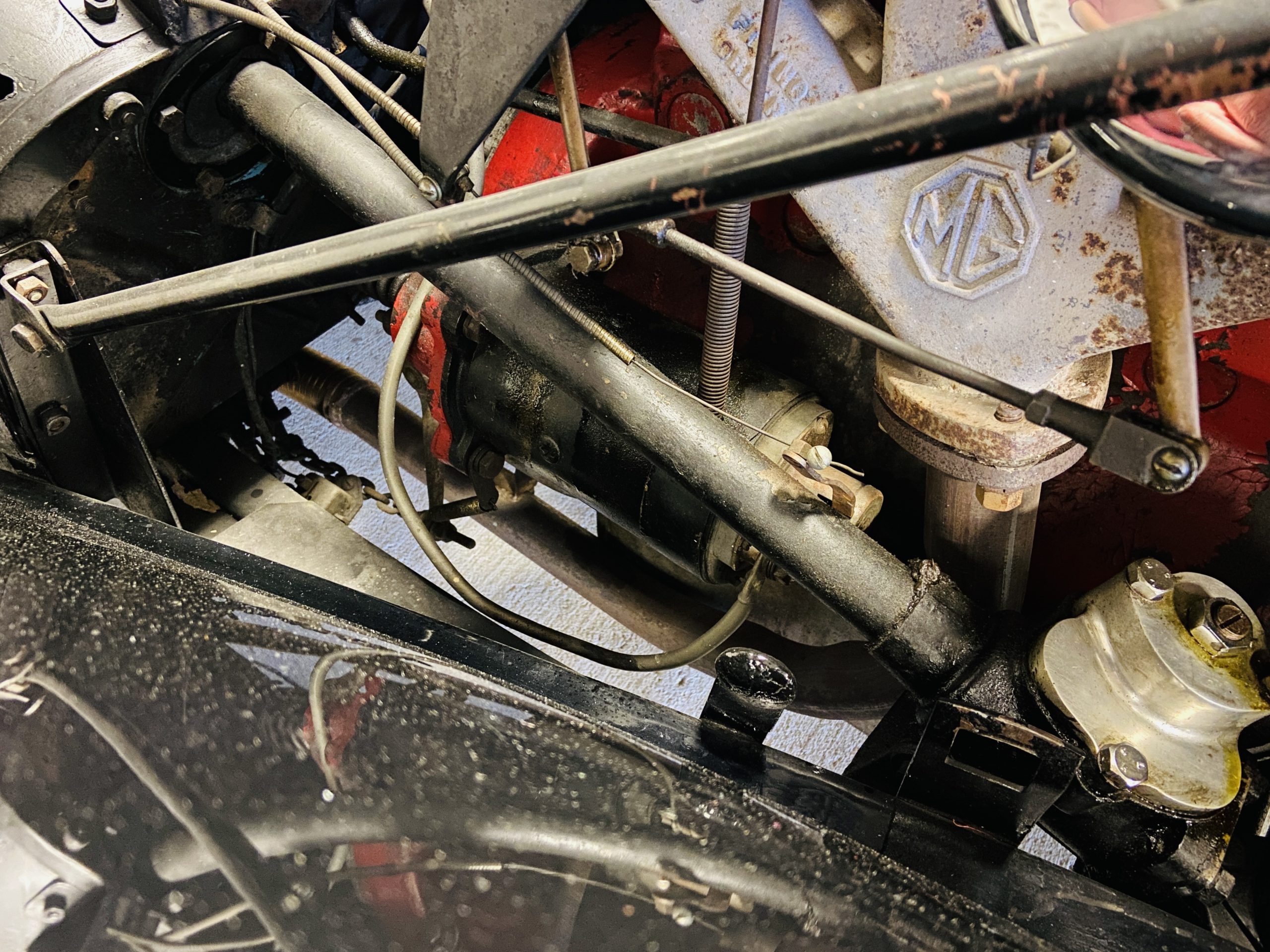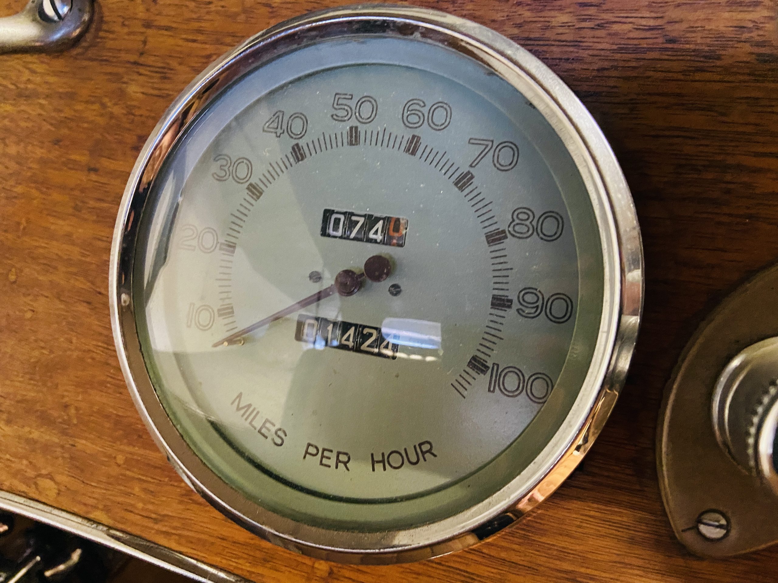 This MG TC has a matching numbers engine and the engine compartment is largely correct and in good order. We would recommend a basic detailing and touching up the engine paint to make it presentable for shows. Nerfine bars were added decades ago as these were popular accessories in the 1950’s. This MG TC comes complete (the lid to the battery box is behind the seats along with additional spare parts).
