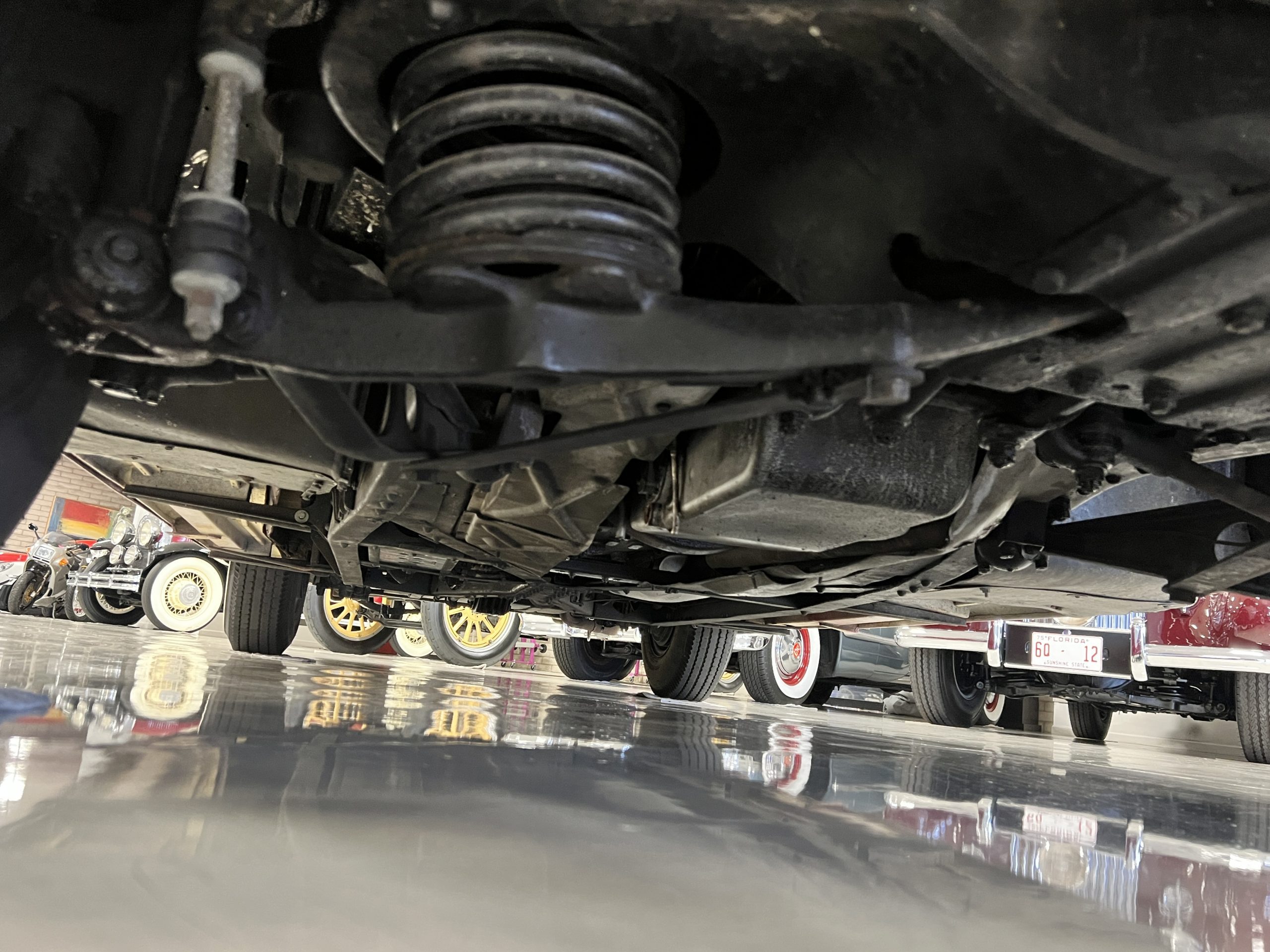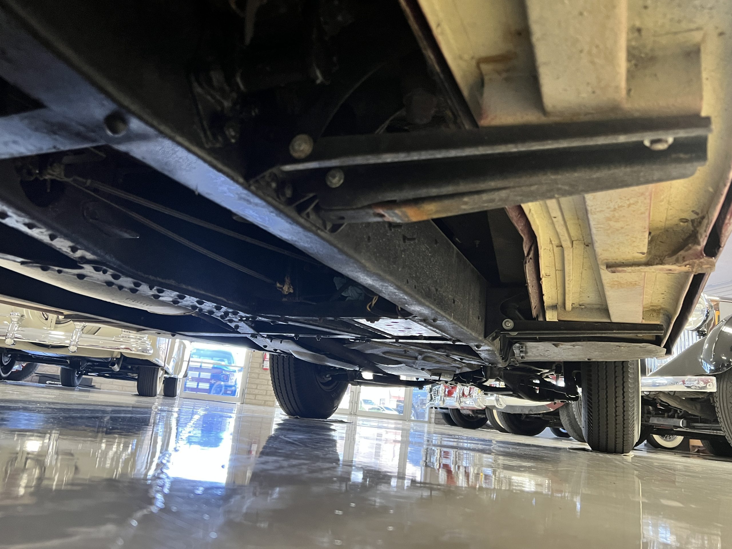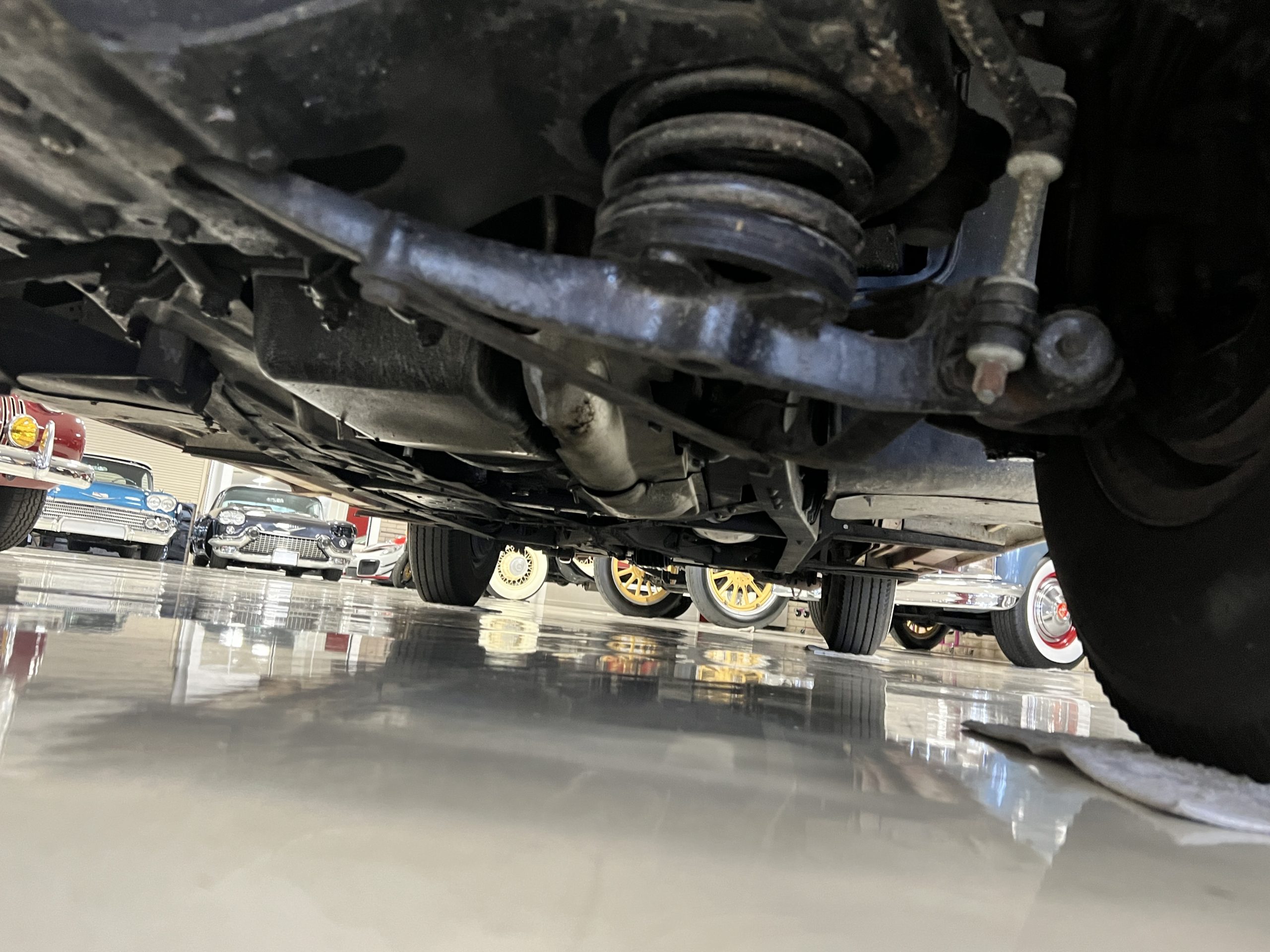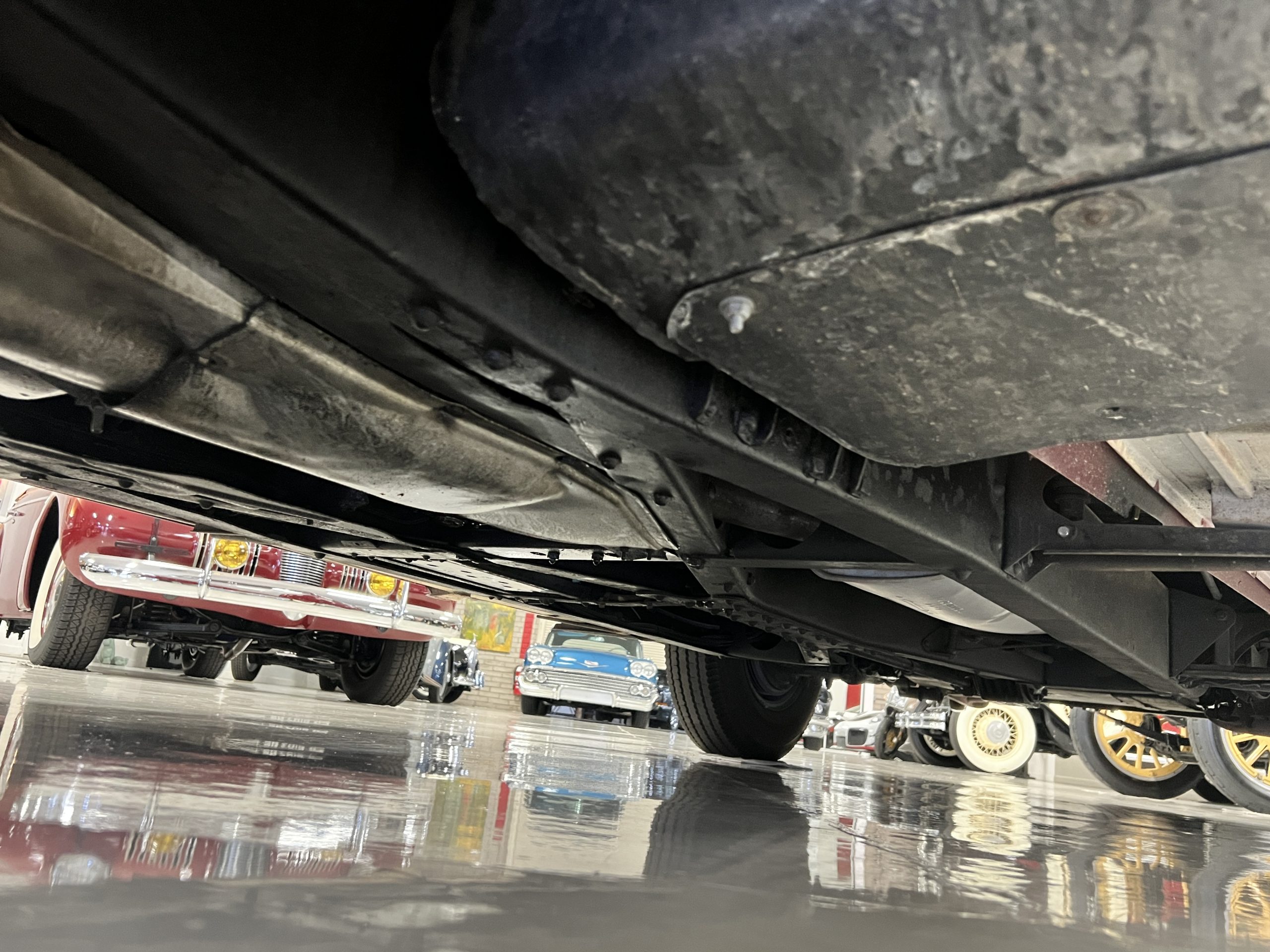 The engine compartment is detailed for show and is in wonderful condition today. The Silver Wraith performs well and ran cool even in 110-degree F weather here in Phoenix. Its venerable 4.3 liter straight six cylinder is quiet and smooth with excellent power. The four-speed manual column shift is easy to use and shifts with confidence. The chassis has been cleaned and painted and is very presentable today. The wiring has been replaced with a new wiring harness.