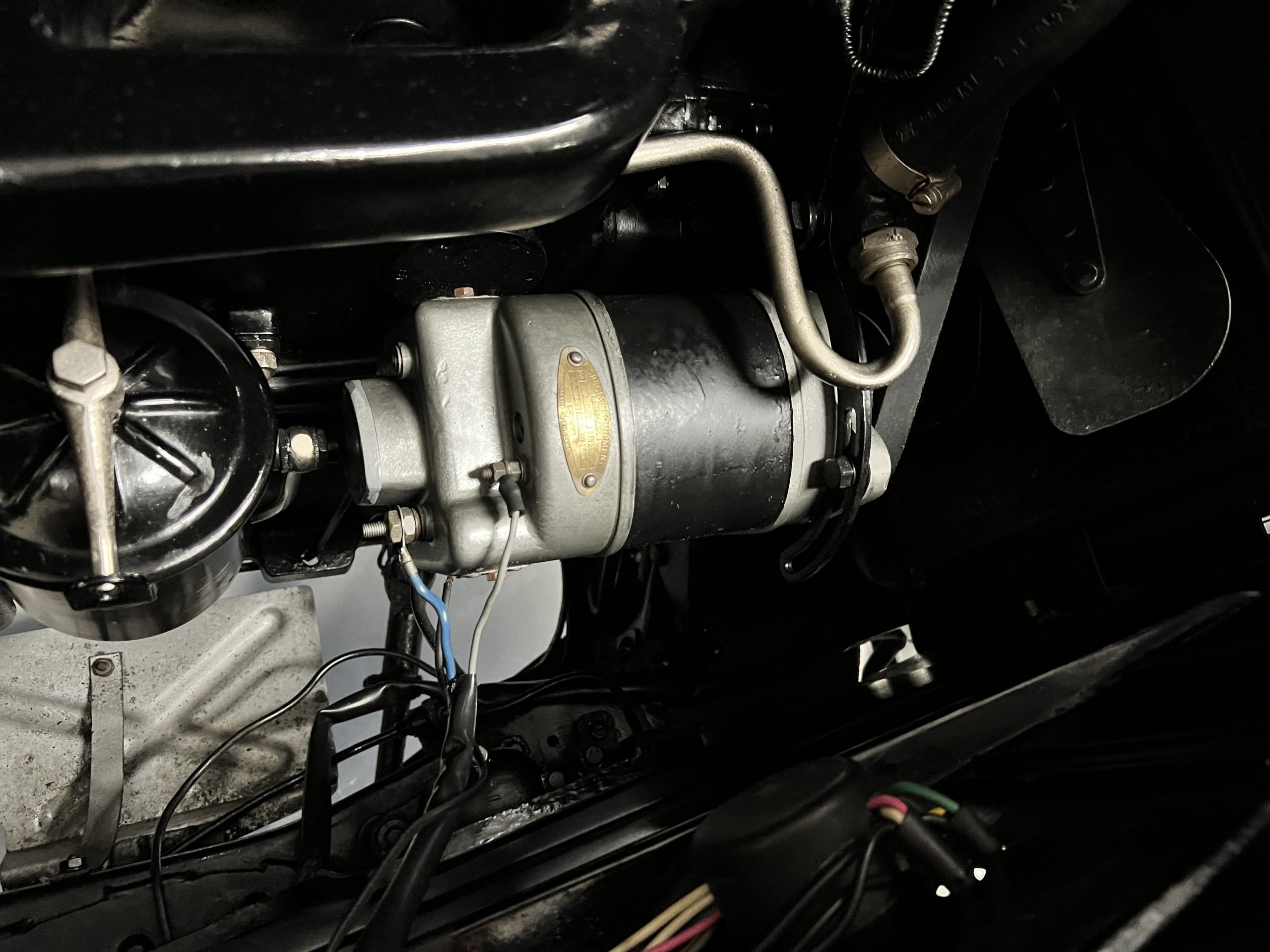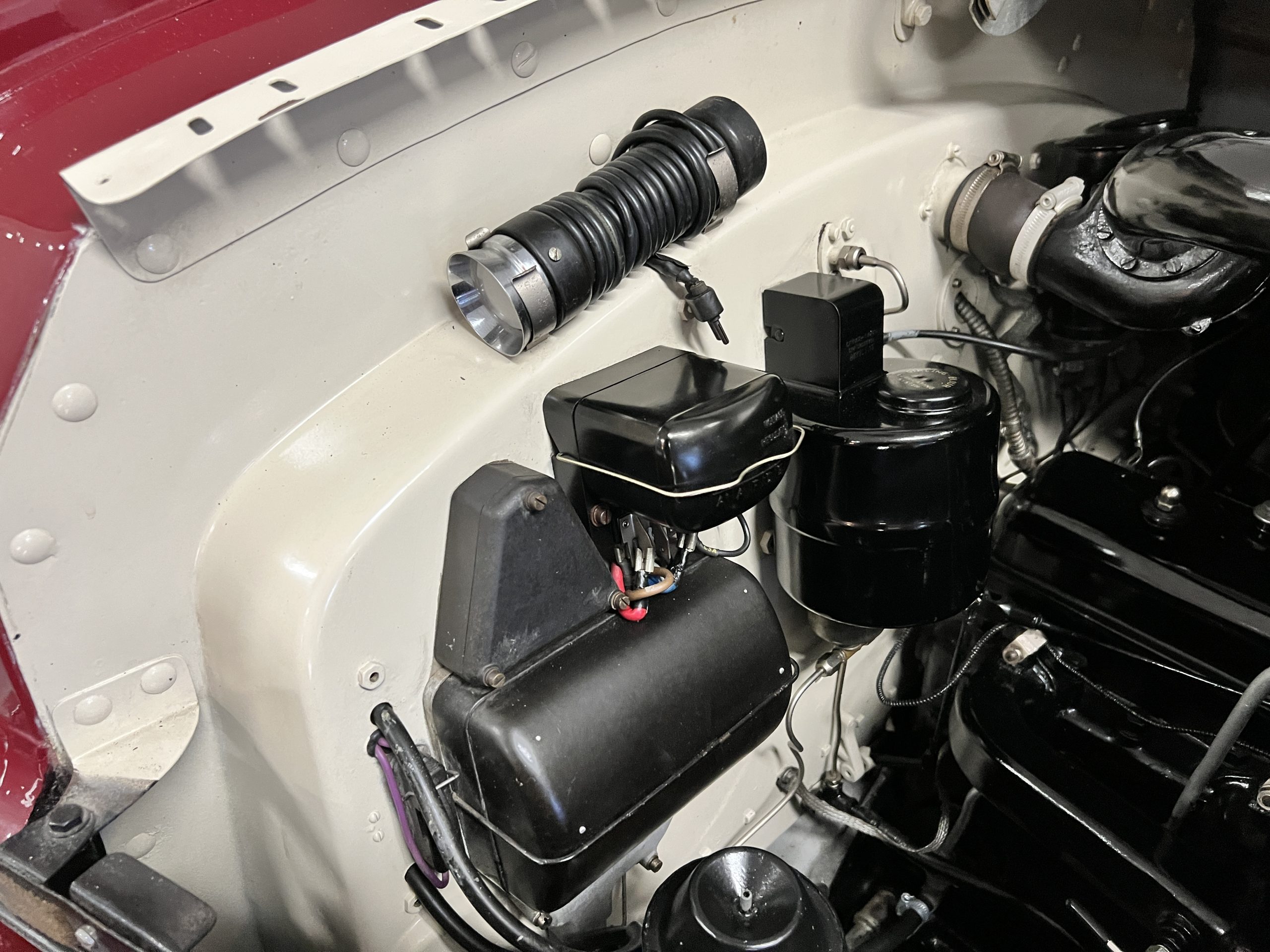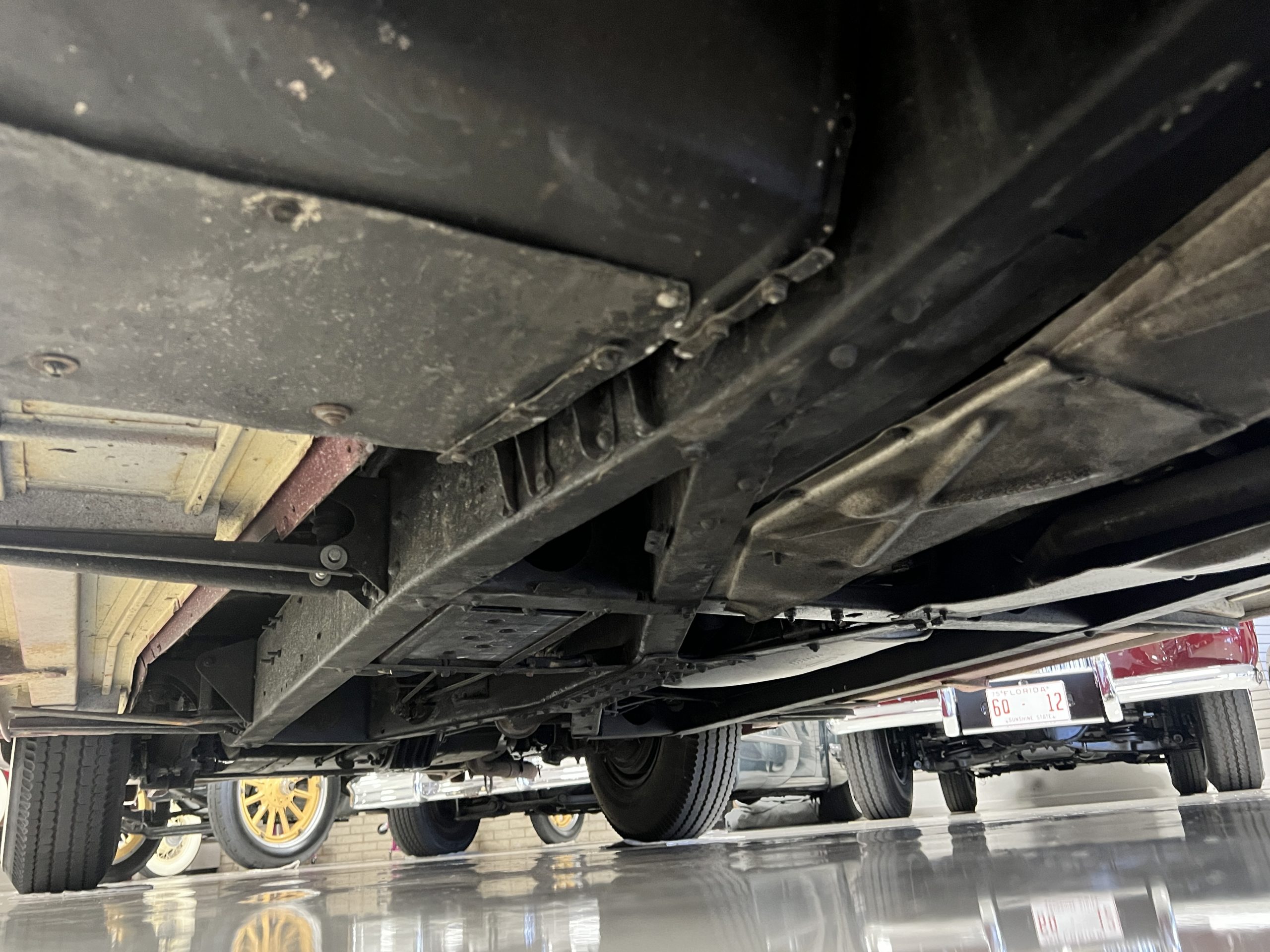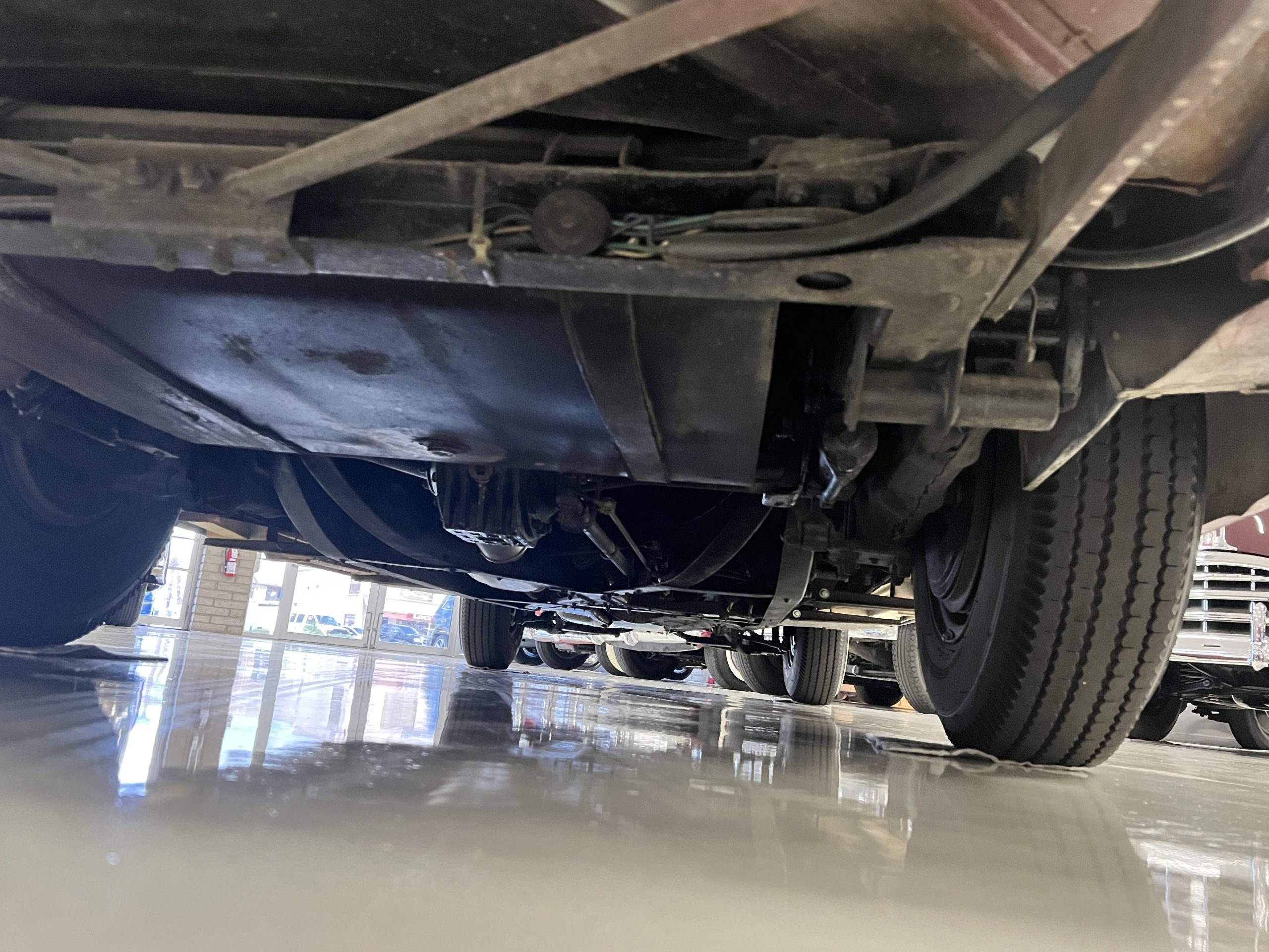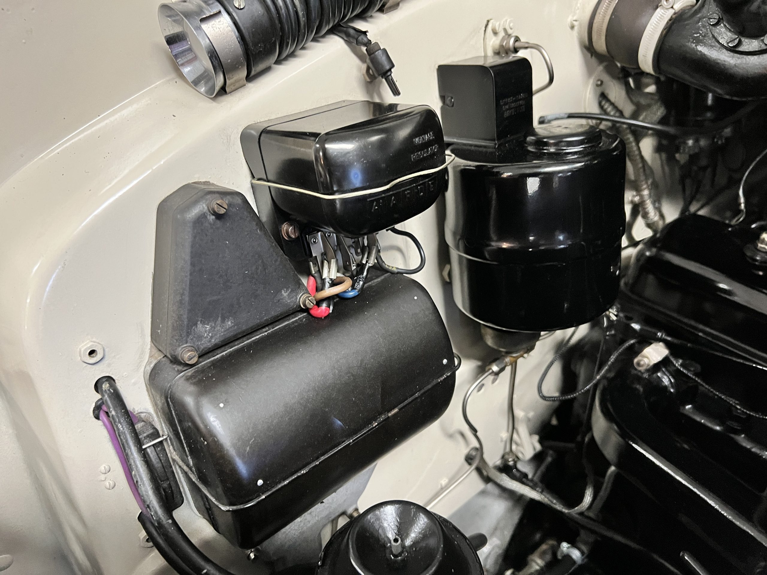 The engine compartment is detailed for show and is in wonderful condition today. The Silver Wraith performs well and ran cool even in 110-degree F weather here in Phoenix. Its venerable 4.3 liter straight six cylinder is quiet and smooth with excellent power. The four-speed manual column shift is easy to use and shifts with confidence. The chassis has been cleaned and painted and is very presentable today. The wiring has been replaced with a new wiring harness.