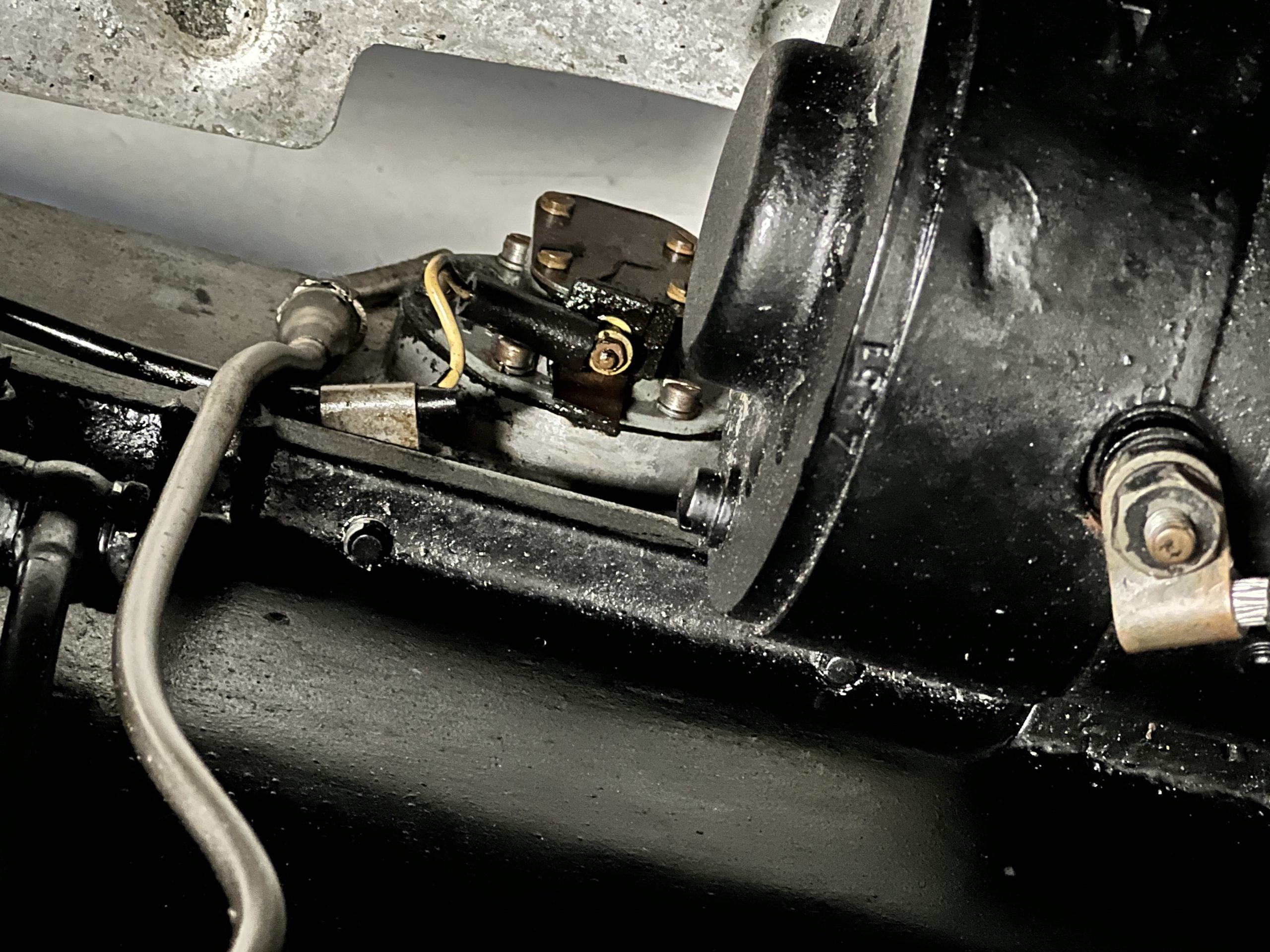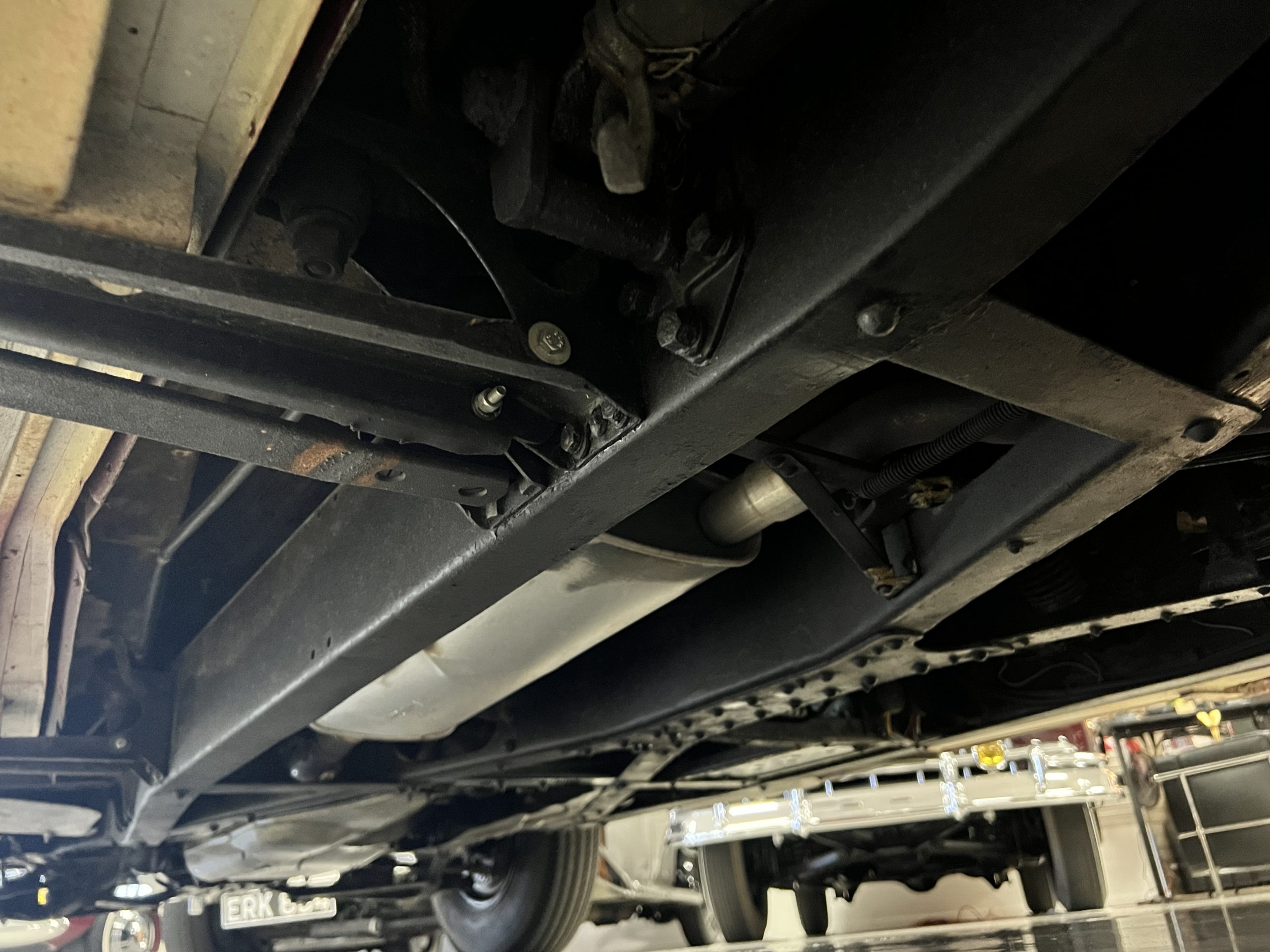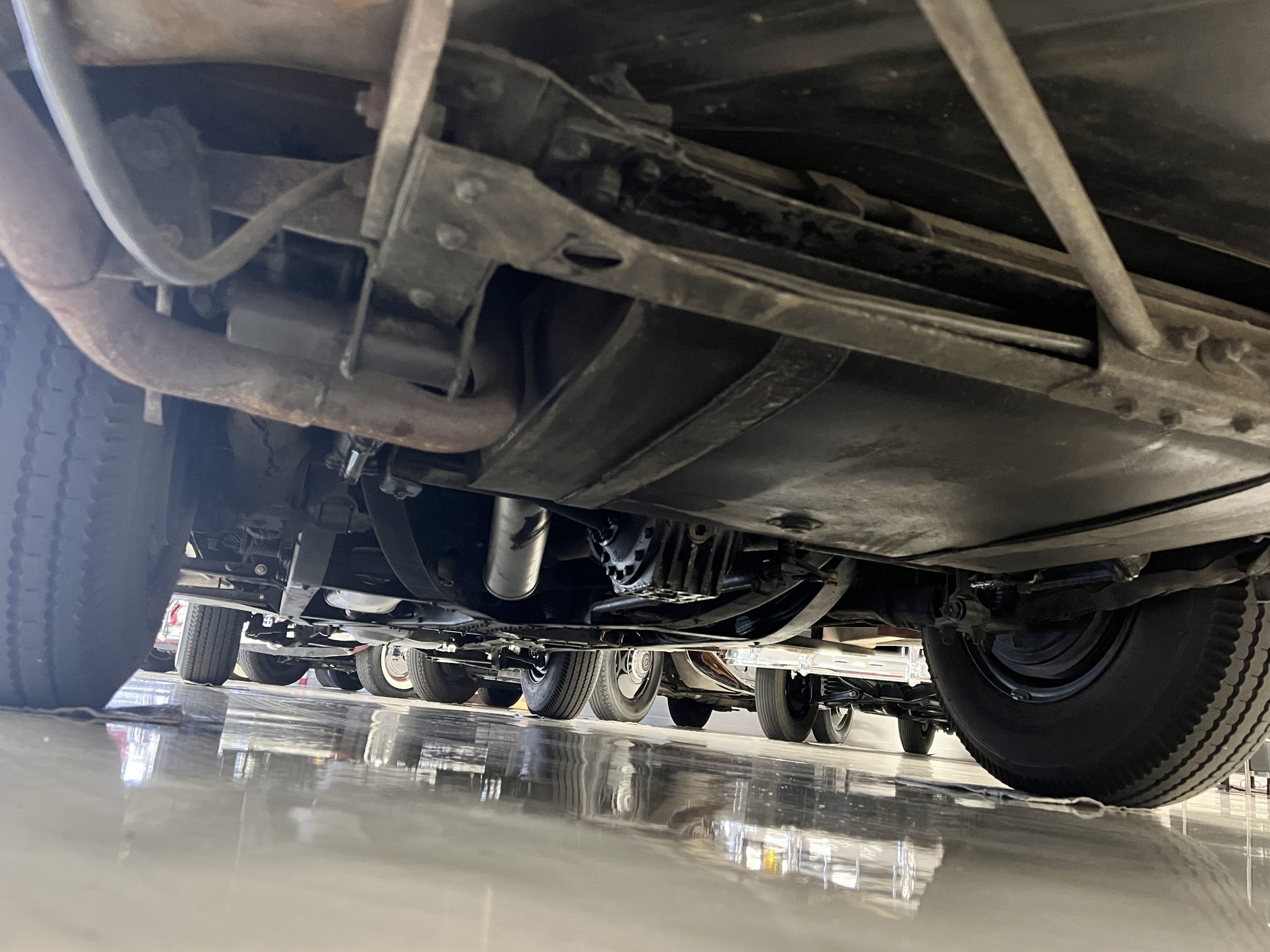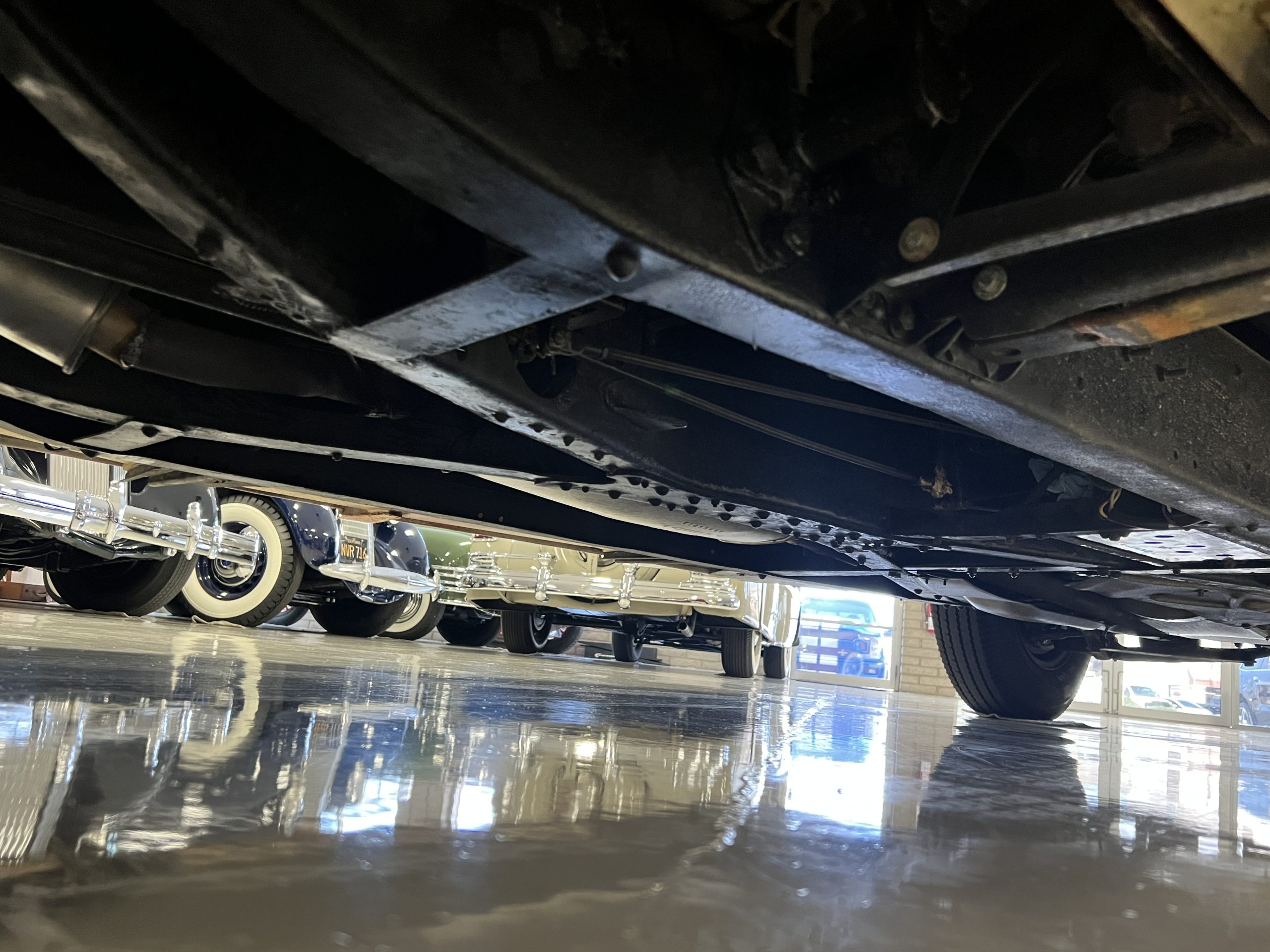 The engine compartment is detailed for show and is in wonderful condition today. The Silver Wraith performs well and ran cool even in 110-degree F weather here in Phoenix. Its venerable 4.3 liter straight six cylinder is quiet and smooth with excellent power. The four-speed manual column shift is easy to use and shifts with confidence. The chassis has been cleaned and painted and is very presentable today. The wiring has been replaced with a new wiring harness.