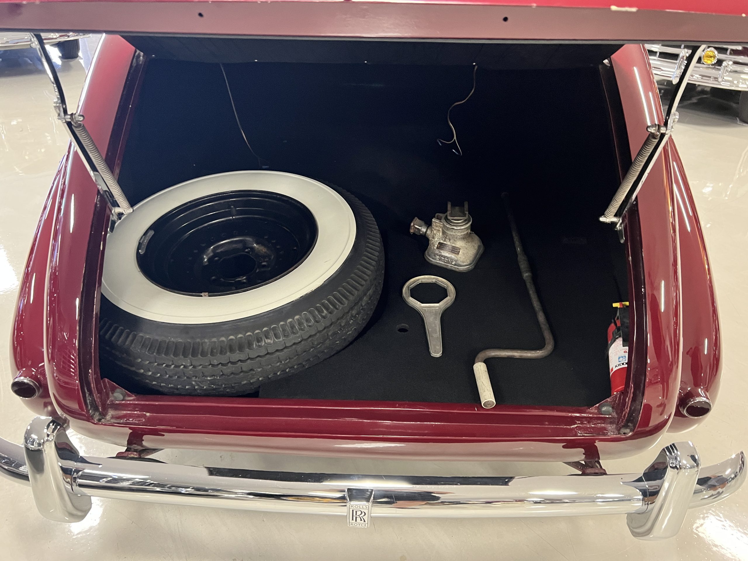 The Silver Wraith is complete with most of its large tools, jack, spare tire, flashlight, lube canisters and has a battery cut-off switch, seatbelts and a more modern stereo. We disconnected and removed its rear speakers, but replacements can easily be added. This Silver Wraith comes with some spares and historical documentation. The awards remain with Mr. Warden.