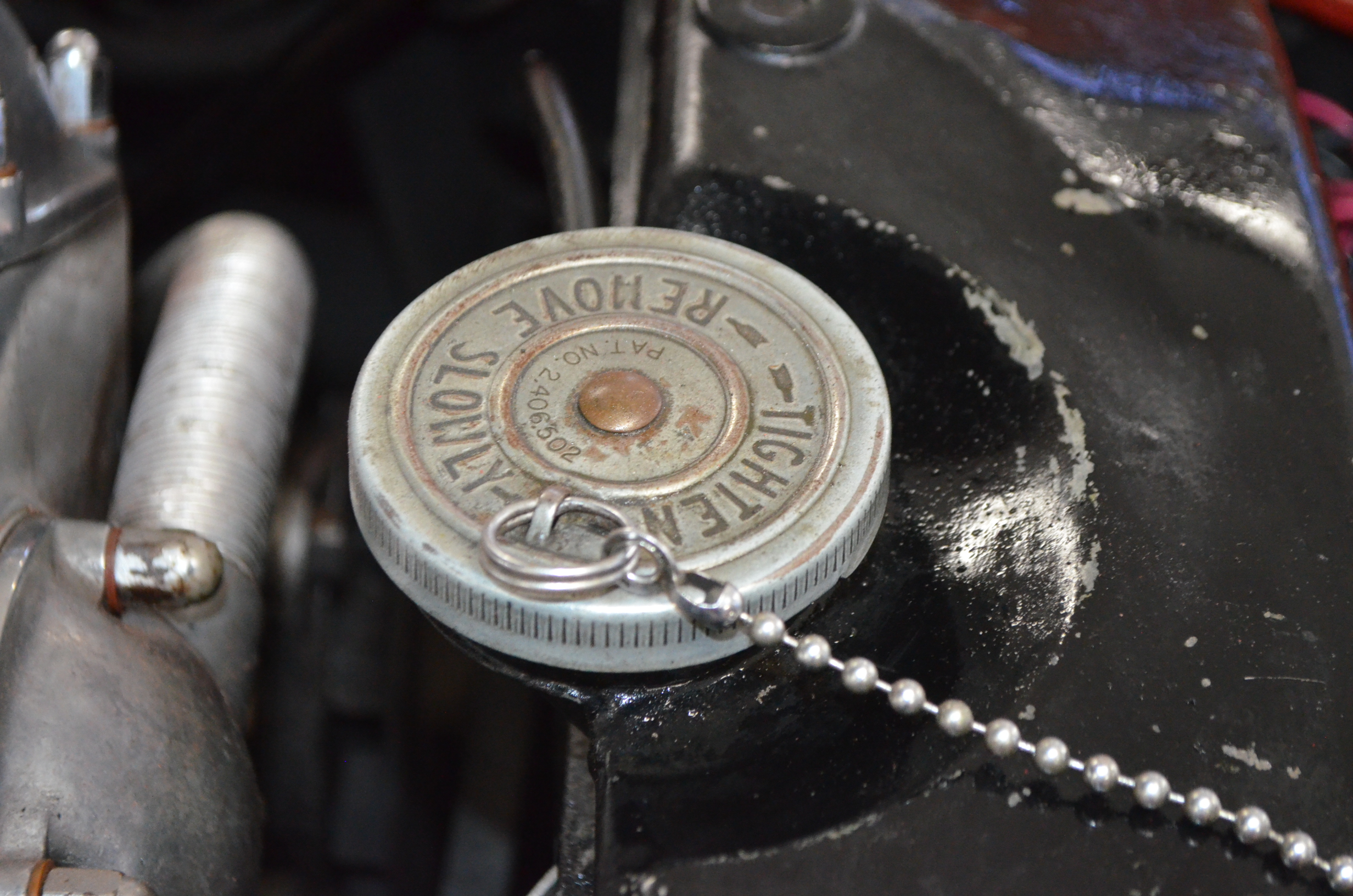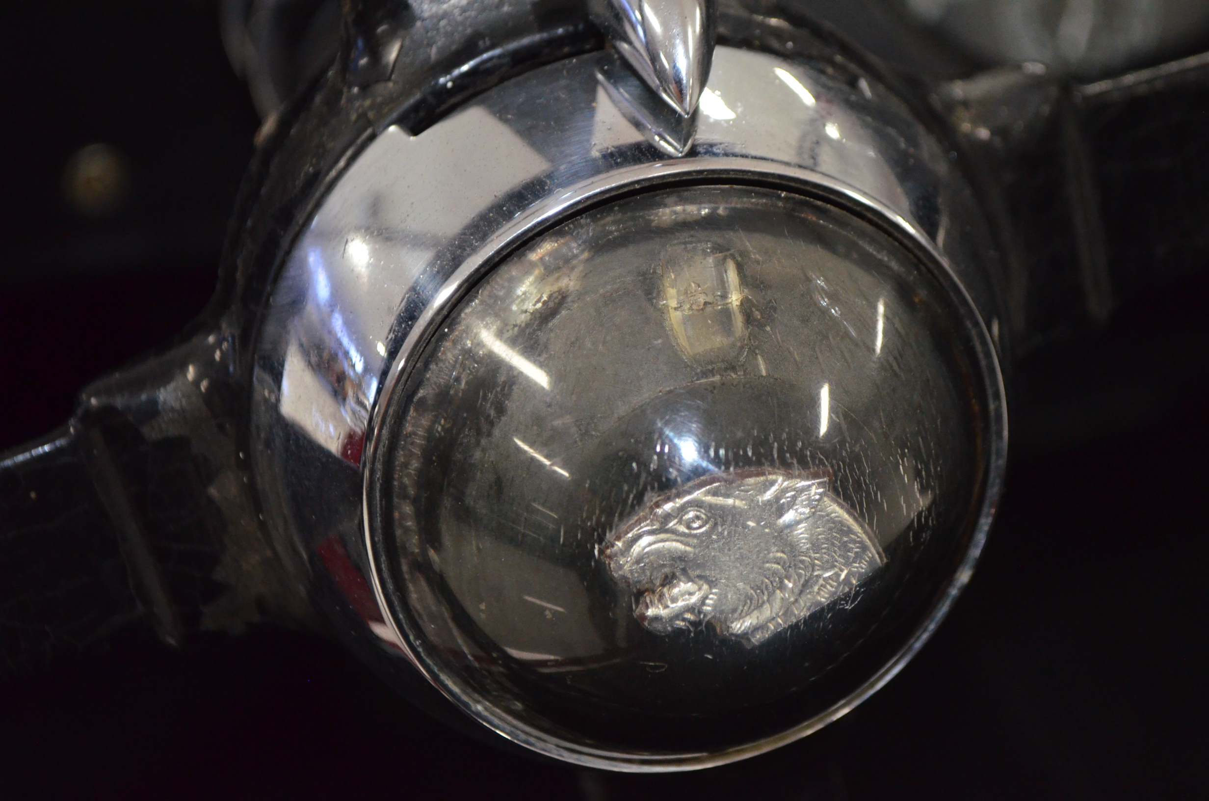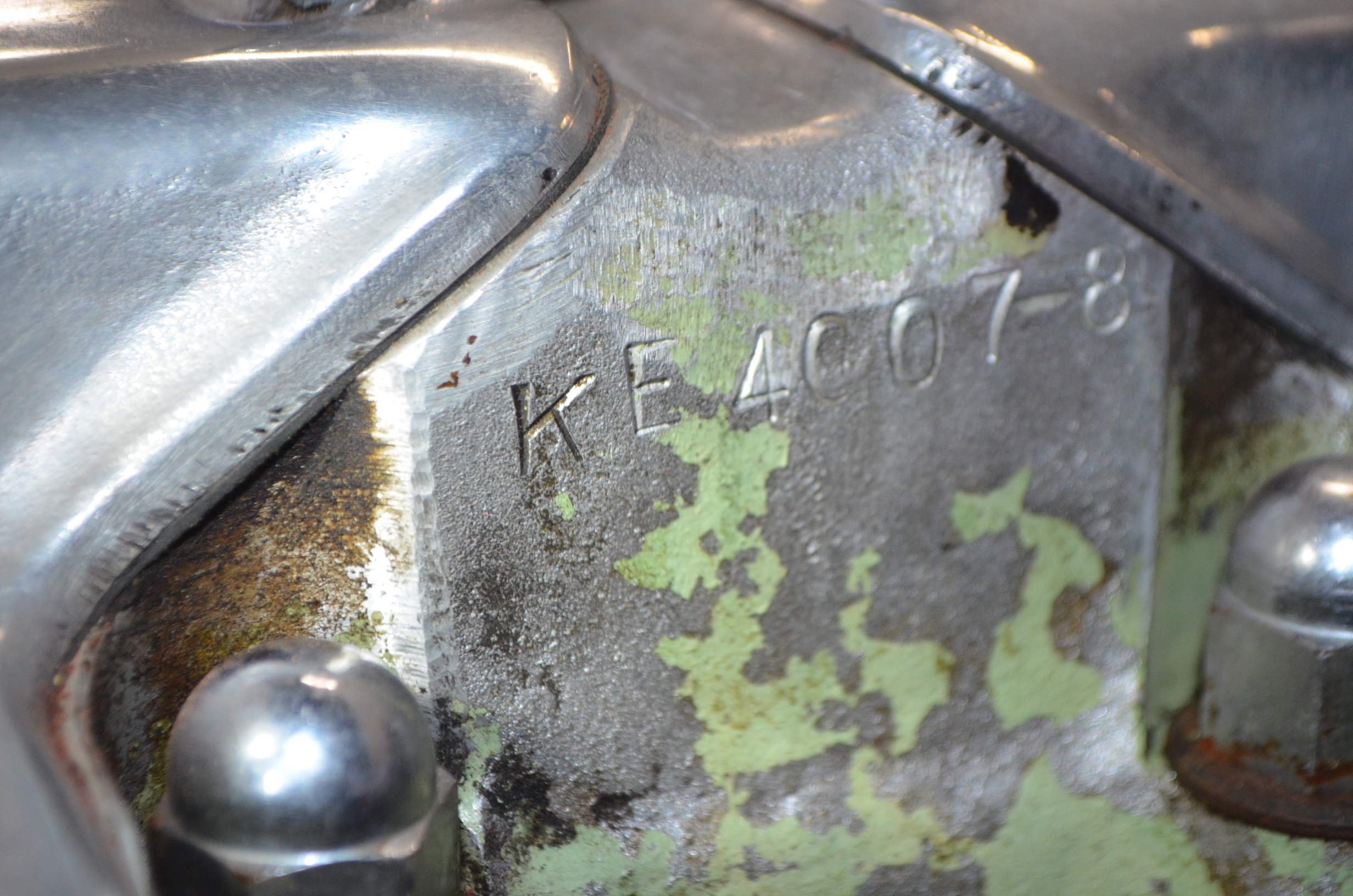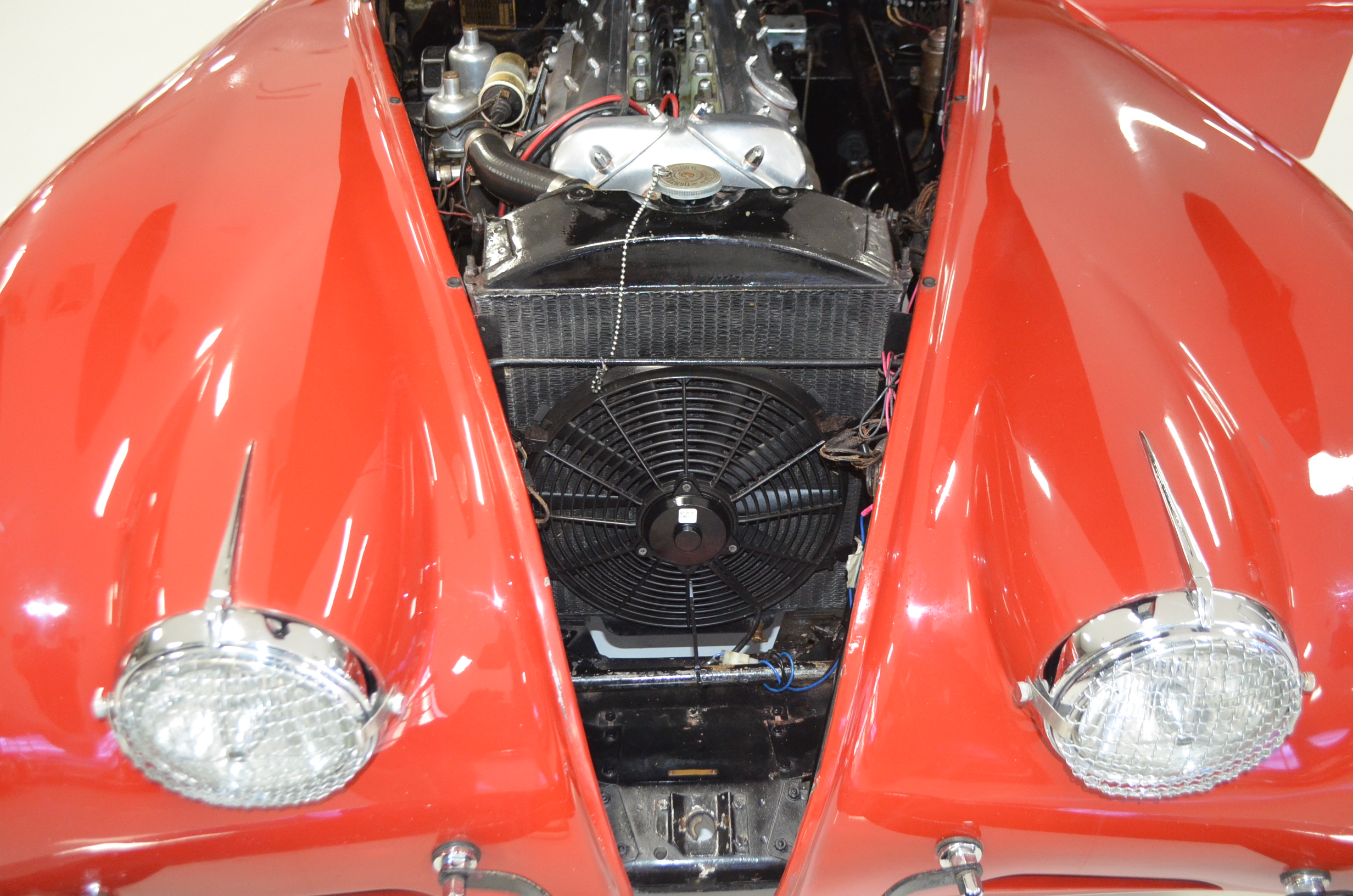 This XK120 has the “S” designation which according to all sources means a higher lift cam and special equipment, including the icon wire wheels. The S or SE stood for Special Equipment and in the US is sometimes referred to as M for modified. The higher lift cam is said to increase the output by 20 hp. This example has a later 3.8 liter engine installed, engine number LA 4129-9.
