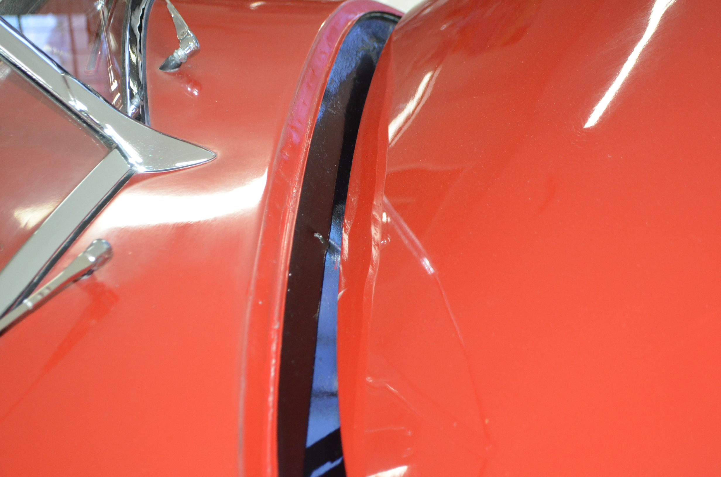 We’ve run out bondo detector and there was no filler detected throughout the car. It is really a rust free example. There is light cracking, mainly around where the front driving lights are on top of the fender. This is typically from where the lead was used to add the light housing on top of the fender.