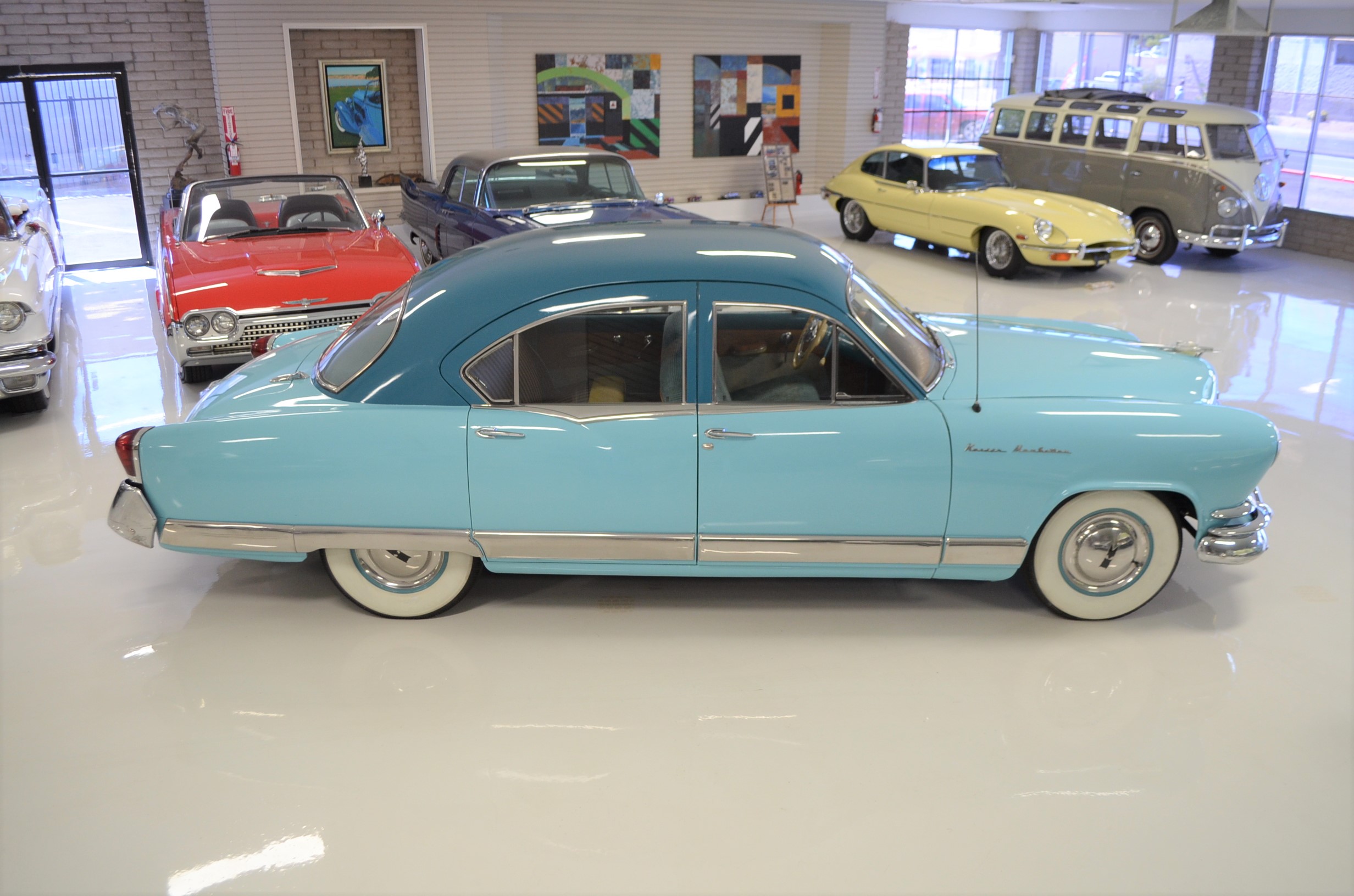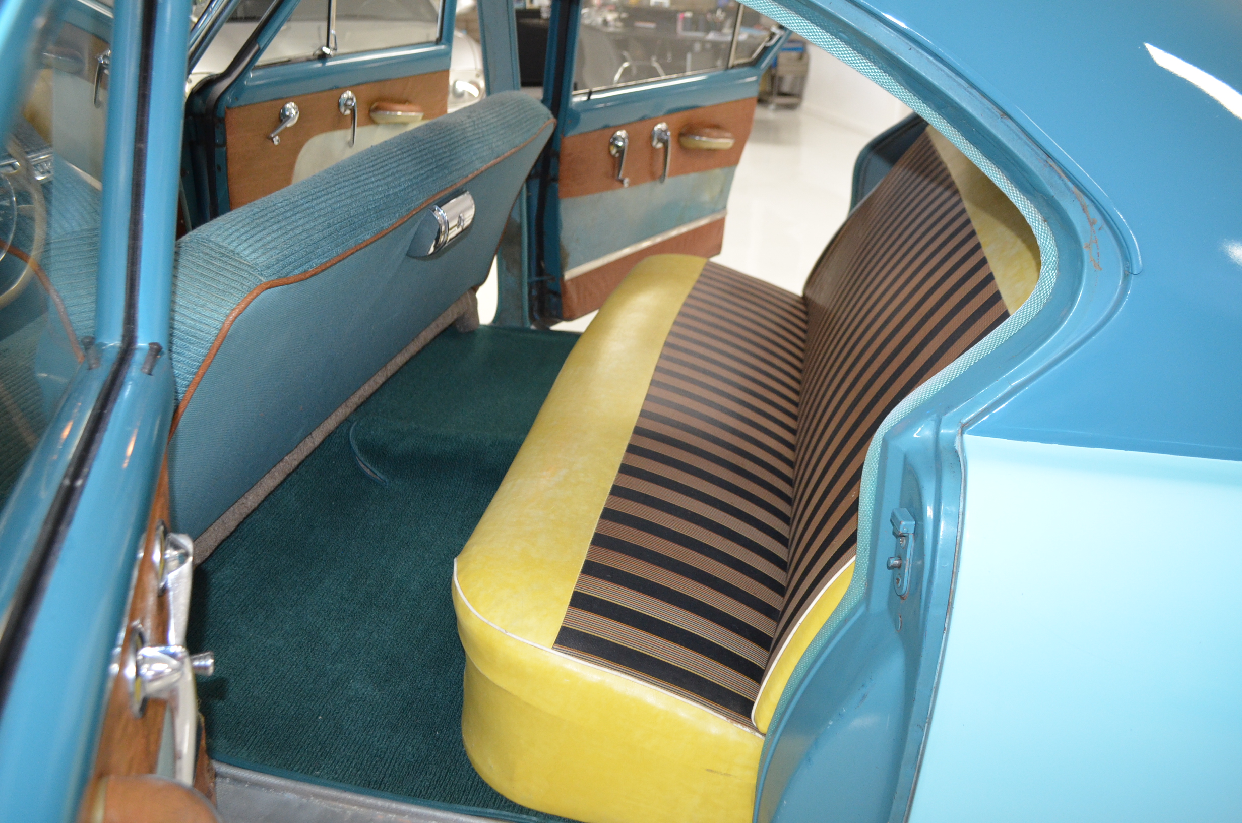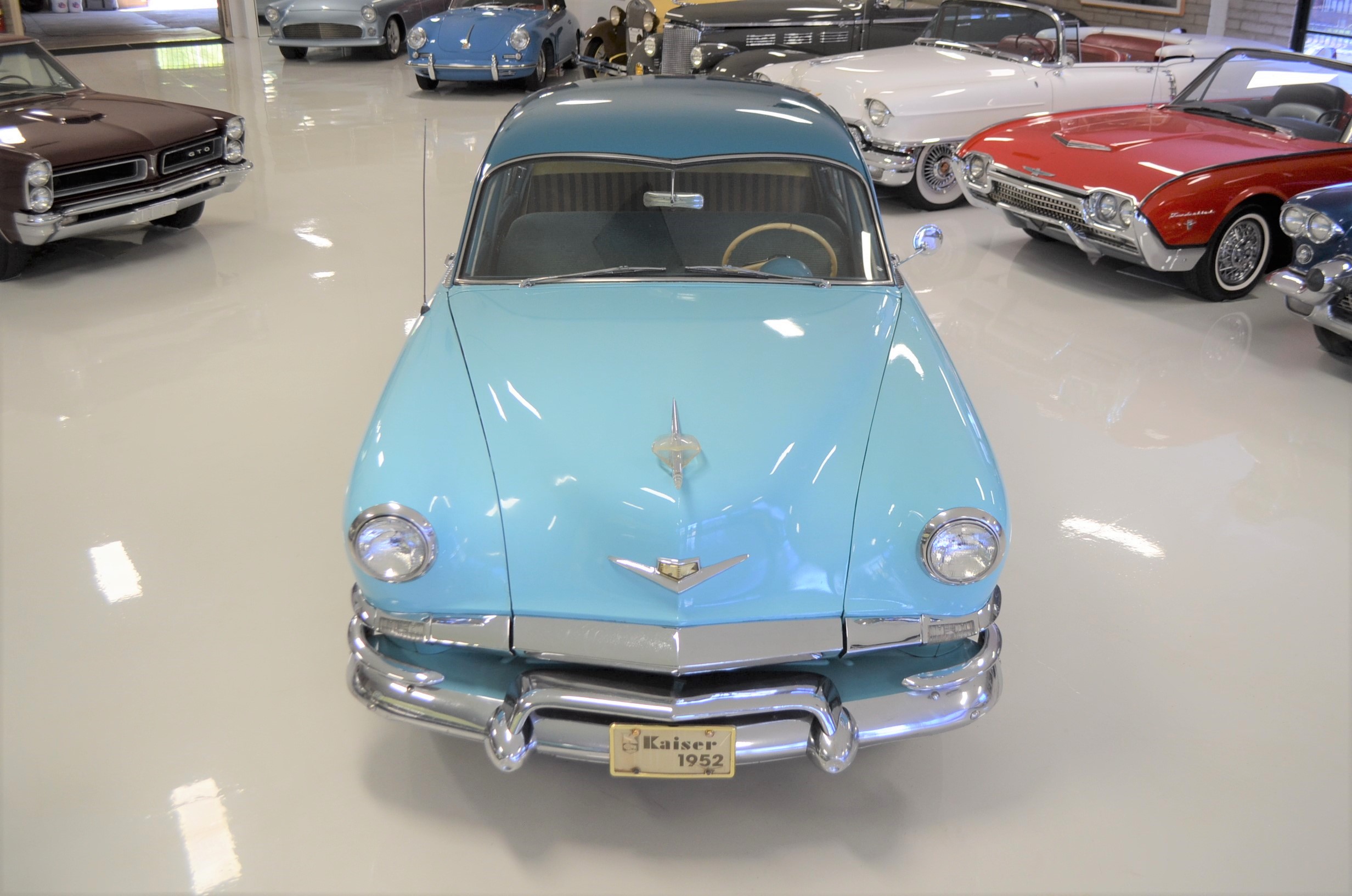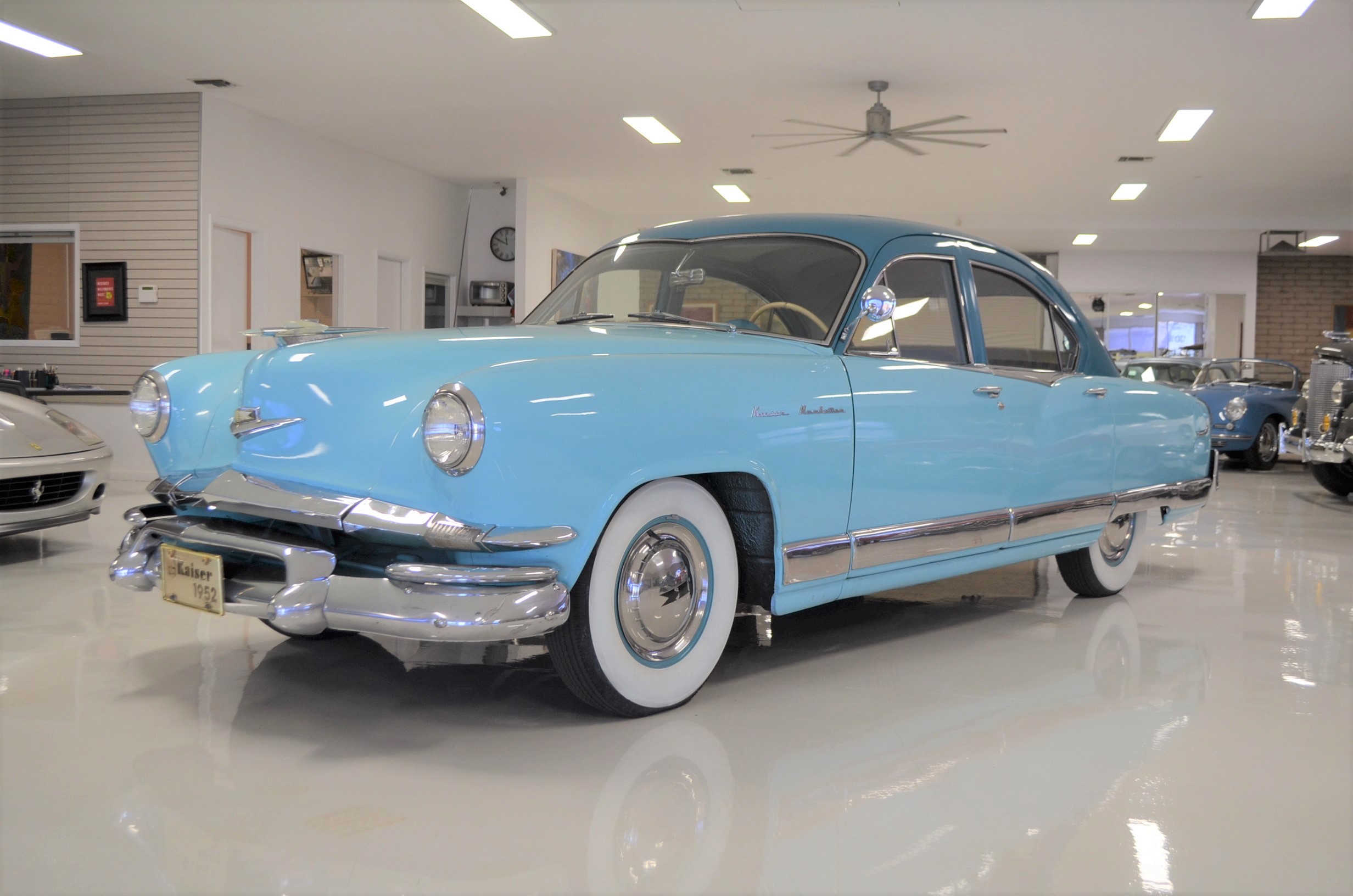 This is a fabulous and rare piece of American automotive history, a 1952 Kaiser Manhattan four-door sedan. Being a true survivor, this retains all of its original upholstery, including the 68 year old rear seat seat covers that were installed by the Kaiser dealer when delivered new. If this wasn’t such a fantastic and dependable tour car we would want it to be in a museum!! Overall this is a very solid dependable tour car that has a consistent patina throughout, making it a No. 3 condition example. We have priced it well at the Hagerty No 3 value, thus the asking price is firm.
