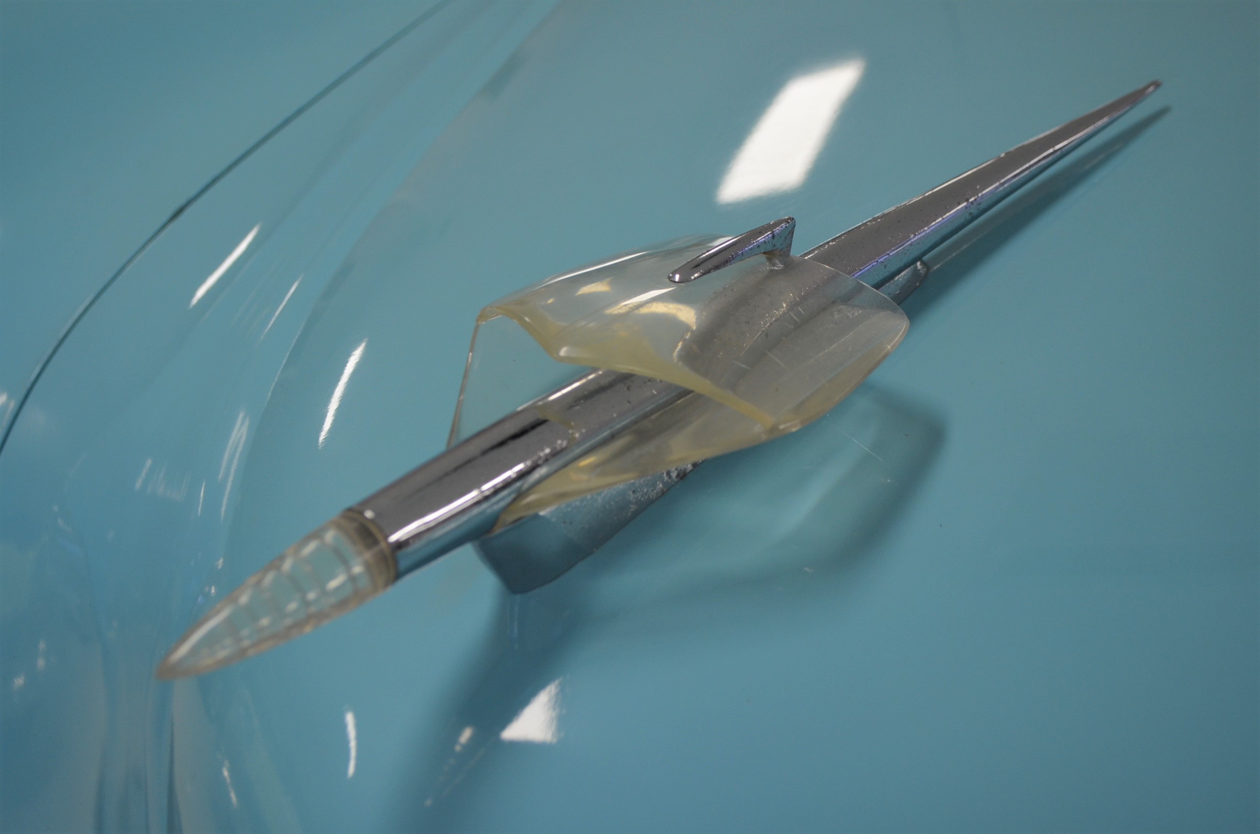 Look at length at the photo gallery where you’ll see the reptile skin vinyl and the turquoise fabric seats. The Kaiser comes complete with many spare parts, including a NOS hood ornament, the front hood chrome and many other items. It also comes with various historical documents, receipts, an original catalog, etc.. Also included is an original set of keys in an alligator key fob. With just over 15,800 sedans made, this is an incredibly rare find.