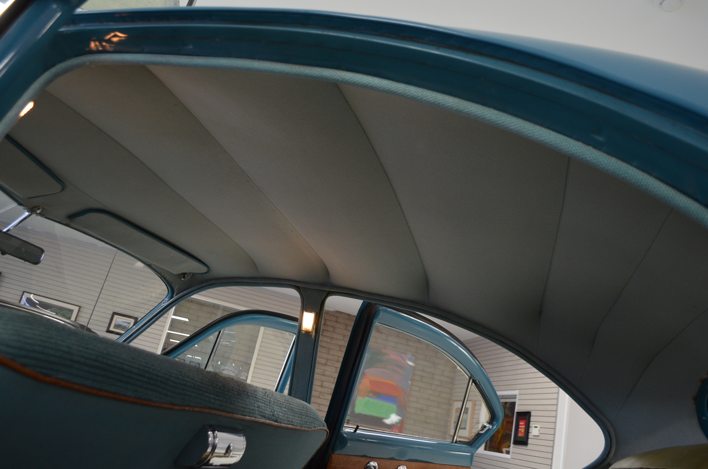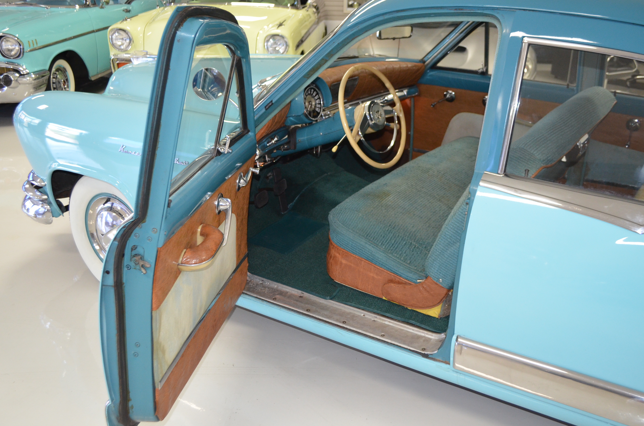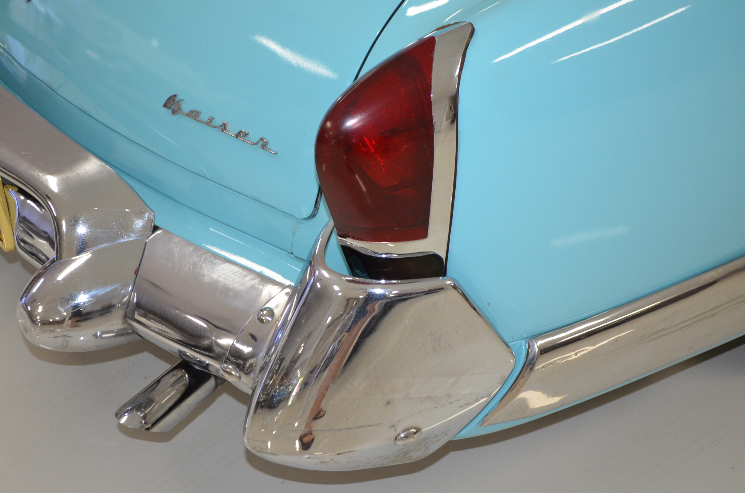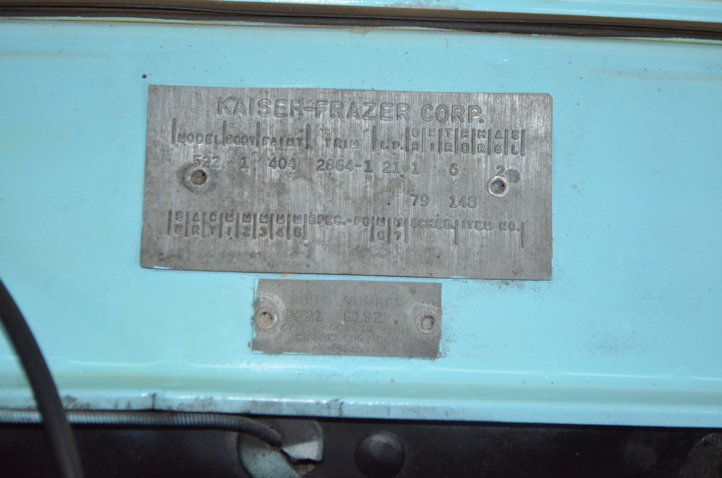 The first owner of the Kaiser enjoyed the car for 54 years. It is believed to have been a rust free southern car since new. It was formerly owned by its fourth owner, Robert McAtee from Scottsdale, AZ (whom we’ve known for three decades). Robert has driven the car to Kaiser meets in Texas and California. Mechanically, the Kaiser is in very nice condition. The 226 ci and 115 hp six cylinder Continental (Kaiser Supersonic) engine was rebuilt in about 2008. The three-speed with overdrive manual transmission works simply and well. This Kaiser has been very dependable and performs quite well. It is truly amazing how effortlessly and silent the car drives down the highway. The ride is enhanced by its 118.5 in wheelbase and an overall length of 210 inches.