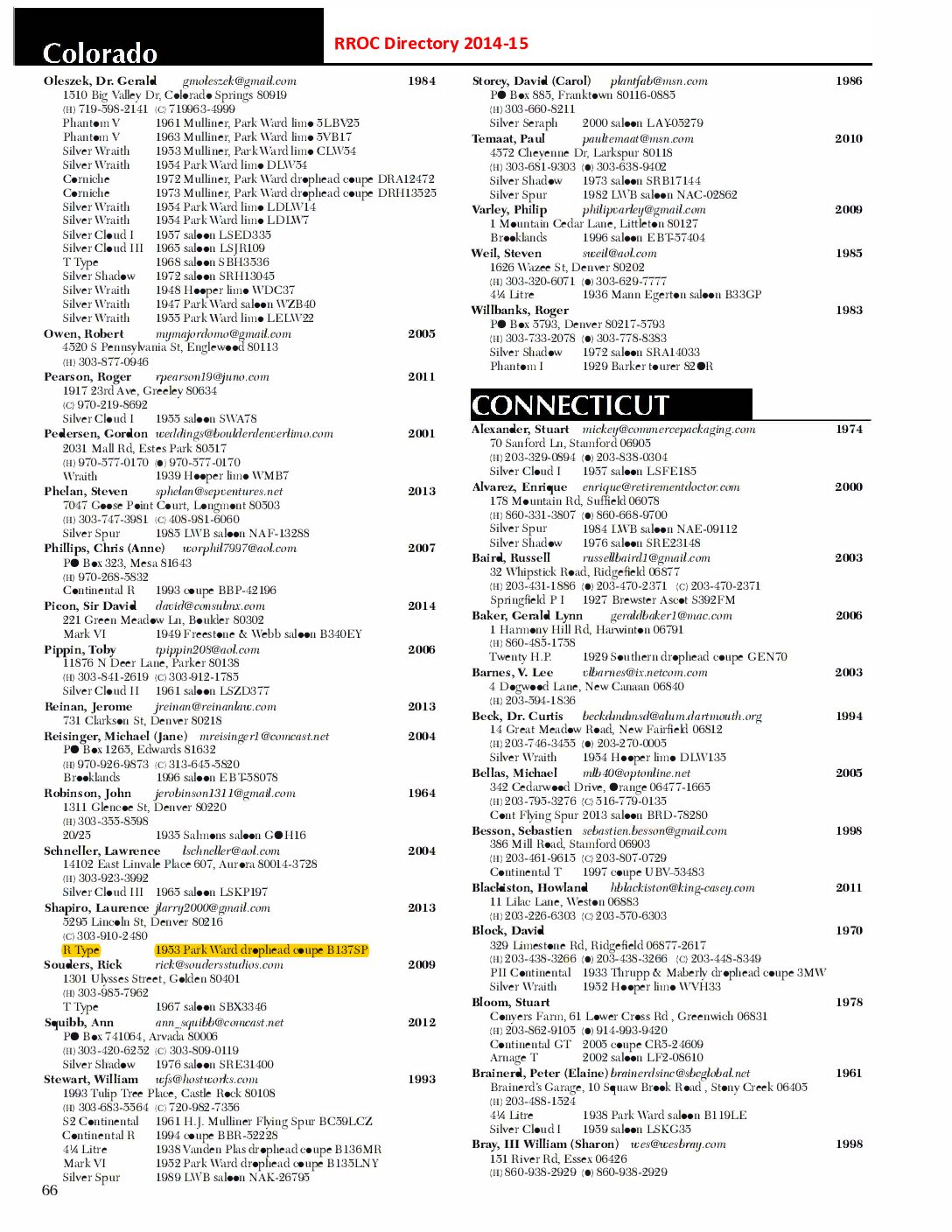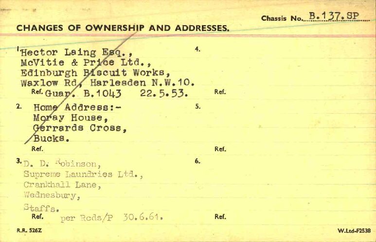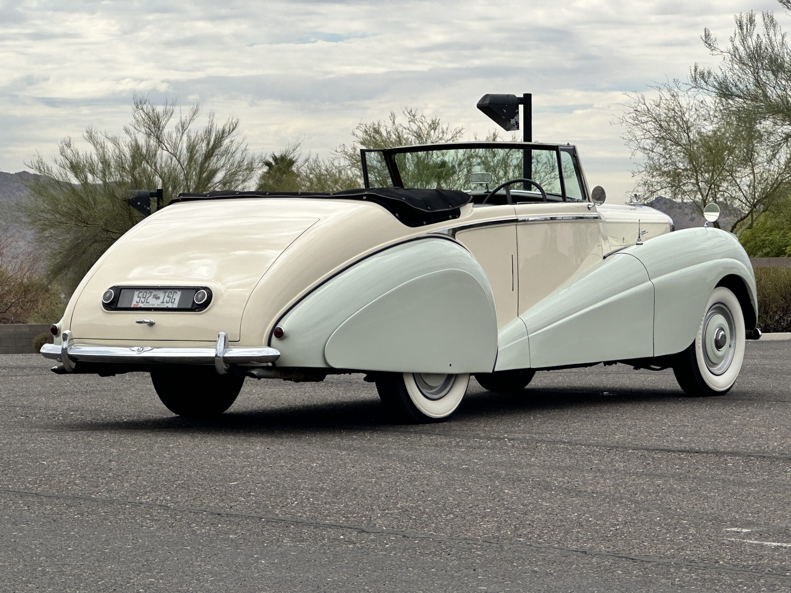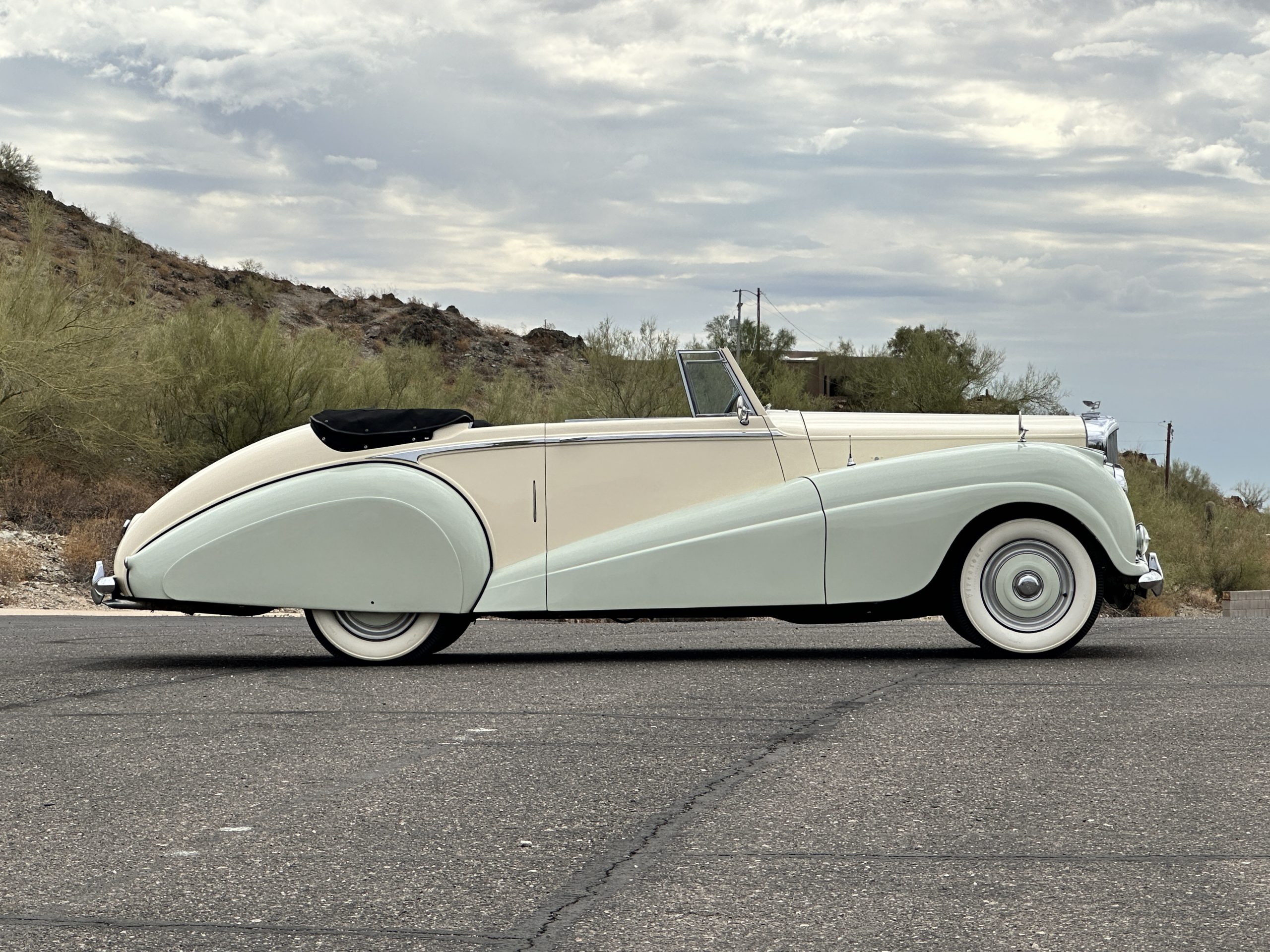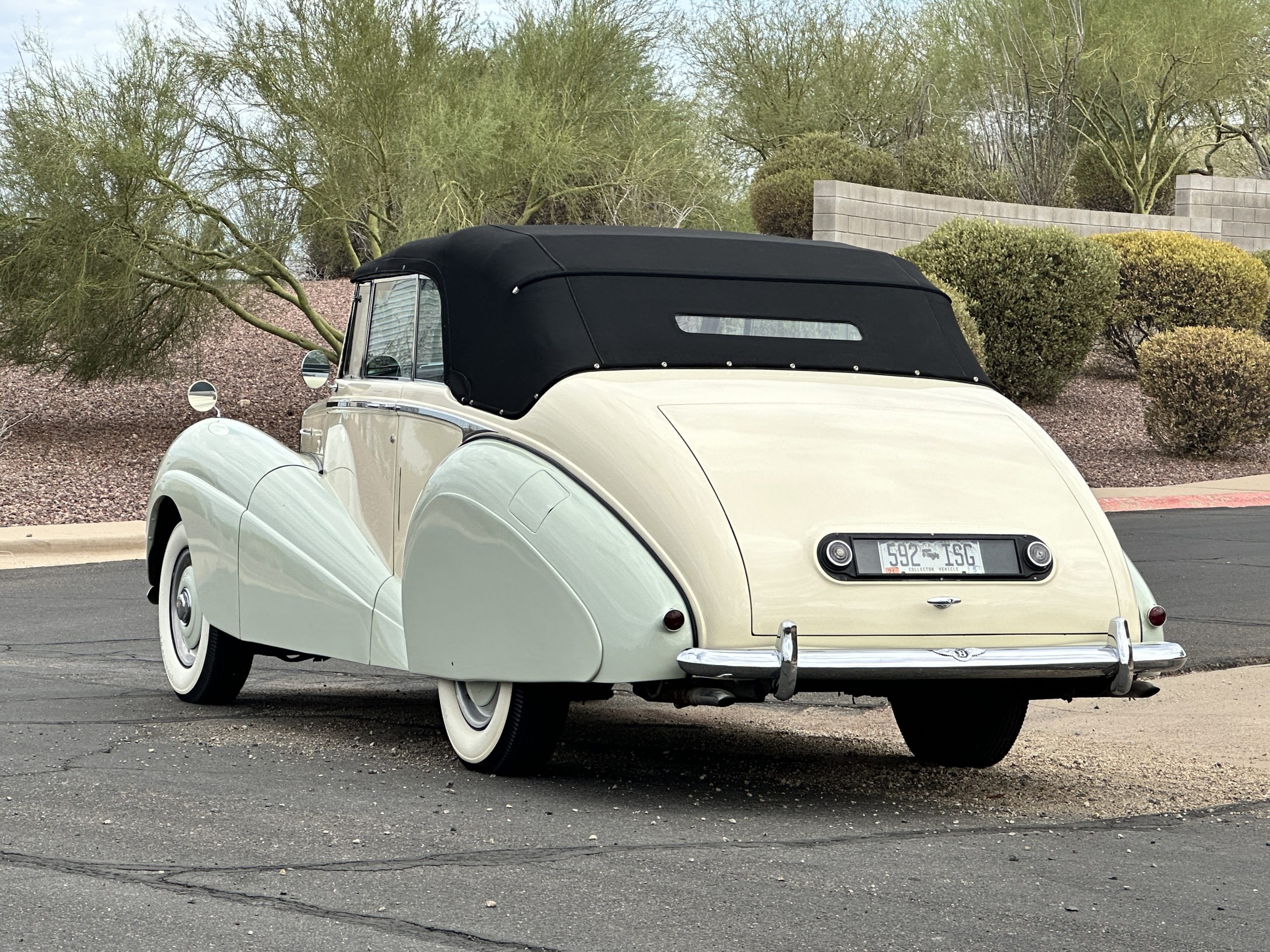 This Drophead Coupe is one of Park Ward’s Design 99 and the chassis was delivered to Park Ward on January 23, 1953. The craftsmen at Park Ward built B137SP for Mr. Hector Lang for the Edinburgh Biscuit Works and it was delivered new on May 22, 1953. The Bentley was enjoyed by Mr. Lang until it was acquired by Mr. D.D. Robinson of Wednesbury on June 30, 1961. Mr. Lang had ordered a Bentley S2 Hooper Saloon to replace the Drophead. By the 1970’s, the Bentley had made its way to Colorado and was owned by Dr. Hassan. Dr. Hassan was quite infamous for a period and desired a four-door saloon. Mr. Leslie Shapiro traded his 1956 Bentley S1 Saloon and some supplemental funds for this Drophead Coupe. Mr. Shapiro set out on a complete repaint and further restoration work and by about 2001 had gifted it to his son, Mr. Laurence Shapiro of Aspen and Vail, CO. The Bentley has been enjoyed on at least two cross country trips and has been regularly used and enjoyed.