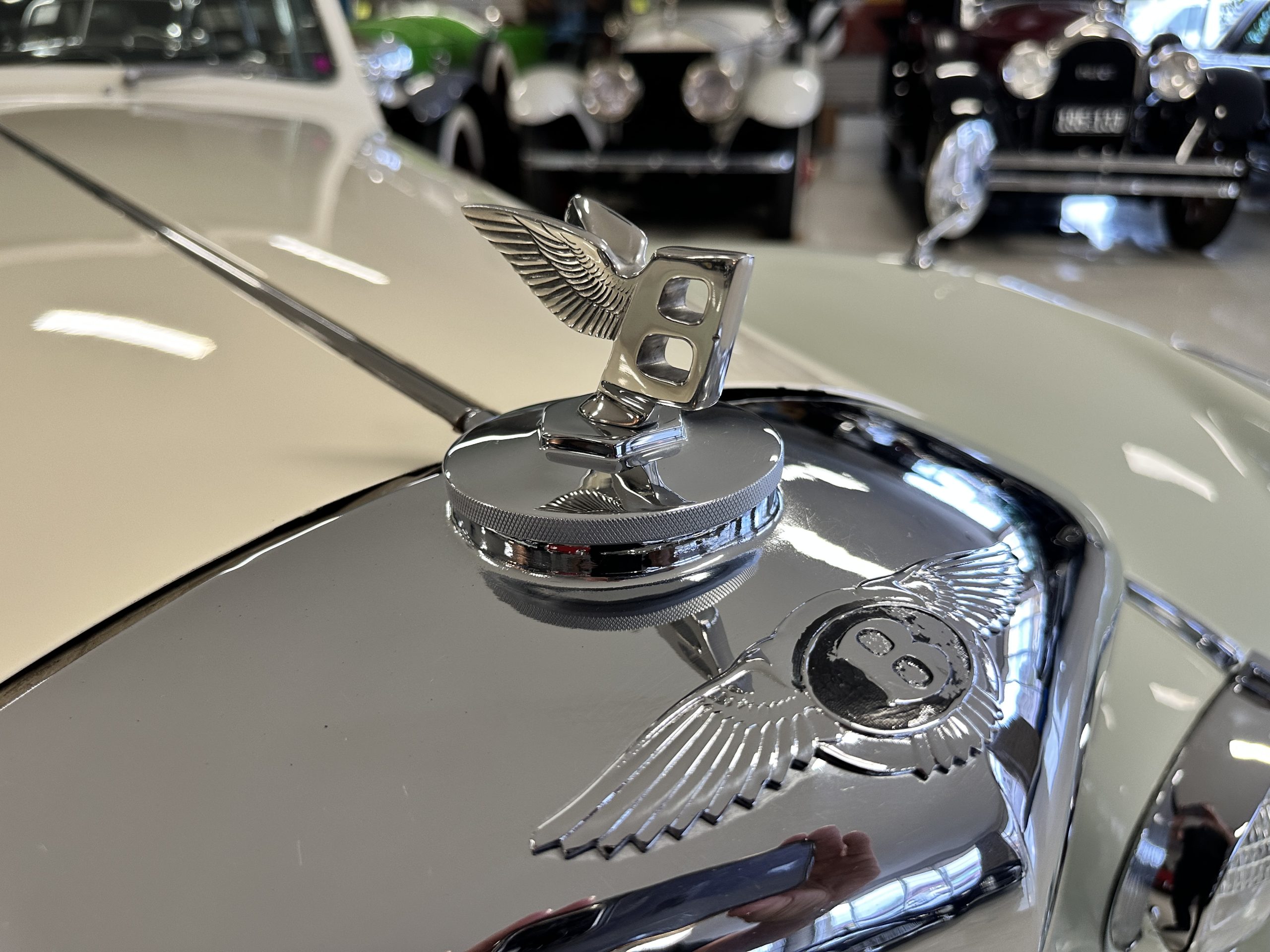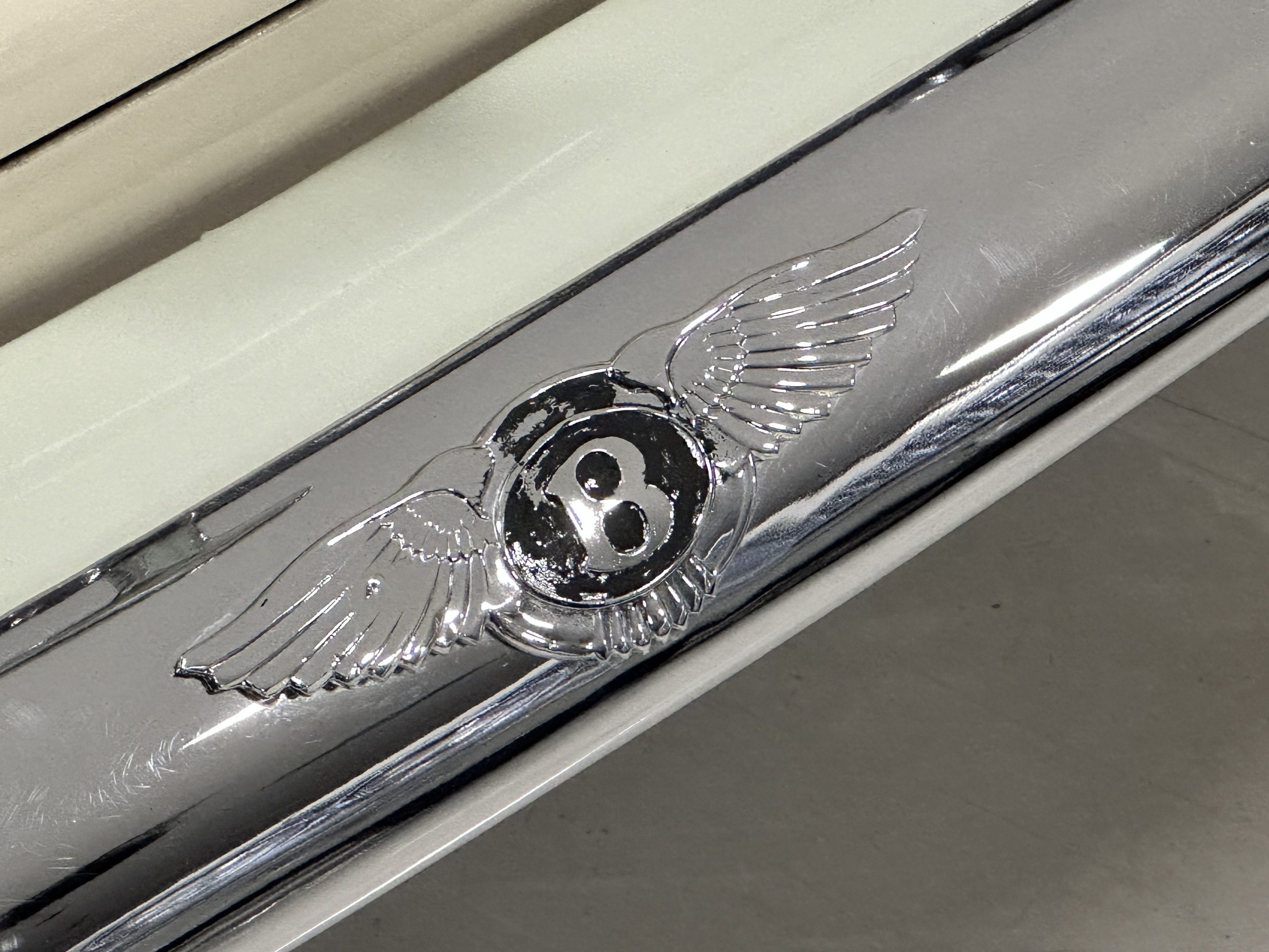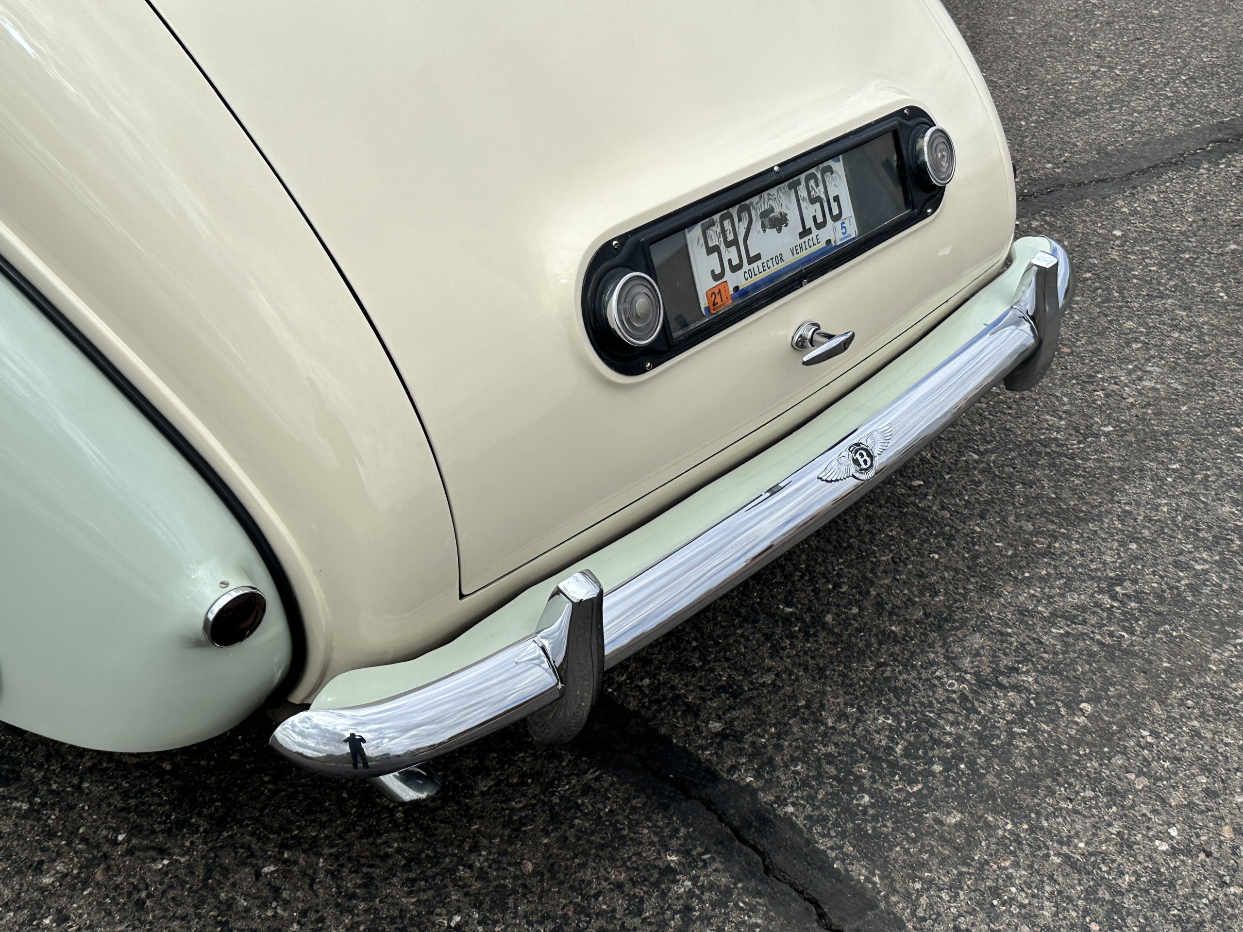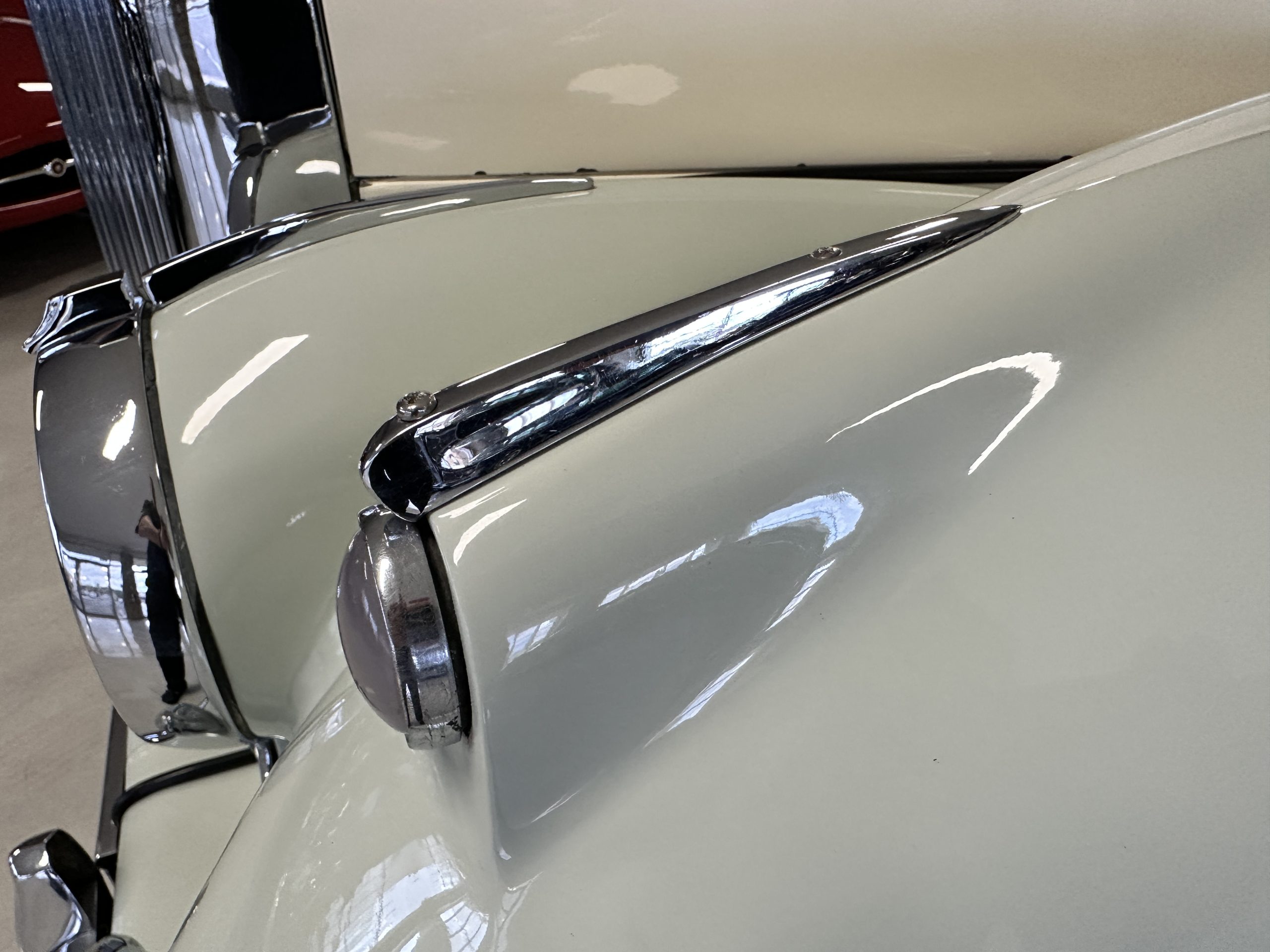 In our opinion, the white walled tires would be better off replaced with black walled radial tires. This is a quick and easy upgrade. The chrome and stainless-steel trim are in surprisingly great condition. There are no signs of pitting or dents, showing that this Bentley has been cared for and cherished. We love the enormous fender skirts that create the gorgeous sexy curves that starts at the front fenders and continues through the entire length of the car. This looks much more like French coachwork than English. Thank you, Park Ward.