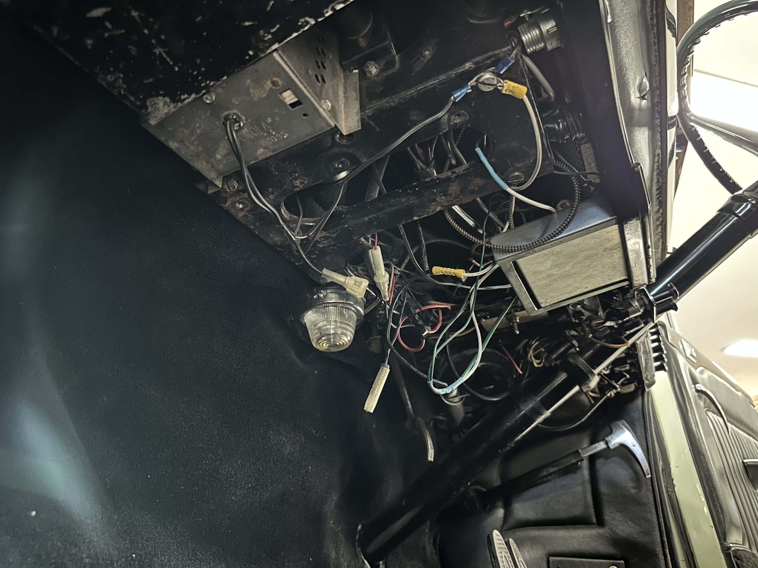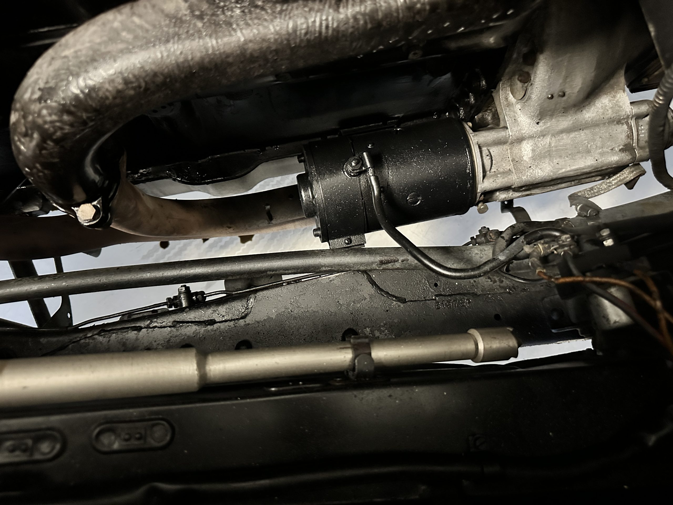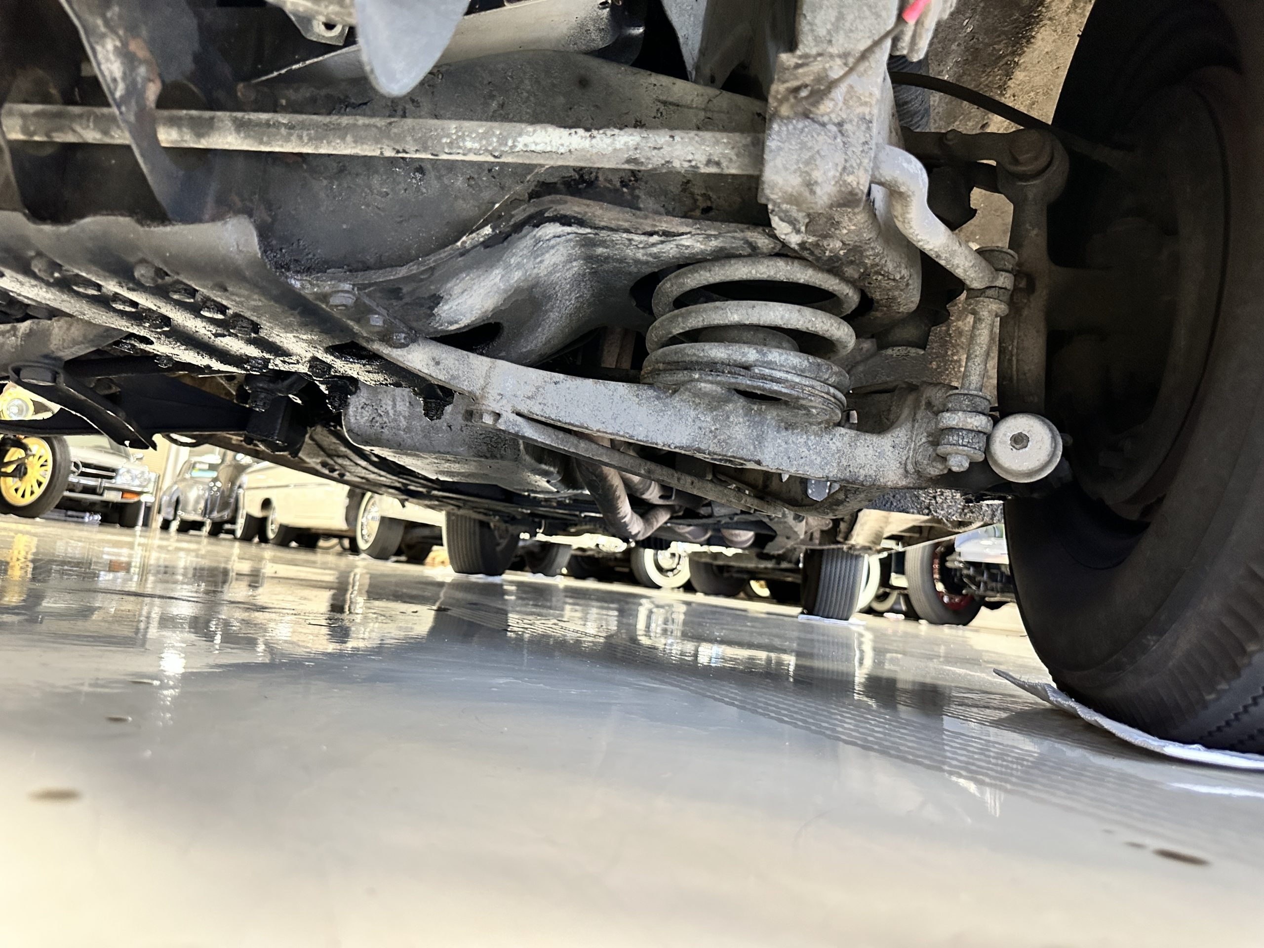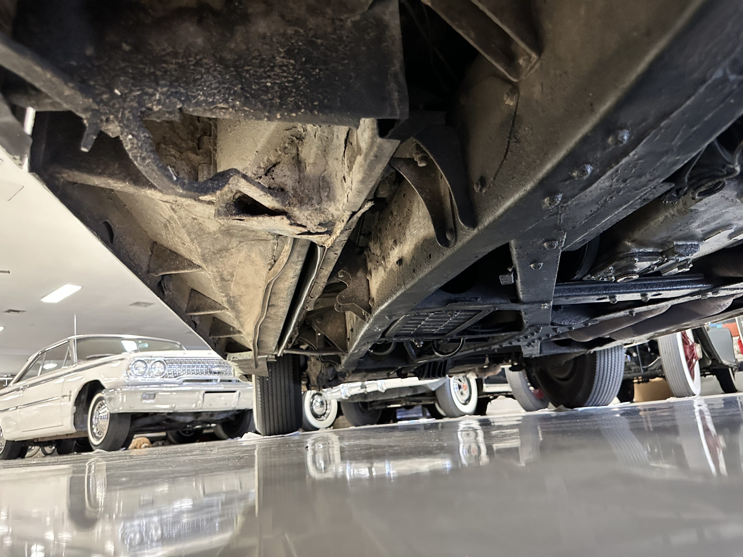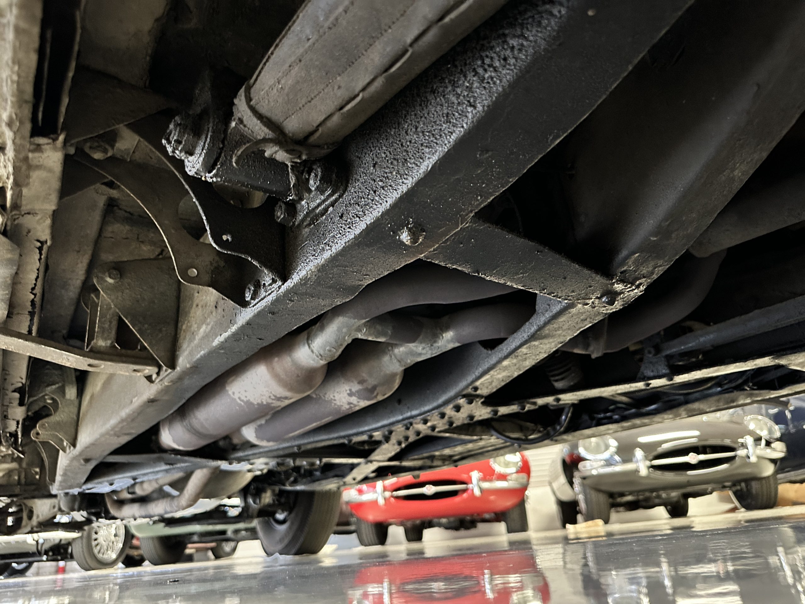 The engine compartment has been detailed but over the years has been painted with more black than original. It looks quite presentable but not appropriate for RROC judging, etc. The 4.6 liter straight six-cylinder engine produces 130 hp and with its four-speed manual transmission is a blast to drive. The engine sounds great and even in 105-degree F temperatures runs very cool. Its 120-inch wheelbase makes it easy to maneuver and a delight to drive. This Bentley has a wonderful road feel. The RHD steering is very stable and has little play. The transmission linkage is a little loose and it tends to pop out of reverse in short order. The chassis is all original and has never really been cleaned or detailed. There is the normal rust in the inner rocker panels and under the car from its early life in the UK. These are non-structural and easily repaired, if so desired.