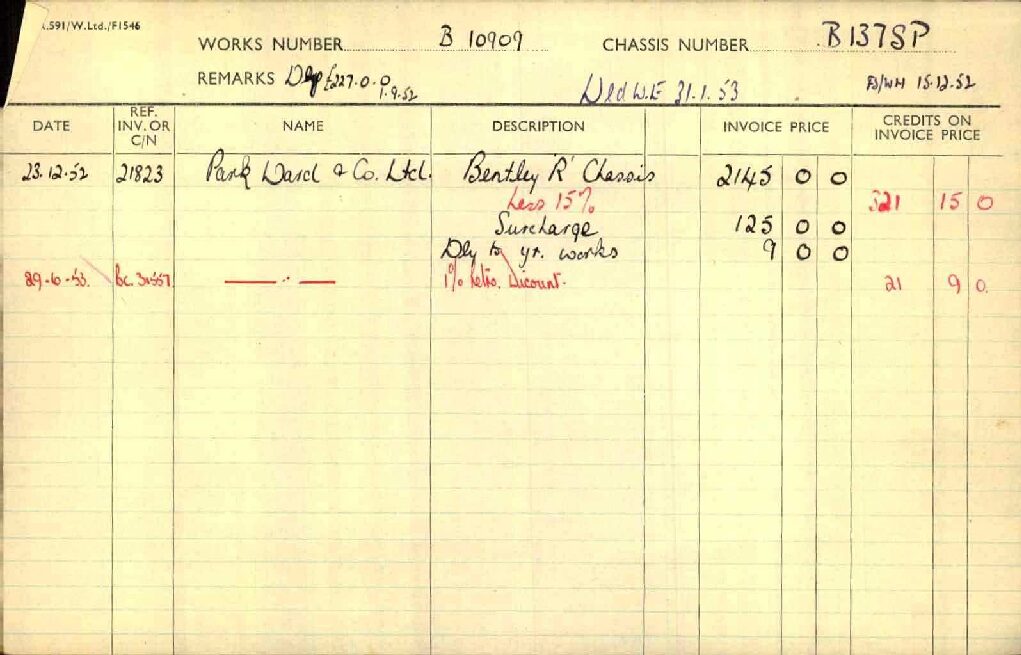 We have this Bentley priced right. The Hagerty Values for this are $228,000 for a No 1, $193,000 for a No. 2, $157,000 for a No. 3 and $112,000 for a No. 4. This is the Hagerty Values website: 1953 Bentley R-Type Coachbuilt | Hagerty Valuation Tools