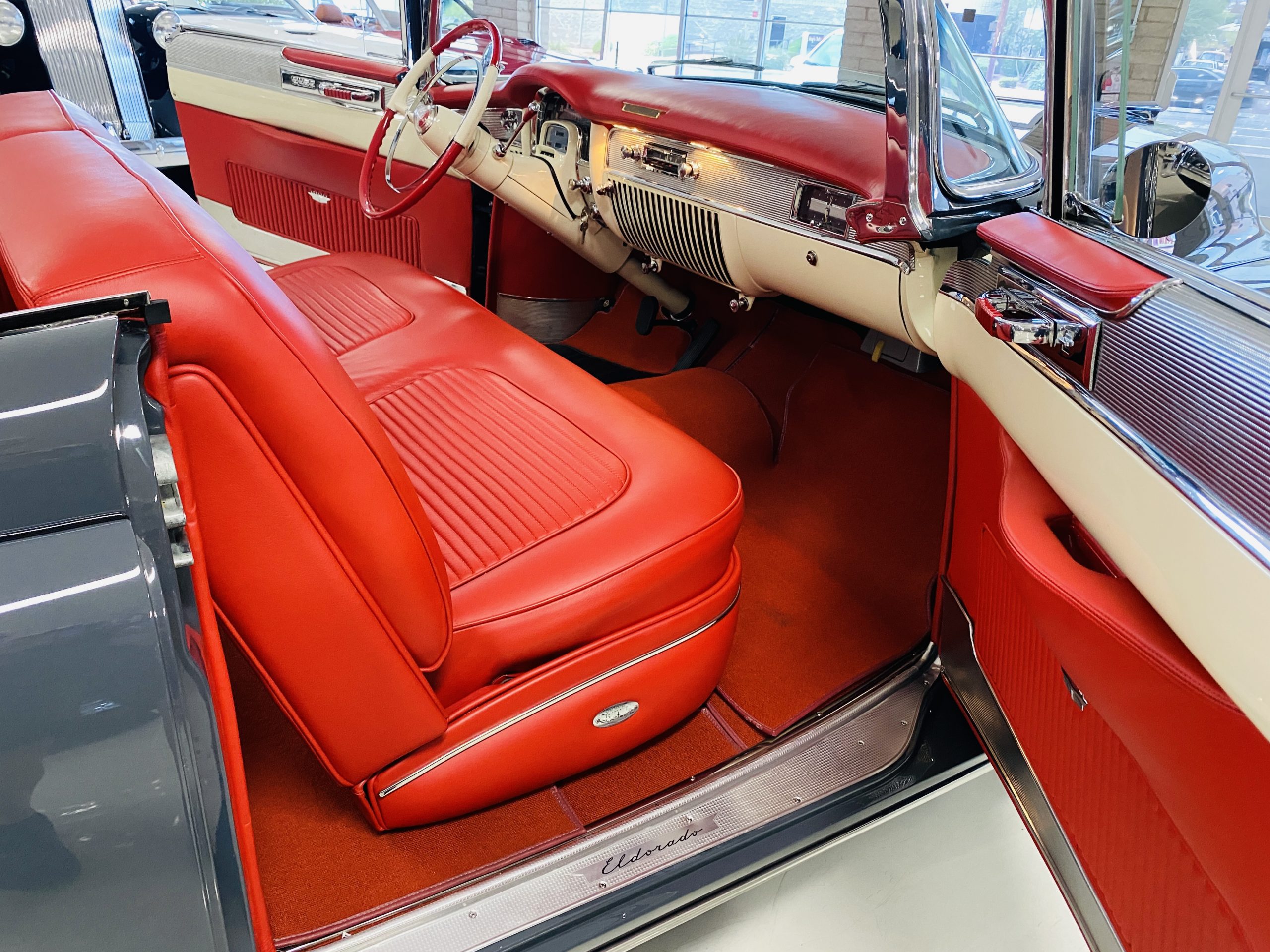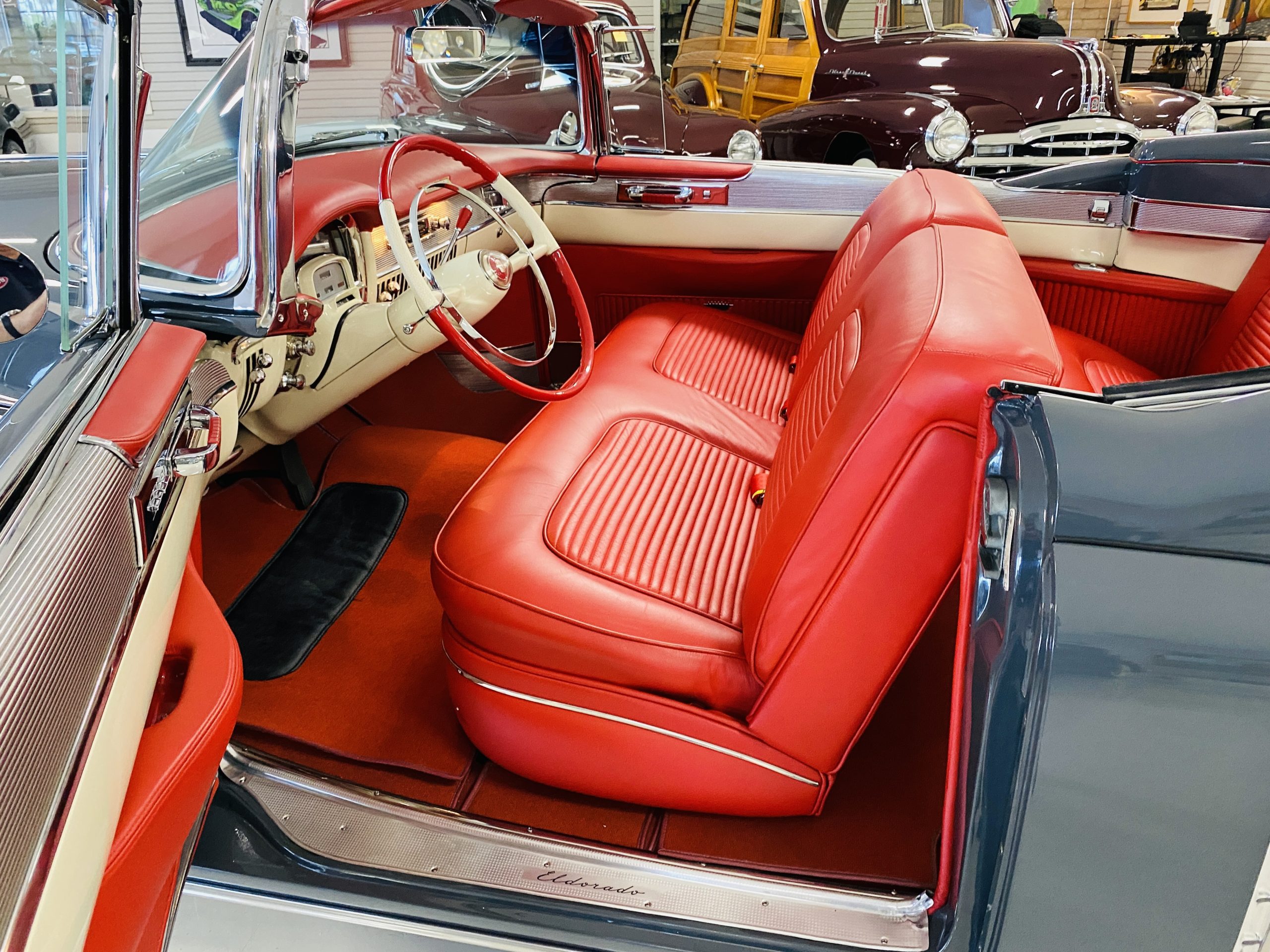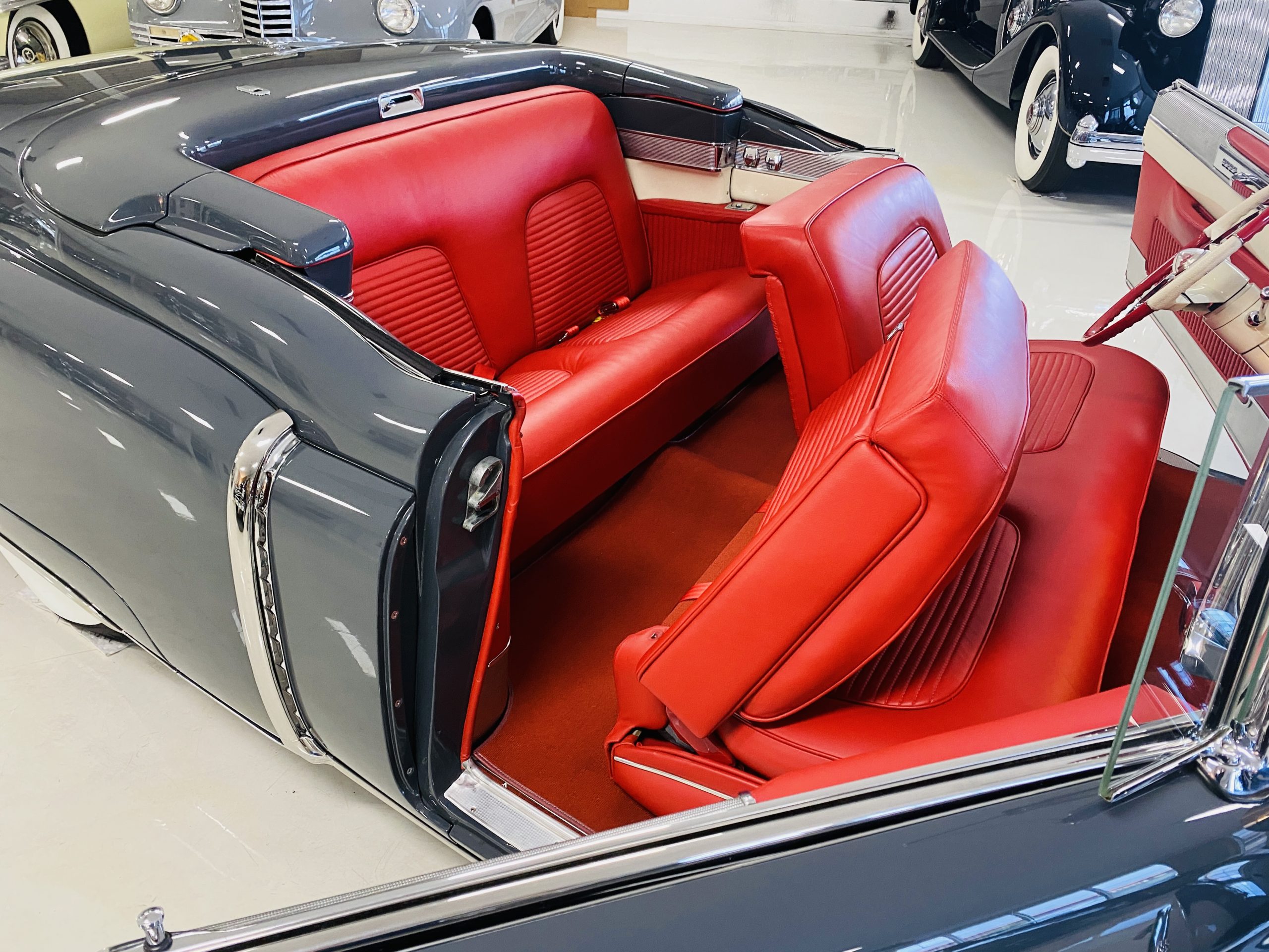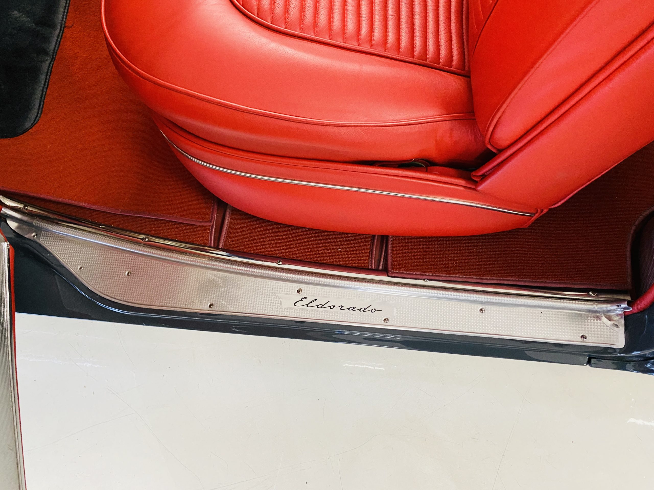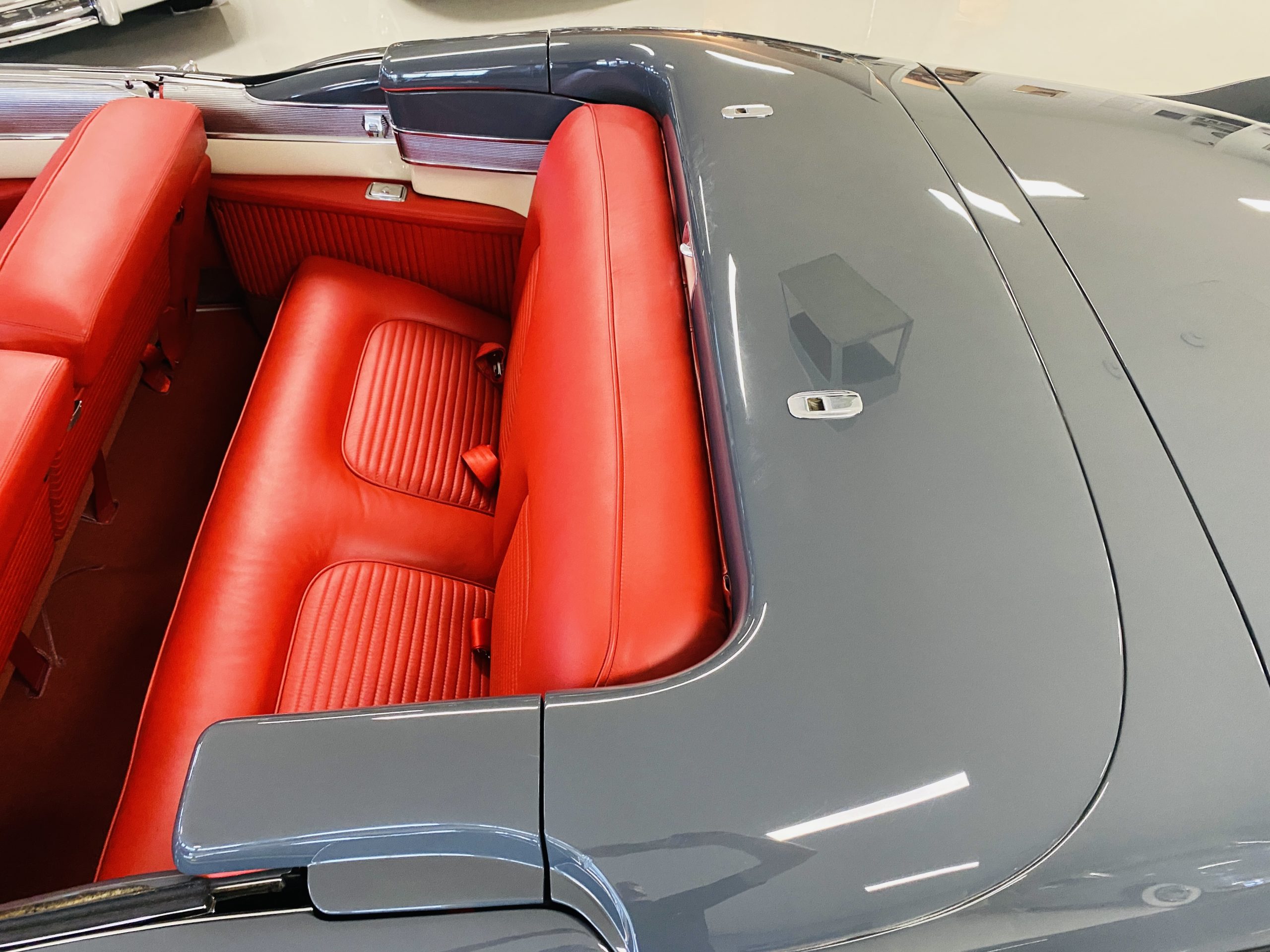 In 2008, Mr. Gimelli sold the Eldorado to Bruce Kersey of Gig Harbor, WA. While Mr. Kersey loved the Eldorado, he was not fond of its original Azure Blue paint and interior combination. He proceeded to send the Cadillac to Jerry Hjeltness of Hjeltness Restoration in Escondido, CA. Having completed an award-winning Mercedes-Benz 300SL restoration for him in the past, Mr. Kersey knew that Jerry was the man for the job. Hjeltness disassembled the car and took the body down to the bare metal. Over the next 6 months, they would repaint the car in its stunning present Norman Gray Poly (Paint Code 8), and re-trimmed the interior in a vast expanse of beautiful red leather, and recondition all of the bright work. They approached the project as they do all of their Pebble Beach winning automobiles, and the result is a cosmetically stunning car that wouldn’t flinch being called a work of art. The chrome and stainless steel preparation is absolutely stunning. We have never seen such perfect chrome and stainless on a 1950’s Cadillac. Ever.