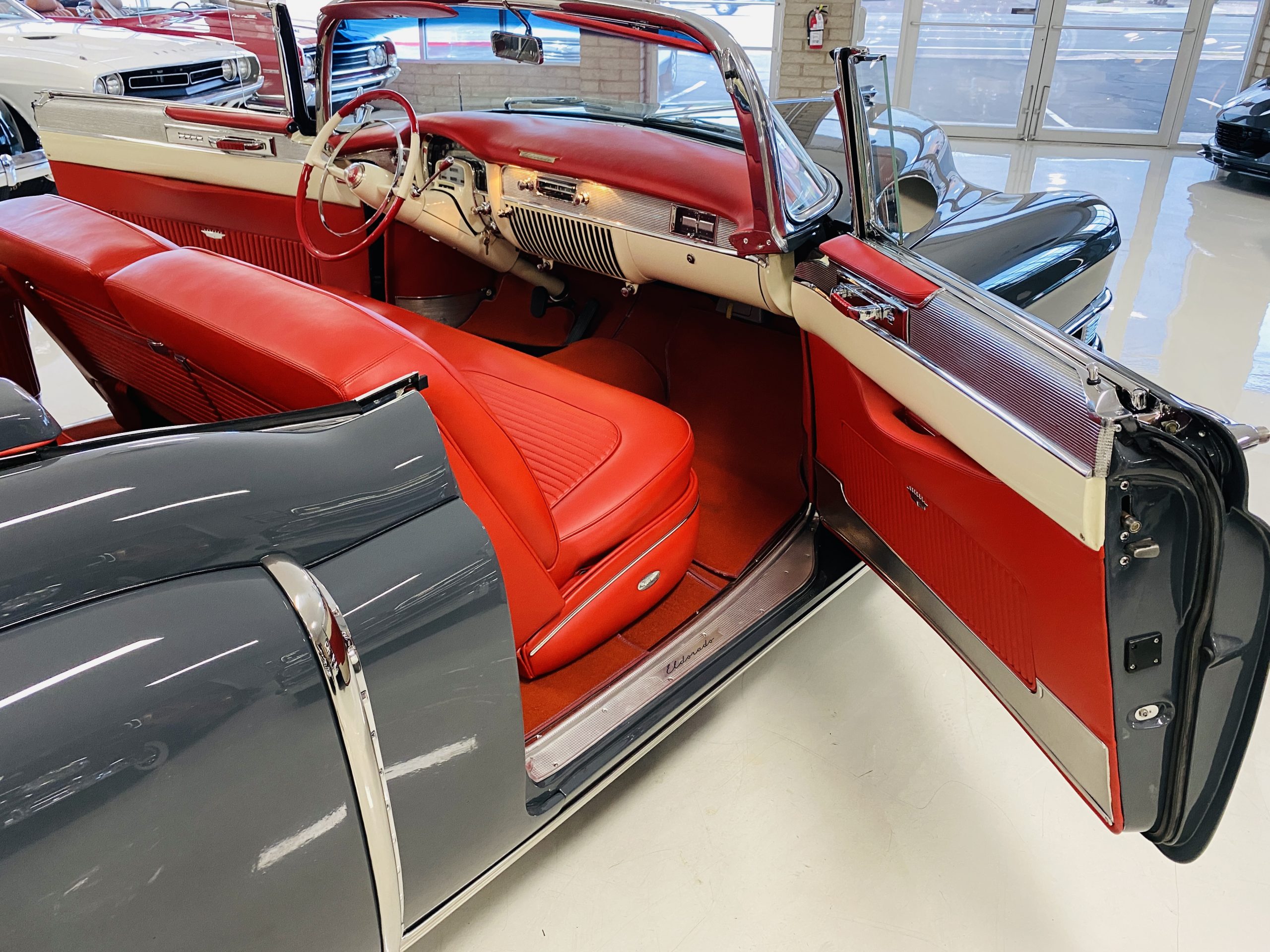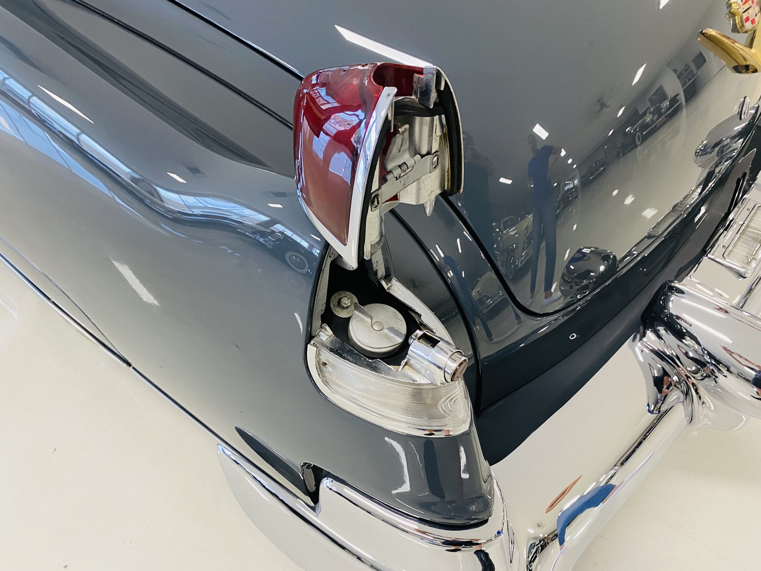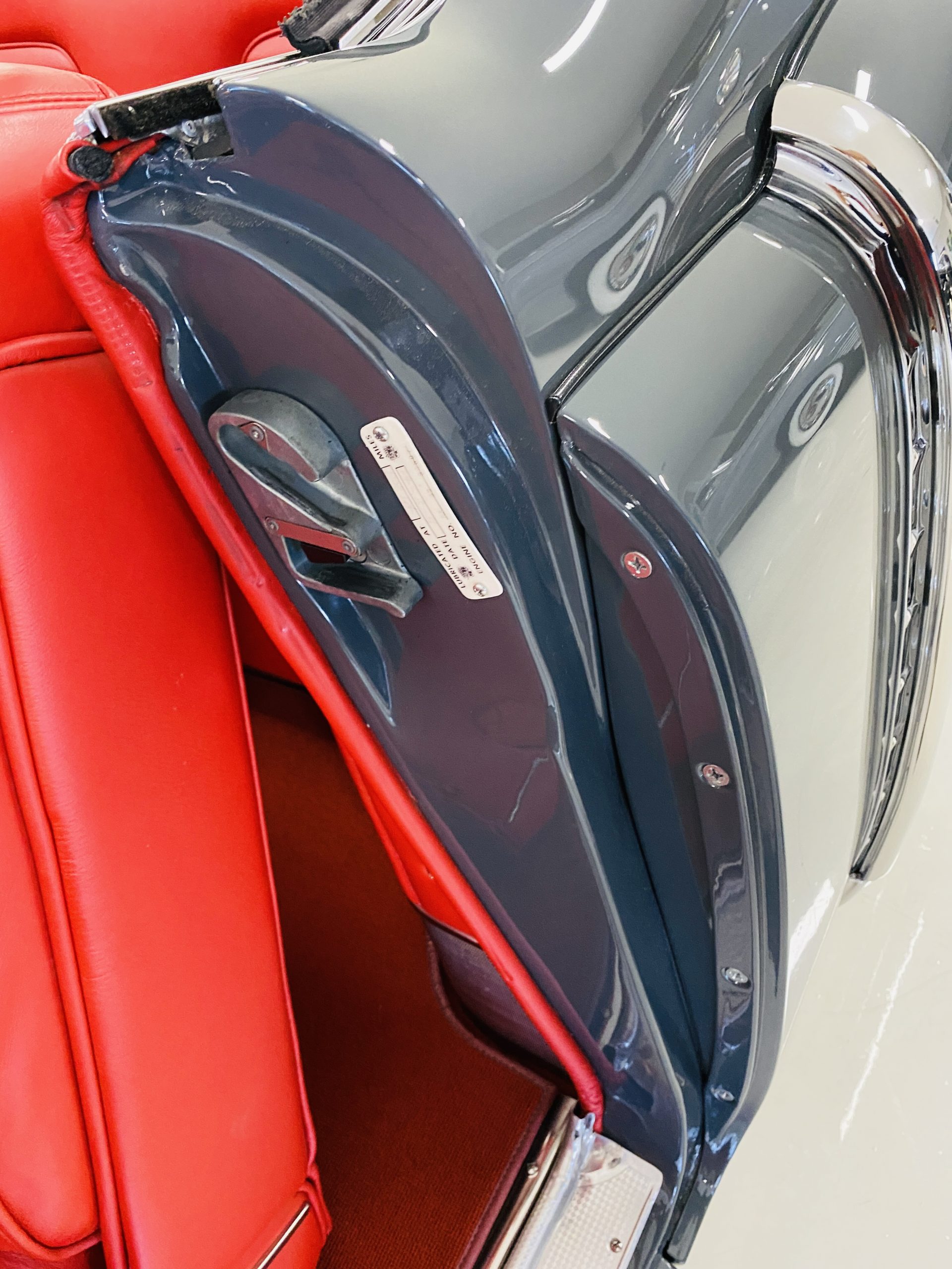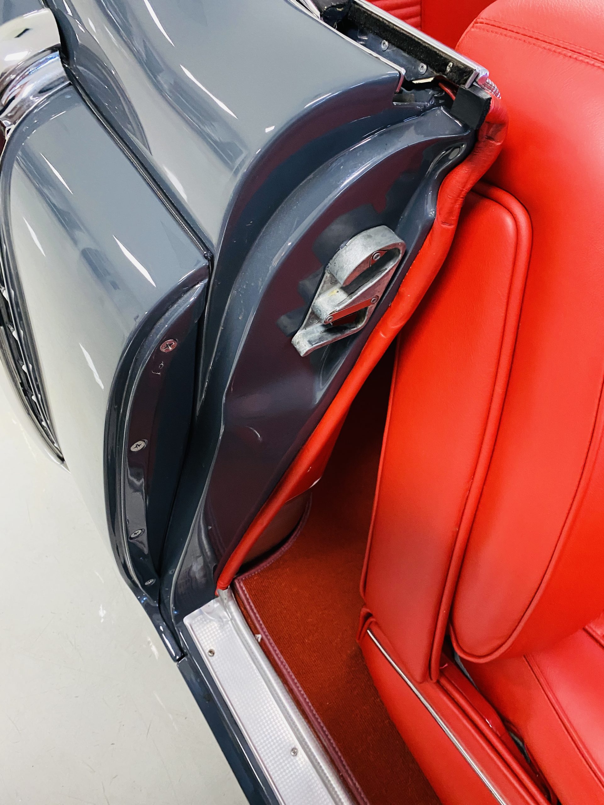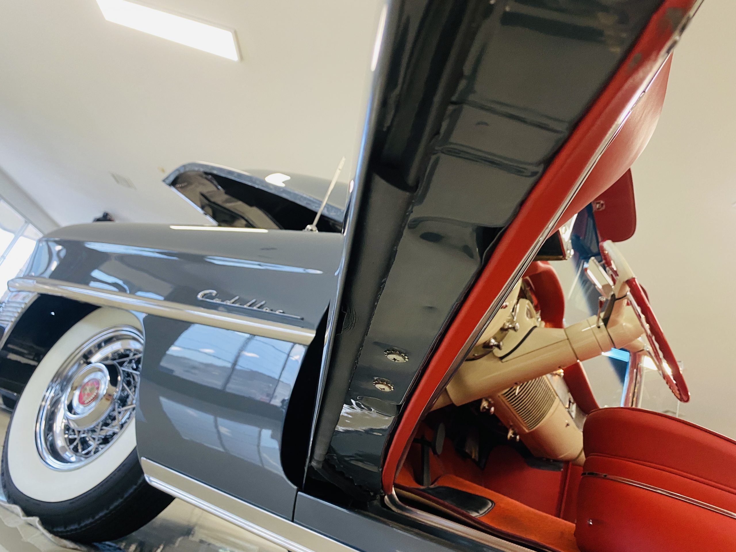 In 2008, Mr. Gimelli sold the Eldorado to Bruce Kersey of Gig Harbor, WA. While Mr. Kersey loved the Eldorado, he was not fond of its original Azure Blue paint and interior combination. He proceeded to send the Cadillac to Jerry Hjeltness of Hjeltness Restoration in Escondido, CA. Having completed an award-winning Mercedes-Benz 300SL restoration for him in the past, Mr. Kersey knew that Jerry was the man for the job. Hjeltness disassembled the car and took the body down to the bare metal. Over the next 6 months, they would repaint the car in its stunning present Norman Gray Poly (Paint Code 8), and re-trimmed the interior in a vast expanse of beautiful red leather, and recondition all of the bright work. They approached the project as they do all of their Pebble Beach winning automobiles, and the result is a cosmetically stunning car that wouldn’t flinch being called a work of art. The chrome and stainless steel preparation is absolutely stunning. We have never seen such perfect chrome and stainless on a 1950’s Cadillac. Ever.