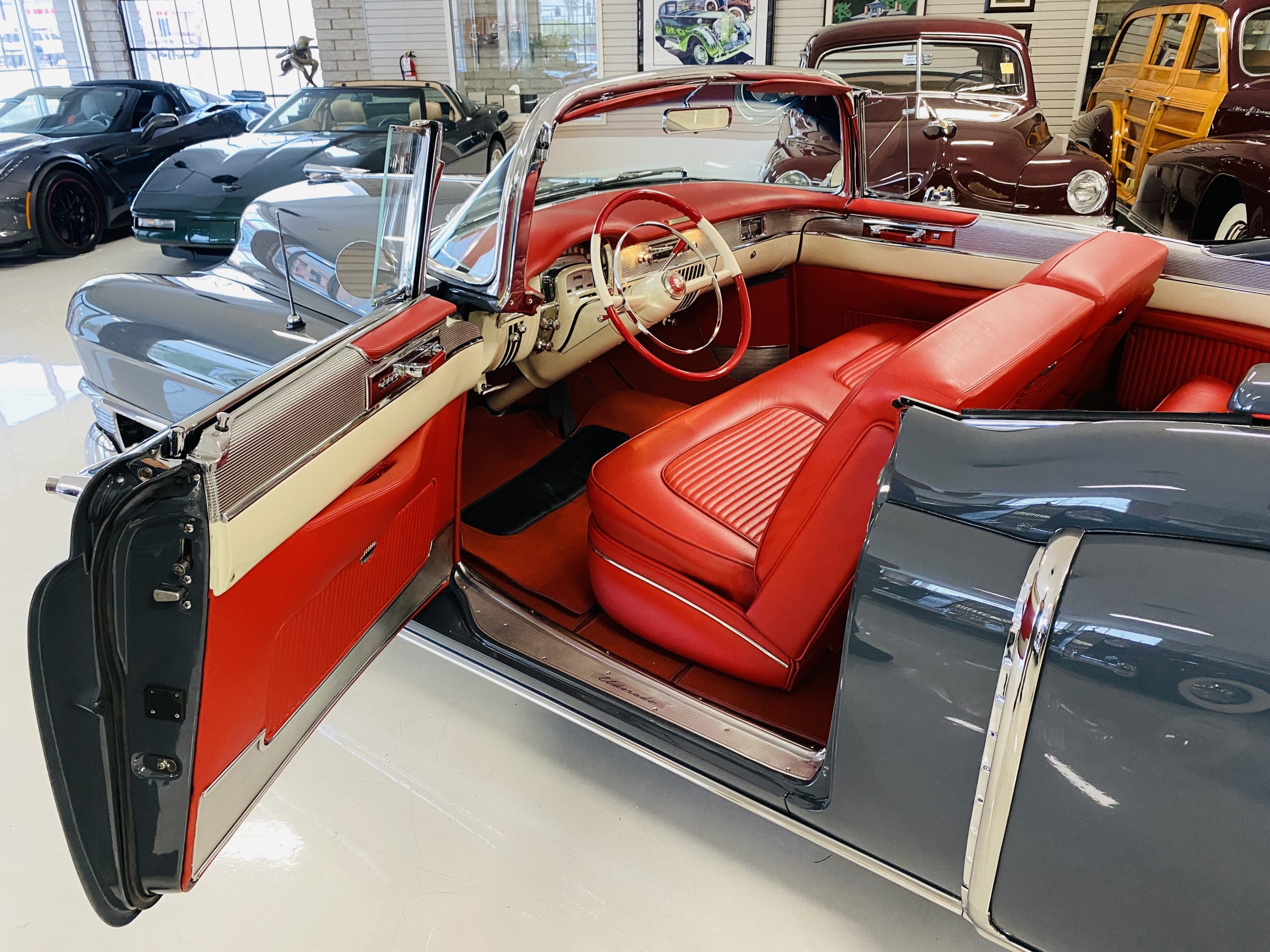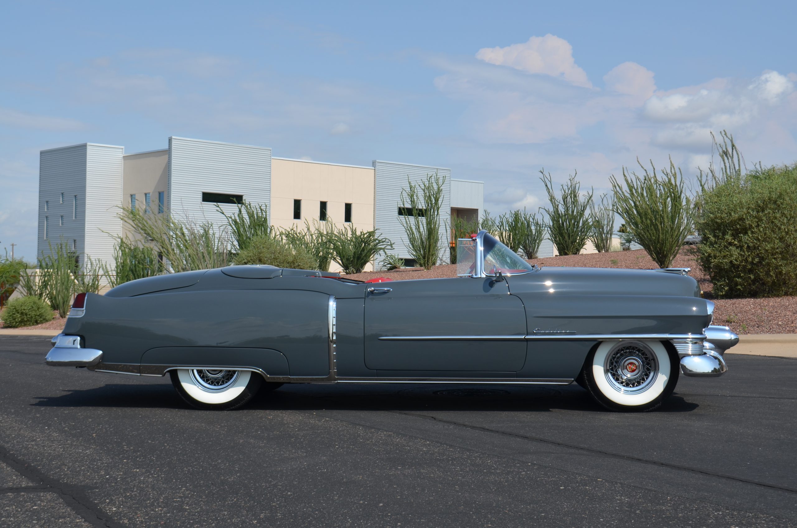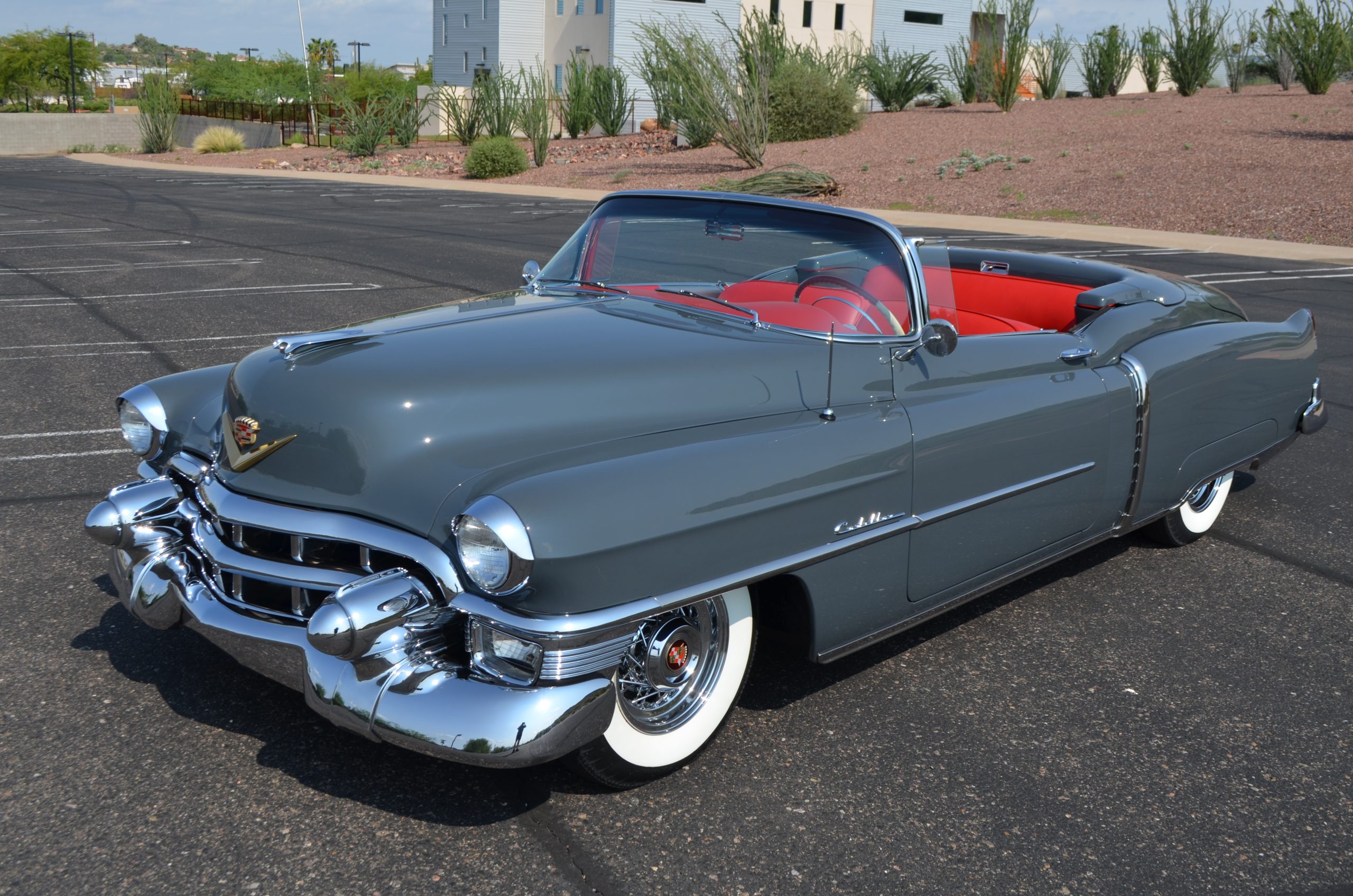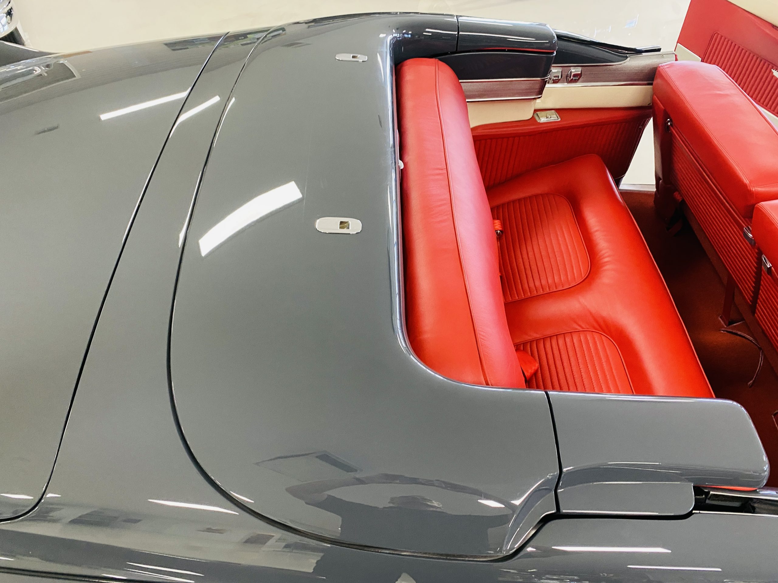 In 2008, Mr. Gimelli sold the Eldorado to Bruce Kersey of Gig Harbor, WA. While Mr. Kersey loved the Eldorado, he was not fond of its original Azure Blue paint and interior combination. He proceeded to send the Cadillac to Jerry Hjeltness of Hjeltness Restoration in Escondido, CA. Having completed an award-winning Mercedes-Benz 300SL restoration for him in the past, Mr. Kersey knew that Jerry was the man for the job. Hjeltness disassembled the car and took the body down to the bare metal. Over the next 6 months, they would repaint the car in its stunning present Norman Gray Poly (Paint Code 8), and re-trimmed the interior in a vast expanse of beautiful red leather, and recondition all of the bright work. They approached the project as they do all of their Pebble Beach winning automobiles, and the result is a cosmetically stunning car that wouldn’t flinch being called a work of art. The chrome and stainless steel preparation is absolutely stunning. We have never seen such perfect chrome and stainless on a 1950’s Cadillac. Ever.