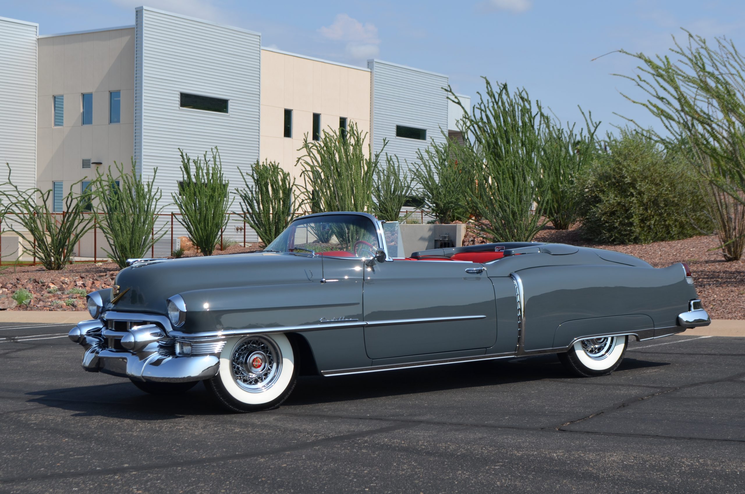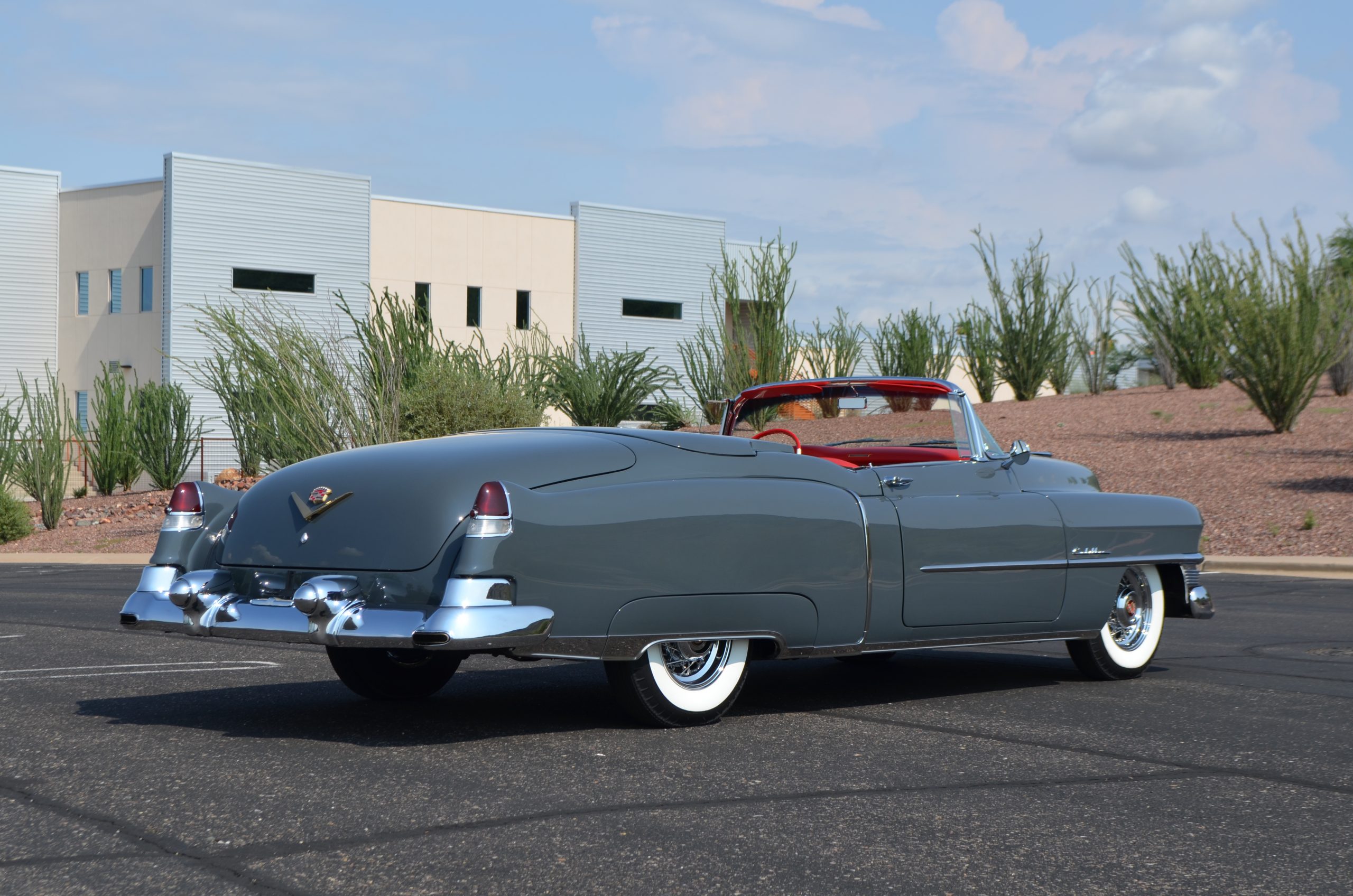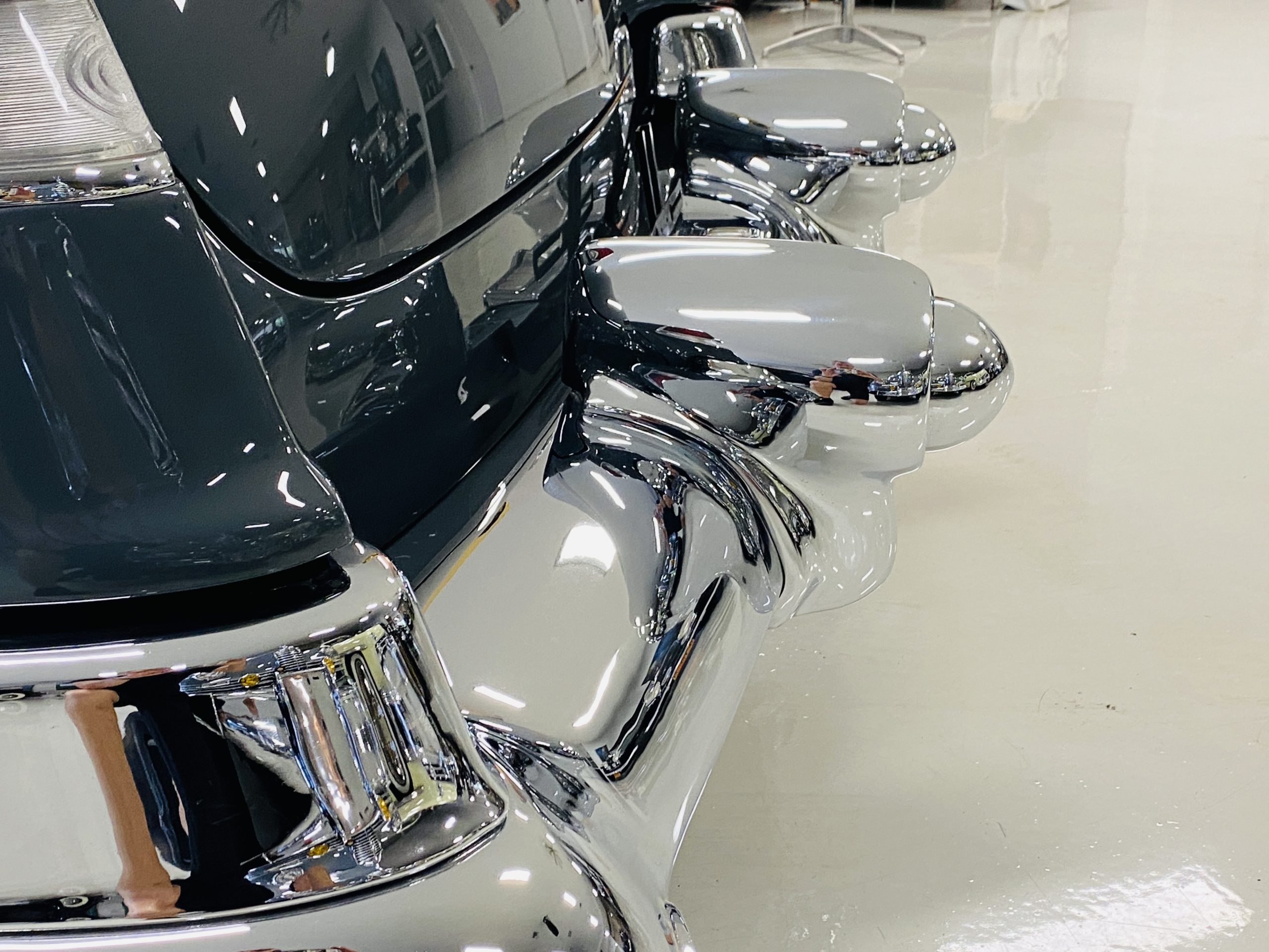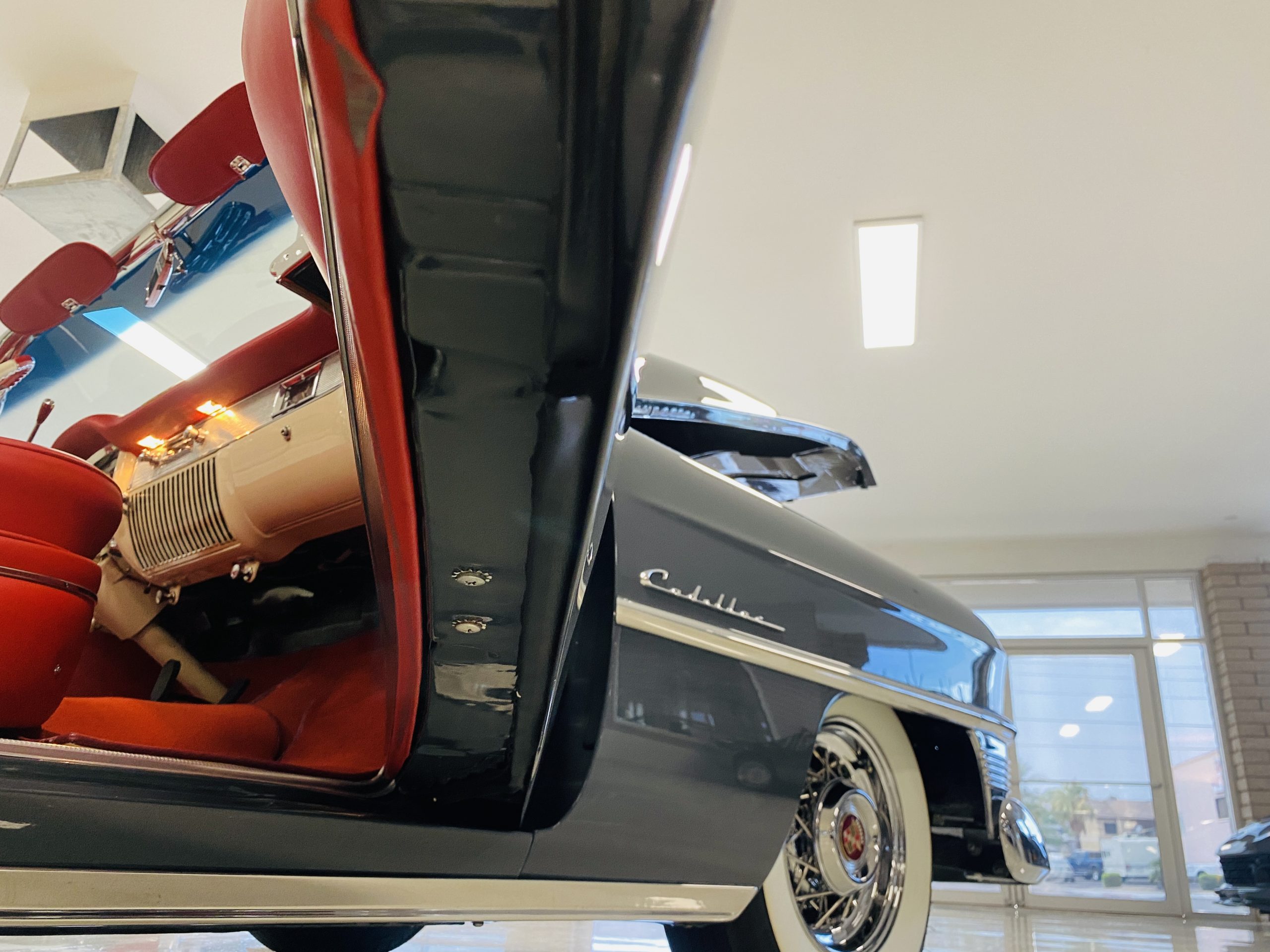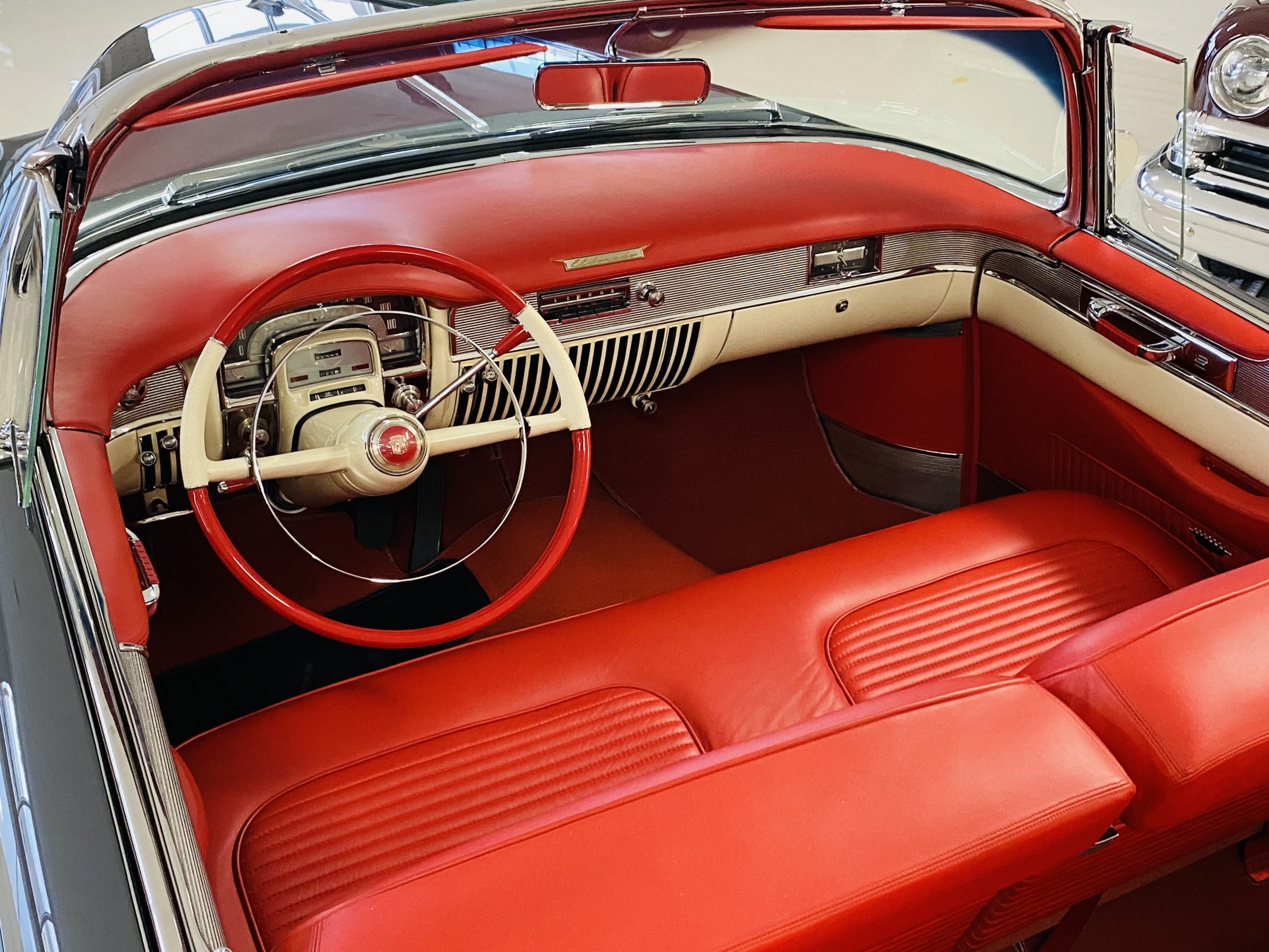 In 2008, Mr. Gimelli sold the Eldorado to Bruce Kersey of Gig Harbor, WA. While Mr. Kersey loved the Eldorado, he was not fond of its original Azure Blue paint and interior combination. He proceeded to send the Cadillac to Jerry Hjeltness of Hjeltness Restoration in Escondido, CA. Having completed an award-winning Mercedes-Benz 300SL restoration for him in the past, Mr. Kersey knew that Jerry was the man for the job. Hjeltness disassembled the car and took the body down to the bare metal. Over the next 6 months, they would repaint the car in its stunning present Norman Gray Poly (Paint Code 8), and re-trimmed the interior in a vast expanse of beautiful red leather, and recondition all of the bright work. They approached the project as they do all of their Pebble Beach winning automobiles, and the result is a cosmetically stunning car that wouldn’t flinch being called a work of art. The chrome and stainless steel preparation is absolutely stunning. We have never seen such perfect chrome and stainless on a 1950’s Cadillac. Ever.