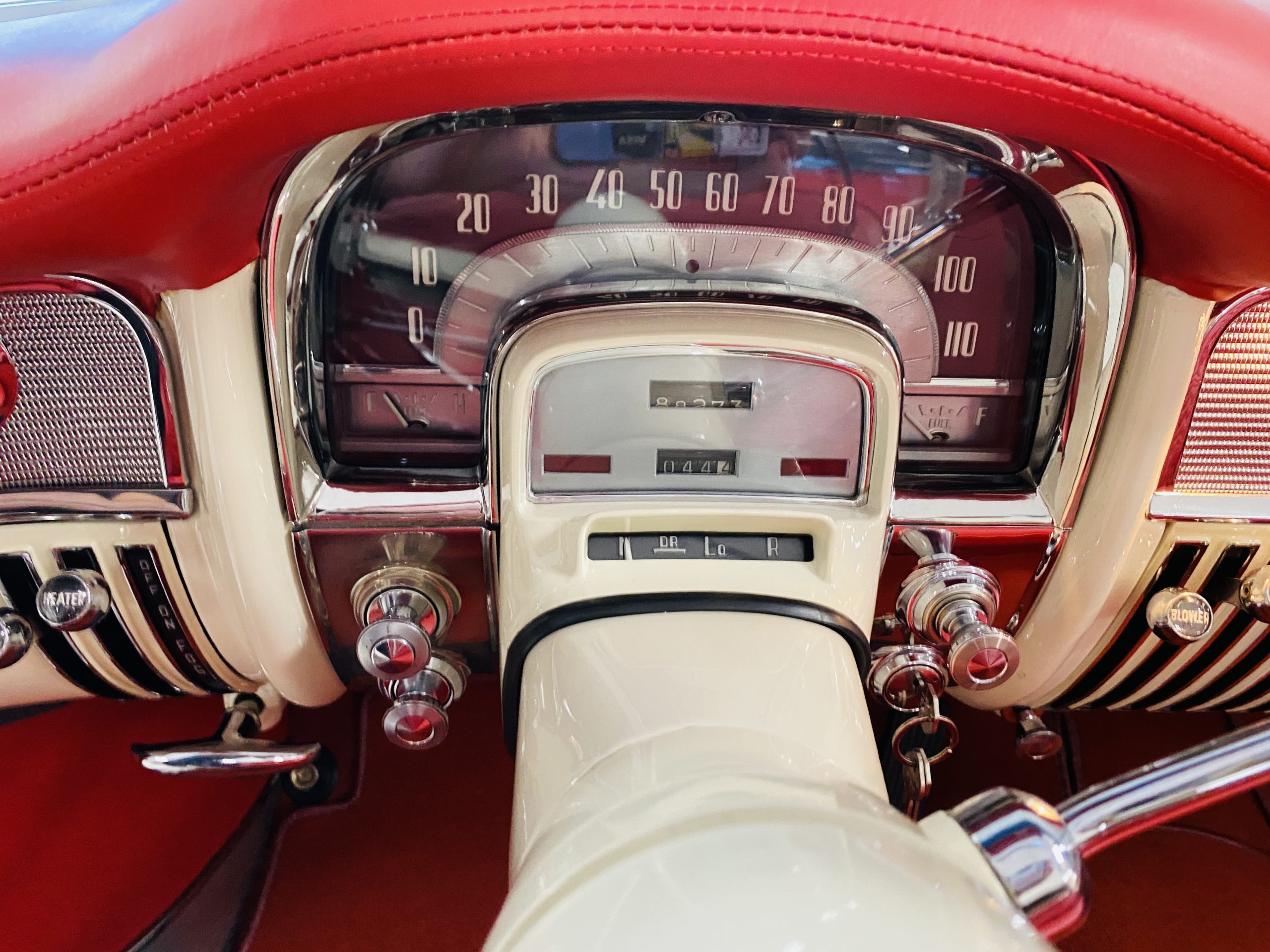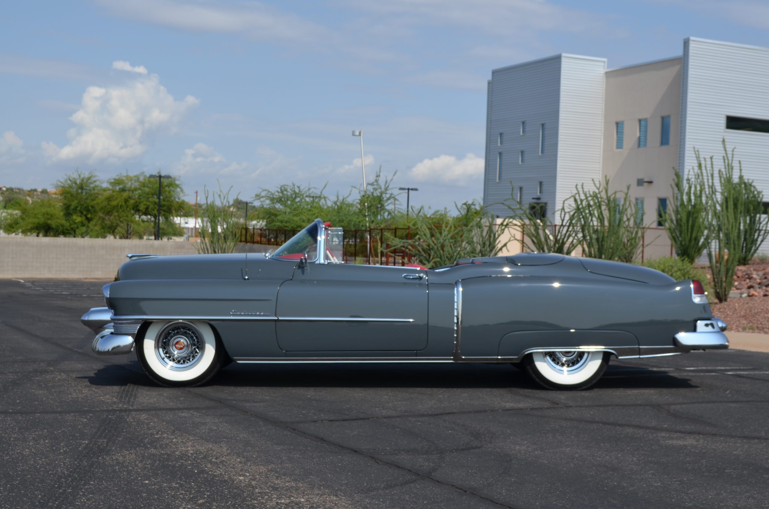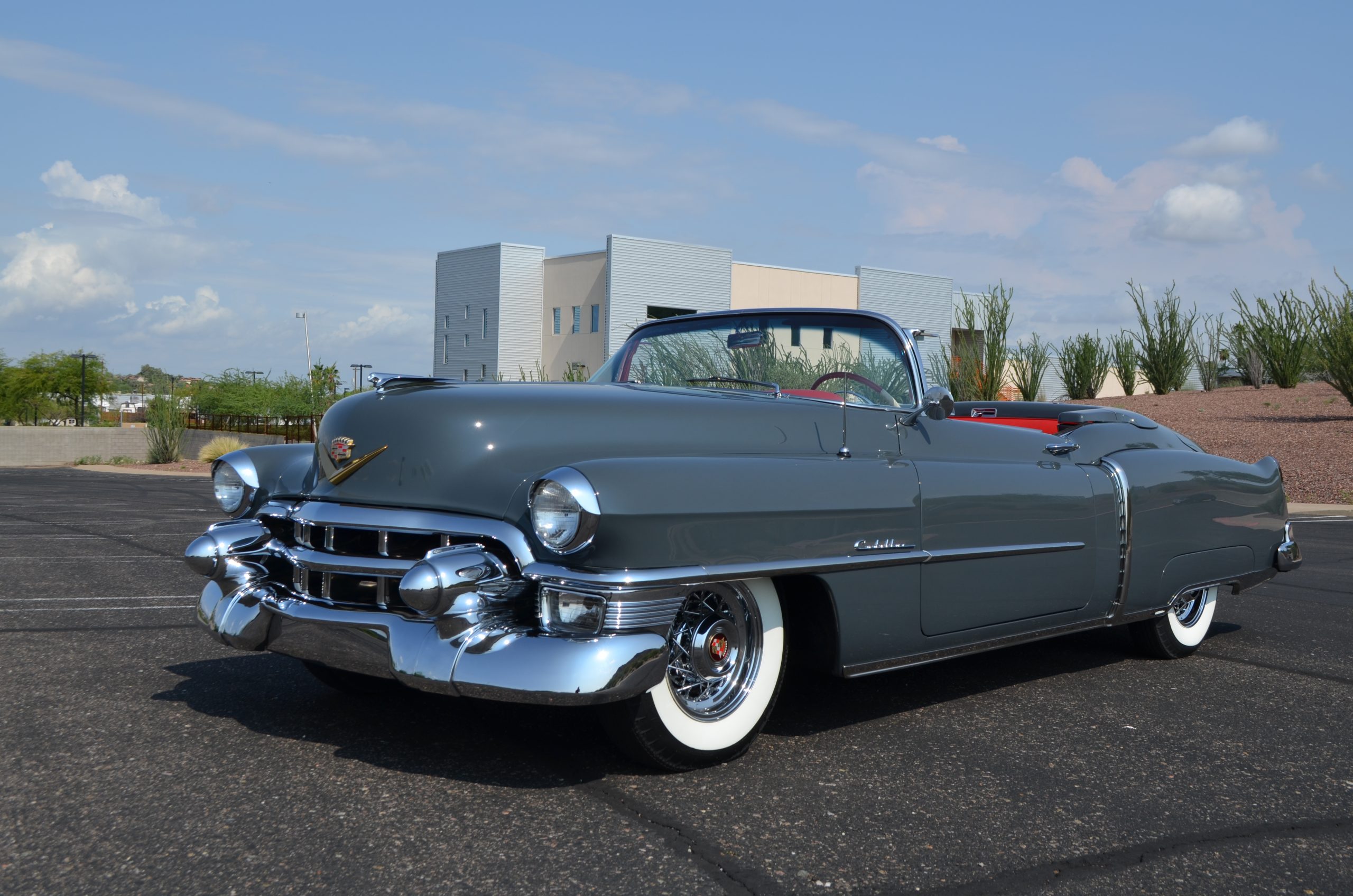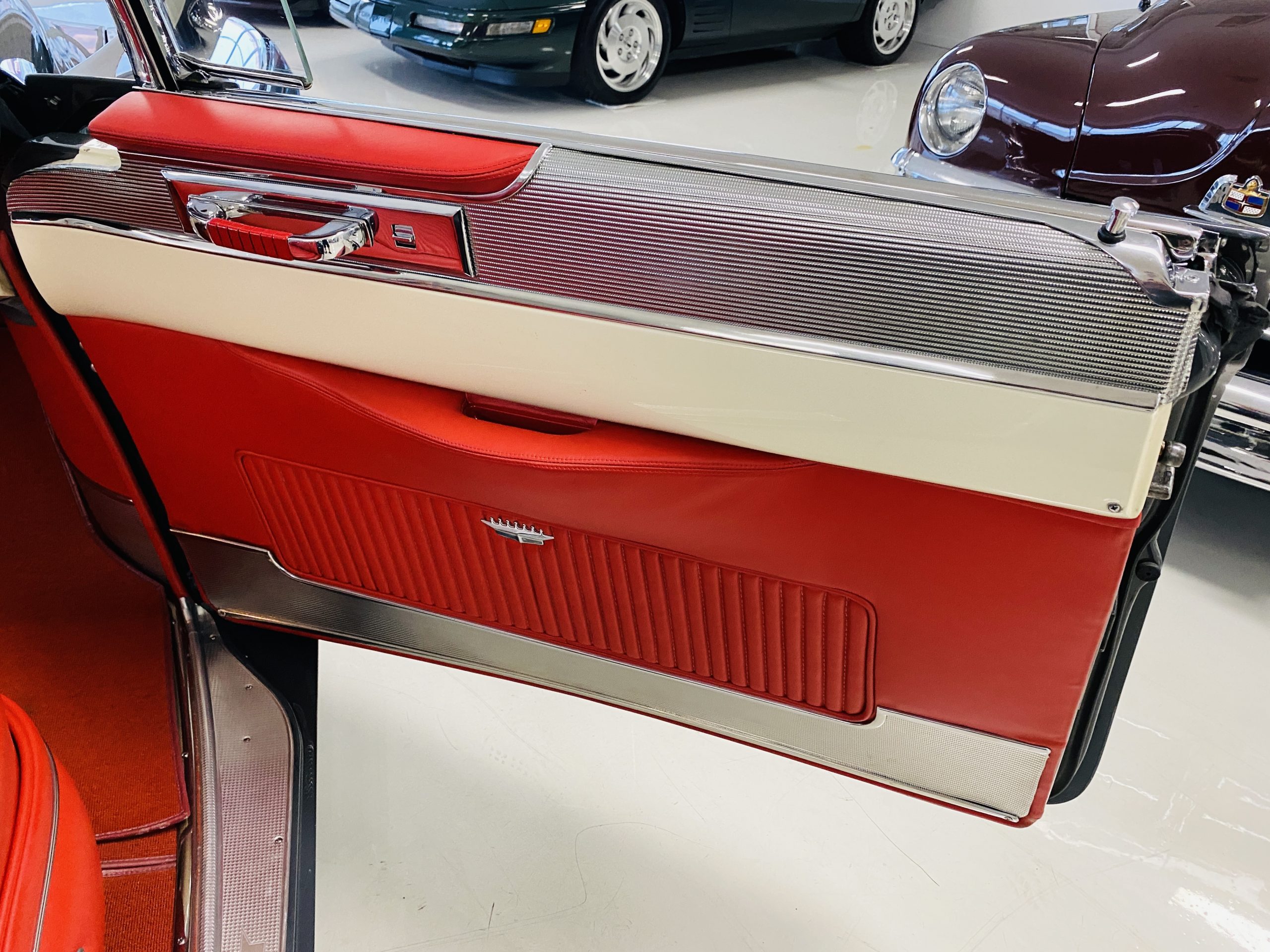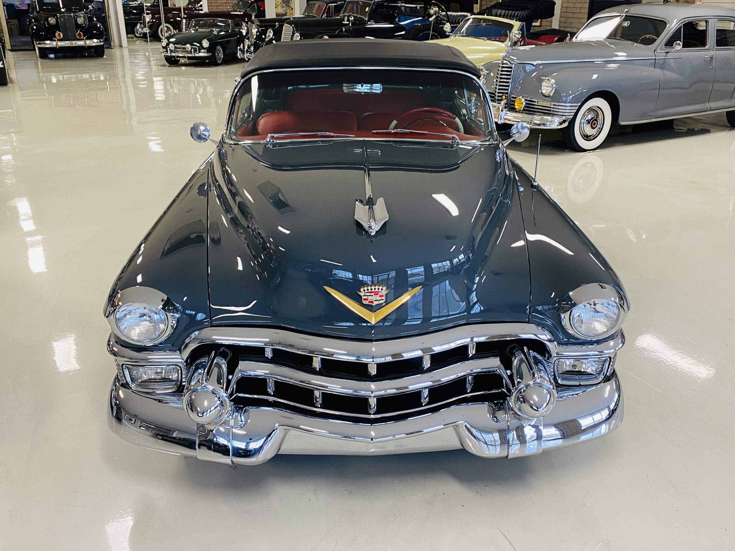 In 2008, Mr. Gimelli sold the Eldorado to Bruce Kersey of Gig Harbor, WA. While Mr. Kersey loved the Eldorado, he was not fond of its original Azure Blue paint and interior combination. He proceeded to send the Cadillac to Jerry Hjeltness of Hjeltness Restoration in Escondido, CA. Having completed an award-winning Mercedes-Benz 300SL restoration for him in the past, Mr. Kersey knew that Jerry was the man for the job. Hjeltness disassembled the car and took the body down to the bare metal. Over the next 6 months, they would repaint the car in its stunning present Norman Gray Poly (Paint Code 8), and re-trimmed the interior in a vast expanse of beautiful red leather, and recondition all of the bright work. They approached the project as they do all of their Pebble Beach winning automobiles, and the result is a cosmetically stunning car that wouldn’t flinch being called a work of art. The chrome and stainless steel preparation is absolutely stunning. We have never seen such perfect chrome and stainless on a 1950’s Cadillac. Ever.