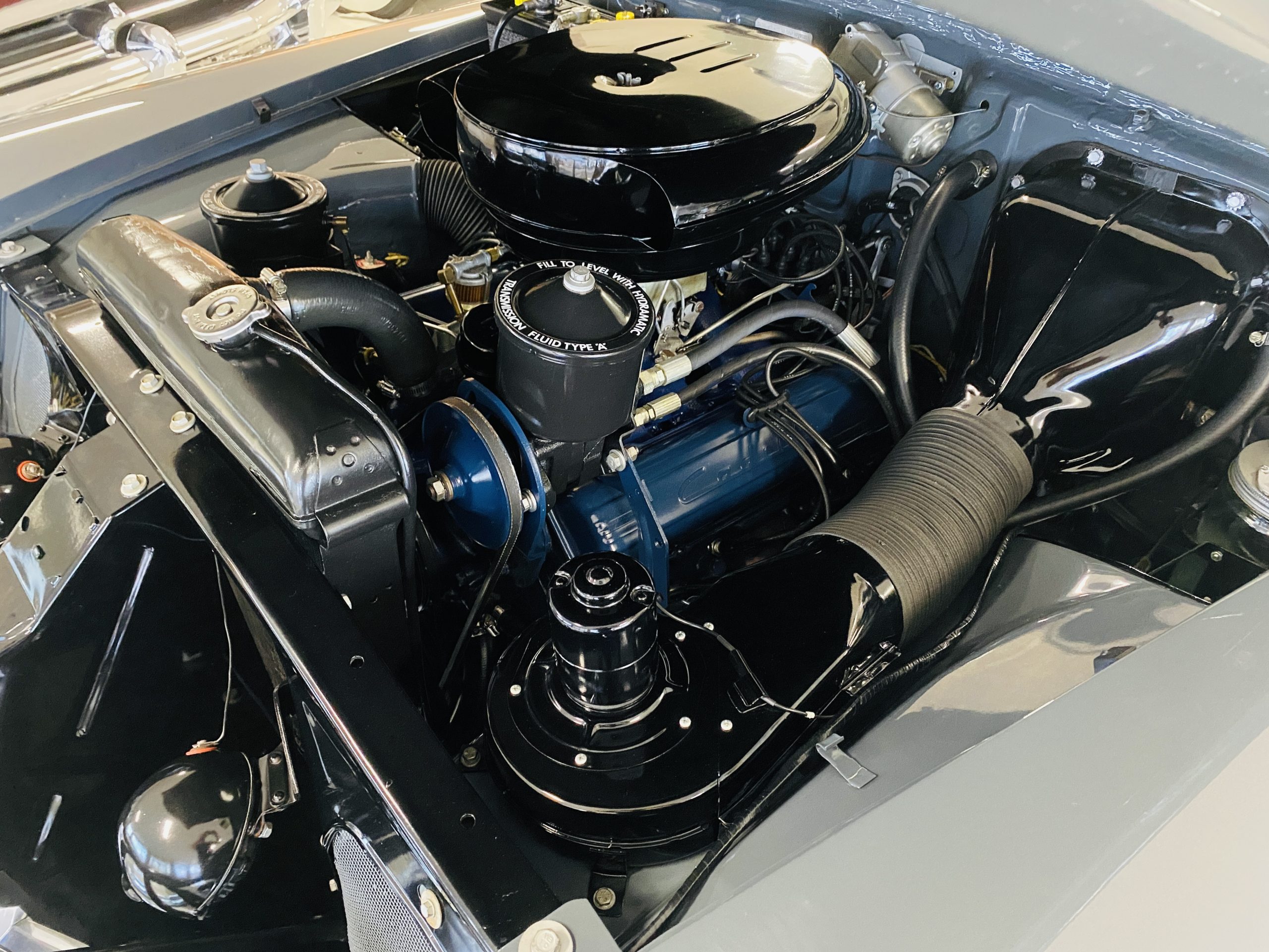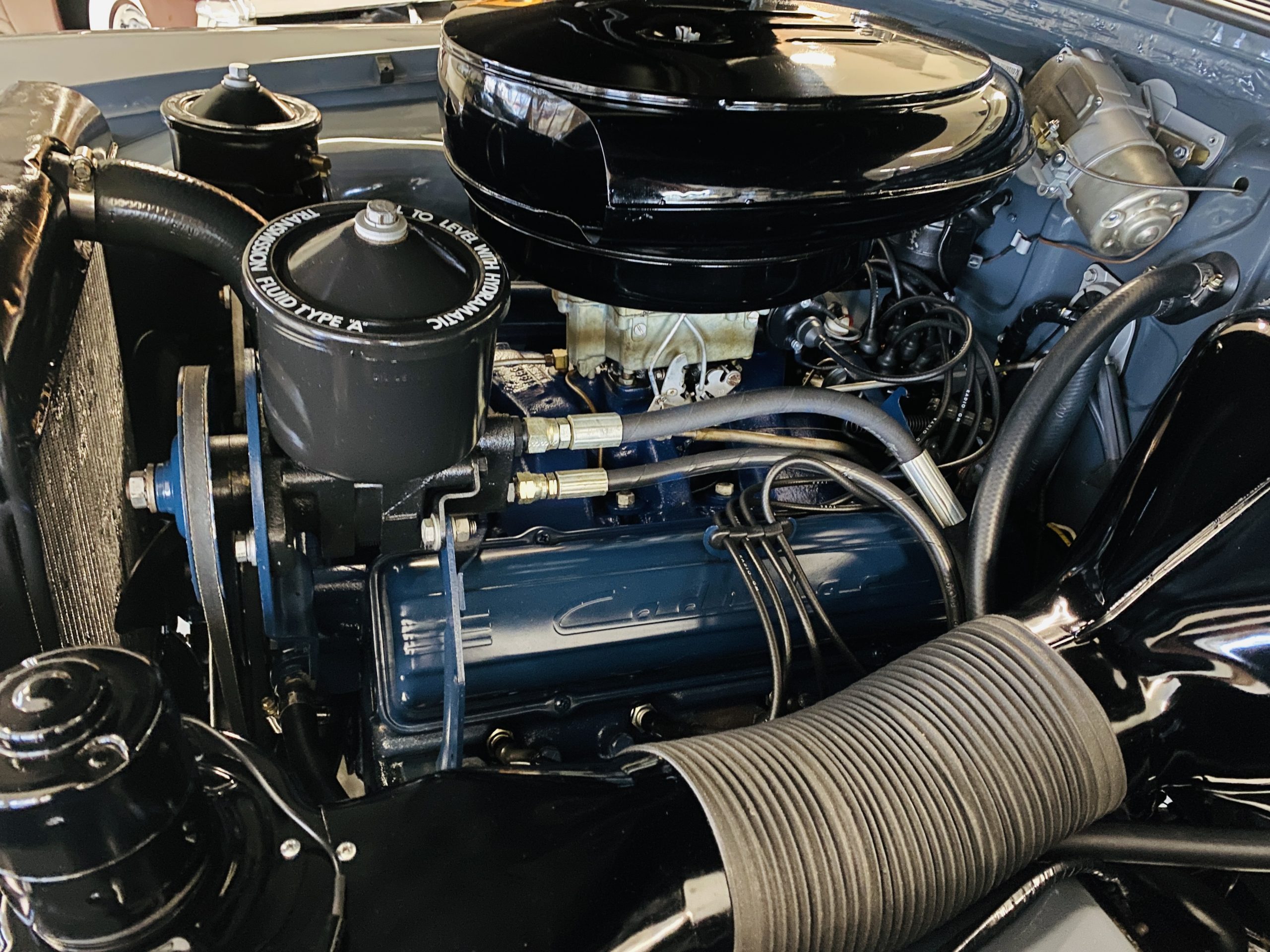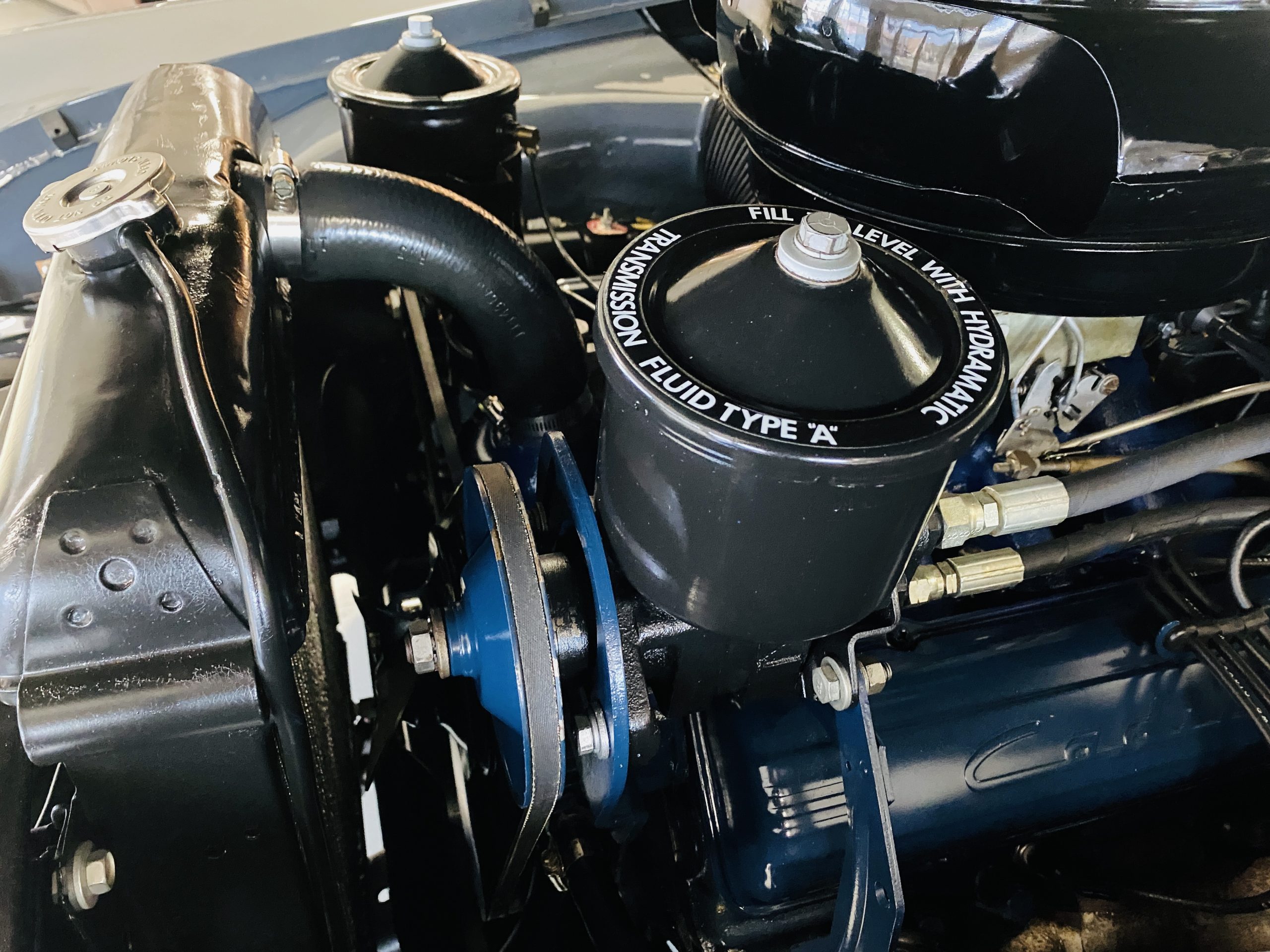 The engine compartment is beautifully detailed showcasing the venerable 331 cu in OHV V8 coupled to its four-speed Hydra-Matic transmission. The performance is excellent to propel this gorgeous piece of Americana history on its 126 inch wheelbase.