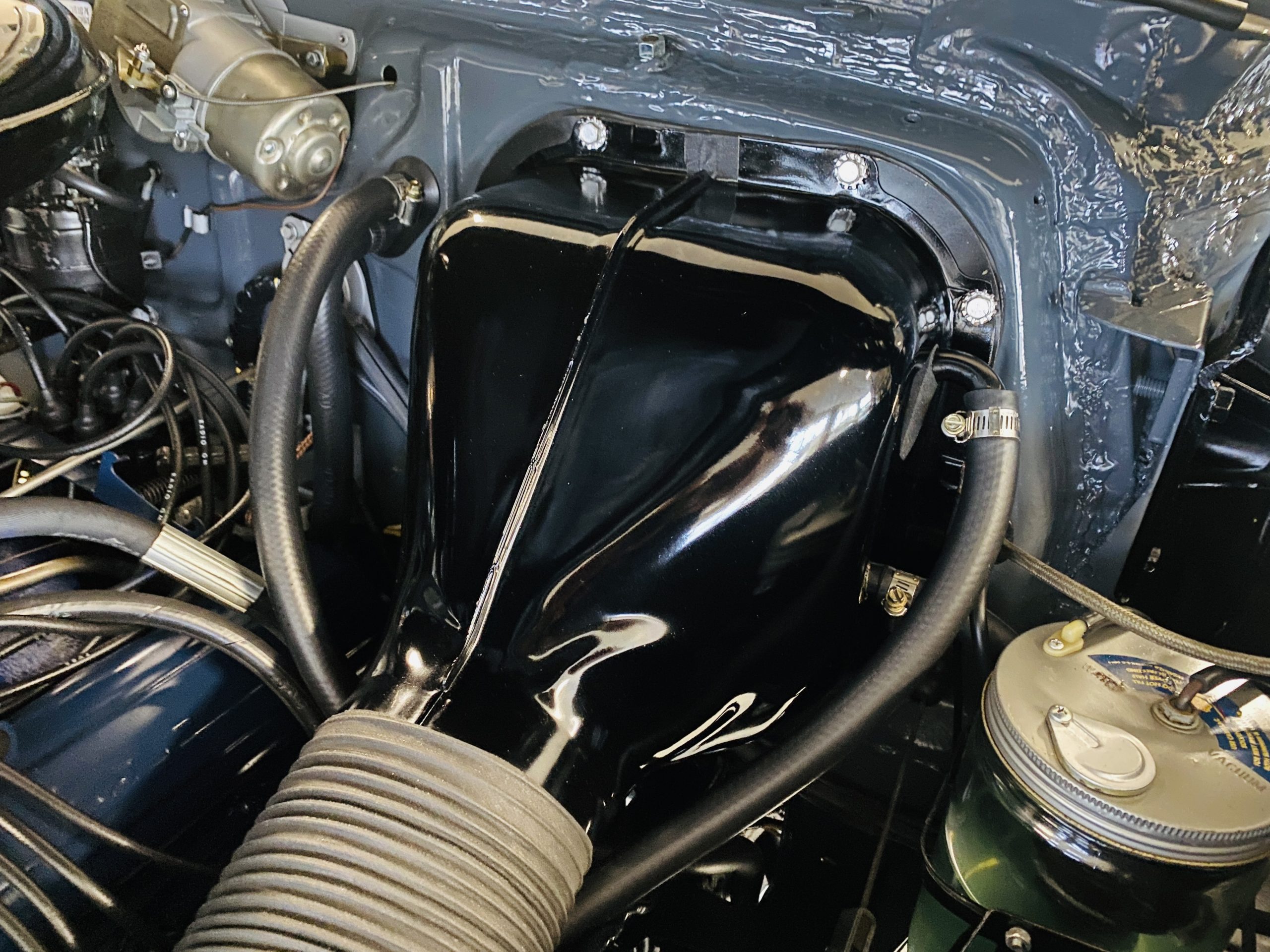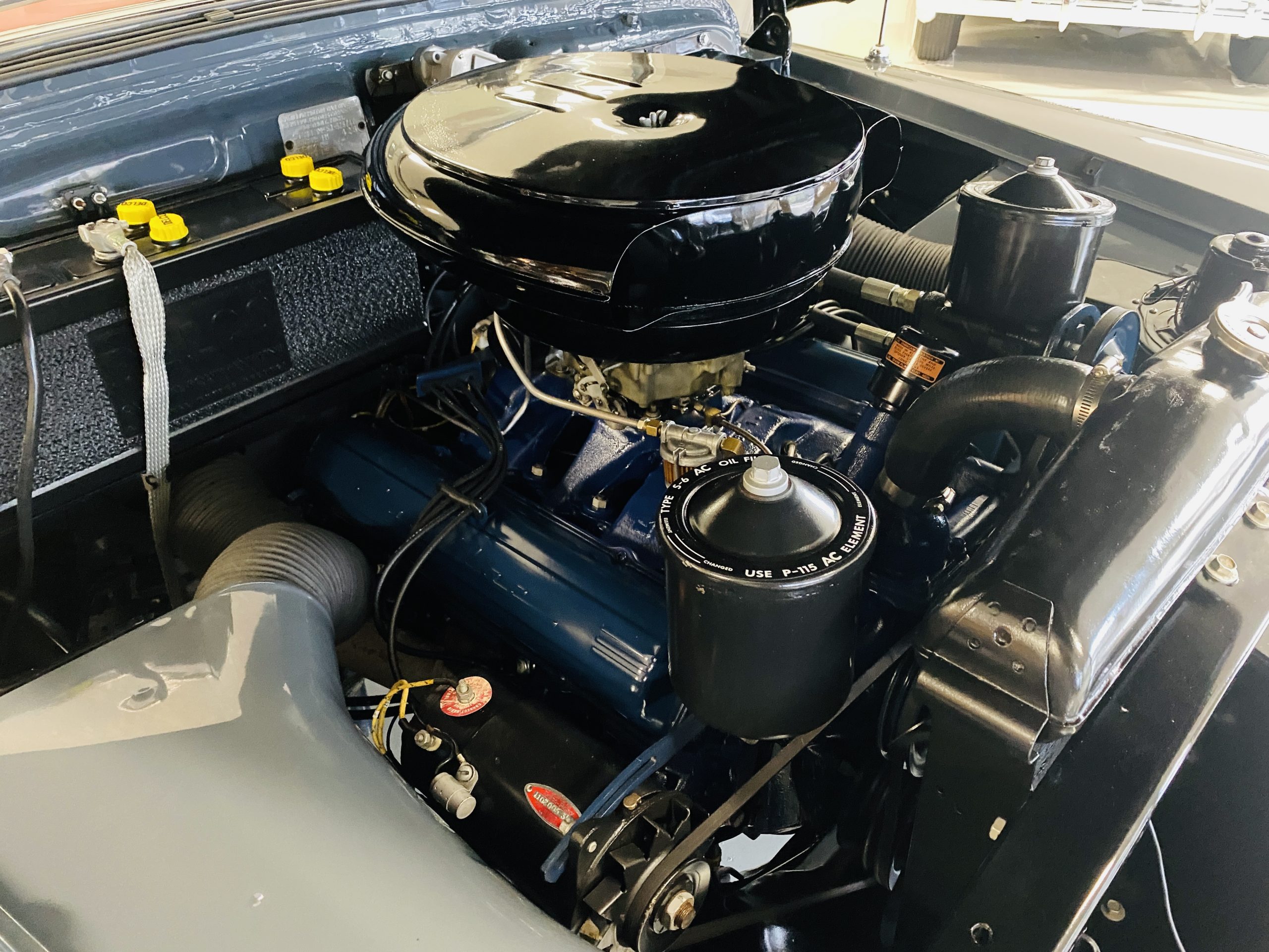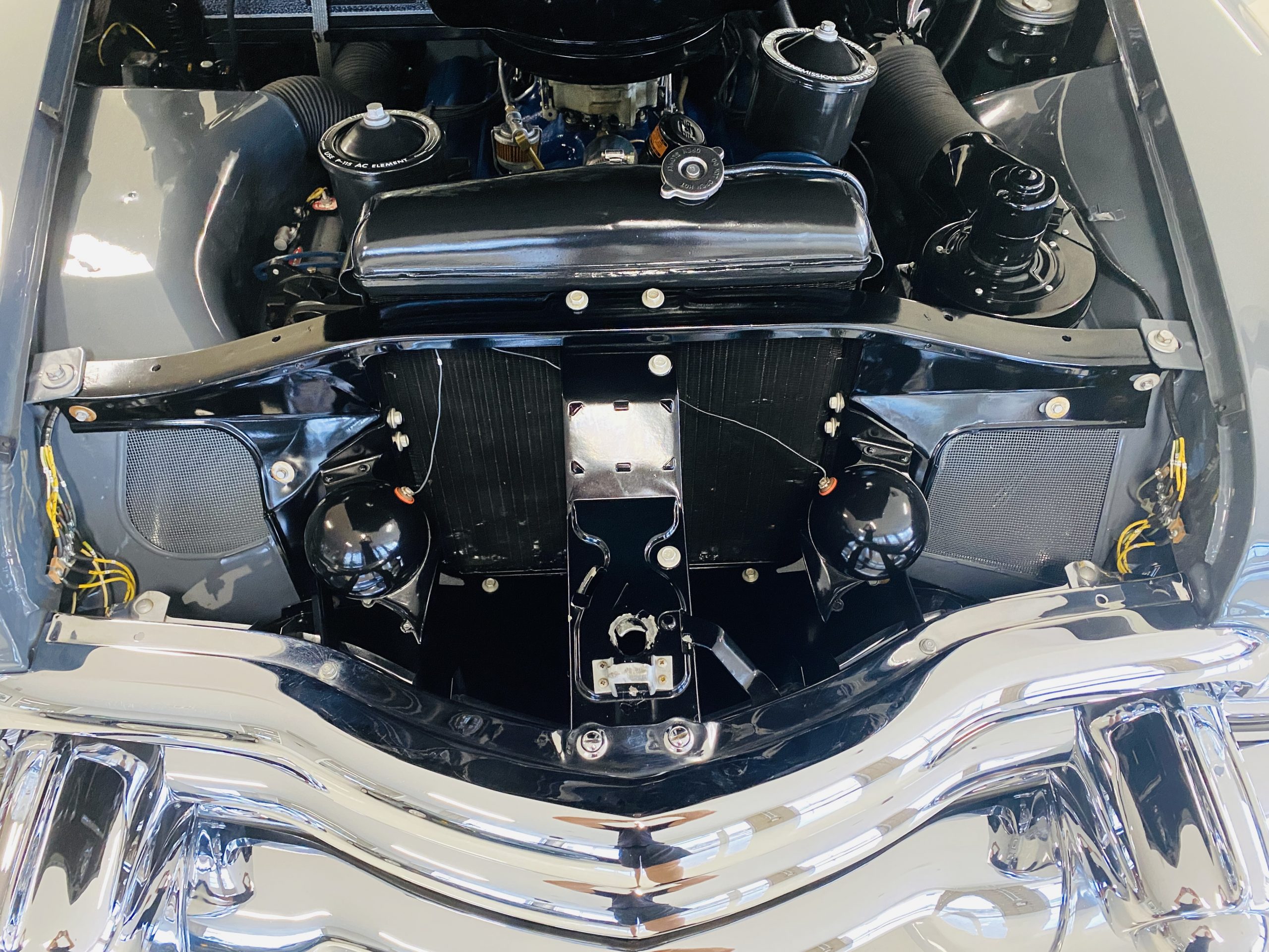 The engine compartment is beautifully detailed showcasing the venerable 331 cu in OHV V8 coupled to its four-speed Hydra-Matic transmission. The performance is excellent to propel this gorgeous piece of Americana history on its 126 inch wheelbase.